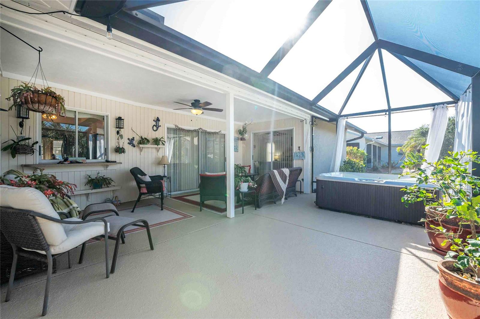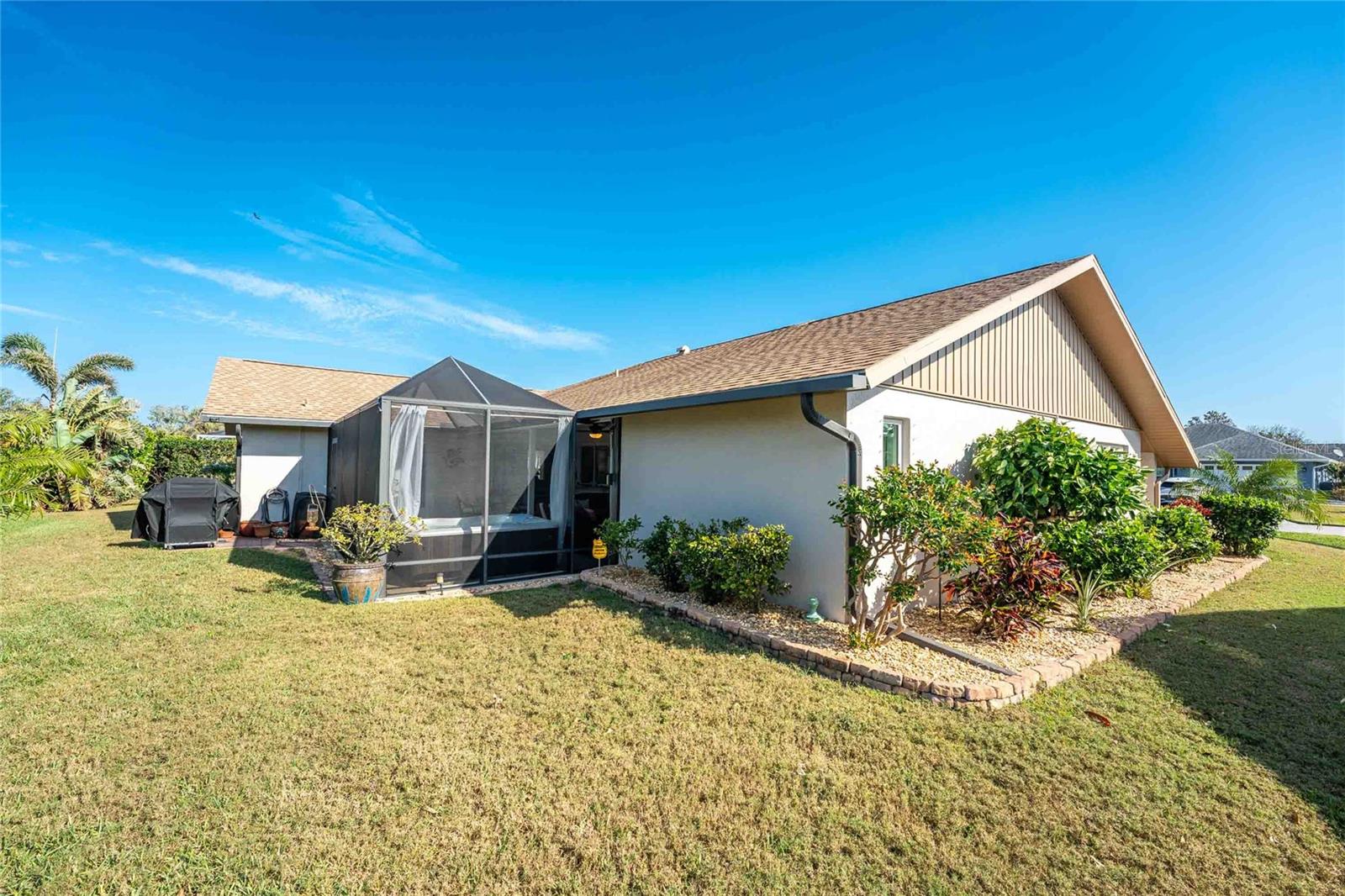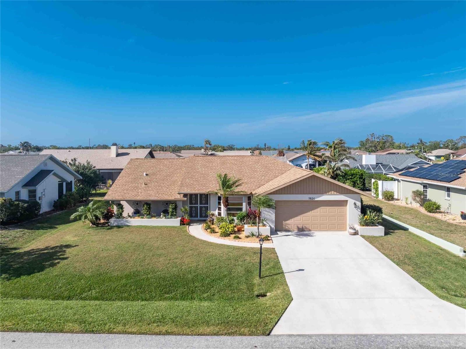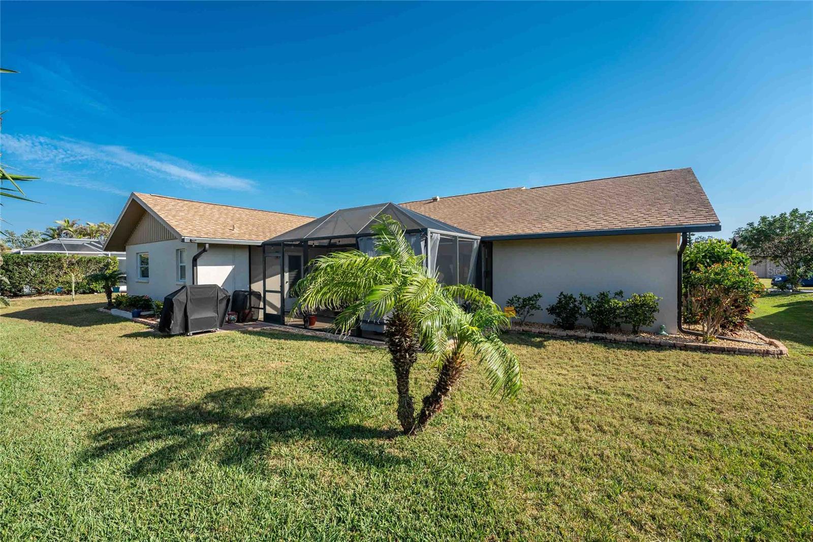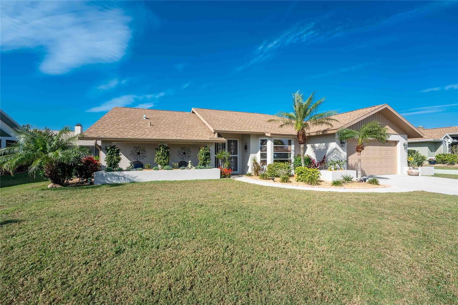 Looking for your “SLICE OF PARADISE”? THEN DON'T BLINK BECAUSE THIS ONE WON'T LAST LONG! This Move-In Ready, OPEN CONCEPT, LIGHT AND BRIGHT FLOOR PLAN IS FOR YOU! Nestled in the coveted, highly desirable community of Gulf View Estates this is the perfect home, NO CDD, LOW HOA, Deed Restricted Community. Enter Gulf View Estates and you'll notice every home is meticulously maintained, there are two Lakes with fountains greeting you upon your tour. This beautiful home boasts a welcoming double-door entrance and a covered front porch. Walking up the walkway you’ll be impressed with the lush landscaping and curb appeal. Step inside and EXPECT TO BE IMPRESSED -- Once Inside, decorative tile flooring adds elegance throughout. The FORMAL DINING ROOM features a BAY WINDOW AND SEAT and is conveniently located near the GOURMET KITCHEN boasting soft-close cabinets, recessed lighting, stainless steel appliances, and a PASS-THROUGH SERVING BAR to the ENORMOUS COVERED AND SCREENED lanai. You can serve delicious meals to your family and guest members right on the kitchen peninsula as there is plenty of space on the countertop while you watch your favorite shows on the TV. That’s right, adjoining to the open Kitchen there is a HUGE, SPACIOUS and open GREAT ROOM boasting CATHEDERAL-BEAMED CEILINGS and a bright, airy layout, perfect for entertaining; ALL THIS and direct access to your 22 x 20 extended, screened and covered lanai featuring a HOT TUB, PAVER PATIO, GRILL STATION AND LUSH LANDSCAPING. YOUR NEW home includes three generous sized bedrooms and two baths both of which have been totally renovated & updated – You will love the updates done to this home; with the PRIMARY SUITE offering a LUXURIOUS EN SUITE BATH with dual vessel sinks, new a EUROPEAN WALK-IN SHOWER, with rainfall shower system and a handheld shower, private water closet and Linen Closet. The second bedroom is generous in size, has lots of natural light and a large built in Linen Closet, and easy, private access to the Lanai. The third bedroom, set off by barn doors, doubles as a versatile space as well -- 3rd bedroom for guests, office/den, or a private family room with direct assess to the lanai as well. Additional highlights include a cozy office (converted from the original laundry room but could easily be converted back!), ample storage, and an PRIVATE OUTDOOR SHOWER, perfect for rinsing off the sand after spending the day at one of several beaches nearby. This is the PERFECT LOCATION, only minutes to several beaches, in addition to Dearborn Street in Englewood with its varied dining venue and bubbling entertainment, Historic downtown Venice is only minutes away and features eclectic boutique shops, exquisite fine dining, weekly Farmers Market, Sharkey’s Restaurants and Pier, Venice Beach and Jetty. Nearby are highly rated hospitals, medical facilities, major highways and the up and coming Wellen Park with The Cool Today Park where the Atlanta Braves hold their spring practice. Visit downtown Wellen Park and enjoy The Lake and trails, concerts, dining and events galore. Continual events and concerts are held at Wellen Park on a consistent basis. This BEAUTY is designed for a full-time relaxed Florida lifestyle or perfect for a "Snowbird". Don't delay -- get your "SLICE OF PARADISE" NOW, call for a private showing.