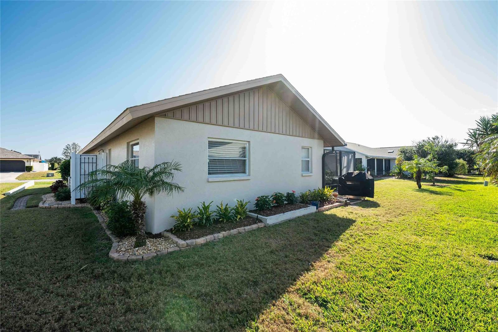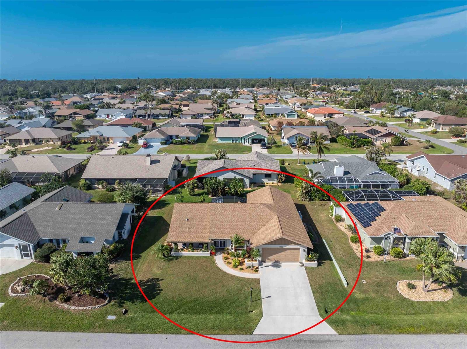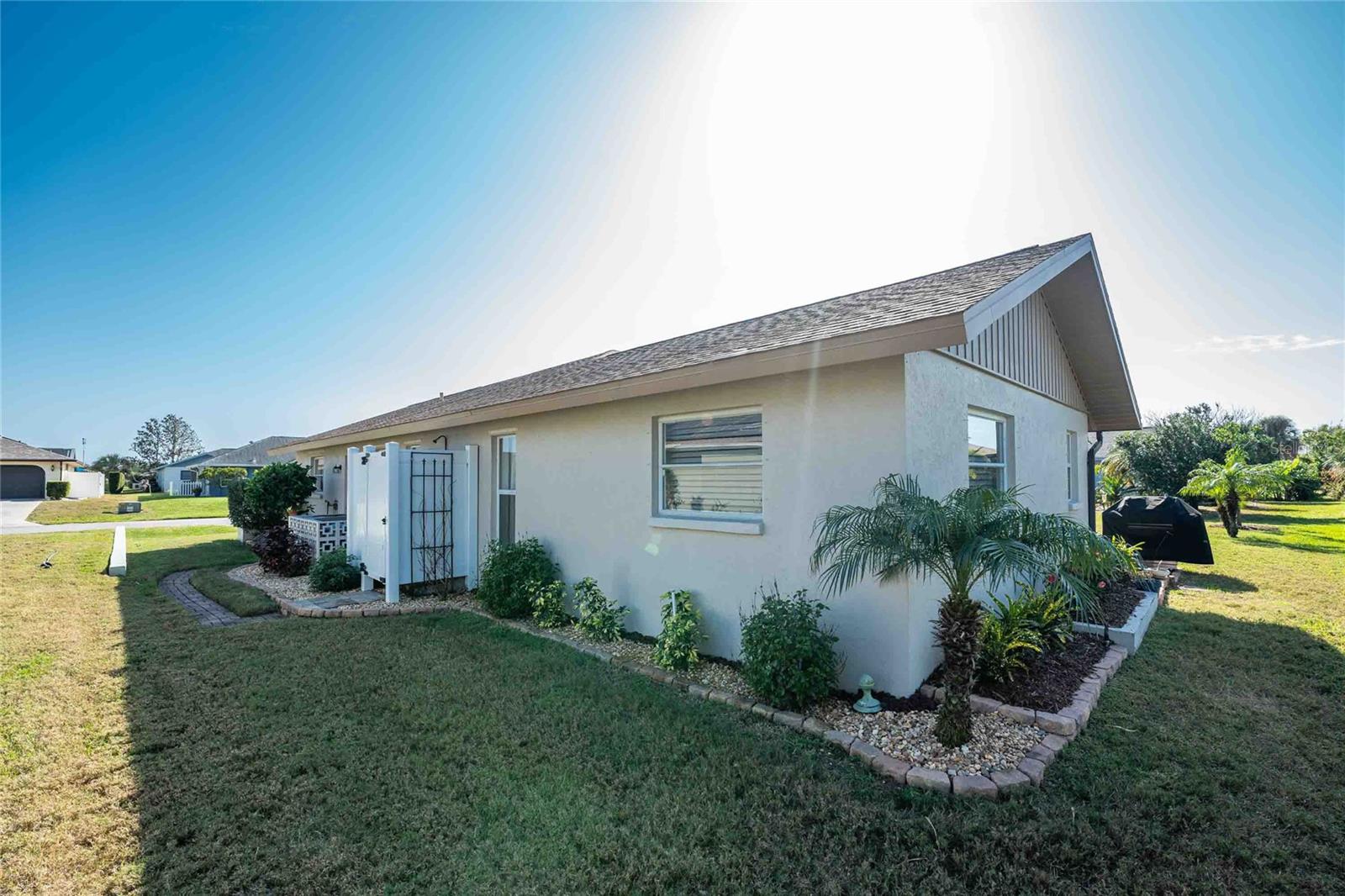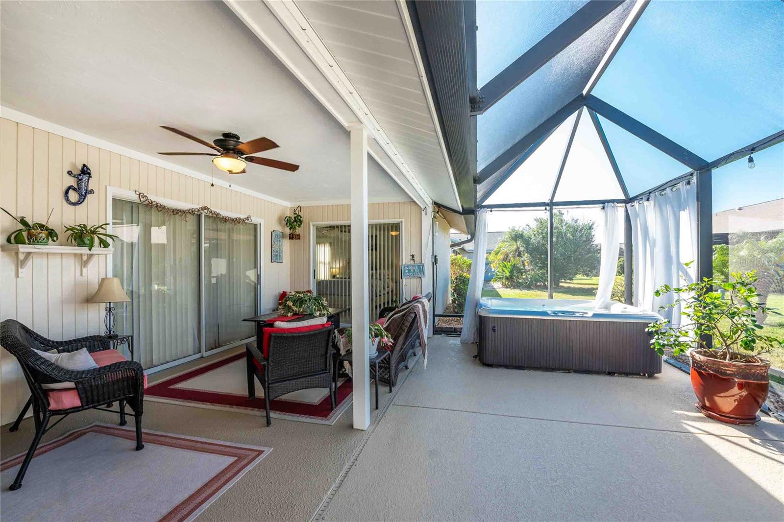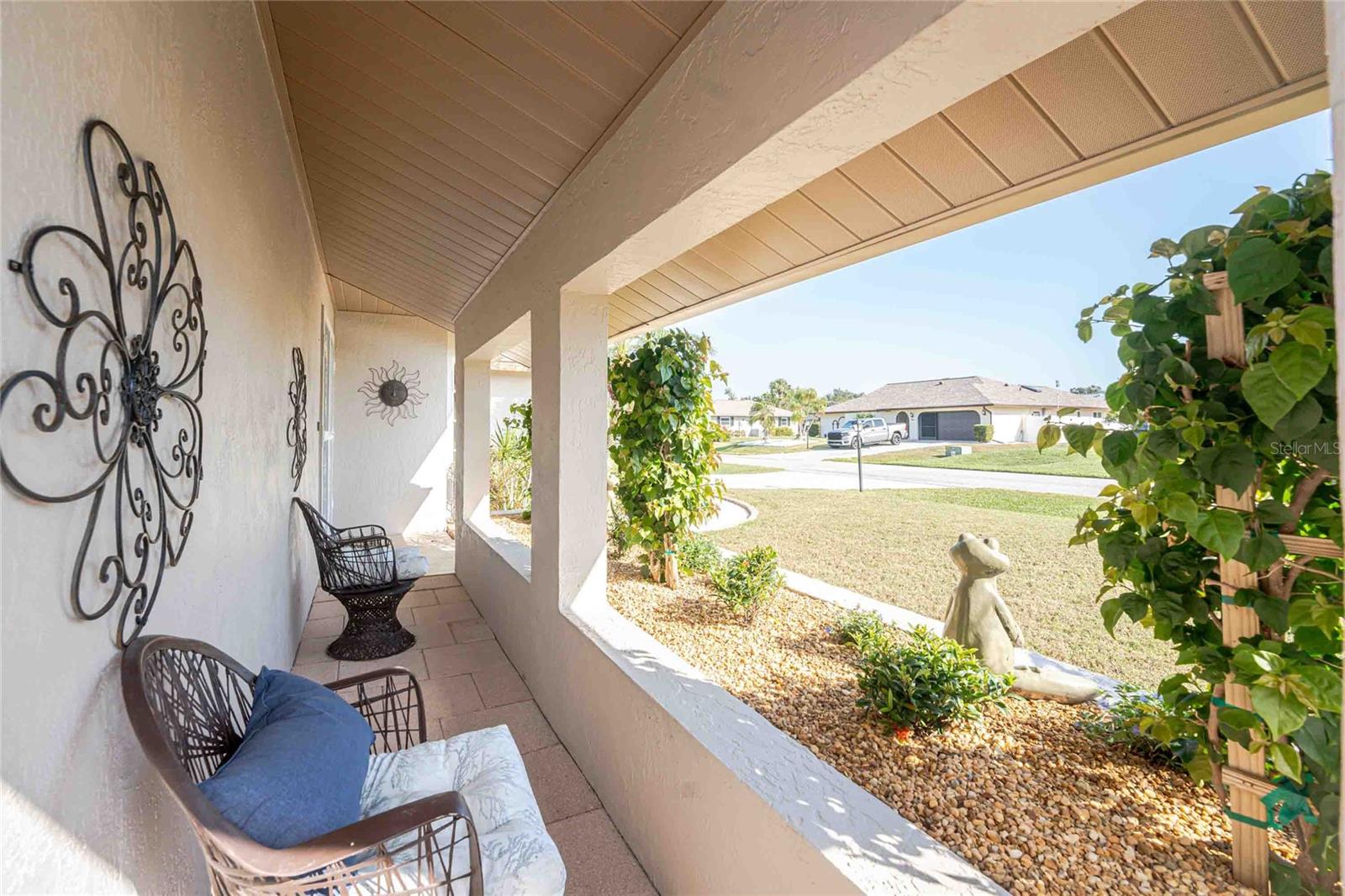 Looking for your “SLICE OF PARADISE”? THEN DON'T BLINK BECAUSE THIS ONE WON'T LAST LONG! This Move-In Ready, OPEN CONCEPT, LIGHT AND BRIGHT FLOOR PLAN IS FOR YOU! Nestled in the coveted, highly desirable community of Gulf View Estates this is the perfect home, NO CDD, LOW HOA, Deed Restricted Community. Enter Gulf View Estates and you'll notice every home is meticulously maintained, there are two Lakes with fountains greeting you upon your tour. This beautiful home boasts a welcoming double-door entrance and a covered front porch. Walking up the walkway you’ll be impressed with the lush landscaping and curb appeal. Step inside and EXPECT TO BE IMPRESSED -- Once Inside, decorative tile flooring adds elegance throughout. The FORMAL DINING ROOM features a BAY WINDOW AND SEAT and is conveniently located near the GOURMET KITCHEN boasting soft-close cabinets, recessed lighting, stainless steel appliances, and a PASS-THROUGH SERVING BAR to the ENORMOUS COVERED AND SCREENED lanai. You can serve delicious meals to your family and guest members right on the kitchen peninsula as there is plenty of space on the countertop while you watch your favorite shows on the TV. That’s right, adjoining to the open Kitchen there is a HUGE, SPACIOUS and open GREAT ROOM boasting CATHEDERAL-BEAMED CEILINGS and a bright, airy layout, perfect for entertaining; ALL THIS and direct access to your 22 x 20 extended, screened and covered lanai featuring a HOT TUB, PAVER PATIO, GRILL STATION AND LUSH LANDSCAPING. YOUR NEW home includes three generous sized bedrooms and two baths both of which have been totally renovated & updated – You will love the updates done to this home; with the PRIMARY SUITE offering a LUXURIOUS EN SUITE BATH with dual vessel sinks, new a EUROPEAN WALK-IN SHOWER, with rainfall shower system and a handheld shower, private water closet and Linen Closet. The second bedroom is generous in size, has lots of natural light and a large built in Linen Closet, and easy, private access to the Lanai. The third bedroom, set off by barn doors, doubles as a versatile space as well -- 3rd bedroom for guests, office/den, or a private family room with direct assess to the lanai as well. Additional highlights include a cozy office (converted from the original laundry room but could easily be converted back!), ample storage, and an PRIVATE OUTDOOR SHOWER, perfect for rinsing off the sand after spending the day at one of several beaches nearby. This is the PERFECT LOCATION, only minutes to several beaches, in addition to Dearborn Street in Englewood with its varied dining venue and bubbling entertainment, Historic downtown Venice is only minutes away and features eclectic boutique shops, exquisite fine dining, weekly Farmers Market, Sharkey’s Restaurants and Pier, Venice Beach and Jetty. Nearby are highly rated hospitals, medical facilities, major highways and the up and coming Wellen Park with The Cool Today Park where the Atlanta Braves hold their spring practice. Visit downtown Wellen Park and enjoy The Lake and trails, concerts, dining and events galore. Continual events and concerts are held at Wellen Park on a consistent basis. This BEAUTY is designed for a full-time relaxed Florida lifestyle or perfect for a "Snowbird". Don't delay -- get your "SLICE OF PARADISE" NOW, call for a private showing.