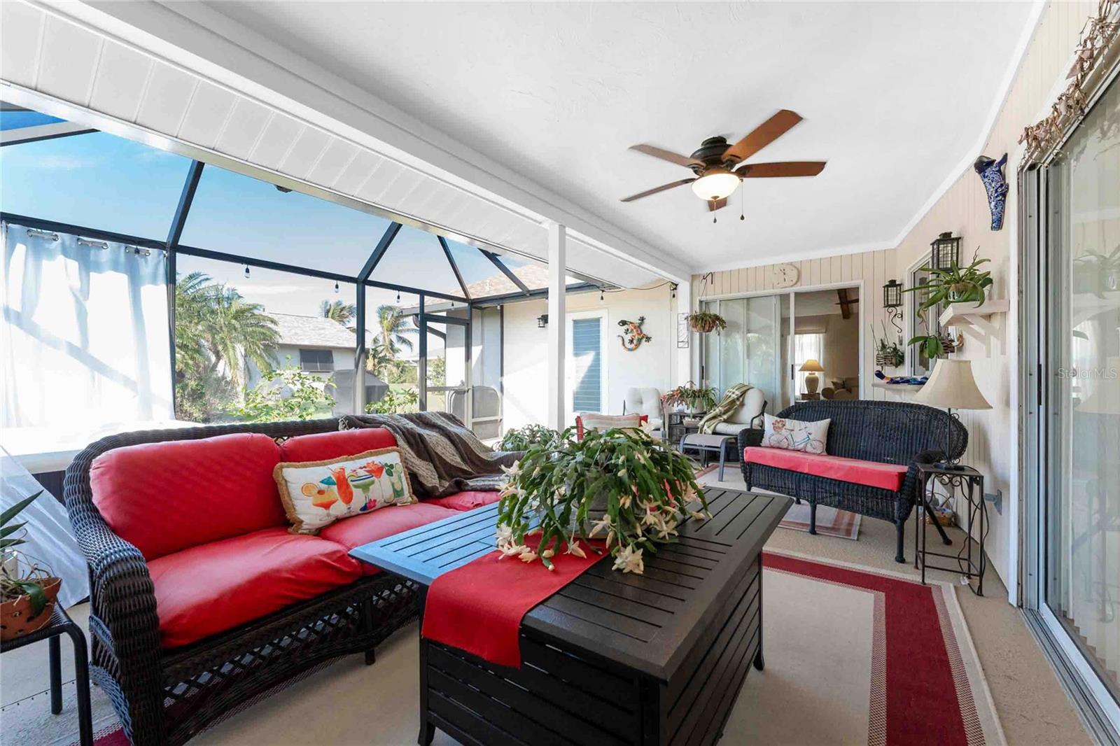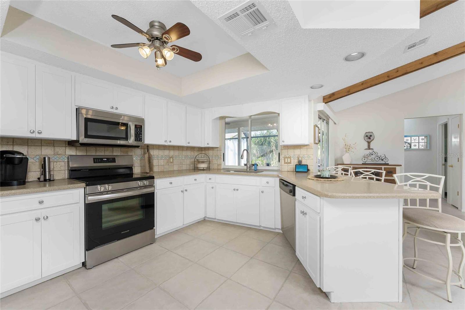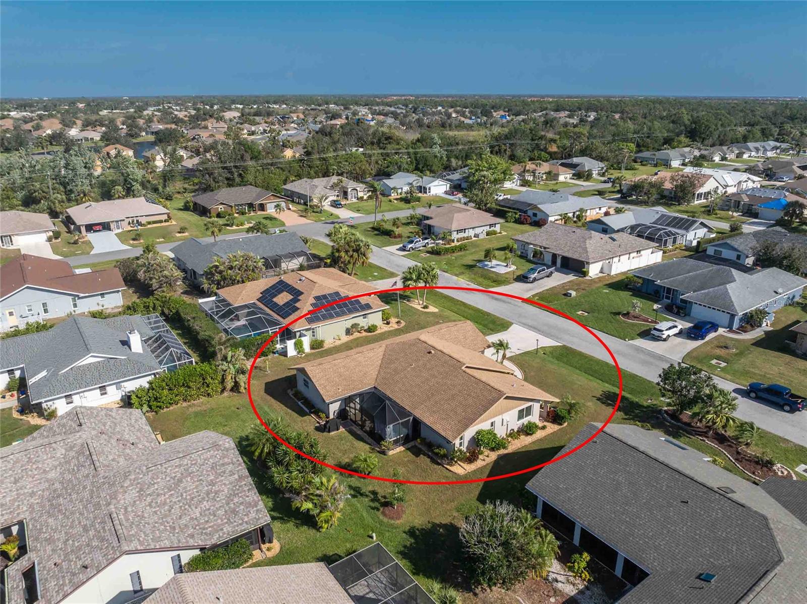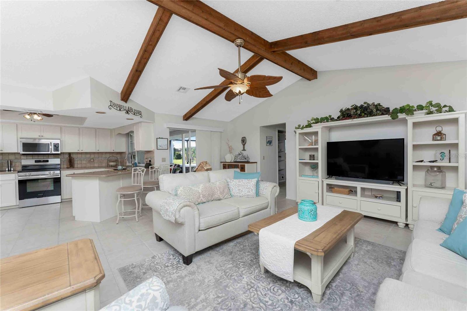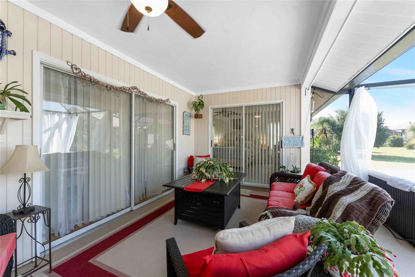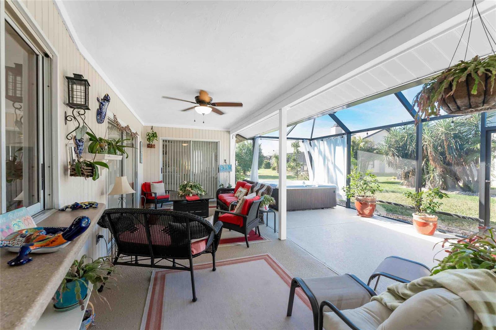 Looking for your “SLICE OF PARADISE”? THEN DON'T BLINK BECAUSE THIS ONE WON'T LAST LONG! This Move-In Ready, OPEN CONCEPT, LIGHT AND BRIGHT FLOOR PLAN IS FOR YOU! Nestled in the coveted, highly desirable community of Gulf View Estates this is the perfect home, NO CDD, LOW HOA, Deed Restricted Community. Enter Gulf View Estates and you'll notice every home is meticulously maintained, there are two Lakes with fountains greeting you upon your tour. This beautiful home boasts a welcoming double-door entrance and a covered front porch. Walking up the walkway you’ll be impressed with the lush landscaping and curb appeal. Step inside and EXPECT TO BE IMPRESSED -- Once Inside, decorative tile flooring adds elegance throughout. The FORMAL DINING ROOM features a BAY WINDOW AND SEAT and is conveniently located near the GOURMET KITCHEN boasting soft-close cabinets, recessed lighting, stainless steel appliances, and a PASS-THROUGH SERVING BAR to the ENORMOUS COVERED AND SCREENED lanai. You can serve delicious meals to your family and guest members right on the kitchen peninsula as there is plenty of space on the countertop while you watch your favorite shows on the TV. That’s right, adjoining to the open Kitchen there is a HUGE, SPACIOUS and open GREAT ROOM boasting CATHEDERAL-BEAMED CEILINGS and a bright, airy layout, perfect for entertaining; ALL THIS and direct access to your 22 x 20 extended, screened and covered lanai featuring a HOT TUB, PAVER PATIO, GRILL STATION AND LUSH LANDSCAPING. YOUR NEW home includes three generous sized bedrooms and two baths both of which have been totally renovated & updated – You will love the updates done to this home; with the PRIMARY SUITE offering a LUXURIOUS EN SUITE BATH with dual vessel sinks, new a EUROPEAN WALK-IN SHOWER, with rainfall shower system and a handheld shower, private water closet and Linen Closet. The second bedroom is generous in size, has lots of natural light and a large built in Linen Closet, and easy, private access to the Lanai. The third bedroom, set off by barn doors, doubles as a versatile space as well -- 3rd bedroom for guests, office/den, or a private family room with direct assess to the lanai as well. Additional highlights include a cozy office (converted from the original laundry room but could easily be converted back!), ample storage, and an PRIVATE OUTDOOR SHOWER, perfect for rinsing off the sand after spending the day at one of several beaches nearby. This is the PERFECT LOCATION, only minutes to several beaches, in addition to Dearborn Street in Englewood with its varied dining venue and bubbling entertainment, Historic downtown Venice is only minutes away and features eclectic boutique shops, exquisite fine dining, weekly Farmers Market, Sharkey’s Restaurants and Pier, Venice Beach and Jetty. Nearby are highly rated hospitals, medical facilities, major highways and the up and coming Wellen Park with The Cool Today Park where the Atlanta Braves hold their spring practice. Visit downtown Wellen Park and enjoy The Lake and trails, concerts, dining and events galore. Continual events and concerts are held at Wellen Park on a consistent basis. This BEAUTY is designed for a full-time relaxed Florida lifestyle or perfect for a "Snowbird". Don't delay -- get your "SLICE OF PARADISE" NOW, call for a private showing.