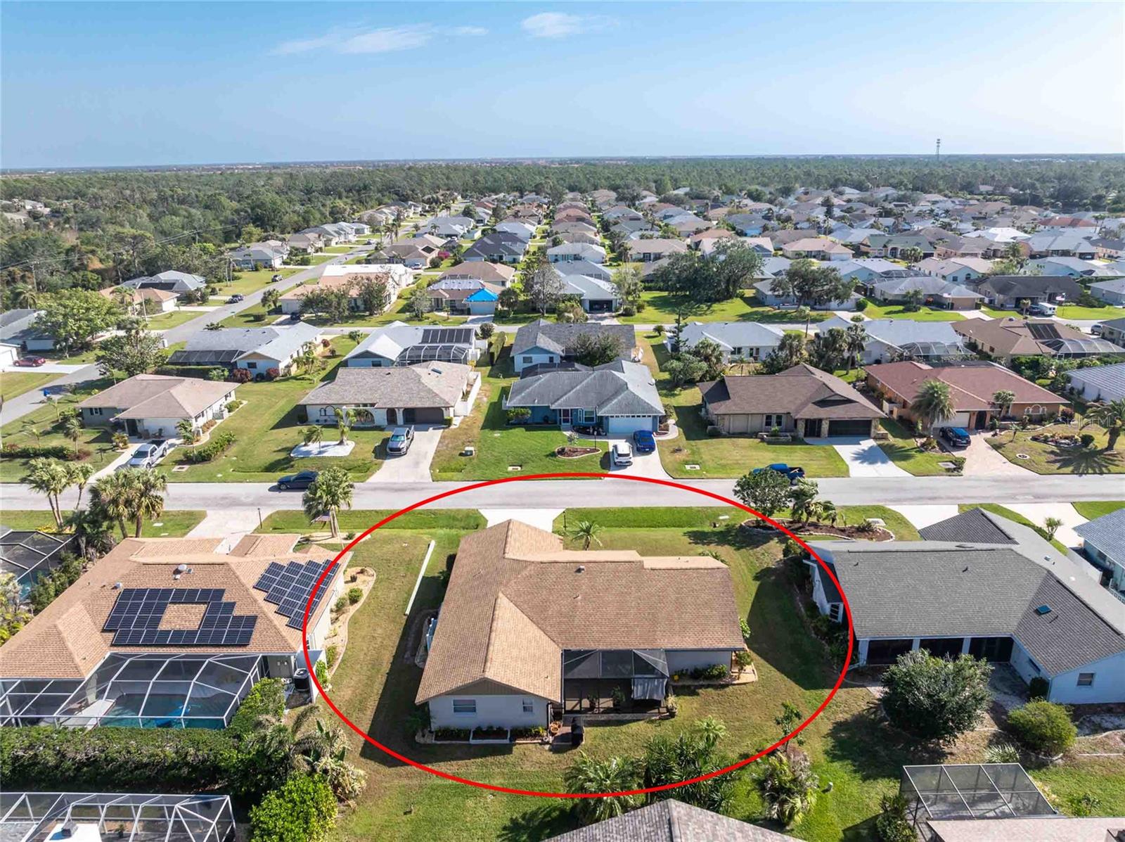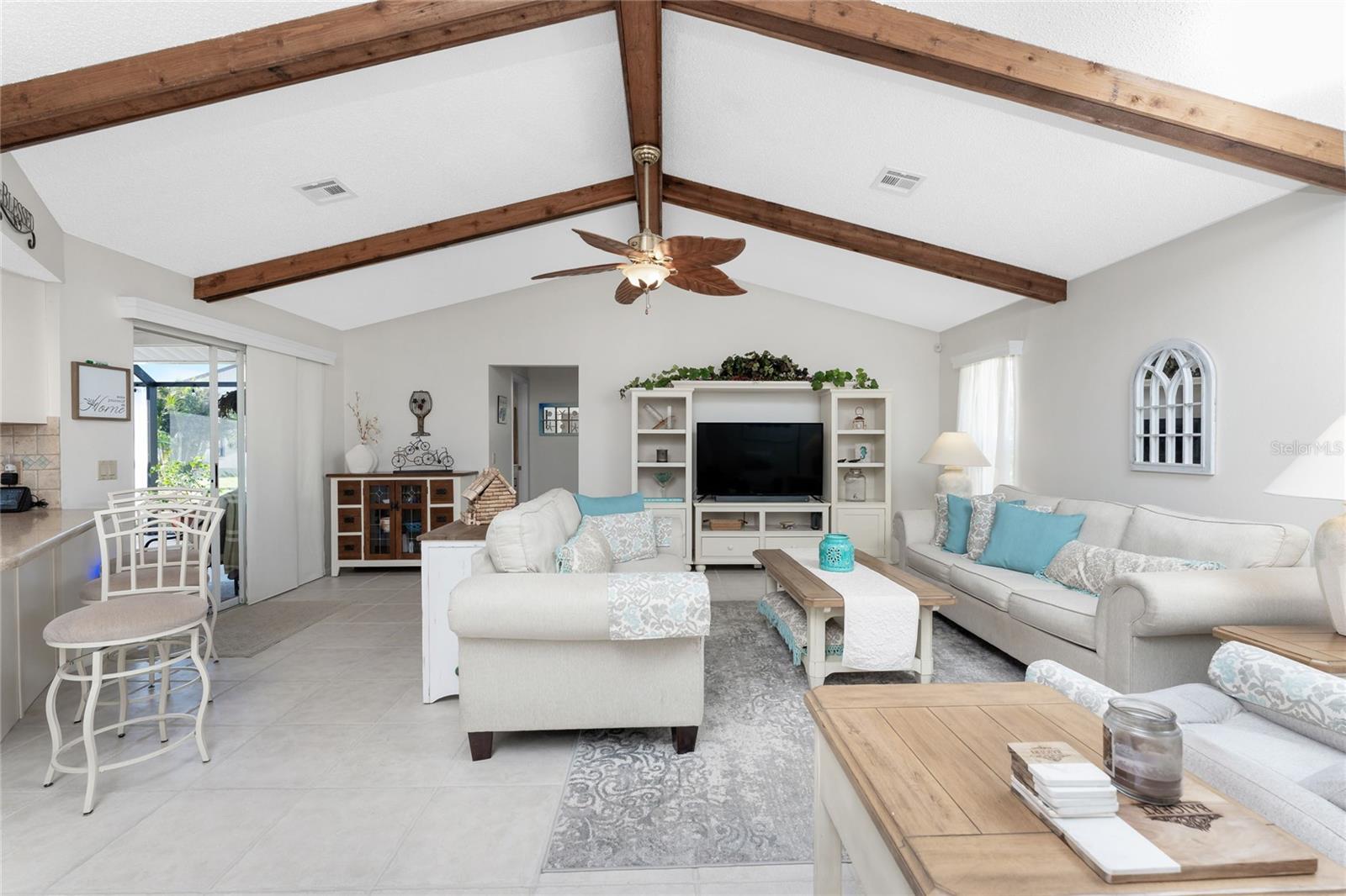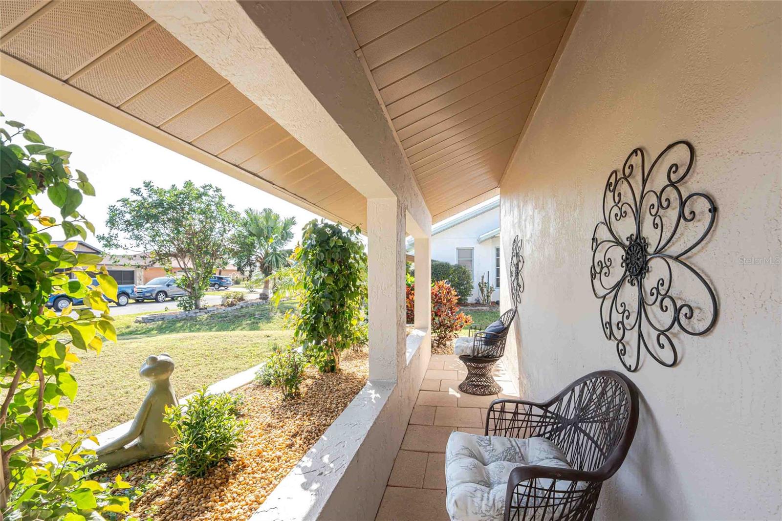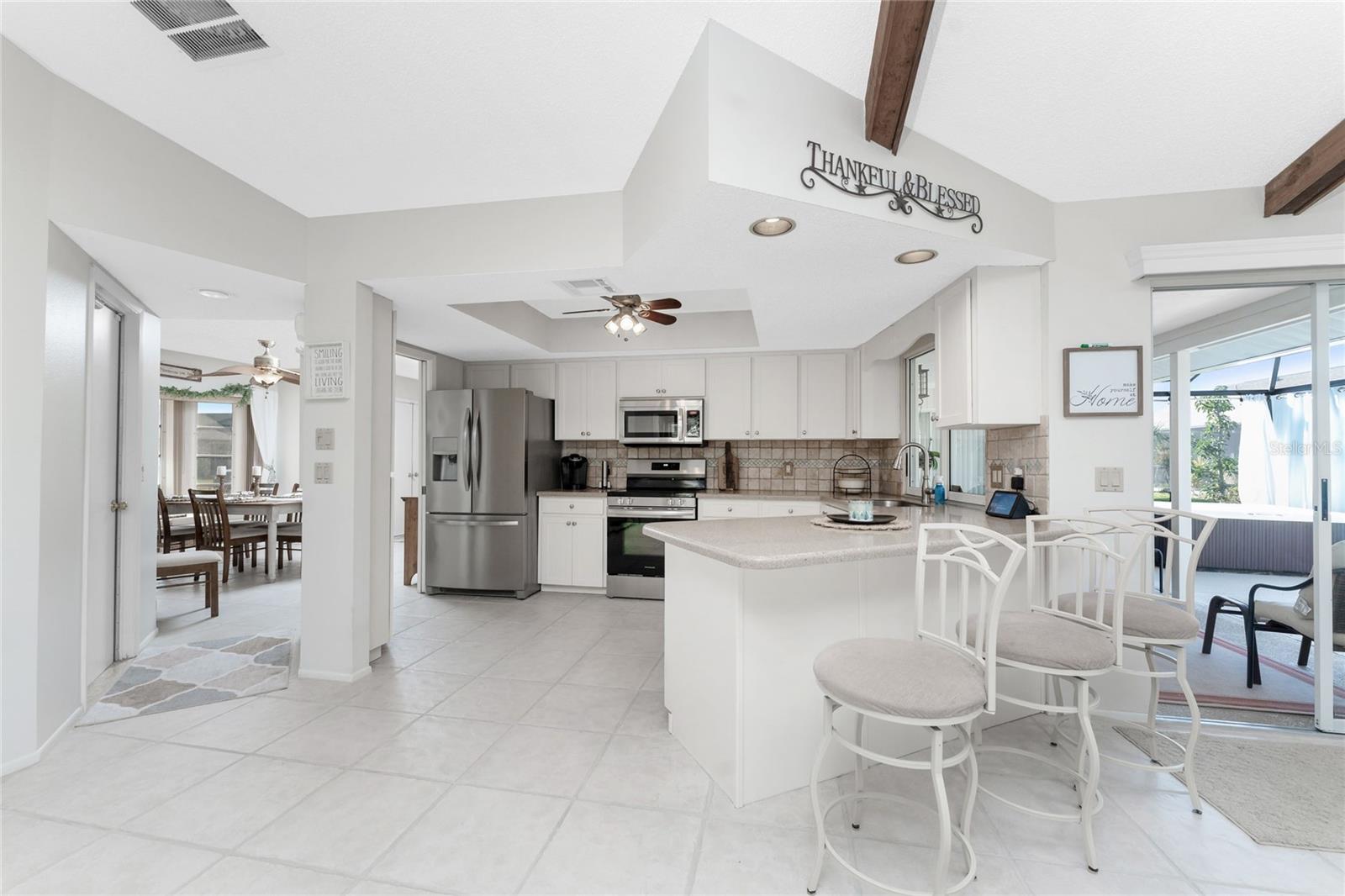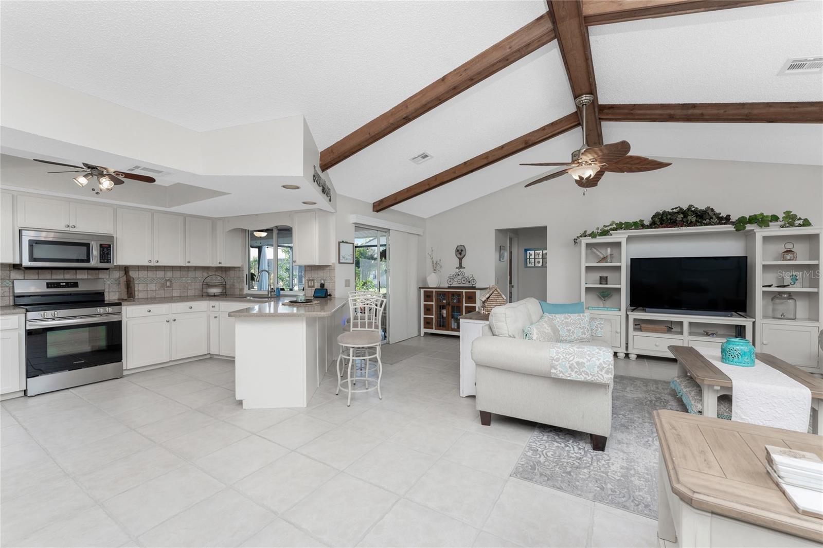 Looking for your “SLICE OF PARADISE”? THEN DON'T BLINK BECAUSE THIS ONE WON'T LAST LONG! This Move-In Ready, OPEN CONCEPT, LIGHT AND BRIGHT FLOOR PLAN IS FOR YOU! Nestled in the coveted, highly desirable community of Gulf View Estates this is the perfect home, NO CDD, LOW HOA, Deed Restricted Community. Enter Gulf View Estates and you'll notice every home is meticulously maintained, there are two Lakes with fountains greeting you upon your tour. This beautiful home boasts a welcoming double-door entrance and a covered front porch. Walking up the walkway you’ll be impressed with the lush landscaping and curb appeal. Step inside and EXPECT TO BE IMPRESSED -- Once Inside, decorative tile flooring adds elegance throughout. The FORMAL DINING ROOM features a BAY WINDOW AND SEAT and is conveniently located near the GOURMET KITCHEN boasting soft-close cabinets, recessed lighting, stainless steel appliances, and a PASS-THROUGH SERVING BAR to the ENORMOUS COVERED AND SCREENED lanai. You can serve delicious meals to your family and guest members right on the kitchen peninsula as there is plenty of space on the countertop while you watch your favorite shows on the TV. That’s right, adjoining to the open Kitchen there is a HUGE, SPACIOUS and open GREAT ROOM boasting CATHEDERAL-BEAMED CEILINGS and a bright, airy layout, perfect for entertaining; ALL THIS and direct access to your 22 x 20 extended, screened and covered lanai featuring a HOT TUB, PAVER PATIO, GRILL STATION AND LUSH LANDSCAPING. YOUR NEW home includes three generous sized bedrooms and two baths both of which have been totally renovated & updated – You will love the updates done to this home; with the PRIMARY SUITE offering a LUXURIOUS EN SUITE BATH with dual vessel sinks, new a EUROPEAN WALK-IN SHOWER, with rainfall shower system and a handheld shower, private water closet and Linen Closet. The second bedroom is generous in size, has lots of natural light and a large built in Linen Closet, and easy, private access to the Lanai. The third bedroom, set off by barn doors, doubles as a versatile space as well -- 3rd bedroom for guests, office/den, or a private family room with direct assess to the lanai as well. Additional highlights include a cozy office (converted from the original laundry room but could easily be converted back!), ample storage, and an PRIVATE OUTDOOR SHOWER, perfect for rinsing off the sand after spending the day at one of several beaches nearby. This is the PERFECT LOCATION, only minutes to several beaches, in addition to Dearborn Street in Englewood with its varied dining venue and bubbling entertainment, Historic downtown Venice is only minutes away and features eclectic boutique shops, exquisite fine dining, weekly Farmers Market, Sharkey’s Restaurants and Pier, Venice Beach and Jetty. Nearby are highly rated hospitals, medical facilities, major highways and the up and coming Wellen Park with The Cool Today Park where the Atlanta Braves hold their spring practice. Visit downtown Wellen Park and enjoy The Lake and trails, concerts, dining and events galore. Continual events and concerts are held at Wellen Park on a consistent basis. This BEAUTY is designed for a full-time relaxed Florida lifestyle or perfect for a "Snowbird". Don't delay -- get your "SLICE OF PARADISE" NOW, call for a private showing.