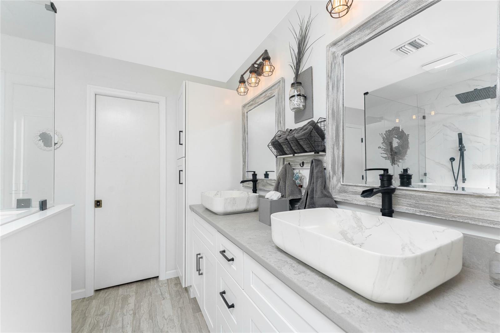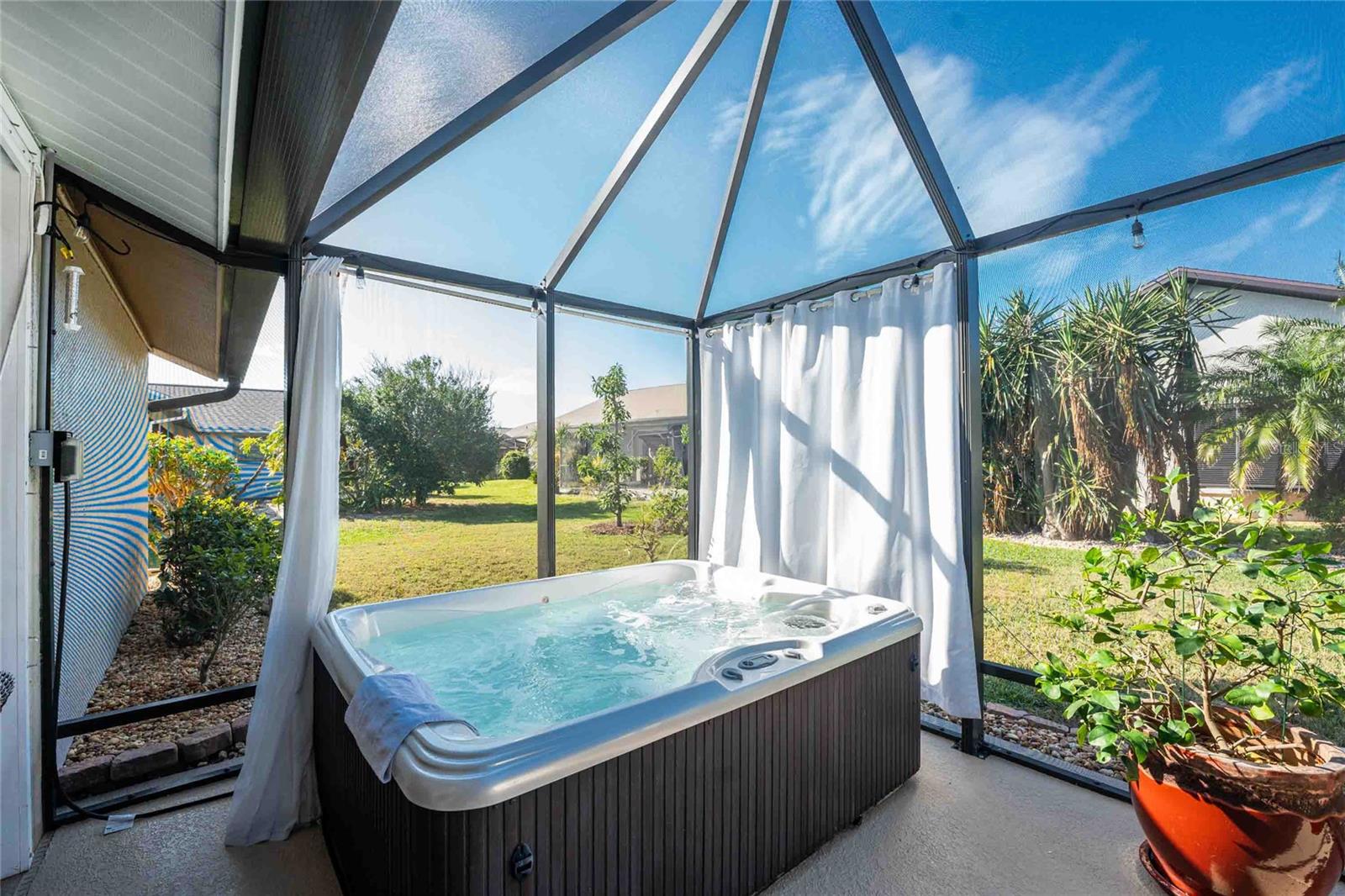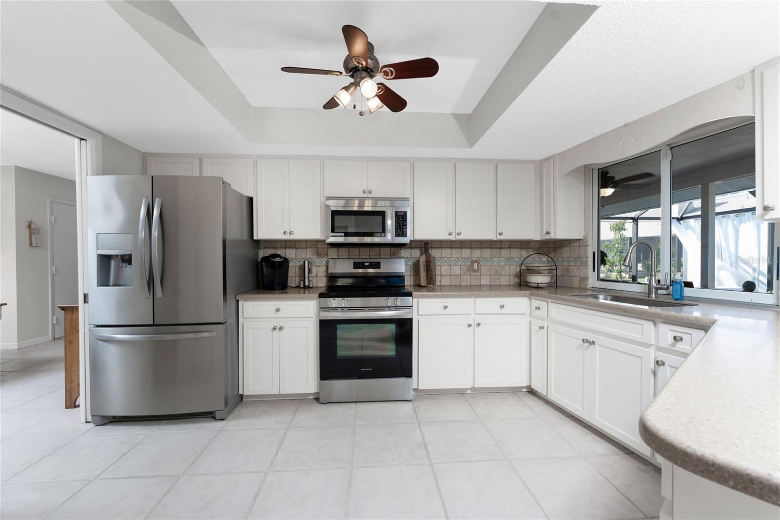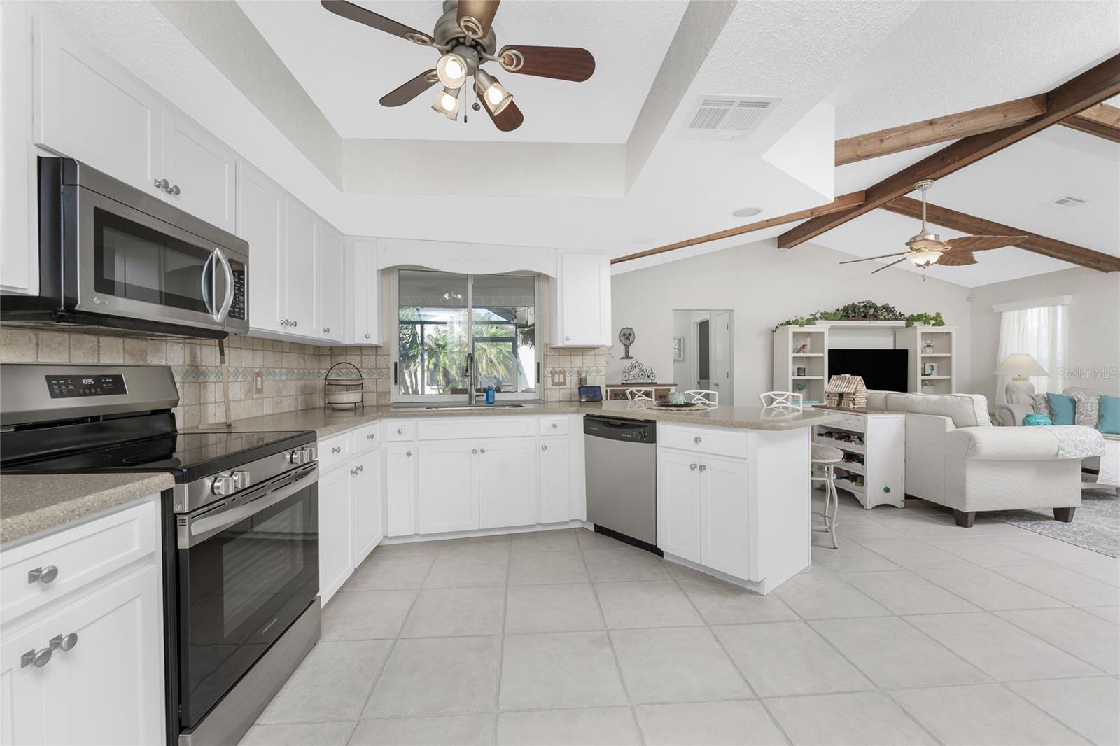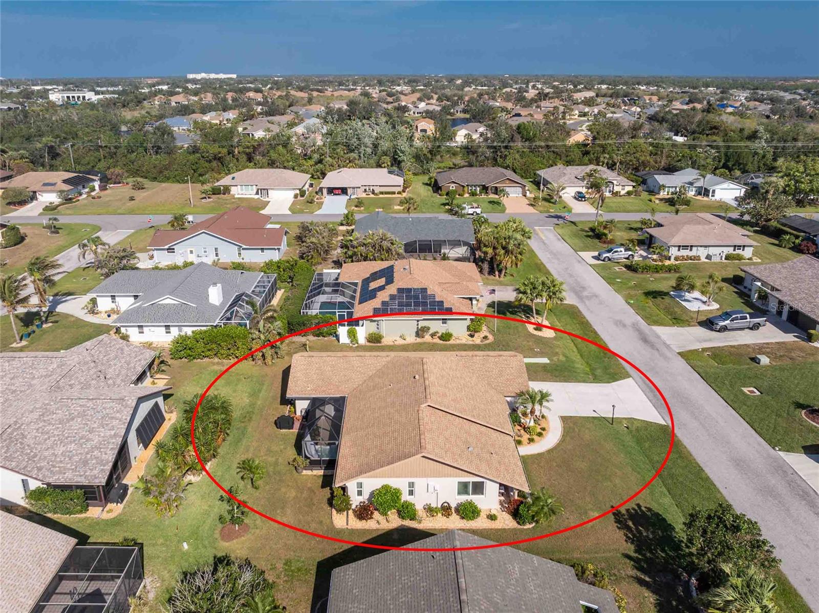 Looking for your “SLICE OF PARADISE”? THEN DON'T BLINK BECAUSE THIS ONE WON'T LAST LONG! This Move-In Ready, OPEN CONCEPT, LIGHT AND BRIGHT FLOOR PLAN IS FOR YOU! Nestled in the coveted, highly desirable community of Gulf View Estates this is the perfect home, NO CDD, LOW HOA, Deed Restricted Community. Enter Gulf View Estates and you'll notice every home is meticulously maintained, there are two Lakes with fountains greeting you upon your tour. This beautiful home boasts a welcoming double-door entrance and a covered front porch. Walking up the walkway you’ll be impressed with the lush landscaping and curb appeal. Step inside and EXPECT TO BE IMPRESSED -- Once Inside, decorative tile flooring adds elegance throughout. The FORMAL DINING ROOM features a BAY WINDOW AND SEAT and is conveniently located near the GOURMET KITCHEN boasting soft-close cabinets, recessed lighting, stainless steel appliances, and a PASS-THROUGH SERVING BAR to the ENORMOUS COVERED AND SCREENED lanai. You can serve delicious meals to your family and guest members right on the kitchen peninsula as there is plenty of space on the countertop while you watch your favorite shows on the TV. That’s right, adjoining to the open Kitchen there is a HUGE, SPACIOUS and open GREAT ROOM boasting CATHEDERAL-BEAMED CEILINGS and a bright, airy layout, perfect for entertaining; ALL THIS and direct access to your 22 x 20 extended, screened and covered lanai featuring a HOT TUB, PAVER PATIO, GRILL STATION AND LUSH LANDSCAPING. YOUR NEW home includes three generous sized bedrooms and two baths both of which have been totally renovated & updated – You will love the updates done to this home; with the PRIMARY SUITE offering a LUXURIOUS EN SUITE BATH with dual vessel sinks, new a EUROPEAN WALK-IN SHOWER, with rainfall shower system and a handheld shower, private water closet and Linen Closet. The second bedroom is generous in size, has lots of natural light and a large built in Linen Closet, and easy, private access to the Lanai. The third bedroom, set off by barn doors, doubles as a versatile space as well -- 3rd bedroom for guests, office/den, or a private family room with direct assess to the lanai as well. Additional highlights include a cozy office (converted from the original laundry room but could easily be converted back!), ample storage, and an PRIVATE OUTDOOR SHOWER, perfect for rinsing off the sand after spending the day at one of several beaches nearby. This is the PERFECT LOCATION, only minutes to several beaches, in addition to Dearborn Street in Englewood with its varied dining venue and bubbling entertainment, Historic downtown Venice is only minutes away and features eclectic boutique shops, exquisite fine dining, weekly Farmers Market, Sharkey’s Restaurants and Pier, Venice Beach and Jetty. Nearby are highly rated hospitals, medical facilities, major highways and the up and coming Wellen Park with The Cool Today Park where the Atlanta Braves hold their spring practice. Visit downtown Wellen Park and enjoy The Lake and trails, concerts, dining and events galore. Continual events and concerts are held at Wellen Park on a consistent basis. This BEAUTY is designed for a full-time relaxed Florida lifestyle or perfect for a "Snowbird". Don't delay -- get your "SLICE OF PARADISE" NOW, call for a private showing.
