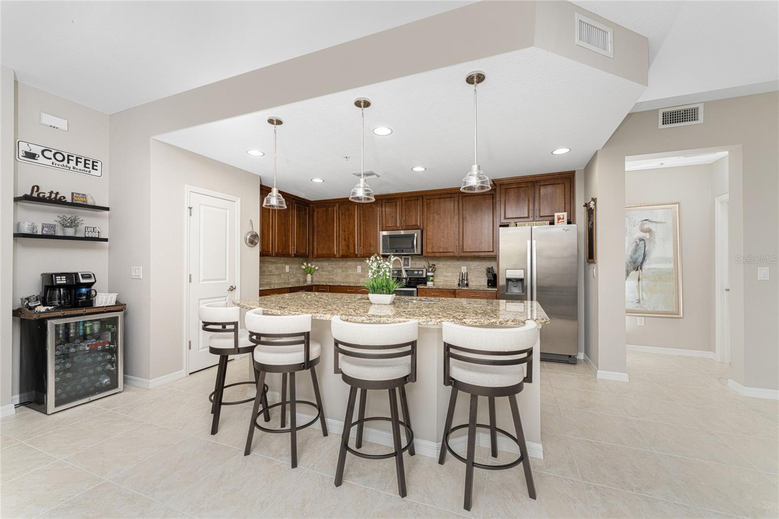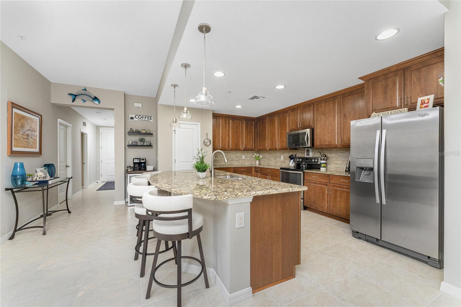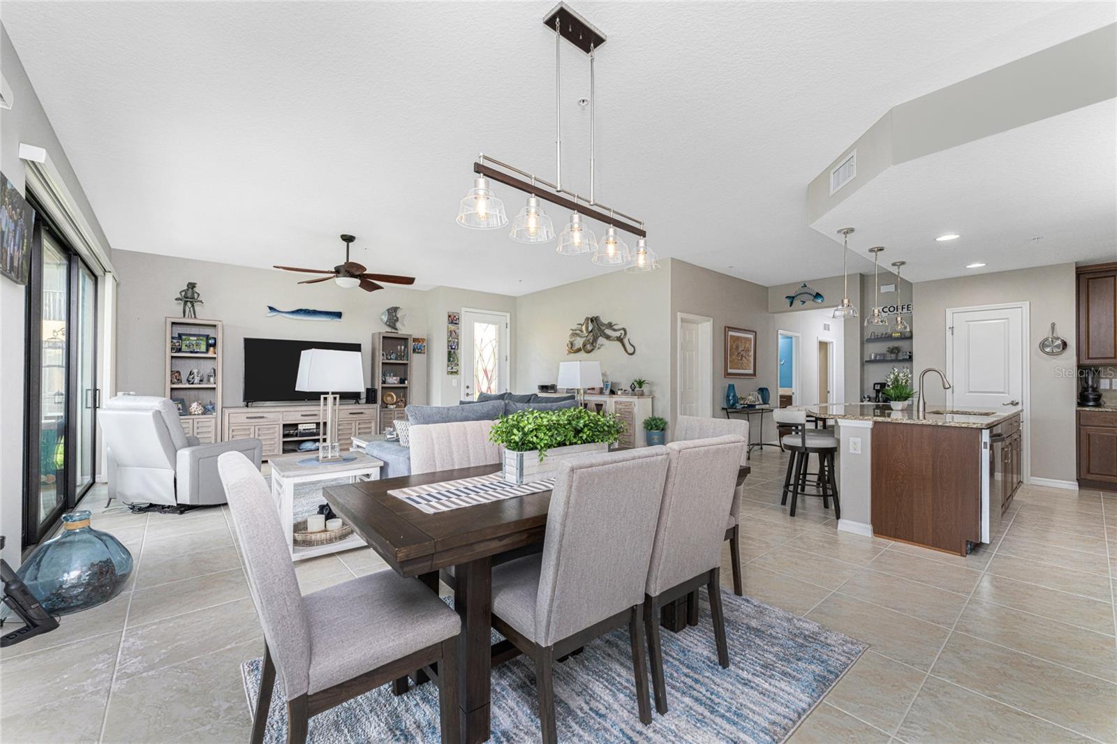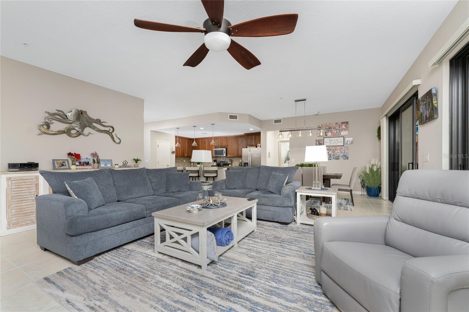 Welcome to Paradise in Sarasota National! This meticulously designed residence in Venice offers a bundled golf membership for two at the community’s renowned 18-hole championship golf course, along with a truly resort-style lifestyle. Indulge in on-site restaurants, a tiki bar, a coffee room, a state-of-the-art fitness center, and tennis, pickleball, bocce ball, plus a dog park—all just steps from your front door. Inside, over 1,800 square feet of living space awaits, showcasing stylish tile flooring throughout (no carpet!), hurricane impact doors and windows, and a recently updated impact decorative glass front door with a convenient retractable screen. Enjoy plantation shutters, ceiling fans, fresh contemporary paint, and even a 5x7 flex room perfect for extra storage or a cozy reading nook. A spacious laundry room with plenty of cabinet space completes the home’s functional design. At the heart of this residence lies the chef-inspired kitchen, boasting a large granite island, 48" wood soft-close cabinets, and pull-out racks for effortless organization. Step outside to the expansive lanai and soak in tranquil lake views—a serene backdrop for morning coffee or evening cocktails. Designed for peace of mind, this home incurred no hurricane damage and sits in the secure X500 flood zone, meaning no flood insurance is required. Ideally located near Wellen Park’s restaurants, shopping, top-rated hospitals, and pristine beaches, this home represents more than a place to live—it’s an elevated lifestyle statement. Don’t miss your chance to experience the best of Sarasota National!