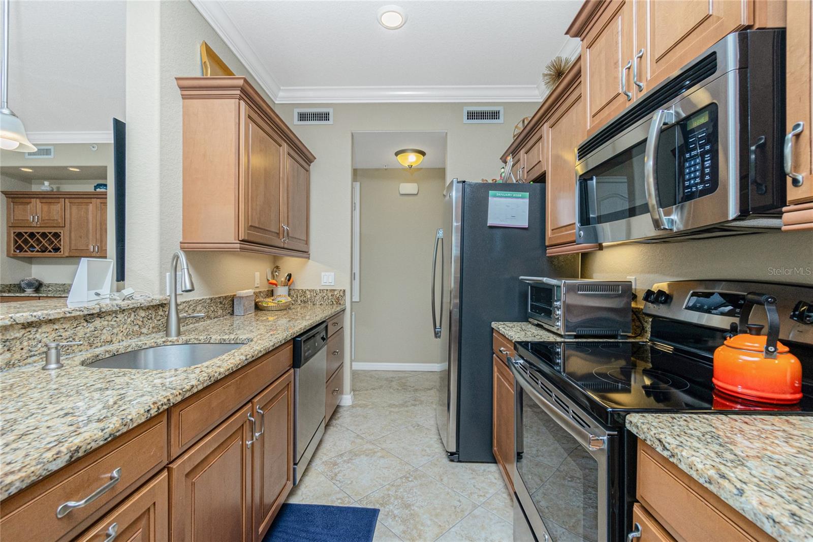 Prime Location, Modern Comfort, and Florida Charm! Just 2 miles from the vibrant dining and shopping of downtown Venice and only 3 miles to the beach, this move-in-ready 2Bed/2Bath (+office/den) condo offers the perfect blend of convenience and luxury. This condo is packed with upgrades and thoughtful details: diagonal tile flooring throughout, granite countertops, raised-panel wood cabinets with soft-close drawers, under-cabinet and recessed lighting, stainless steel appliances, crown molding, trey ceiling in the foyer, and charming architectural touches like coved archways. Entertaining is a delight with the open layout, abundant natural light, high ceilings, a dry bar with a wine rack, and a screened lanai overlooking the pond. The spacious Primary suite includes two closets and en-suite bathroom with dual sinks, and a tiled walk-in shower with updated glass doors. Additional features include a versatile den/office, a laundry room, interior storage room with built-in cabinets, a detached one-car garage (12’x19’), and a shared exterior storage room (8’x8’) for all your extras. Safety and peace of mind are assured with impact-resistant glass windows and sliding doors, along with the security of a second-floor location. Nestled at the quiet part of the condo community, this meticulously maintained condo boasts serene water and fountain views. Amenities for San Lino residents include a clubhouse, fitness center, heated pool, and sidewalks that surround the community. Don’t miss your chance to live the ultimate Florida lifestyle!