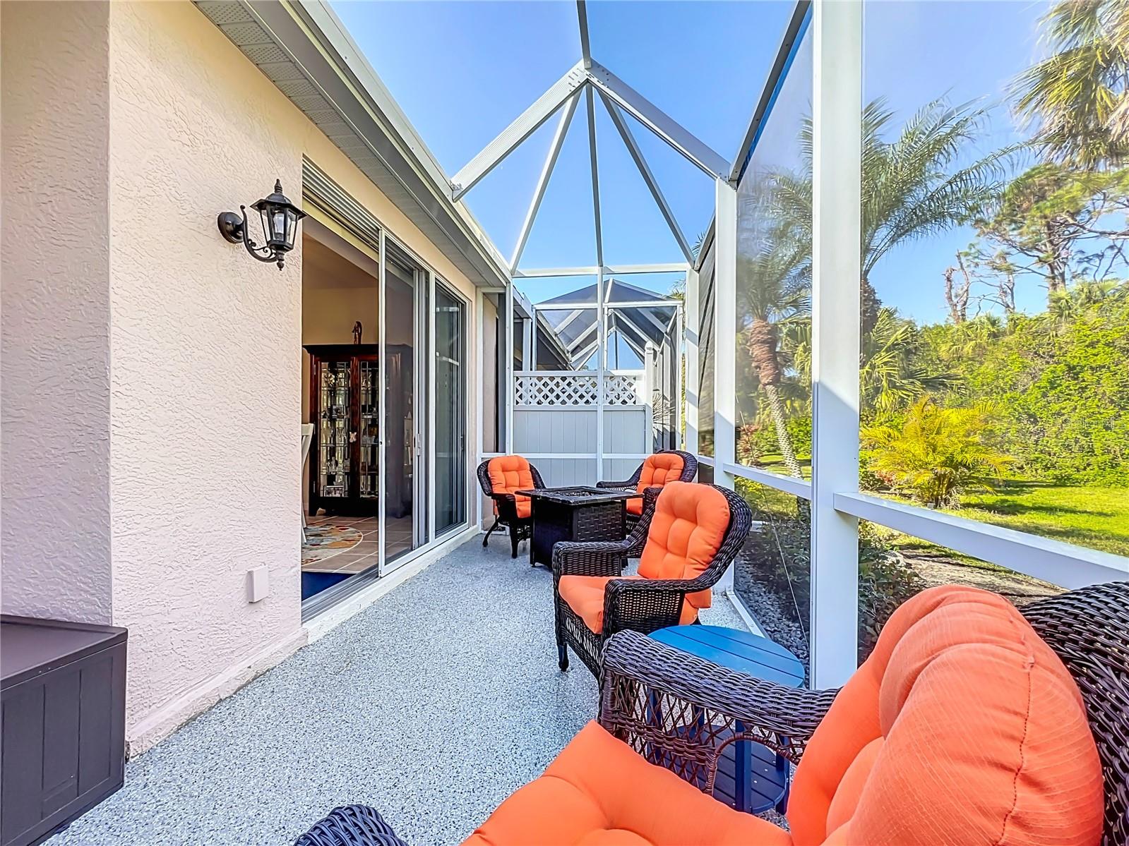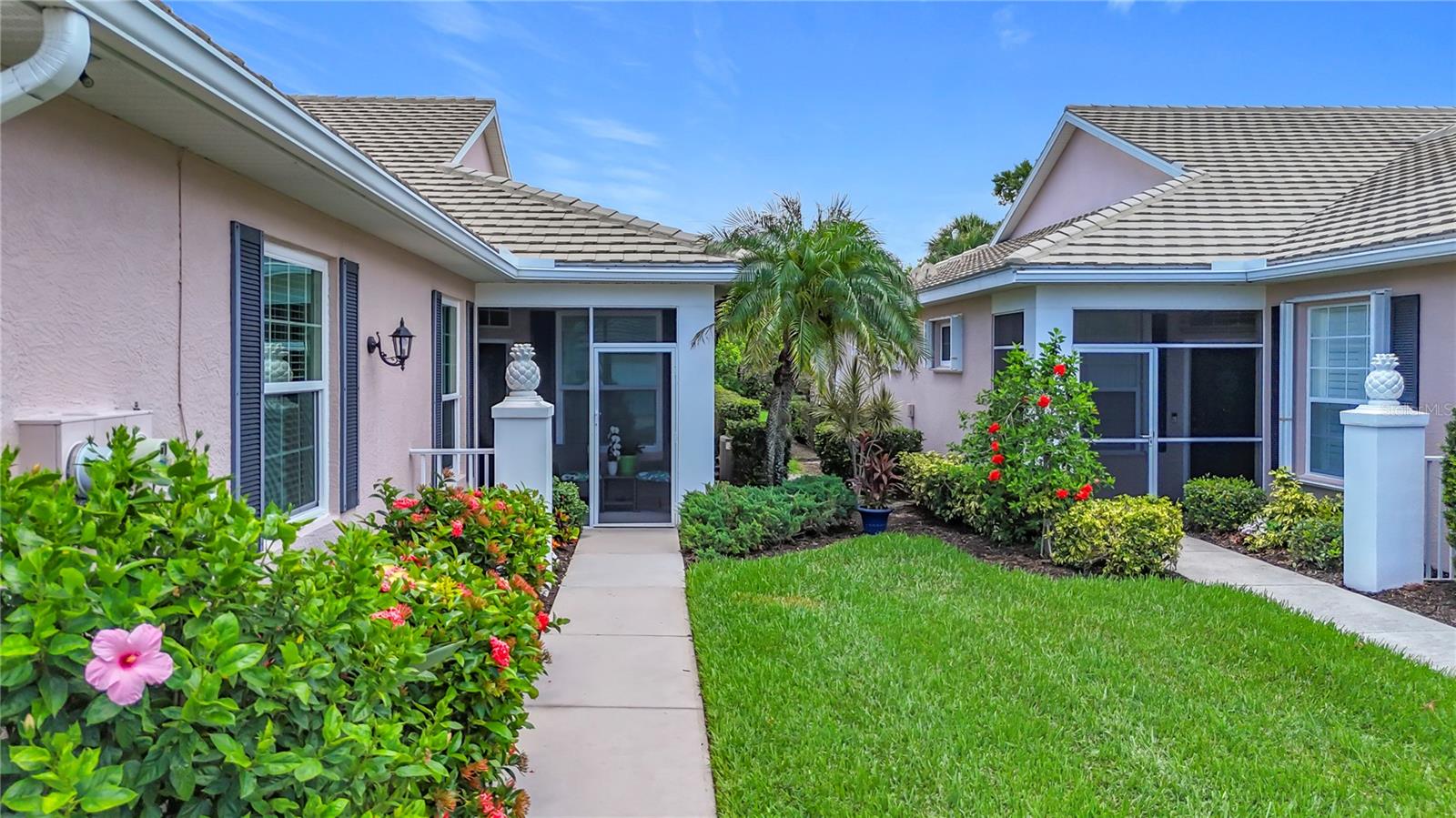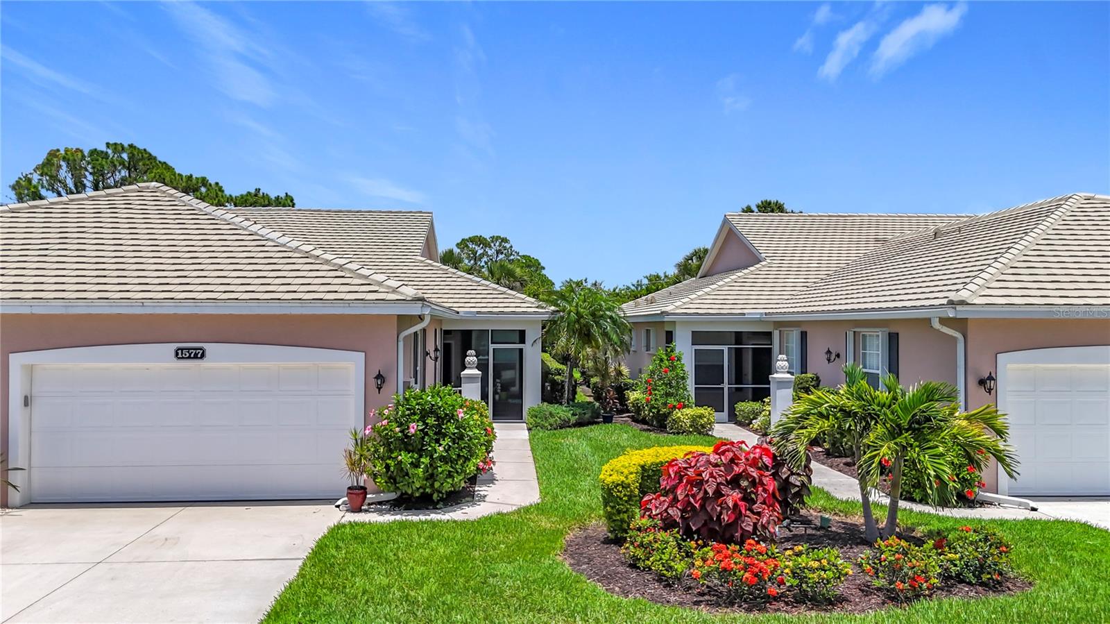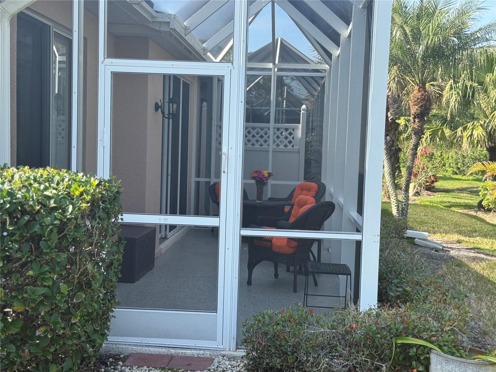 Immaculately Maintained Villa in the acclaimed Plantation Golf & Country Club. REDUCED $40000!! FOR QUICK SALE - BRING OFFERS, SELLER IS HIGHLY MOTIVATED!! Back on market, not due to inspection. This home is immaculate. Almost Turnkey! Many furnishings can stay. Annual rental available for $2500 a month. This meticulously cared-for paired villa offers a maintenance-free lifestyle in one of the most sought-after communities in Venice. The HOA covers all exterior maintenance, including roof care, painting, and lawn care, ensuring a worry-free living experience. The home itself boasts a serene, private, and lush tropical backyard, complemented by a spacious lanai—perfect for relaxing or entertaining. With over 1,700 square feet of living space, the home offers plenty of room to spread out and enjoy the Florida lifestyle. The floor plan includes two generously sized bedrooms plus a versatile den/office space, ideal for work or leisure. Very easy to convert into a 3 bedroom with the addition of a closet. The attached two-car garage with epoxy-finished floors adds extra convenience and durability. Every detail has been thoughtfully updated, including a newer refrigerator, microwave, deep stainless steel sink, and contemporary light fixtures and ceiling fans. The home is freshly painted, with tile and luxury vinyl flooring throughout, adding both style and ease of maintenance. The front three windows are impact-resistant for added peace of mind. The spacious primary bedroom features dual walk-in closets and an en-suite bath with a walk-in shower and dual sinks, creating a spa-like retreat. There are two community pools in the neighborhood for you to enjoy. Optional club membership is available to the renowned Plantation Golf & Country Club, where residents can enjoy world-class amenities including two 18-hole championship golf courses, 13 Har-Tru tennis courts, six pickleball courts, Bocce ball, a fitness center, and a Jr. Olympic pool. Exceptional dining options and a variety of social programs are available. Just minutes from Venice’s stunning beaches, historic downtown, charming cafés, boutique shopping, and renowned restaurants, this villa offers the perfect blend of tranquility and convenience.