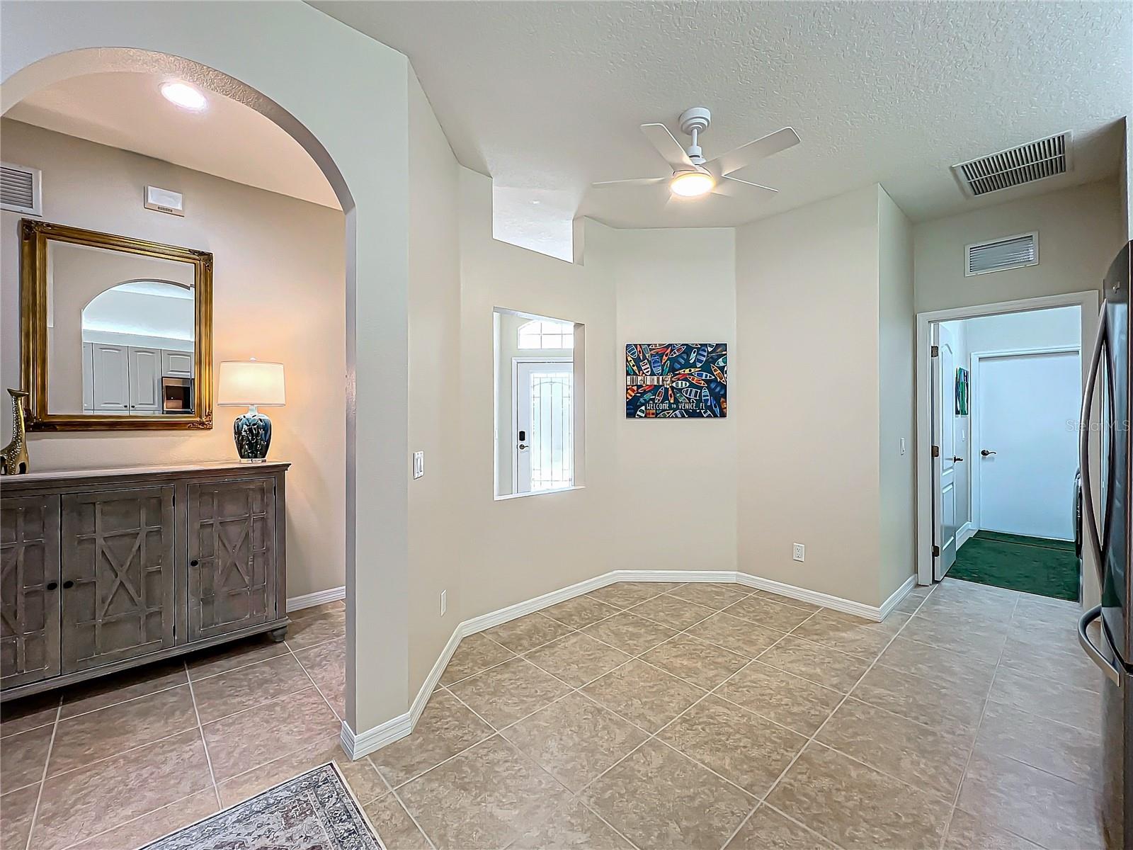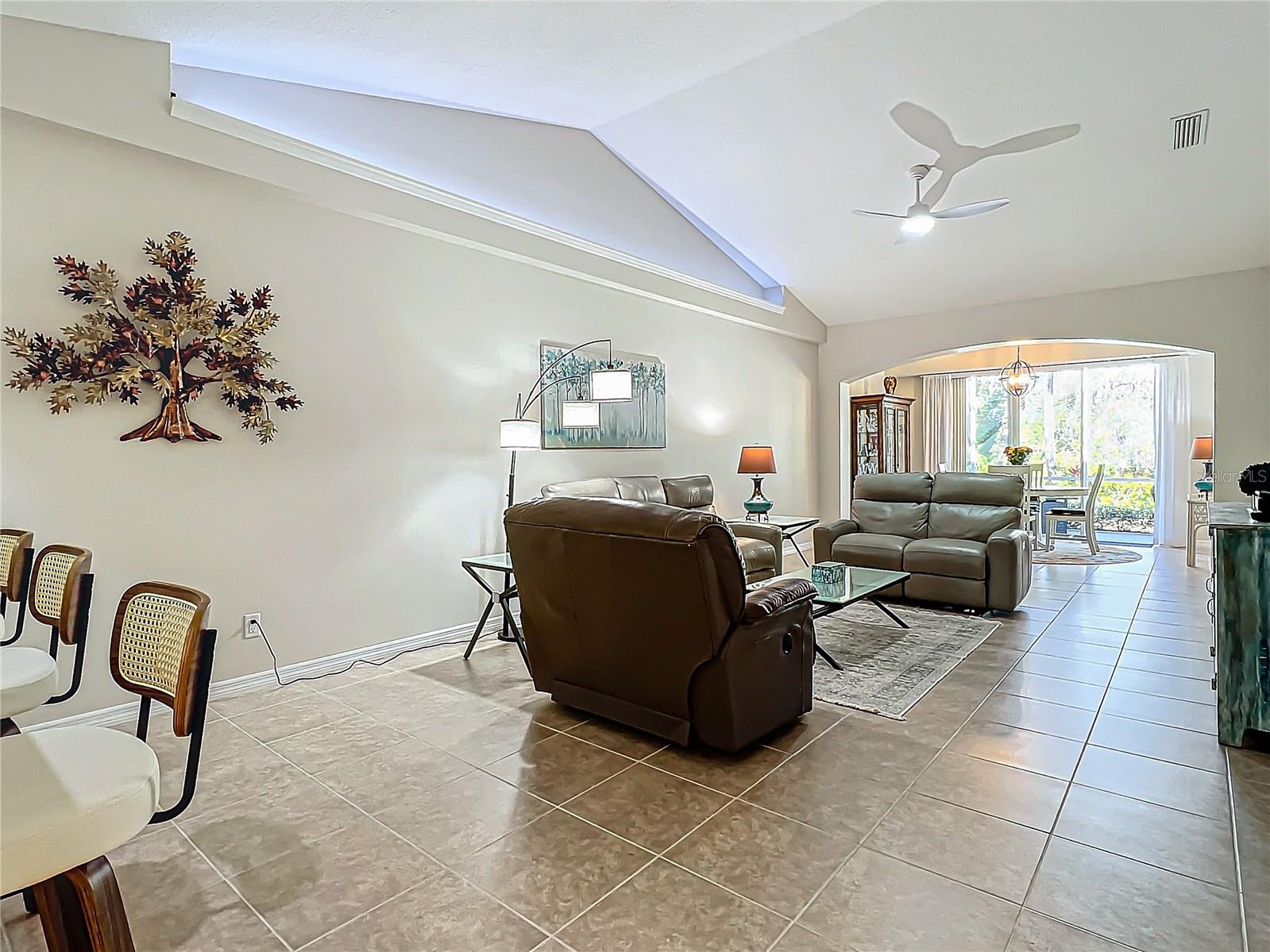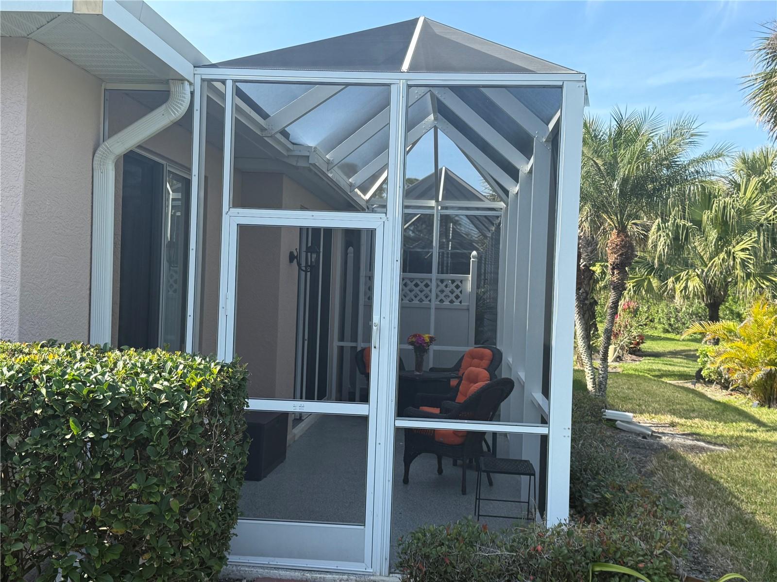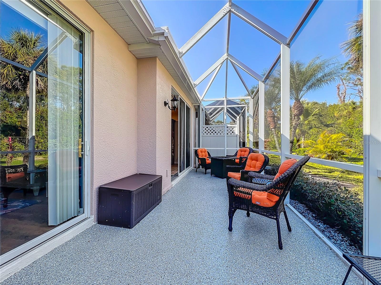 Immaculately Maintained Villa in the acclaimed Plantation Golf & Country Club. REDUCED $40000!! FOR QUICK SALE - BRING OFFERS, SELLER IS HIGHLY MOTIVATED!! Back on market, not due to inspection. This home is immaculate. Almost Turnkey! Many furnishings can stay. Annual rental available for $2500 a month. This meticulously cared-for paired villa offers a maintenance-free lifestyle in one of the most sought-after communities in Venice. The HOA covers all exterior maintenance, including roof care, painting, and lawn care, ensuring a worry-free living experience. The home itself boasts a serene, private, and lush tropical backyard, complemented by a spacious lanai—perfect for relaxing or entertaining. With over 1,700 square feet of living space, the home offers plenty of room to spread out and enjoy the Florida lifestyle. The floor plan includes two generously sized bedrooms plus a versatile den/office space, ideal for work or leisure. Very easy to convert into a 3 bedroom with the addition of a closet. The attached two-car garage with epoxy-finished floors adds extra convenience and durability. Every detail has been thoughtfully updated, including a newer refrigerator, microwave, deep stainless steel sink, and contemporary light fixtures and ceiling fans. The home is freshly painted, with tile and luxury vinyl flooring throughout, adding both style and ease of maintenance. The front three windows are impact-resistant for added peace of mind. The spacious primary bedroom features dual walk-in closets and an en-suite bath with a walk-in shower and dual sinks, creating a spa-like retreat. There are two community pools in the neighborhood for you to enjoy. Optional club membership is available to the renowned Plantation Golf & Country Club, where residents can enjoy world-class amenities including two 18-hole championship golf courses, 13 Har-Tru tennis courts, six pickleball courts, Bocce ball, a fitness center, and a Jr. Olympic pool. Exceptional dining options and a variety of social programs are available. Just minutes from Venice’s stunning beaches, historic downtown, charming cafés, boutique shopping, and renowned restaurants, this villa offers the perfect blend of tranquility and convenience.