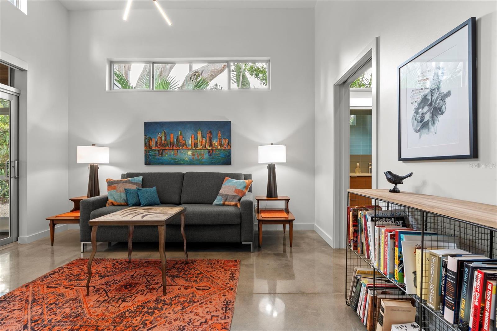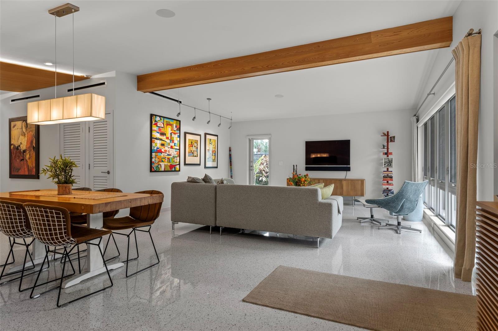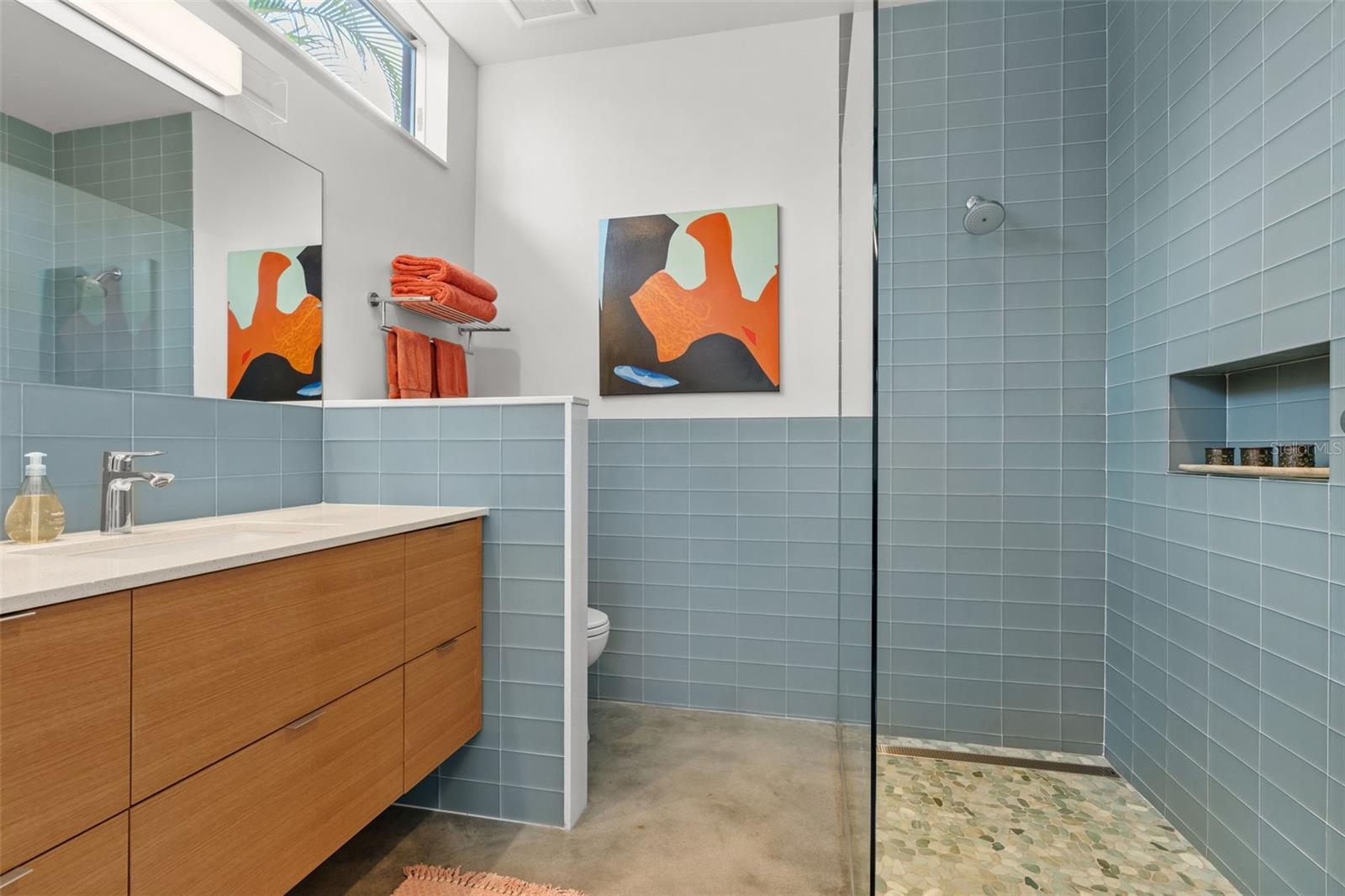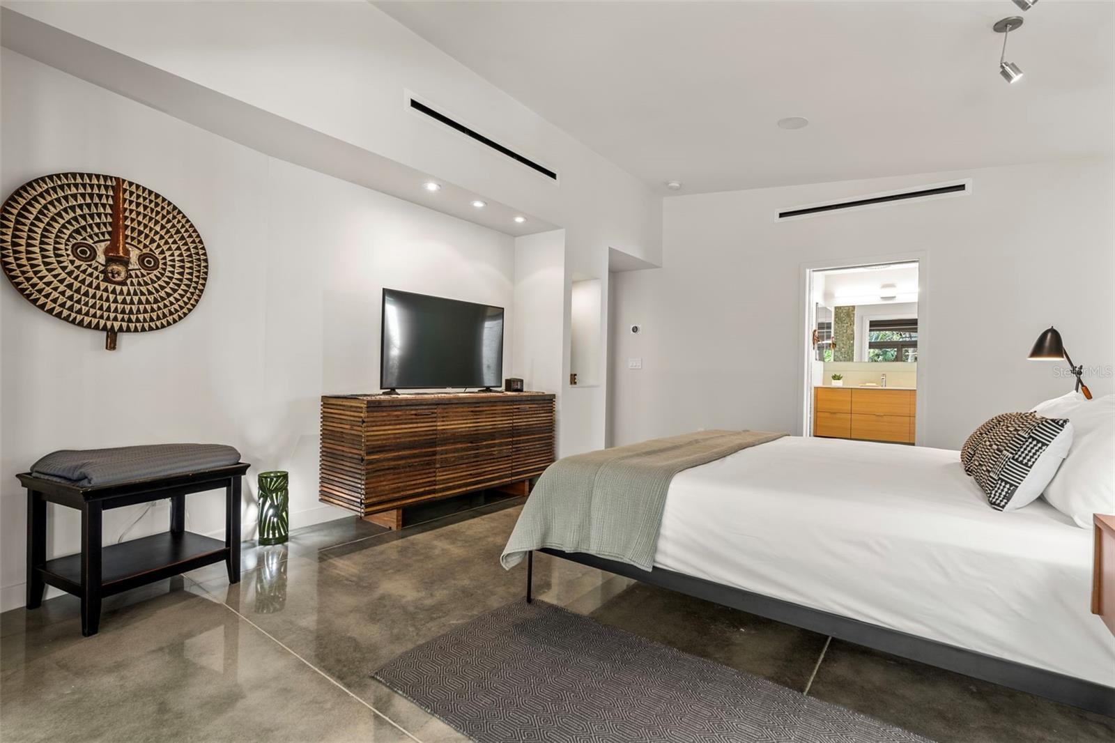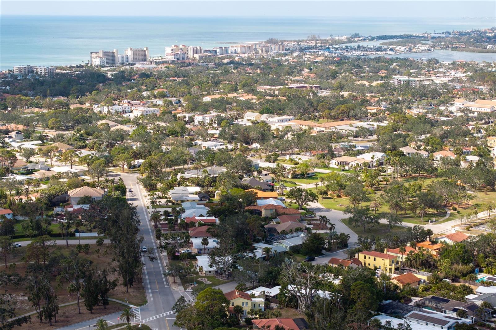 An inspirational property that epitomizes sophistication with a tranquil yet contemporary vibe. Expect to be wowed by this Venice Island gem. Originally a small 1959 structure, the property was dramatically expanded and completely renovated in 2014. This 2,285 square foot, 3 bedroom, 3.5 bath home hits a chord with those who understand what Florida mid-century homes can still aspire to be. The meticulously designed renovation, transformed a mid-century tract house into a beautiful Sarasota School of Architecture inspired home. Numerous honors for the renovation include winner of the 2016 American Institute of Architects Spirit of Sarasota Award to local architect Jon Barrick, SRQ Magazine Platinum Renovation Award and a feature article in Atomic Ranch Magazine. Located in the heart of Venezia Park Historic District, the home flows seamlessly, with windows & doors providing lush garden views from every room while maintaining privacy. There's a spacious living room, dining area, a timeless Florida Room, office, and a large open kitchen that includes rift cut white oak custom cabinets and floating ceiling, accentuated by the white quartz island and terrazzo floors. Adjacent to the art gallery-like hallway with clerestory windows and vaulted ceilings, are the three ensuite bedrooms with built-in cabinetry. The primary suite boasts a walk-in closet, soaker tub and a private outdoor shower. Two of the bedrooms have sliders out to the dramatic 700 square foot lanai with a soaring cypress tongue & groove ceiling. A brilliantly designed exterior by landscape architect Dane Spencer, includes a dramatic yet modest entry courtyard, stone paths that meander around stunning lush foliage that connects with secluded side patios. The pristine landscaping includes a bounty of tropical species including ferns, palms, crapes, oak and Cuban laurel trees. The garage is 1.5 car size, with workshop and built-in cabinets. The home is equipped with a Nuvo sound system, ADT alarm, art lighting, Rainbird sprinkler system, NEST temperature controls, Hunter Douglas window treatments, and an Ecowater filtration system in the kitchen. This home is being sold furnished with interesting contemporary and vintage pieces, and includes some art and personal items. An inventory list is available for review. This home is not in a flood zone - 16.75 elevation. Situated in Venice Island's most walkable neighborhood, everything one would desire, is within one mile of the home. Located between Venezia Park across the street and Blalock Park a half block north, the Cultural, Art & Library campus is around the corner and it is four blocks to downtown Venice where dining, entertainment, shopping, pickleball, and the weekly farmers market await you. You will find daily yoga, shark tooth hunting and the Sunday Drum circle less than a mile away at Venice Public Beach. Venice boasts excellent schools and the home is conveniently located near numerous medical facilities and the new Sarasota Memorial Hospital. Also, on Island is The Venice Municipal Airport, Freedom Boat and Venice Yacht Clubs, The Venice Golf Course and driving range (15 additional courses w/in 10 miles) and access to the 18-mile Legacy bike trail. This is the house you've been practicing for .
