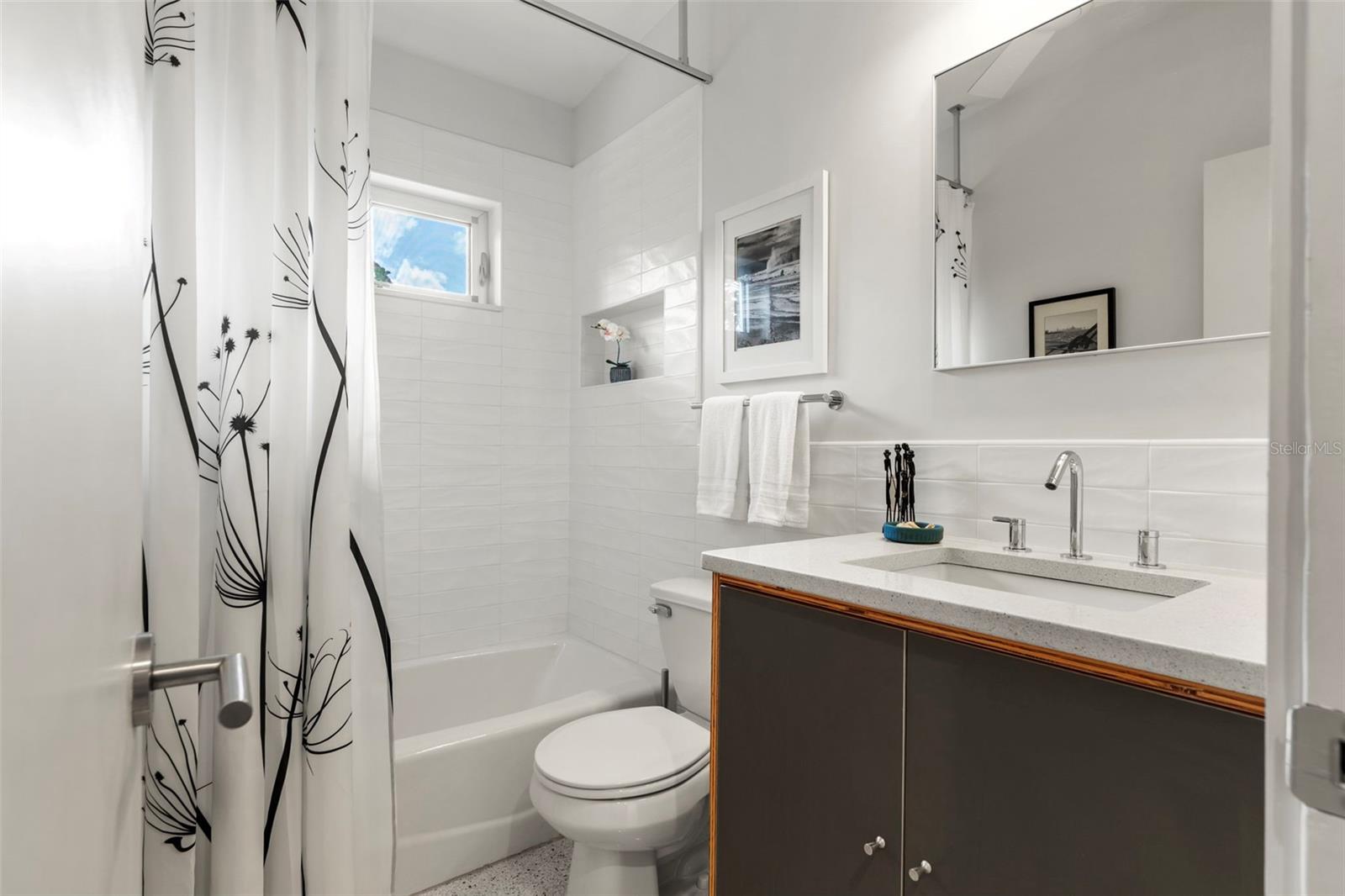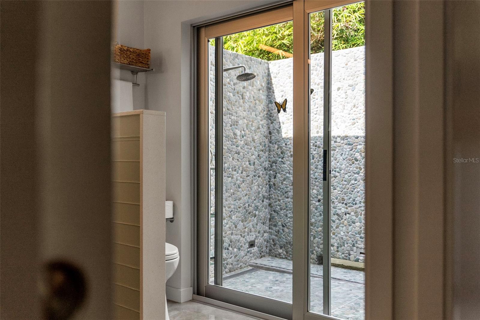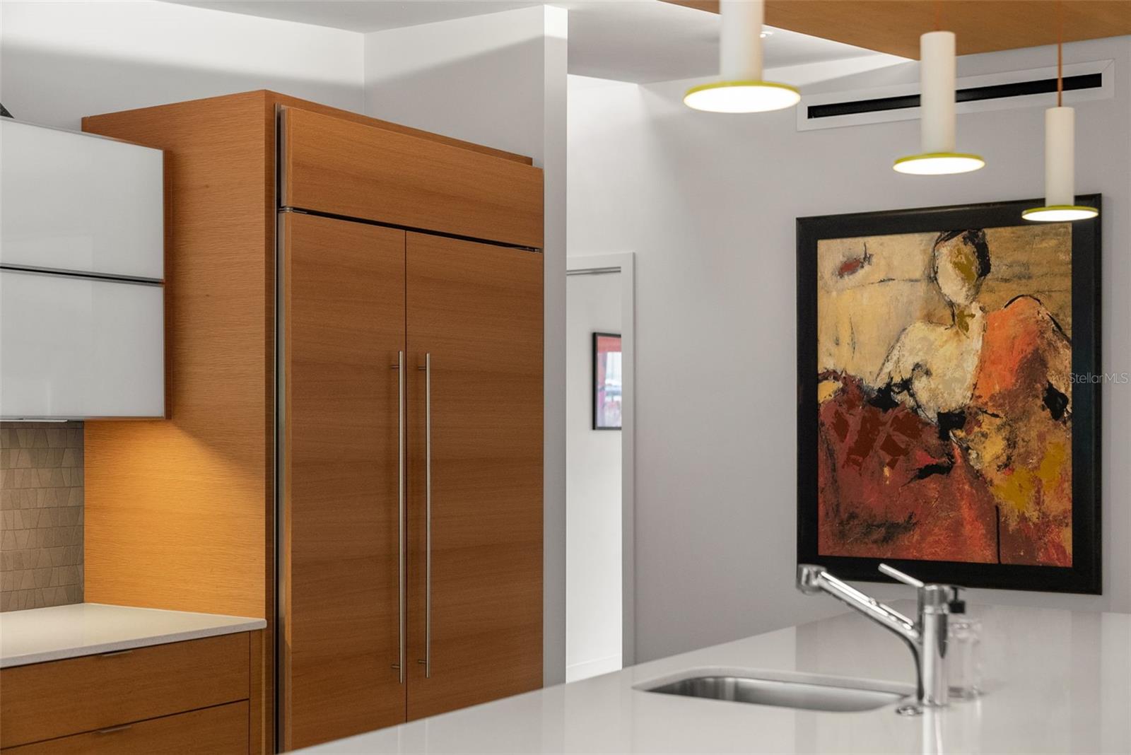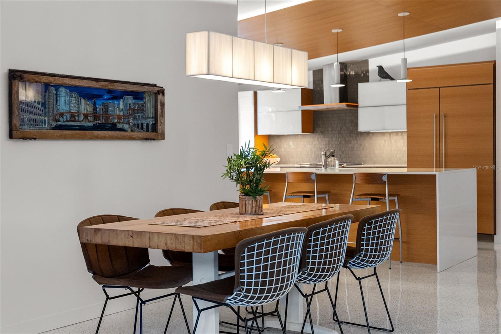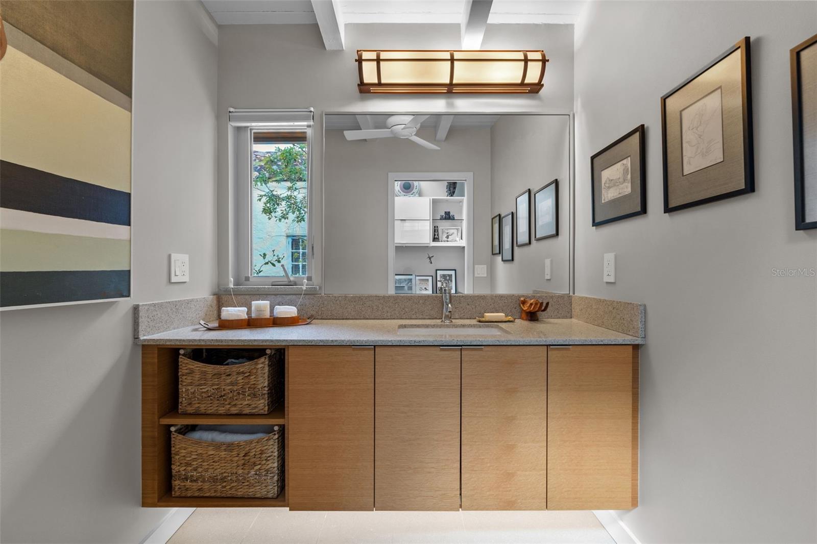 An inspirational property that epitomizes sophistication with a tranquil yet contemporary vibe. Expect to be wowed by this Venice Island gem. Originally a small 1959 structure, the property was dramatically expanded and completely renovated in 2014. This 2,285 square foot, 3 bedroom, 3.5 bath home hits a chord with those who understand what Florida mid-century homes can still aspire to be. The meticulously designed renovation, transformed a mid-century tract house into a beautiful Sarasota School of Architecture inspired home. Numerous honors for the renovation include winner of the 2016 American Institute of Architects Spirit of Sarasota Award to local architect Jon Barrick, SRQ Magazine Platinum Renovation Award and a feature article in Atomic Ranch Magazine. Located in the heart of Venezia Park Historic District, the home flows seamlessly, with windows & doors providing lush garden views from every room while maintaining privacy. There's a spacious living room, dining area, a timeless Florida Room, office, and a large open kitchen that includes rift cut white oak custom cabinets and floating ceiling, accentuated by the white quartz island and terrazzo floors. Adjacent to the art gallery-like hallway with clerestory windows and vaulted ceilings, are the three ensuite bedrooms with built-in cabinetry. The primary suite boasts a walk-in closet, soaker tub and a private outdoor shower. Two of the bedrooms have sliders out to the dramatic 700 square foot lanai with a soaring cypress tongue & groove ceiling. A brilliantly designed exterior by landscape architect Dane Spencer, includes a dramatic yet modest entry courtyard, stone paths that meander around stunning lush foliage that connects with secluded side patios. The pristine landscaping includes a bounty of tropical species including ferns, palms, crapes, oak and Cuban laurel trees. The garage is 1.5 car size, with workshop and built-in cabinets. The home is equipped with a Nuvo sound system, ADT alarm, art lighting, Rainbird sprinkler system, NEST temperature controls, Hunter Douglas window treatments, and an Ecowater filtration system in the kitchen. This home is being sold furnished with interesting contemporary and vintage pieces, and includes some art and personal items. An inventory list is available for review. This home is not in a flood zone - 16.75 elevation. Situated in Venice Island's most walkable neighborhood, everything one would desire, is within one mile of the home. Located between Venezia Park across the street and Blalock Park a half block north, the Cultural, Art & Library campus is around the corner and it is four blocks to downtown Venice where dining, entertainment, shopping, pickleball, and the weekly farmers market await you. You will find daily yoga, shark tooth hunting and the Sunday Drum circle less than a mile away at Venice Public Beach. Venice boasts excellent schools and the home is conveniently located near numerous medical facilities and the new Sarasota Memorial Hospital. Also, on Island is The Venice Municipal Airport, Freedom Boat and Venice Yacht Clubs, The Venice Golf Course and driving range (15 additional courses w/in 10 miles) and access to the 18-mile Legacy bike trail. This is the house you've been practicing for .