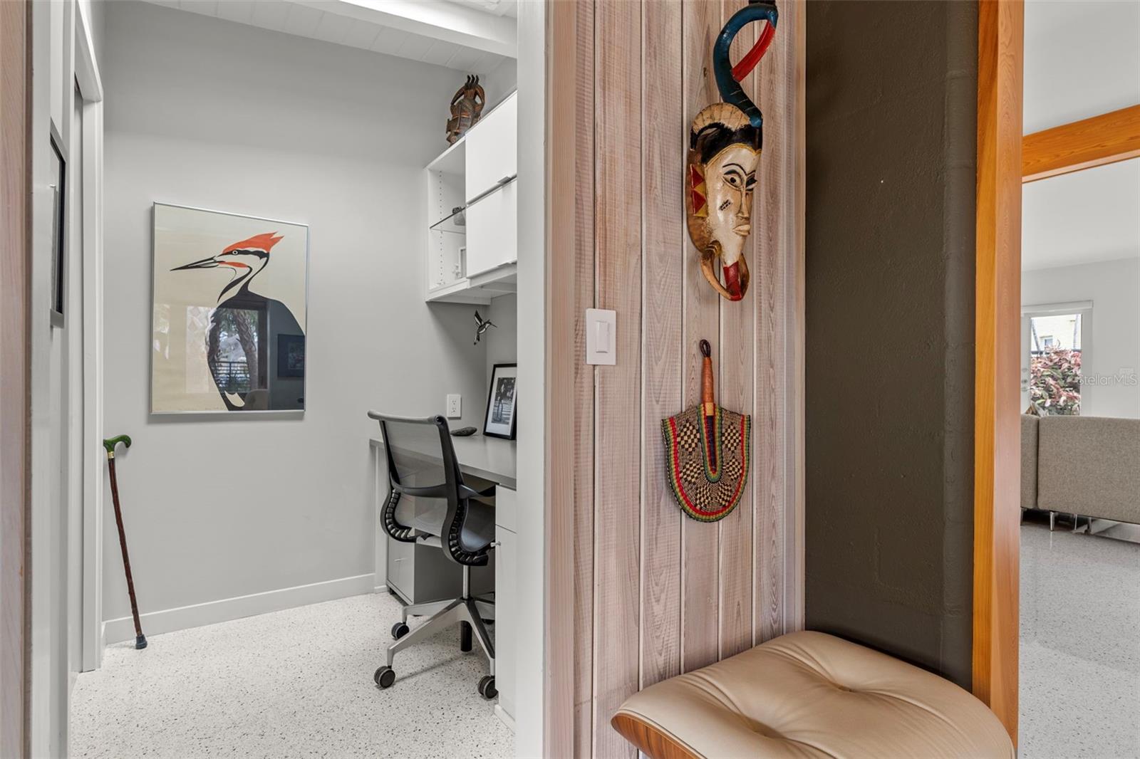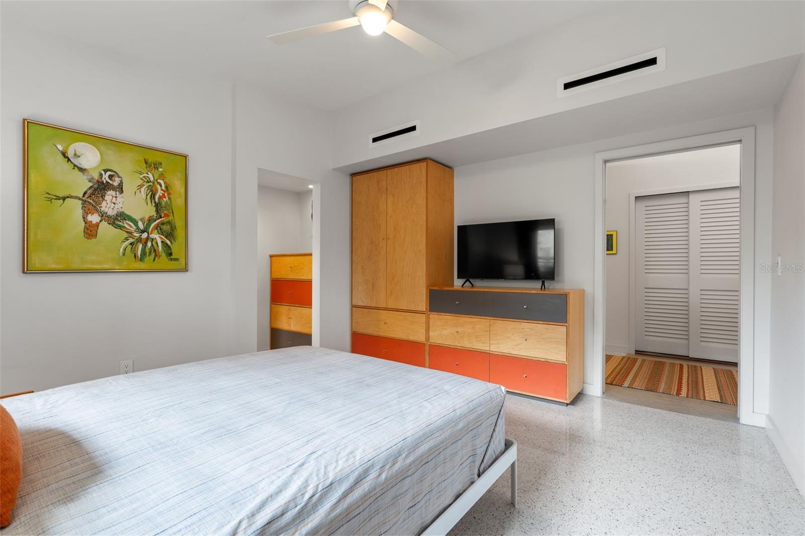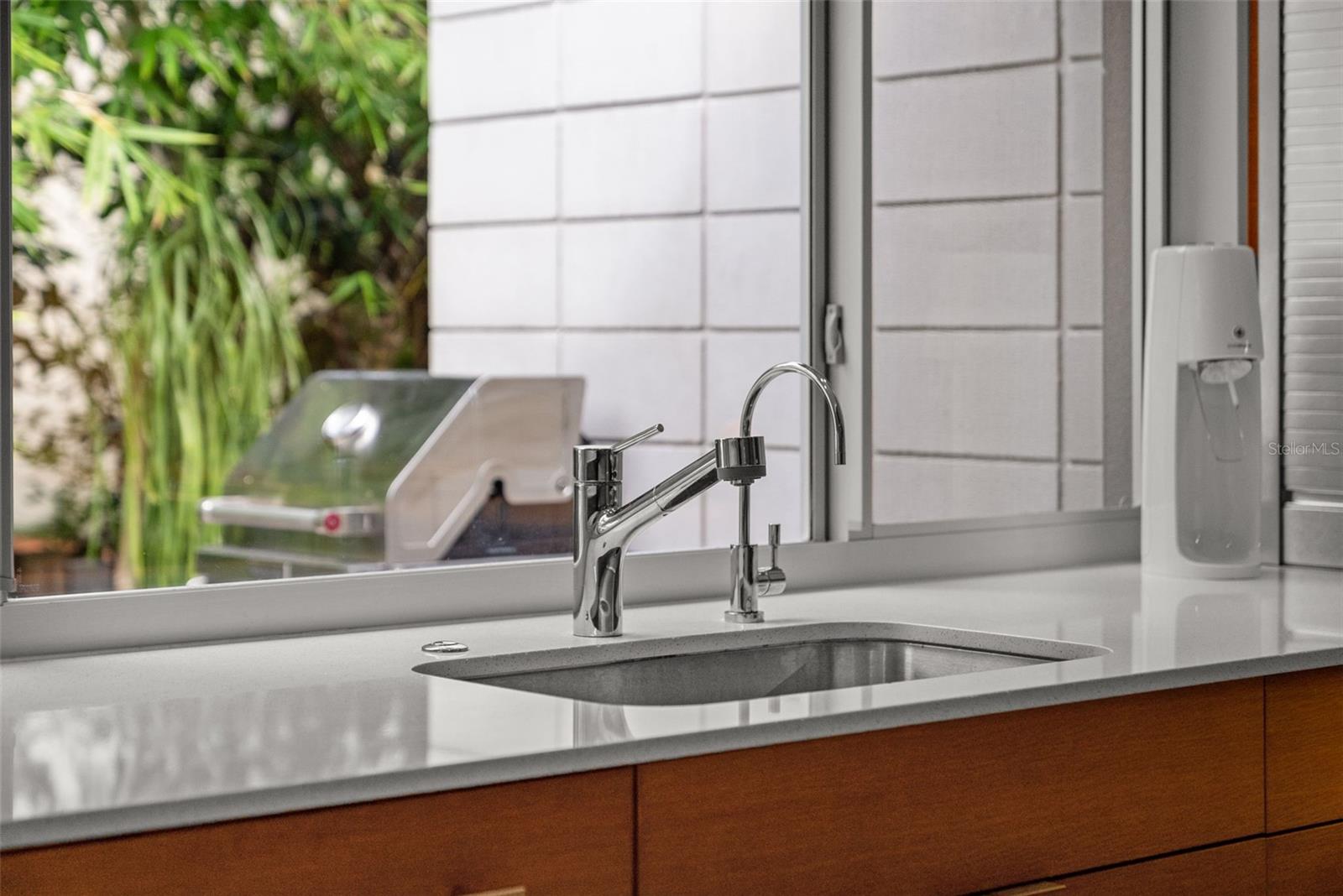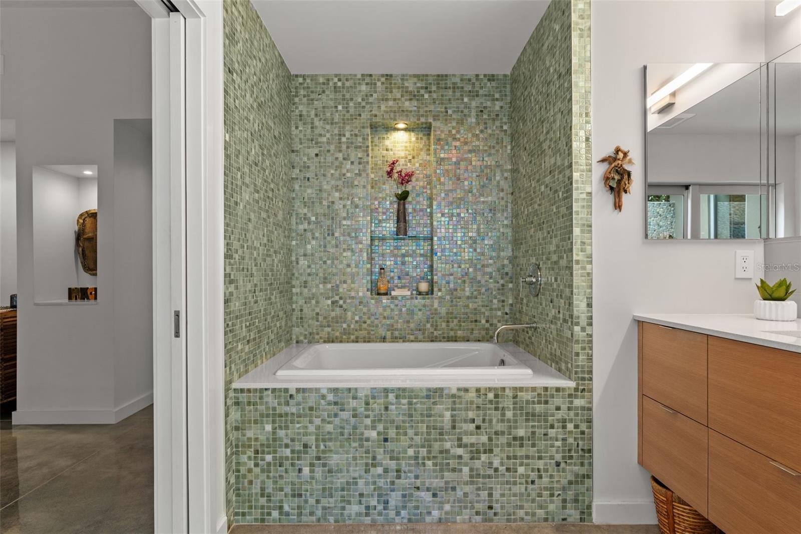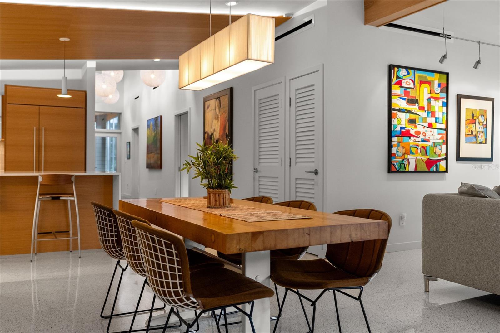 An inspirational property that epitomizes sophistication with a tranquil yet contemporary vibe. Expect to be wowed by this Venice Island gem. Originally a small 1959 structure, the property was dramatically expanded and completely renovated in 2014. This 2,285 square foot, 3 bedroom, 3.5 bath home hits a chord with those who understand what Florida mid-century homes can still aspire to be. The meticulously designed renovation, transformed a mid-century tract house into a beautiful Sarasota School of Architecture inspired home. Numerous honors for the renovation include winner of the 2016 American Institute of Architects Spirit of Sarasota Award to local architect Jon Barrick, SRQ Magazine Platinum Renovation Award and a feature article in Atomic Ranch Magazine. Located in the heart of Venezia Park Historic District, the home flows seamlessly, with windows & doors providing lush garden views from every room while maintaining privacy. There's a spacious living room, dining area, a timeless Florida Room, office, and a large open kitchen that includes rift cut white oak custom cabinets and floating ceiling, accentuated by the white quartz island and terrazzo floors. Adjacent to the art gallery-like hallway with clerestory windows and vaulted ceilings, are the three ensuite bedrooms with built-in cabinetry. The primary suite boasts a walk-in closet, soaker tub and a private outdoor shower. Two of the bedrooms have sliders out to the dramatic 700 square foot lanai with a soaring cypress tongue & groove ceiling. A brilliantly designed exterior by landscape architect Dane Spencer, includes a dramatic yet modest entry courtyard, stone paths that meander around stunning lush foliage that connects with secluded side patios. The pristine landscaping includes a bounty of tropical species including ferns, palms, crapes, oak and Cuban laurel trees. The garage is 1.5 car size, with workshop and built-in cabinets. The home is equipped with a Nuvo sound system, ADT alarm, art lighting, Rainbird sprinkler system, NEST temperature controls, Hunter Douglas window treatments, and an Ecowater filtration system in the kitchen. This home is being sold furnished with interesting contemporary and vintage pieces, and includes some art and personal items. An inventory list is available for review. This home is not in a flood zone - 16.75 elevation. Situated in Venice Island's most walkable neighborhood, everything one would desire, is within one mile of the home. Located between Venezia Park across the street and Blalock Park a half block north, the Cultural, Art & Library campus is around the corner and it is four blocks to downtown Venice where dining, entertainment, shopping, pickleball, and the weekly farmers market await you. You will find daily yoga, shark tooth hunting and the Sunday Drum circle less than a mile away at Venice Public Beach. Venice boasts excellent schools and the home is conveniently located near numerous medical facilities and the new Sarasota Memorial Hospital. Also, on Island is The Venice Municipal Airport, Freedom Boat and Venice Yacht Clubs, The Venice Golf Course and driving range (15 additional courses w/in 10 miles) and access to the 18-mile Legacy bike trail. This is the house you've been practicing for .