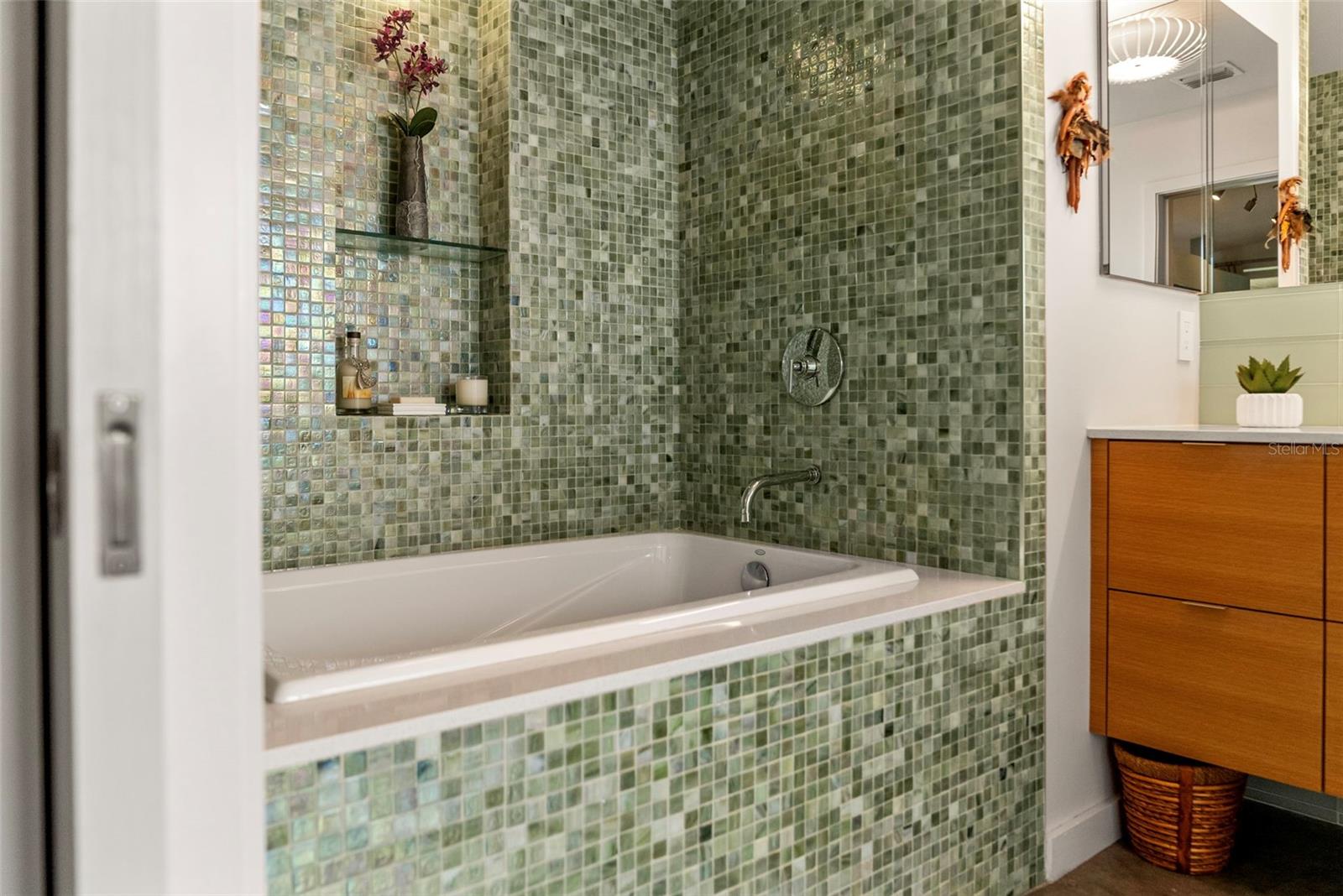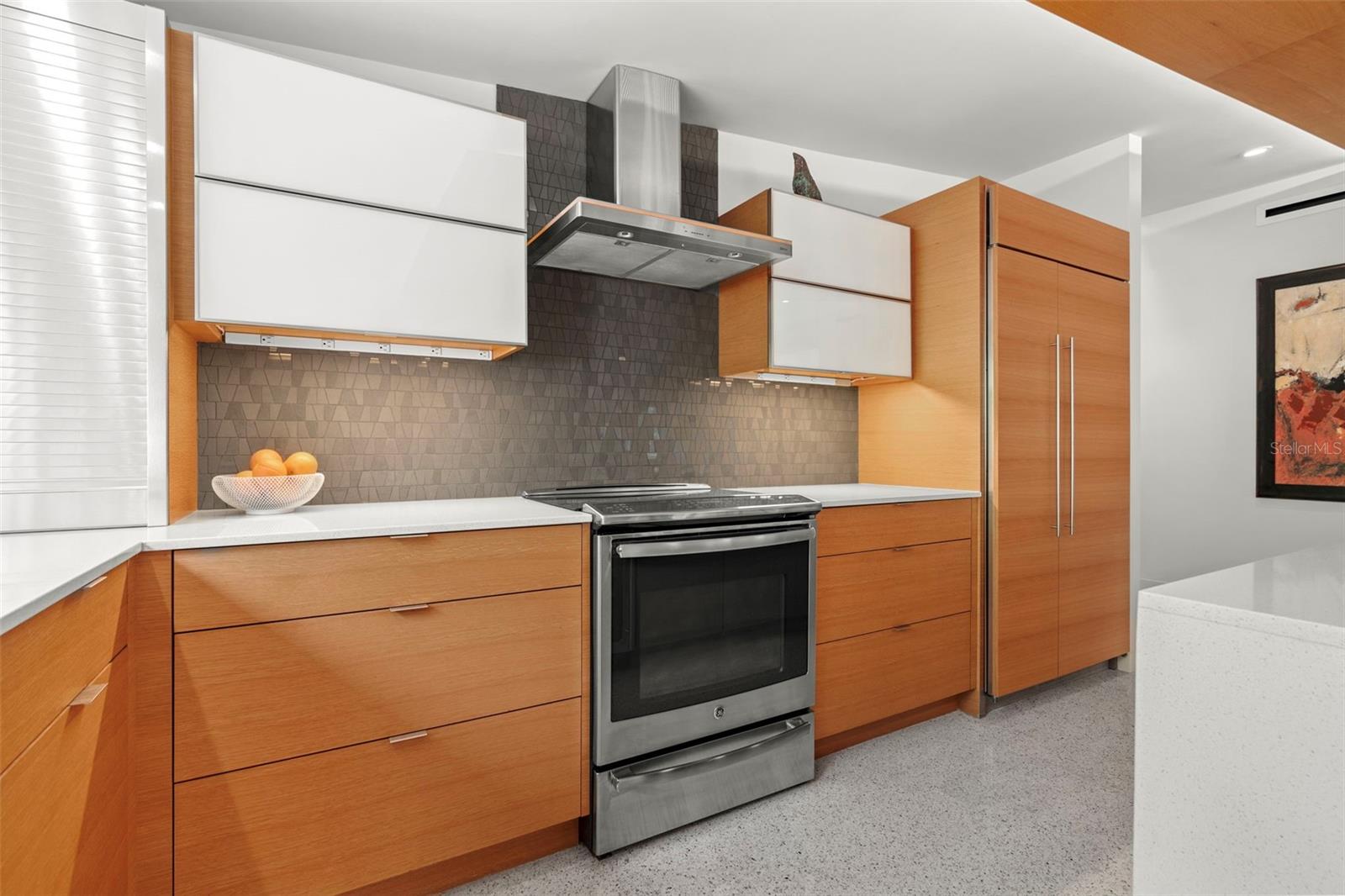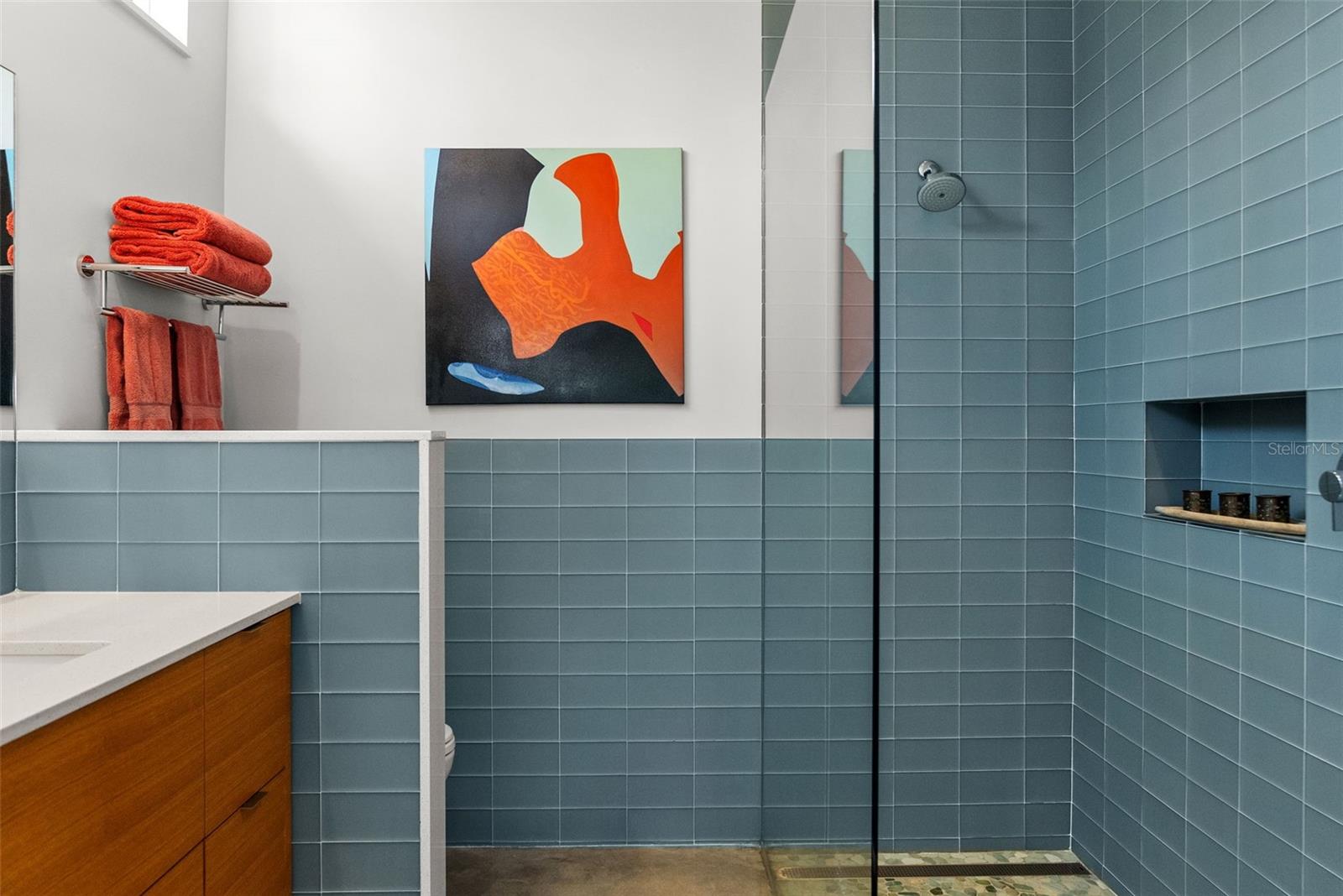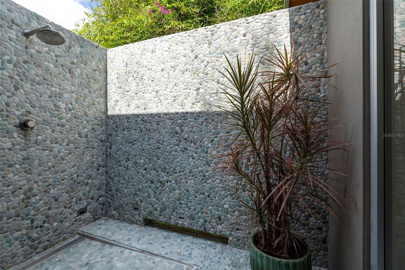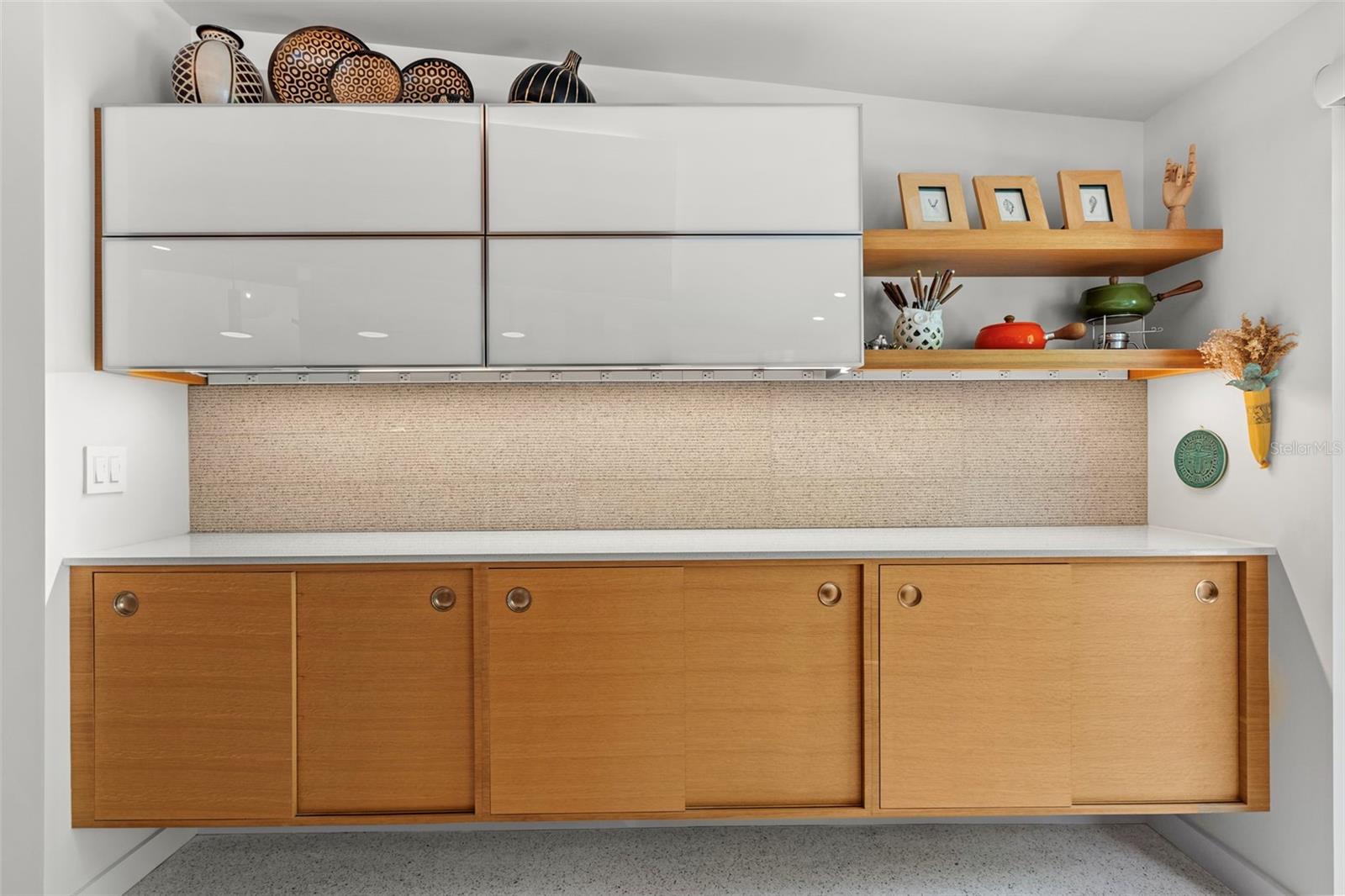 An inspirational property that epitomizes sophistication with a tranquil yet contemporary vibe. Expect to be wowed by this Venice Island gem. Originally a small 1959 structure, the property was dramatically expanded and completely renovated in 2014. This 2,285 square foot, 3 bedroom, 3.5 bath home hits a chord with those who understand what Florida mid-century homes can still aspire to be. The meticulously designed renovation, transformed a mid-century tract house into a beautiful Sarasota School of Architecture inspired home. Numerous honors for the renovation include winner of the 2016 American Institute of Architects Spirit of Sarasota Award to local architect Jon Barrick, SRQ Magazine Platinum Renovation Award and a feature article in Atomic Ranch Magazine. Located in the heart of Venezia Park Historic District, the home flows seamlessly, with windows & doors providing lush garden views from every room while maintaining privacy. There's a spacious living room, dining area, a timeless Florida Room, office, and a large open kitchen that includes rift cut white oak custom cabinets and floating ceiling, accentuated by the white quartz island and terrazzo floors. Adjacent to the art gallery-like hallway with clerestory windows and vaulted ceilings, are the three ensuite bedrooms with built-in cabinetry. The primary suite boasts a walk-in closet, soaker tub and a private outdoor shower. Two of the bedrooms have sliders out to the dramatic 700 square foot lanai with a soaring cypress tongue & groove ceiling. A brilliantly designed exterior by landscape architect Dane Spencer, includes a dramatic yet modest entry courtyard, stone paths that meander around stunning lush foliage that connects with secluded side patios. The pristine landscaping includes a bounty of tropical species including ferns, palms, crapes, oak and Cuban laurel trees. The garage is 1.5 car size, with workshop and built-in cabinets. The home is equipped with a Nuvo sound system, ADT alarm, art lighting, Rainbird sprinkler system, NEST temperature controls, Hunter Douglas window treatments, and an Ecowater filtration system in the kitchen. This home is being sold furnished with interesting contemporary and vintage pieces, and includes some art and personal items. An inventory list is available for review. This home is not in a flood zone - 16.75 elevation. Situated in Venice Island's most walkable neighborhood, everything one would desire, is within one mile of the home. Located between Venezia Park across the street and Blalock Park a half block north, the Cultural, Art & Library campus is around the corner and it is four blocks to downtown Venice where dining, entertainment, shopping, pickleball, and the weekly farmers market await you. You will find daily yoga, shark tooth hunting and the Sunday Drum circle less than a mile away at Venice Public Beach. Venice boasts excellent schools and the home is conveniently located near numerous medical facilities and the new Sarasota Memorial Hospital. Also, on Island is The Venice Municipal Airport, Freedom Boat and Venice Yacht Clubs, The Venice Golf Course and driving range (15 additional courses w/in 10 miles) and access to the 18-mile Legacy bike trail. This is the house you've been practicing for .