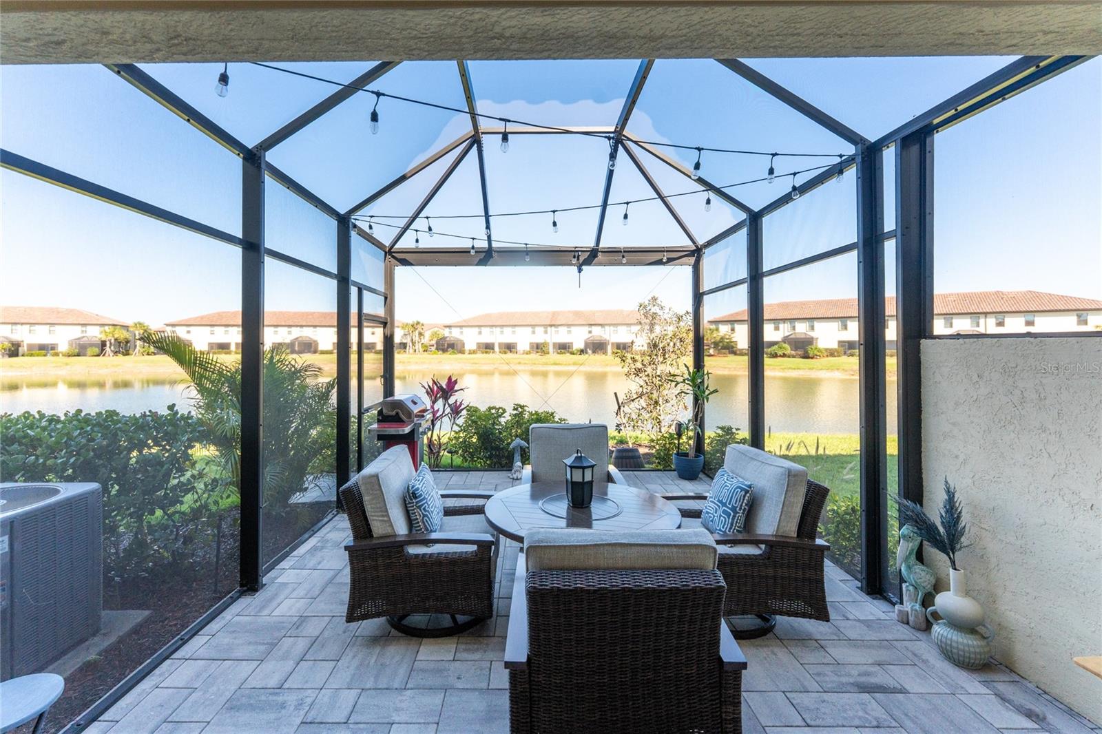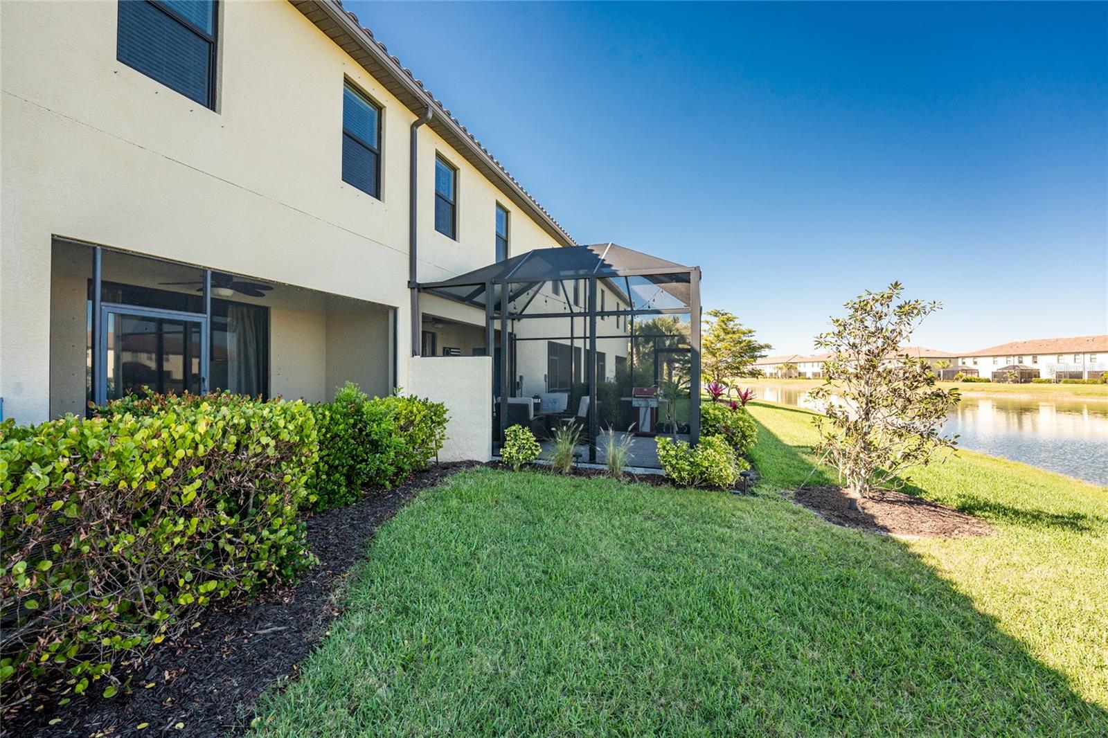 Don’t miss out on an extraordinary opportunity to own this Eastern facing waterfront maintenance free townhome located in Gran Paradiso! This waterfront property features 3 bedrooms, 2.5 bathrooms, 1 car private garage, a large screened lanai and much more! From the minute you walk in the door, you will see the attention to detail and custom finishes that went into this property. The open and airy kitchen features granite countertops, solid wood cabinets, tile backsplash, stainless steel appliances, a pantry, tile flooring, crown molding, recessed lighting, and water views. The formal dining room features crown molding, tile flooring, modern, and plenty of room for a large table. The spacious 16ft by 15ft living room features an updated ceiling fan, custom coffered ceiling, wood plank wainscoting, crown molding, and sliding glass doors leading out to the screened lanai area with stunning views of the water. The outside space is one of a kind and features a 16ft by 6ft under roof lanai with an extended 16ft by 14ft screened area with fantastic water views! The large master suite has a gorgeous setting with water views right from your bed, and includes crown molding, two walk-in closets, a private bathroom, tons of natural lighting, and much more! The master bathroom features a tiled walk-in shower with glass enclosure, tile flooring, crown molding, modern lighting, and a double sink vanity. The 12ft by 11ft second bedroom features luxury vinyl plank flooring and a ceiling fan. The second and third bedrooms both have quick access to the second bathroom. The second bathroom includes an extended solid wood vanity, tile flooring, updated lighting, and a tiled bathtub and shower combination. The inside laundry closet is conveniently located next to the upstairs bedrooms. Did I mention that there is a third bathroom downstairs for extra convenience? This property also features a private 20ftx12ft garage with an epoxy garage floor, and a Liftmaster smart garage door opener! The Townhome fees cover lawn maintenance, building insurance, exterior maintenance, cable tv, and high speed internet! This property is located in an X flood zone and flood insurance is not required. Gran Paradiso is an active gated community that has many amenities, such as a fully equipped gym, Tuscan-inspired clubhouse, sauna, billiards room, community pool with cabanas, library, tennis courts, playground, and much more! You must see this exquisite townhome to appreciate the captivating views and impeccable upgrades that make this property an absolute stunner! Enjoy your very own slice of paradise in Venice with everything you need from Wellen Park to beaches just right around the corner. Make sure to check out the Virtual Tour and 3D Walkthrough!