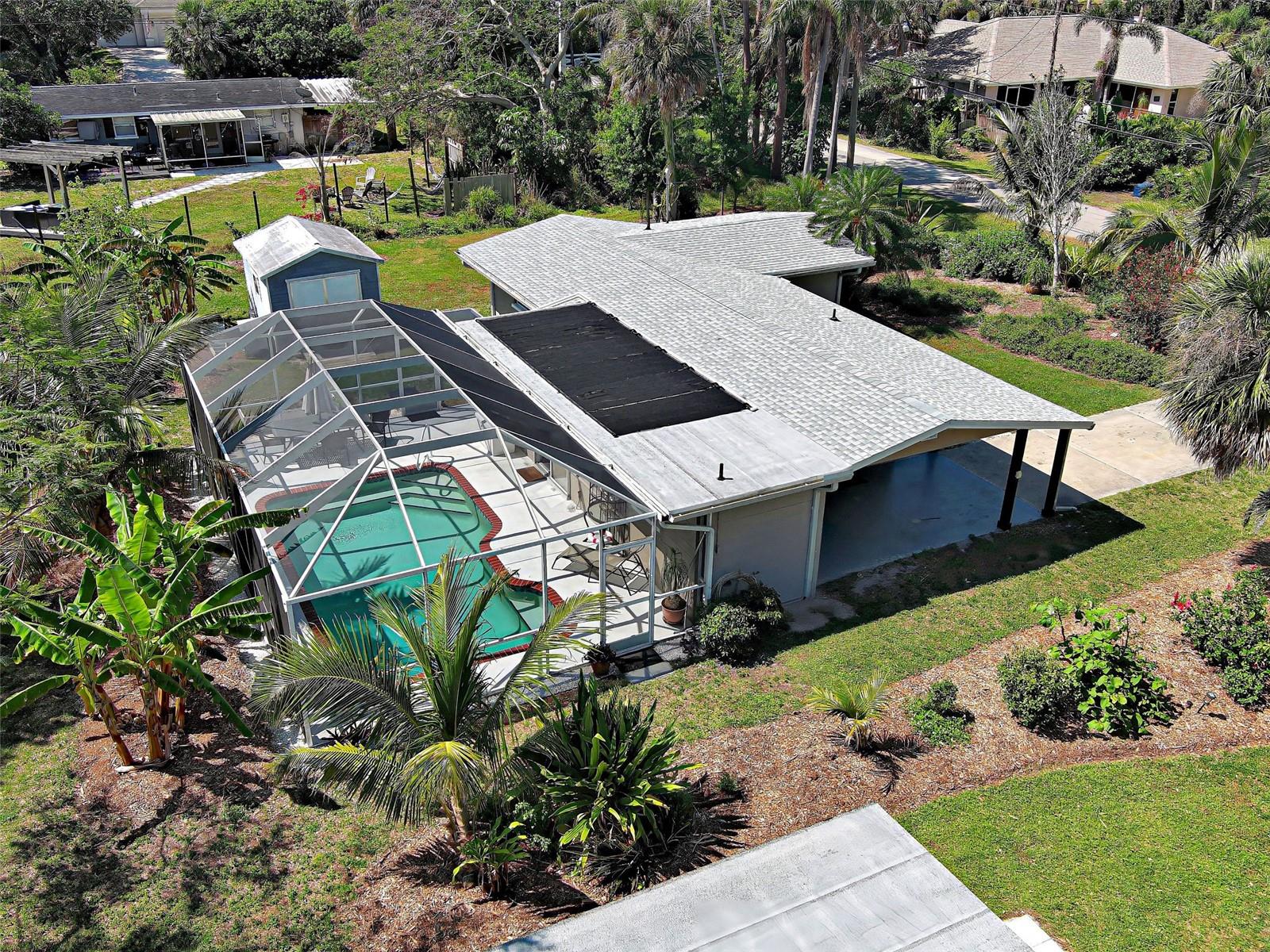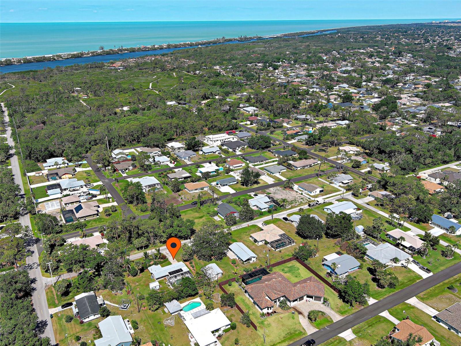 Large price improvement! Minutes to Manasota Beach yet an X500 flood zone! An extremely rare find in this 2-bedroom home with a separate cottage. Each has its own sewer, water and electric providing a convenient guest home or Granny pad. Situated on just under 1/2 acre of mature landscaping including Florida friendly native plants and numerous fruiting species. Charming in every way and a solar heated saltwater pool tops it all off. The perfect Florida home or get away. Schedule your visit now.