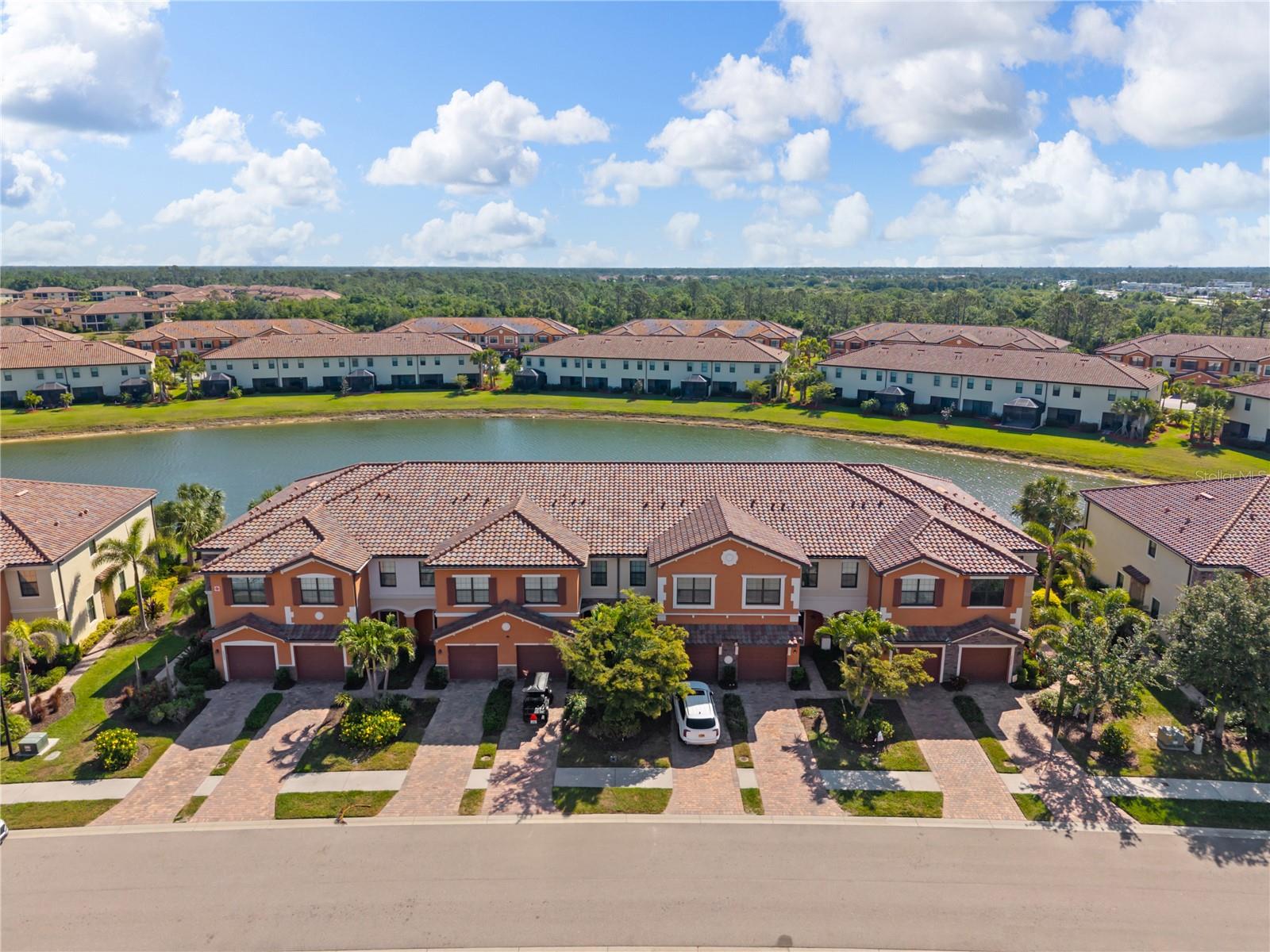 Here is your opportunity to own waterfront townhome in Gran Paradiso Community! This well-maintained 1949 square feet home features 3 bedrooms, 2.5 bathrooms, a 1-car garage, and a large screened lanai with stunning water views. Beautiful Florida colors and crown molding throughout. The kitchen is bright and spacious with granite countertops, stainless steel appliances, and a pantry. The master bedroom offers amazing water views, two walk-in closets, and a private bathroom with a walk-in shower and double sink vanity. Upgraded washer and drier. Private 20ftx12ft garage with an epoxy floor. The HOA covers lawn care, building insurance, exterior maintenance, and internet. Gran Paradiso is a gated community with great amenities, including a gym, clubhouse, pool with cabanas, tennis courts, and more. Located close to Wellen Park and beaches, this home has everything you need. Don’t miss your chance to see this wonderful townhome. Come see it today!