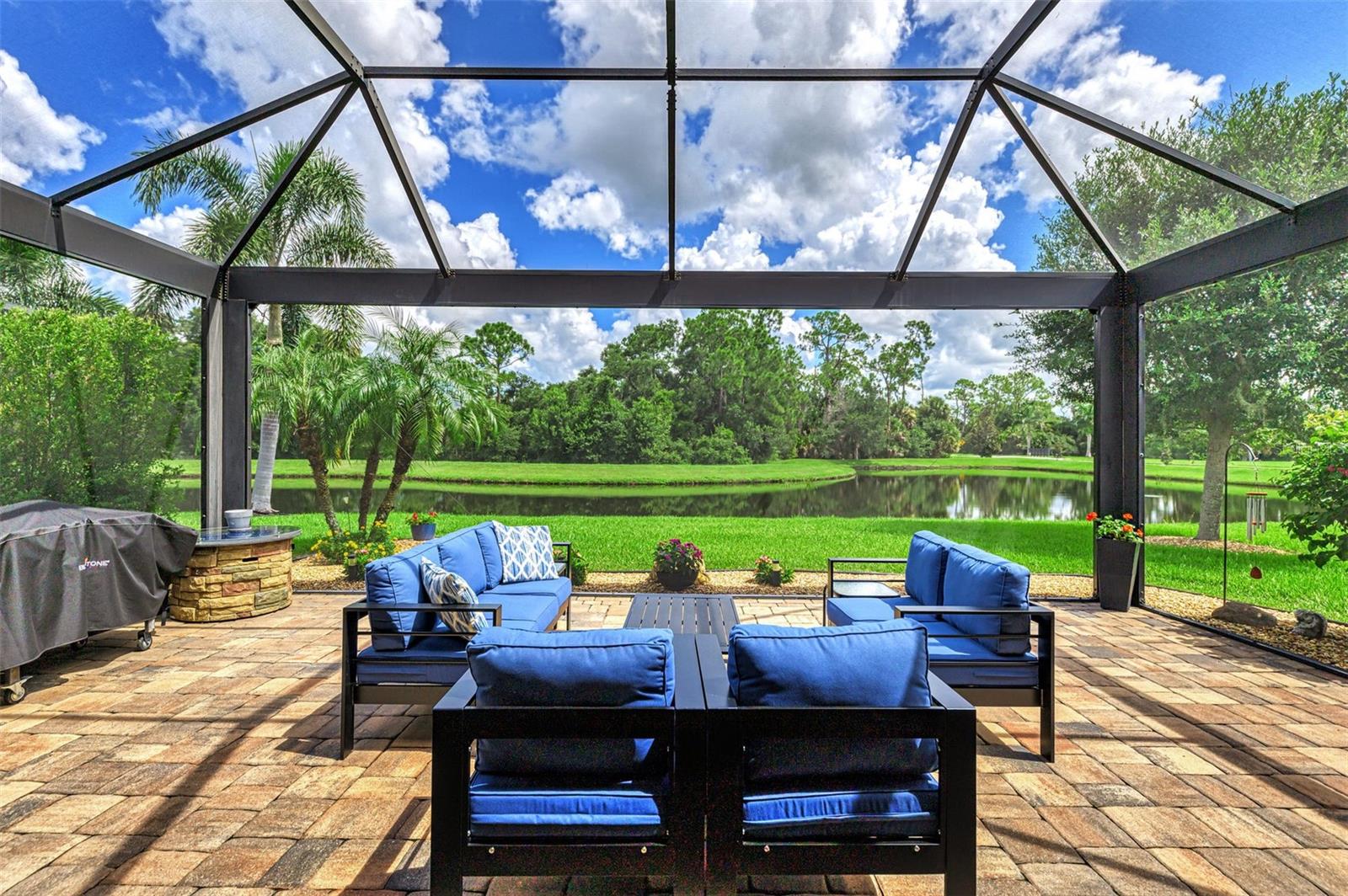 Welcome to this beautifully upgraded home in the sought-after Caribbean Village, a gated community offering a resort-style pool, fitness center, and clubhouse. This spacious 3-bedroom, 2-bath + den home features 1,984 sq. ft. of thoughtfully designed living space with high-end finishes throughout. Interior Highlights - Open concept floor plan with elegant tray ceilings, 8’ doors, crown molding, and tile flooring throughout. Den with glass French doors – perfect for a home office or library, Chef’s kitchen with stainless steel appliances, quartz countertops, under-cabinet lighting, and modern cabinetry, Custom window treatments and blinds included, Primary suite with 2 custom walk-in closets, Spa-like owner’s bath with quartz dual vanity, large soaking tub, and walk-in shower, Guest bath with floor-to-ceiling tiled shower, Outdoor Living - Expansive extended lanai with seamless panoramic screen enclosure, Peaceful water and preserve views, Lush upgraded mature landscaping, Additional Features - Whole-home accordion hurricane shutters for peace of mind, Maintenance-free community with low HOA fees and no CDD. Convenient location near shopping, dining, several golf courses, beautiful Gulf beaches, local airports, and I-75. This move-in ready home blends modern elegance with Florida lifestyle living at its best. Don't miss the opportunity to own this exceptional home in Caribbean Village where luxury meets convenience.