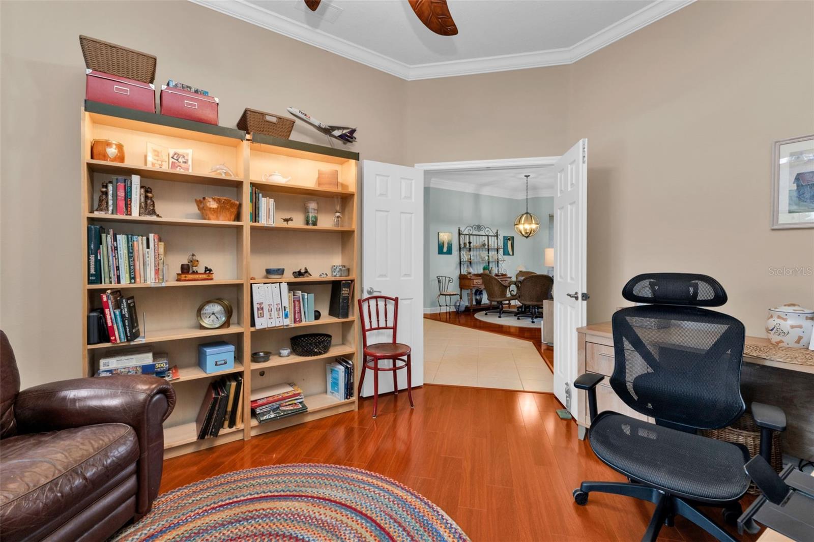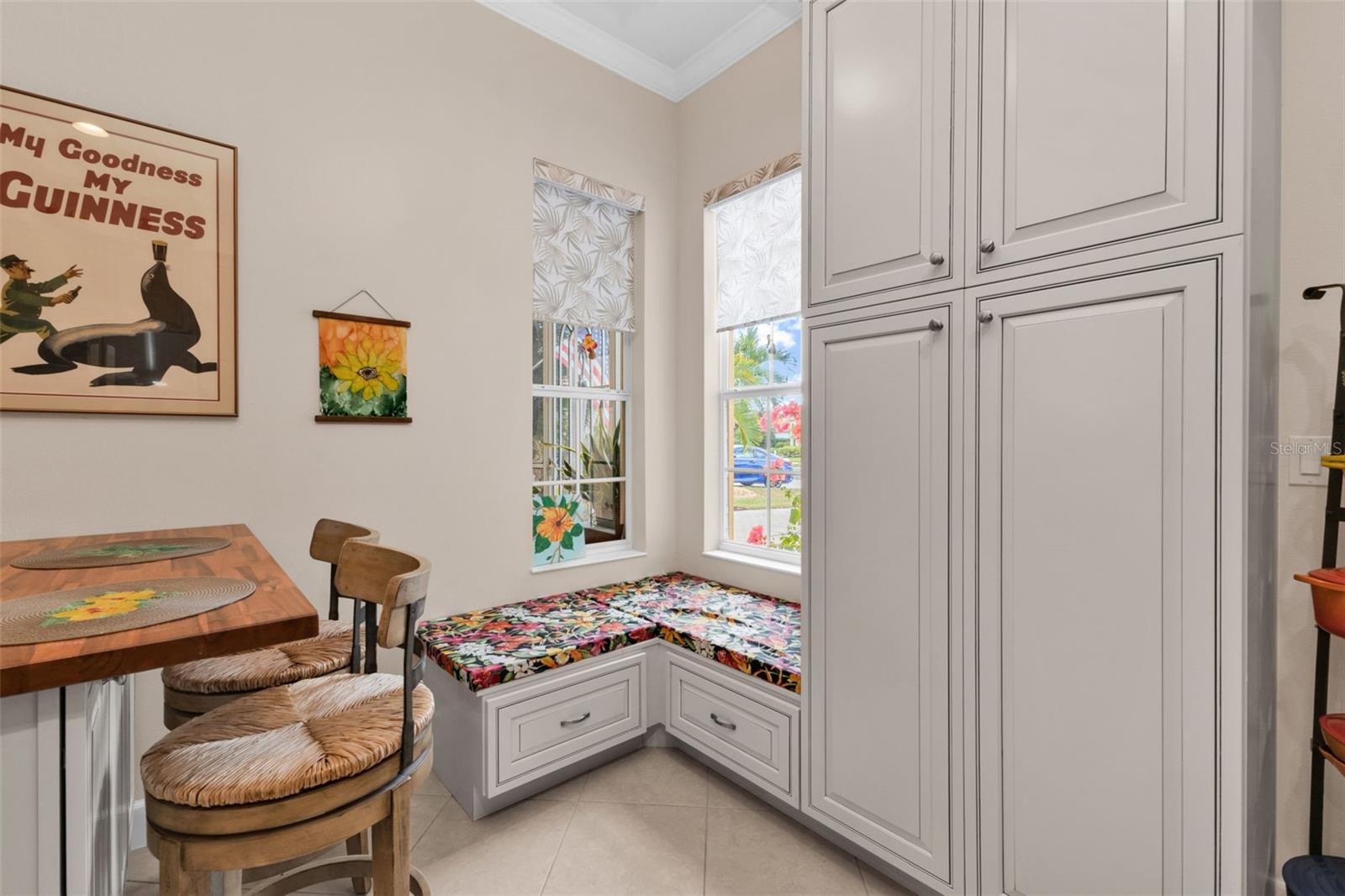 Welcome to this beautifully maintained Key West–style 2-bedroom, 2-bath, 2-car garage home with a versatile den, located on a tranquil waterfront lot in the highly sought-after, gated Stoneybrook community. Mature landscaping frames the home, creating exceptional curb appeal and a peaceful outdoor setting. The interior of the home was freshly painted (2025) and the roof recently pressure washed. Inside, the open living area is enhanced by a pocket sliding glass door that seamlessly connects indoor and outdoor living while capturing serene water views. The spacious primary suite features a double tray ceiling with accent lighting, adding architectural elegance and ambiance. The primary bath offers a relaxing garden tub, separate shower, dual sinks, and a walk-in closet with custom built-ins designed for optimal organization. The kitchen has an abundance of wood cabinets with pull-outs, stainless steel appliances, including a convection oven, silestone countertops, crown molding, chair molding, and an eat in kitchen area plus breakfast bar. The den/flex room is filled with natural light from triple windows, making it ideal for a home office, guest space, or hobby room. The laundry room is thoughtfully appointed with front-loading appliances and ample cabinetry for added convenience. A custom-made stained glass window in the entryway provides a unique, artistic touch and welcoming charm. Stoneybrook is a guarded, resort-style community offering an exceptional array of amenities, including a resort-style swimming pool, clubhouse, fitness center, movie theater, tennis courts, volleyball, playground, and more—delivering an unmatched Florida lifestyle - all for a LOW HOA fees of just $230 a month! Prime location with easy access to I-75, the upcoming Wellen Park area, historical downtown Venice with sidewalk cafes, boutique shops and preforming arts theater, and just a short drive to the exceptional Gulf beaches. This waterfront retreat offers comfort, style, and community all in one—perfect for full-time living or a seasonal escape.