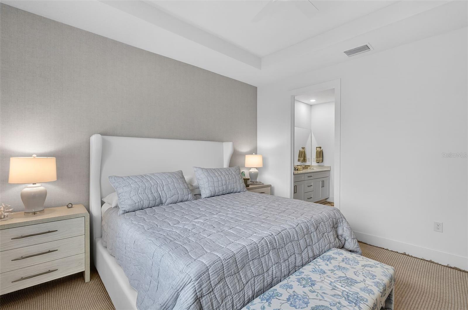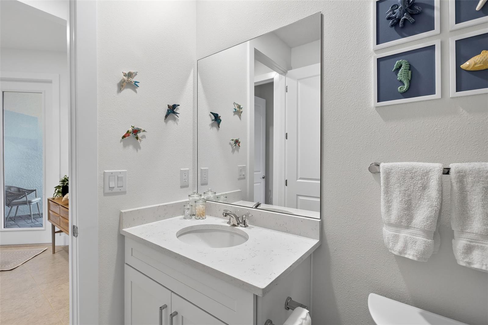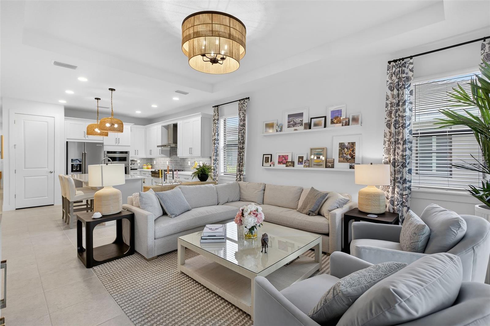 Welcome to this beautifully upgraded Rosehall villa by Toll Brothers, located in the highly sought-after community of Solstice at Wellen Park within Wellen Park. This thoughtfully designed home offers extensive upgrades, quality finishes, and exceptional indoor and outdoor living. Inside, the home features 9'4" ceilings and 8-foot interior doors, including the front entry door, creating an open and elevated feel throughout. The chef-inspired kitchen showcases upgraded appliances, including an upgraded cooktop and vent hood, quartz countertops, an upgraded backsplash, and enhanced cabinetry with convenient roll-out base shelves. An instant hot water tap and hot water on demand system add everyday comfort and efficiency. Custom window treatments throughout the home include tint and UV protection, providing natural light while offering daytime privacy. Ceiling fans and lighting have been installed in all bedrooms and the living room, while tray ceilings in the living room and primary suite add an elegant architectural touch. The laundry room has been upgraded with additional cabinetry, wine racks, and a granite countertop, providing both storage and workspace. The garage features epoxy flooring and built-in shelving for added organization. Outdoor living is just as impressive with an extended, enclosed lanai complete with hurricane shutters, creating a spacious area to relax year-round. Beyond the lanai, a paved outdoor grilling area has been added for entertaining. The backyard is fully fenced and beautifully landscaped in both the front and rear of the home. Timed landscape lighting highlights the plants in the evening, creating a warm and inviting atmosphere. Additional upgrades include storm-impact windows and doors and a full security system with cameras covering the lanai, driveway, and side yard for added peace of mind. Residents of Solstice enjoy resort-style amenities including a clubhouse, pool, pickleball and tennis court(s), fitness center, and social spaces, all within the vibrant Wellen Park community known for its walking trails, events, dining, and the popular Downtown Wellen. Experience the perfect combination of luxury upgrades, thoughtful design, and the sought-after Wellen Park lifestyle.
