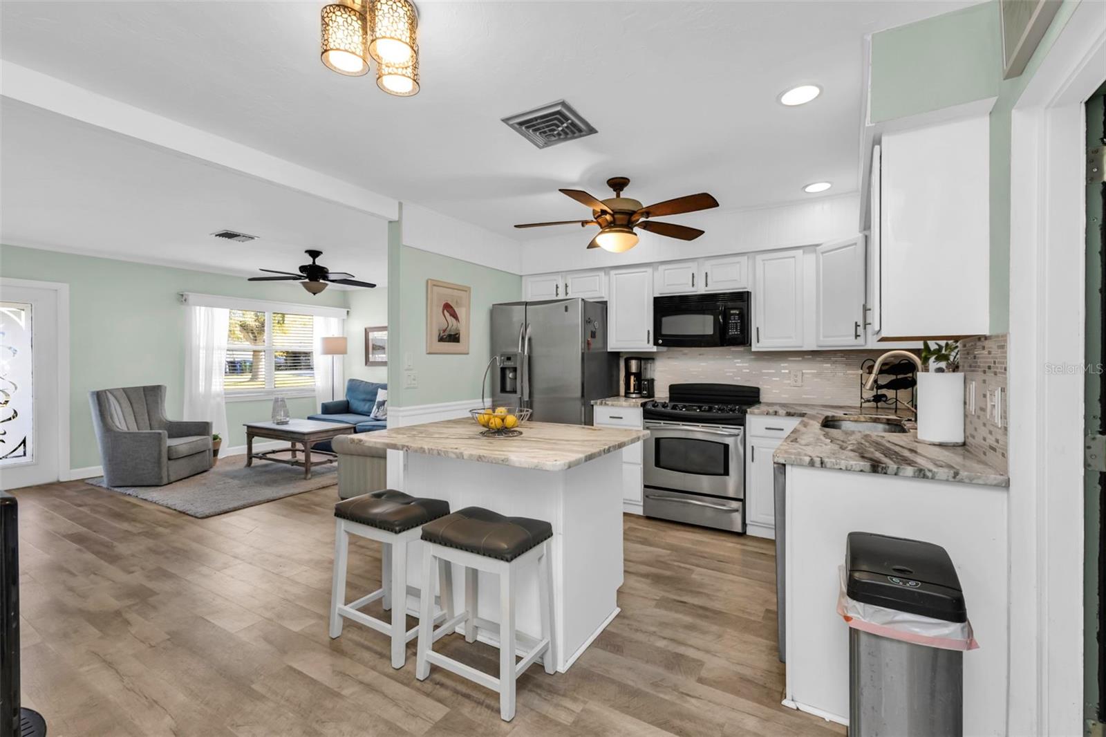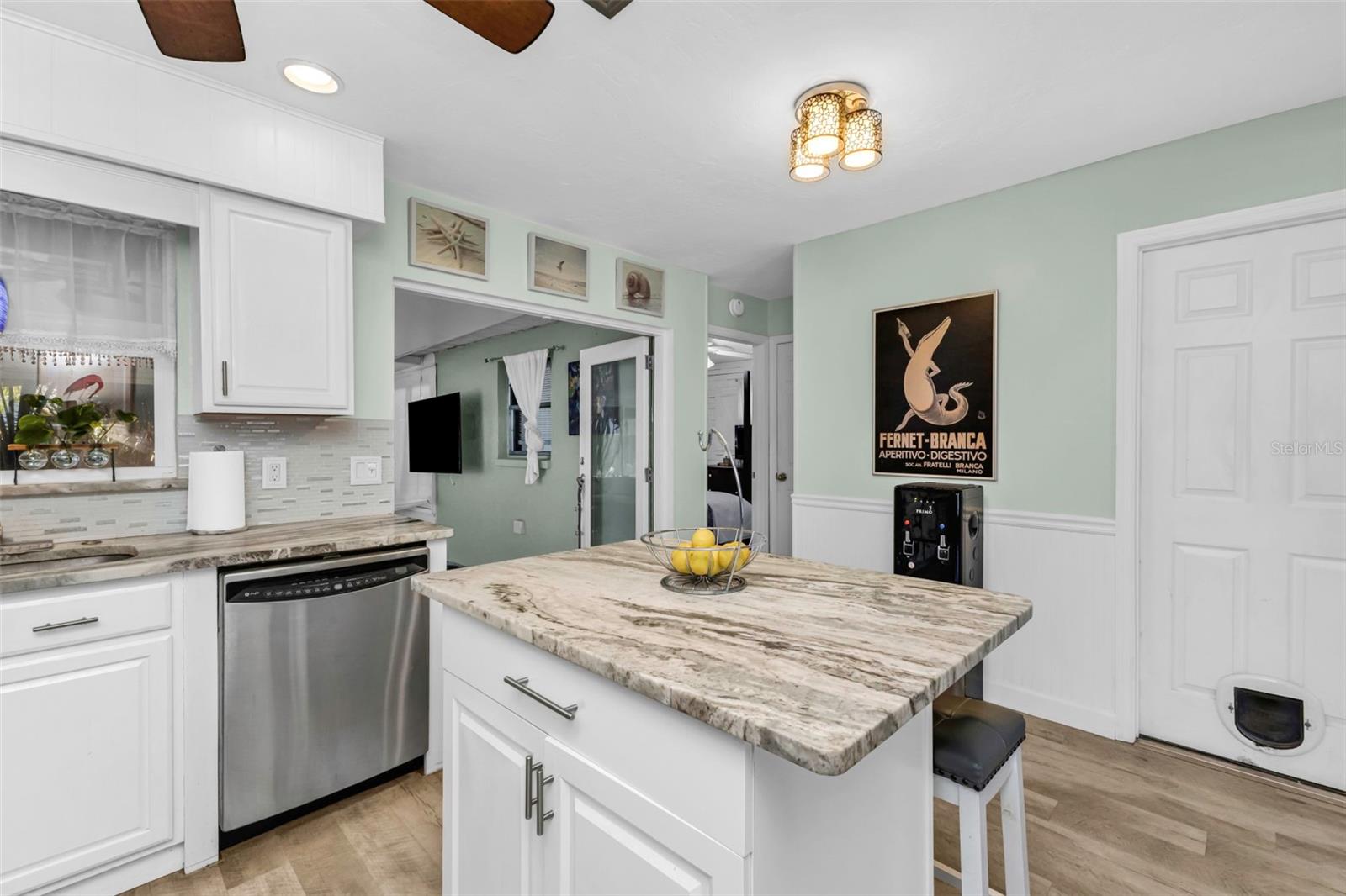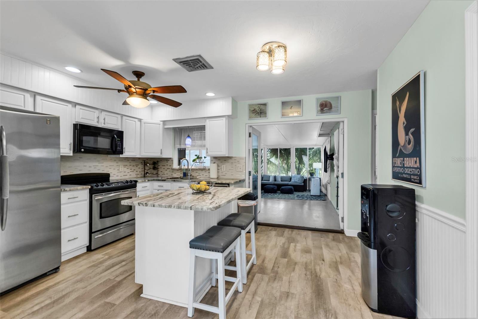 This beautifully updated 3-bedroom, 2-bath South Venice residence offers an exceptional blend of location, versatility, and coastal lifestyle—highlighted by a truly rare supersize 32’ x 23’ enclosed rear lanai. This expansive space adds approximately 736 square feet of additional living area, bringing the total to 1,861 square feet, and creates the ultimate indoor-outdoor Florida retreat. Designed for both relaxation and entertaining, the lanai features newer epoxy travertine-look flooring for effortless maintenance and a fully equipped outdoor kitchen—perfect for hosting or unwinding year-round. Inside, the home has been tastefully updated with luxury vinyl flooring in the main living areas and kitchen, complemented by natural stone countertops. Major improvements include a NEW ROOF (2025), NEW WATER HEATER (2025), septic system replacement (2020), and upgraded water treatment system offering peace of mind for years to come. Additional highlights include a fully fenced yard and a convenient 16’ x 3’ attached storage shed for added functionality. Ideally located less than 3 miles from the beautiful shores of Manasota Key Beach and just a short drive to historic downtown Venice, where boutique shopping, sidewalk cafés, and vibrant events await. Residents that own in South Venice enjoy the exclusive option to join the South Venice Beach Ferry for a low $200 annual fee, providing access to exclusive amenities including ferry service to a private beach on Manasota Key, a private boat launch, and storage for kayaks, canoes, and paddleboards. With NO CDD fees, NO deed restrictions, and NO HOA, this property offers the freedom to fully embrace the Florida lifestyle—whether boating, fishing, golfing, or simply enjoying your own private paradise.