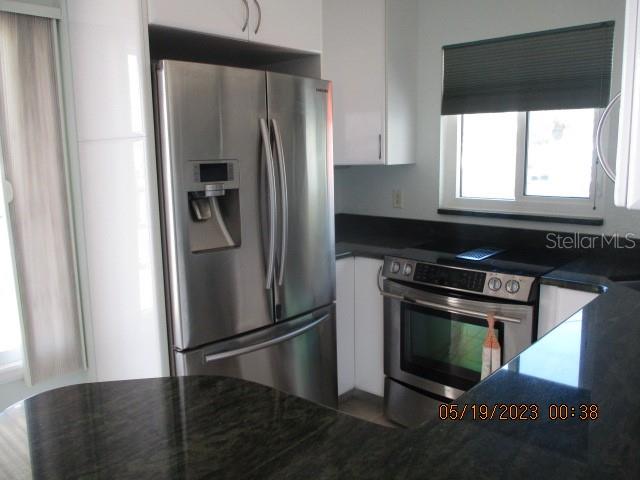 PRICE REDUCED TO SELL!! DEEP WATERFRONT VILLA ON VENICE ISLAND!! THIS POINT WHITECAP VILLA is ideally located on Venice Island, between the Venice Yacht Club and the Venice Jetties. As you enter this home, you are immediately drawn to the dock and waterfrontage located outside the back of this home. This villa has been updated inside/outside with hurricane windows and doors, a newer kitchen with stainless steel appliances, bathrooms, tile floors, granite countertops and solar. The curved interior walls and the amazing water views have you feeling like you are on a ship. There is a newer power pergola that covers the back paver patio area, overlooking the dock and deepwater canal. This villa also has an additional room that could be a second bedroom/den, along with two full bathrooms. If you have an EV, the front of the carport is wired for a charging station. Finally, when you return to your dock from a day of boating, there is a beautiful community pool just outside this villa waiting for you to enjoy. These villas rarely come on the market for sale, so hurry to see this fabulous home.