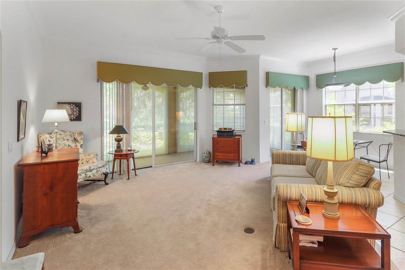 Location Plus..Motivated seller accepting offers.....Lush landscaping and beautiful views from within and without prevail in this charming villa. Only 3 miles to the beach and quaint downtown Venice for shopping and resurants. Enjoy the South Jetty with gorgeous sunsets! This 2-3 bedroom villa freshly painted boasts space and interesting architecture. Master bedroom with ensuite and a safe for valuables in the large walk in closet. Oversized master bath shower with bench are included. The lanaii offers hurrican sliding windows. The Aston Garden amenities include heated pool and jacuzzi, walks around the pond, golf puttng green, planned excursions with transportation included and so much more. Too many activities to mention. Best location in Venice....Move In Ready!
