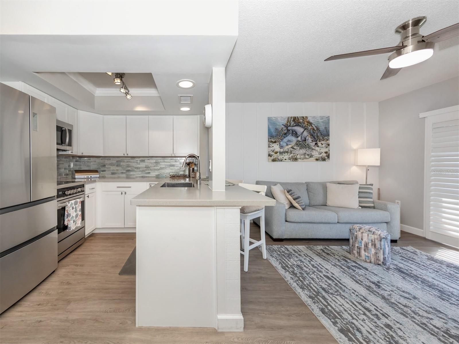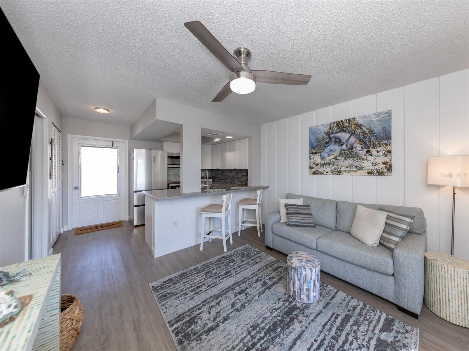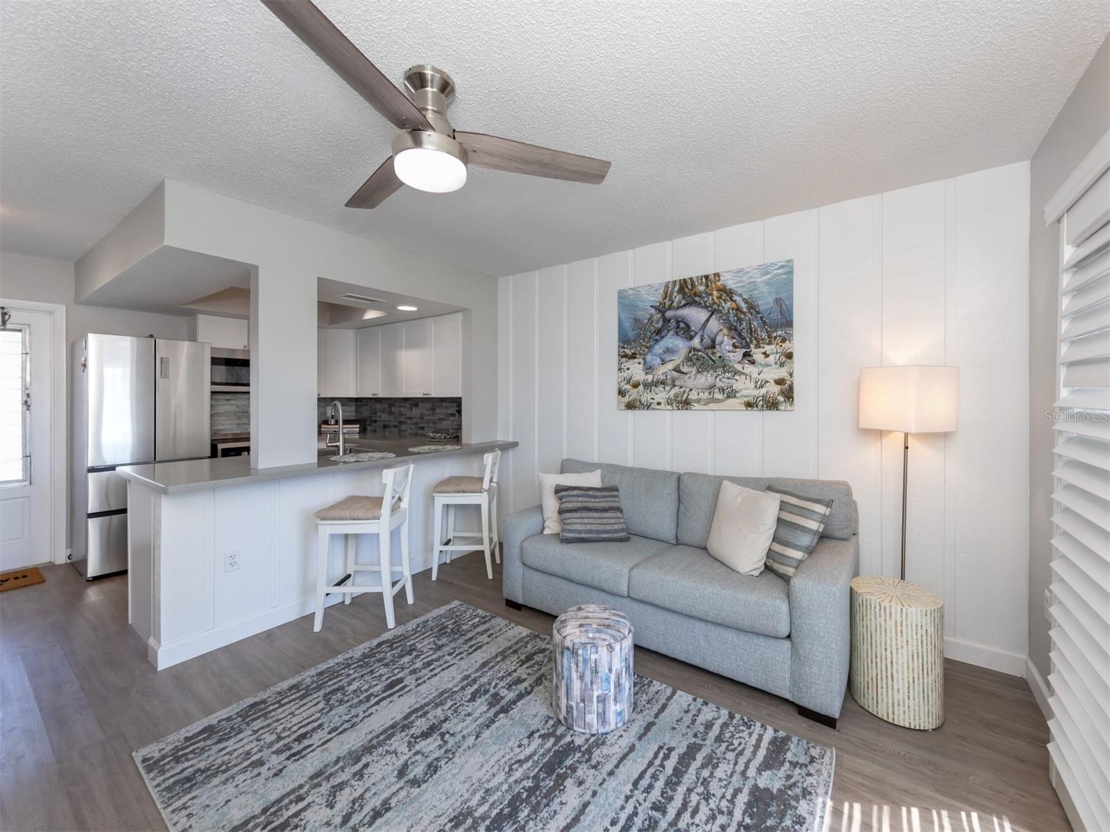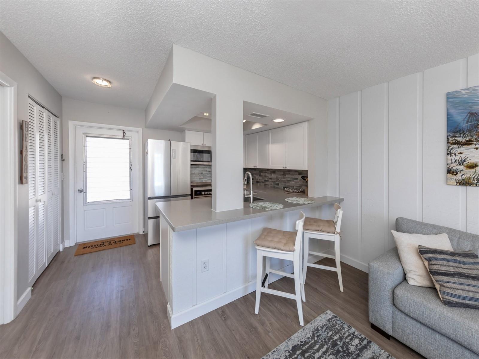 NEW PRICE! Your Island Life Awaits. This gorgeously updated Bahia Vista Gulf condominium is located on the 2nd floor with an incredible view of the canal. This one bedroom, one bath unit has been tastefully updated with plantation shutters and Luxury Vinyl flooring throughout and is being offered turnkey furnished. The updated kitchen includes stone countertops with breakfast island seating, white shaker cabinetry and stainless steel appliances. The current owners have enjoyed using this condo personally with friends and family but also as an investment property as Bahia Vista is a popular seasonal retreat with a flexible 1 month minimum stay. Sliding glass doors overlook the canal and allow for plenty of natural light to pour in. Each unit has an additional storage unit and a reserved parking space along with ample guest parking. Boat slips are available to owners on a first come first served basis. The community offers a beach front heated pool just a short distance across the street. Bahia Vista offers deeded beach access to enjoy the beautiful waters and the sunsets of the Gulf of Mexico. Conveniently located just a short distance to the Venice Jetty, Crows Nest, the Marina and boat ramp as well as The Venice Yacht Club. Bahia Vista Gulf is a well loved active community with a great mix of year round and seasonal residents.