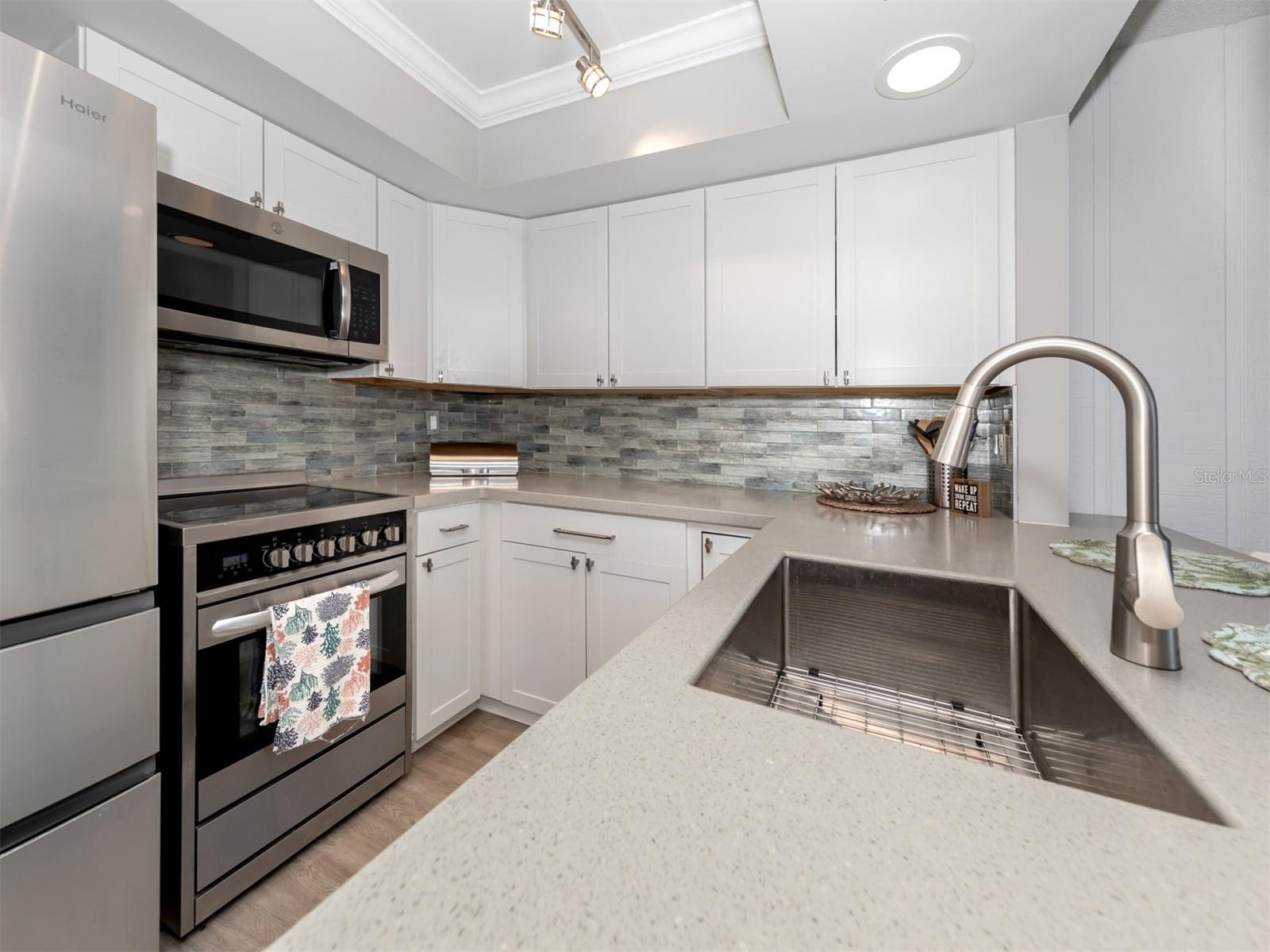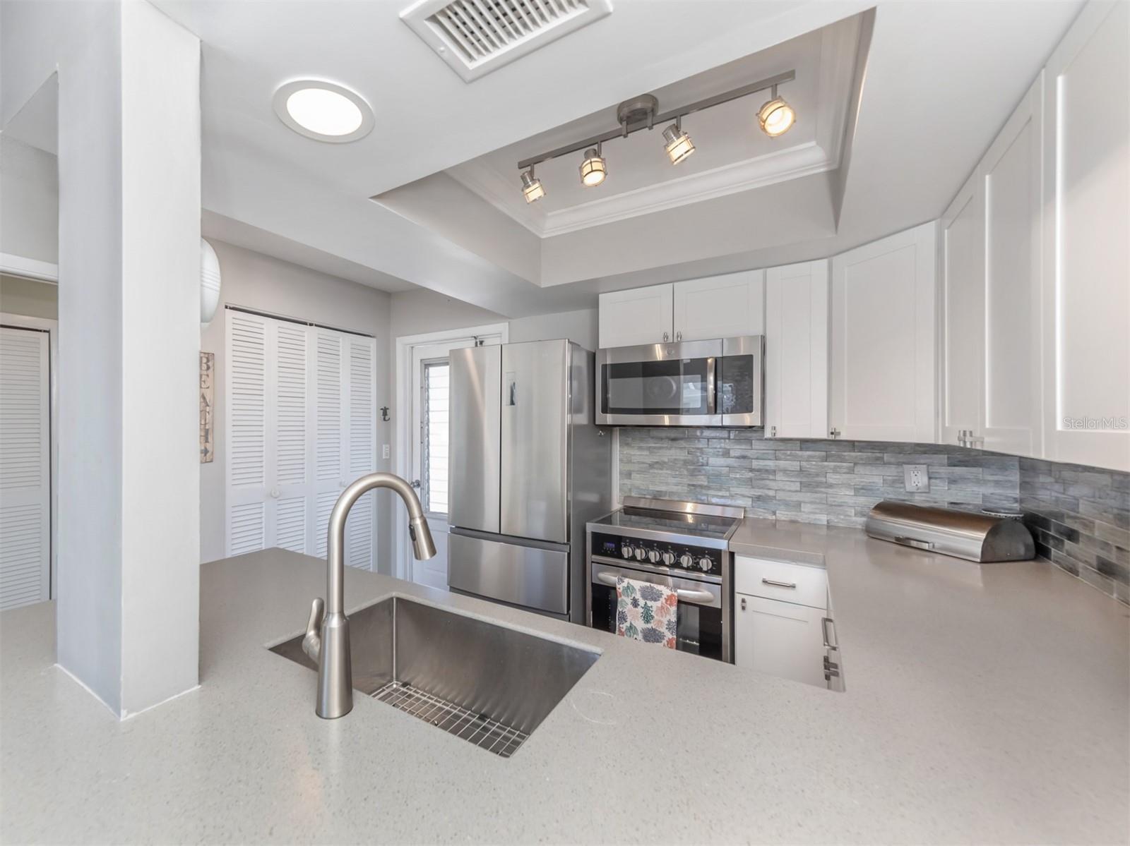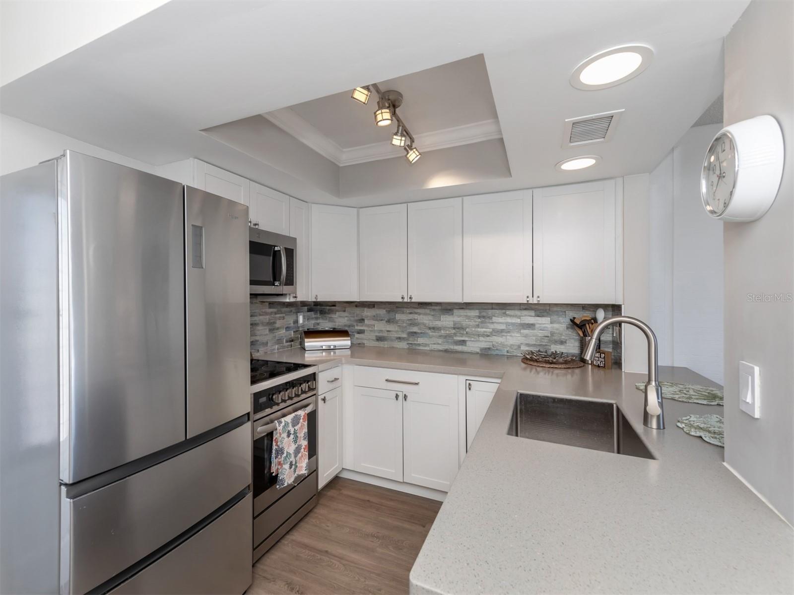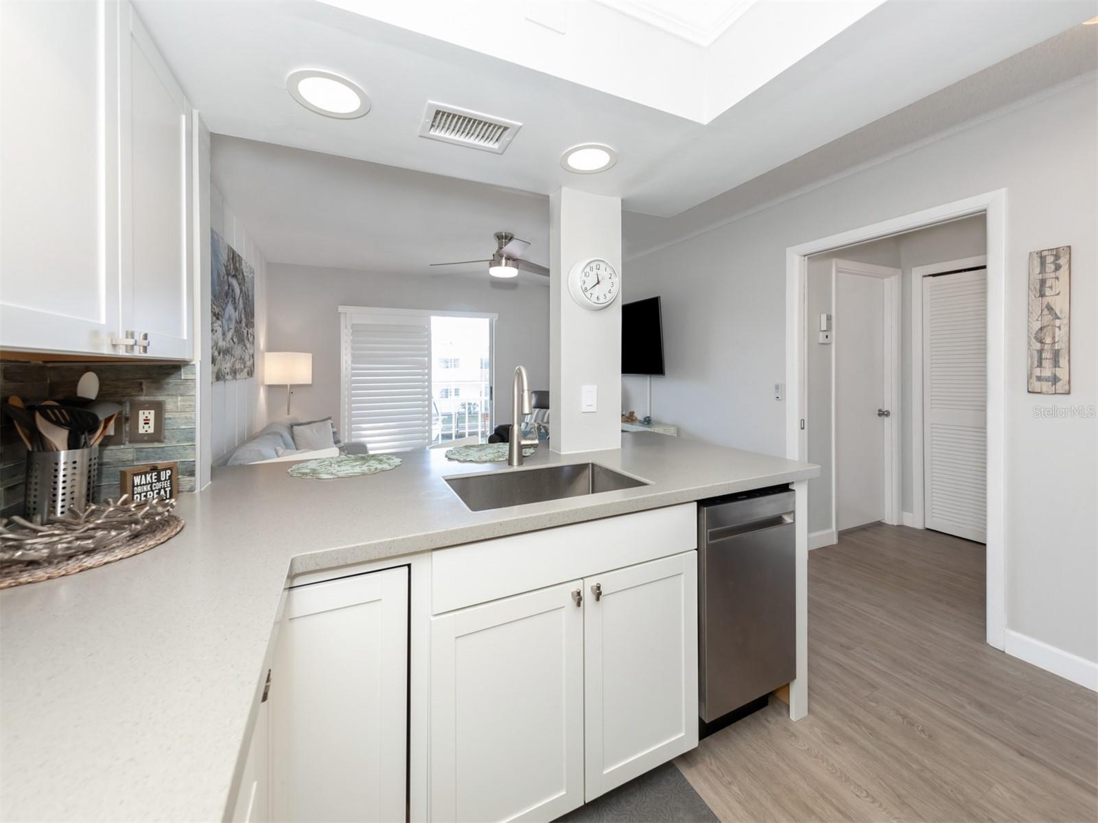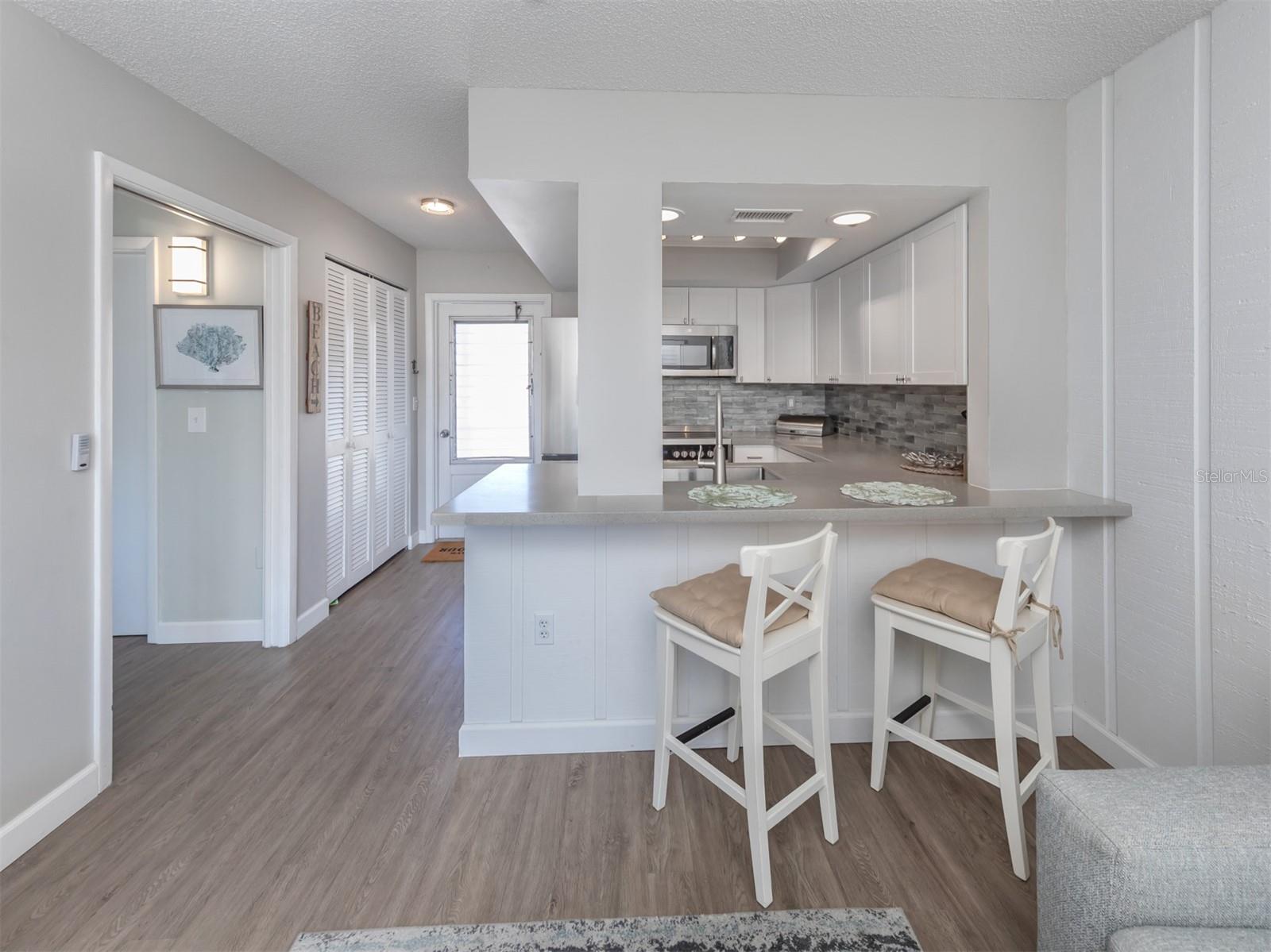 NEW PRICE! Your Island Life Awaits. This gorgeously updated Bahia Vista Gulf condominium is located on the 2nd floor with an incredible view of the canal. This one bedroom, one bath unit has been tastefully updated with plantation shutters and Luxury Vinyl flooring throughout and is being offered turnkey furnished. The updated kitchen includes stone countertops with breakfast island seating, white shaker cabinetry and stainless steel appliances. The current owners have enjoyed using this condo personally with friends and family but also as an investment property as Bahia Vista is a popular seasonal retreat with a flexible 1 month minimum stay. Sliding glass doors overlook the canal and allow for plenty of natural light to pour in. Each unit has an additional storage unit and a reserved parking space along with ample guest parking. Boat slips are available to owners on a first come first served basis. The community offers a beach front heated pool just a short distance across the street. Bahia Vista offers deeded beach access to enjoy the beautiful waters and the sunsets of the Gulf of Mexico. Conveniently located just a short distance to the Venice Jetty, Crows Nest, the Marina and boat ramp as well as The Venice Yacht Club. Bahia Vista Gulf is a well loved active community with a great mix of year round and seasonal residents.