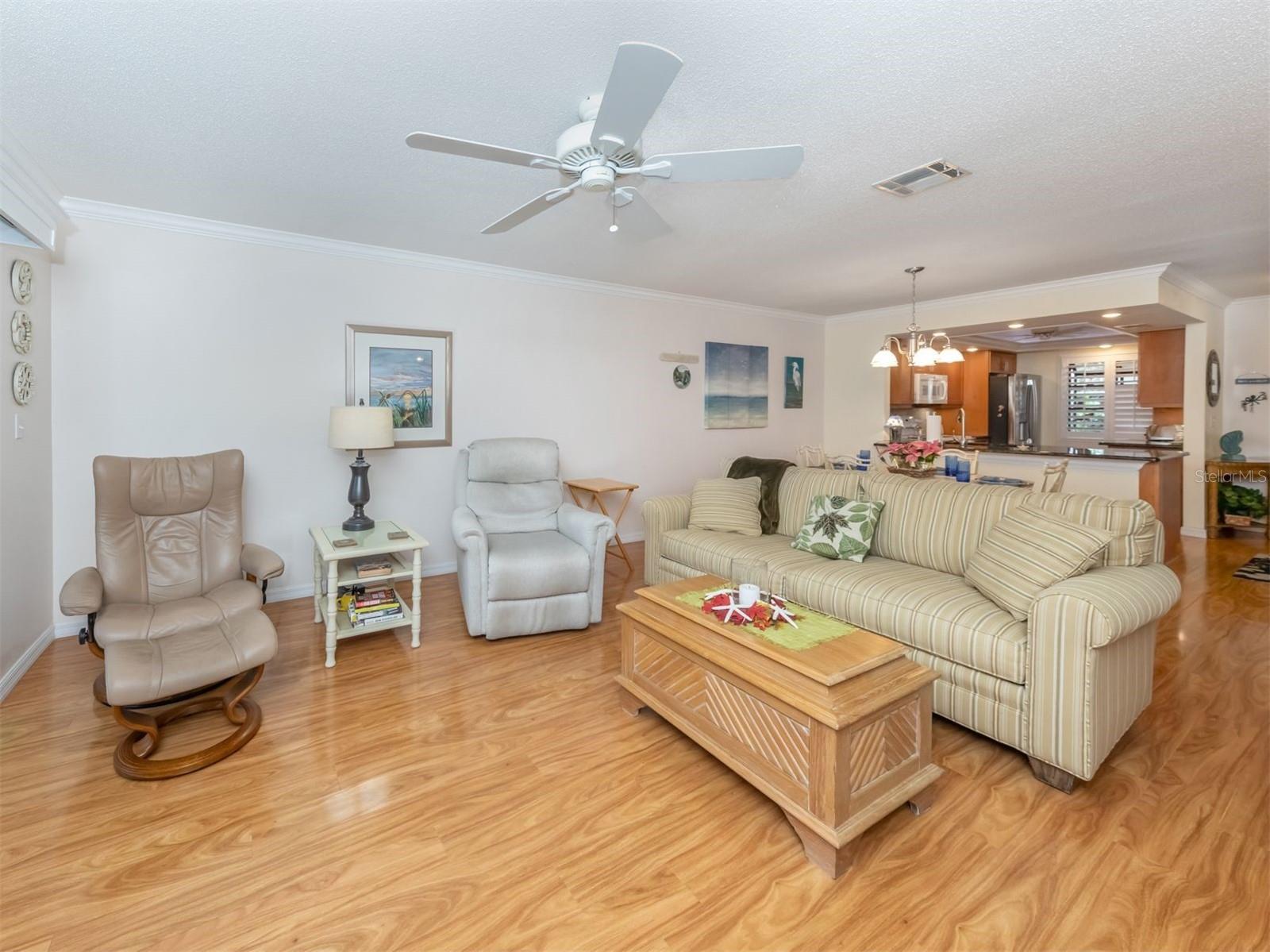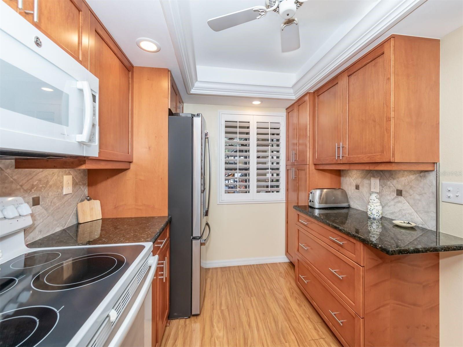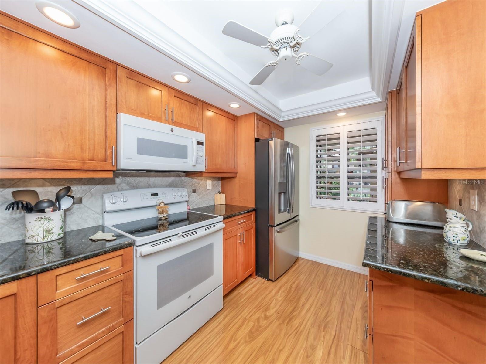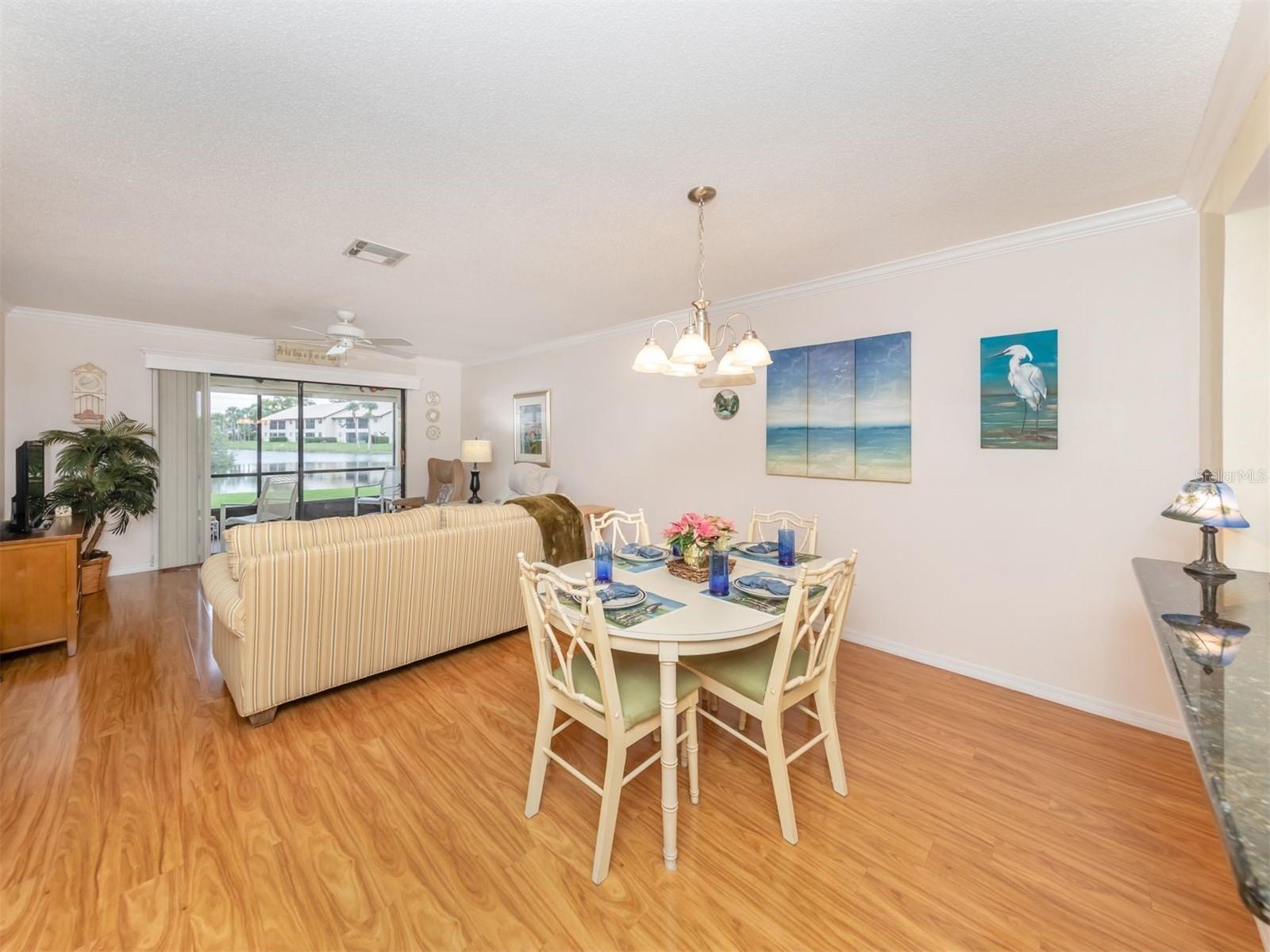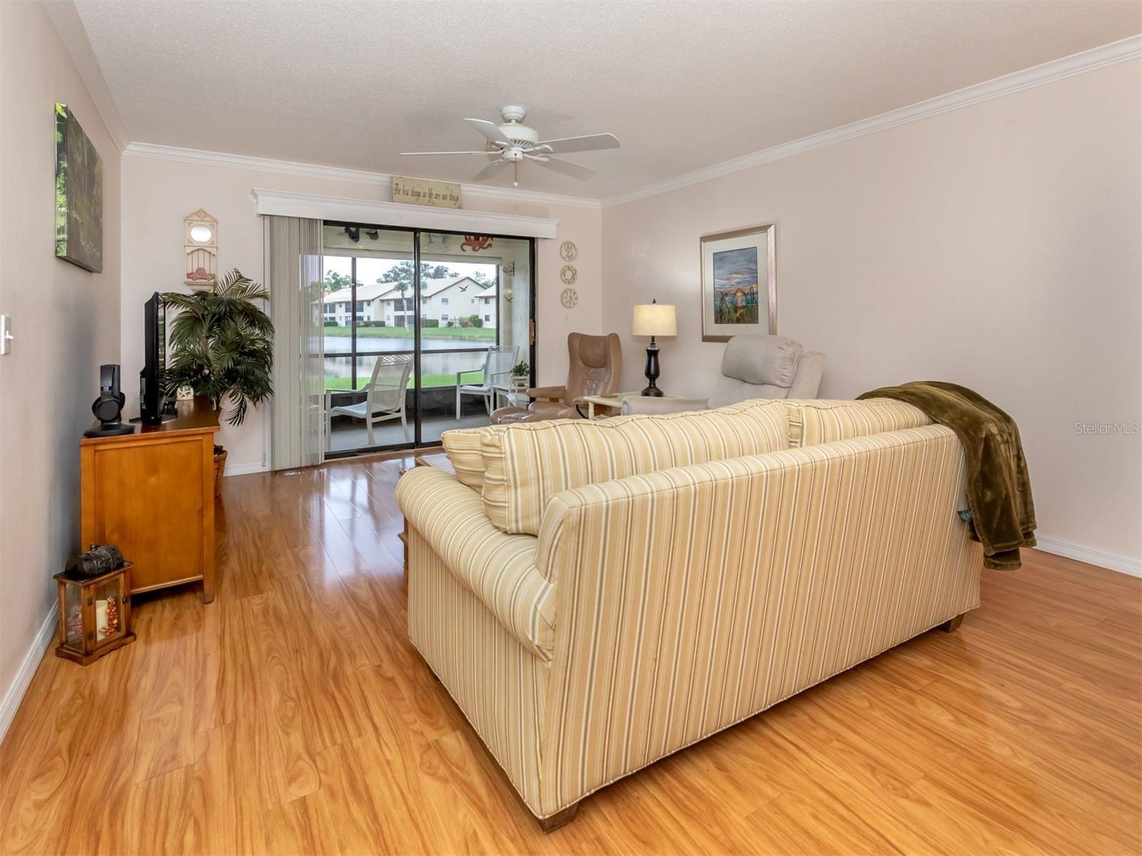 New Price! Captivating tranquil lake views highlight this beautifully renovated FIRST FLOOR 2 bedroom, 2 bath condominium. TURNKEY FURNISHED & move in ready! New hot water systems 08/24. Cook's kitchen boasts custom soft close solid wood maple shaker cabinets, granite countertop, breakfast bar, two convection ovens, newer stainless refrigerator with an ice maker, pantry & Tray ceiling with recessed lighting. Easy care with hardwood laminate flooring throughout, fans in every room for comfort, PLANTATION SHUTTERS & crown Molding. Bathrooms have custom cabinets & granite counters. The primary bath has a stunningly updated tile shower and unique designed walk-in closet. Enjoy the relaxing lanai that showcases the water view, nature & variety of birds & wildlife. Home only used seasonally. Mission Lakes is a perfect location, only 3 miles to historic downtown Venice, pristine Gulf of Mexico beaches, fine dining & shopping. Each unit has a private storage for beach chairs & bikes plus covered carport. Most of all, the community offers 3 heated pools for your enjoyment. Quarterly maintenance fees to include, cable TV Service, water, sewer, trash/recycling, Escrow reserves, Maintenance exterior, grounds, community Pool & private road. This is truly a hidden gem. Great investment for leasing income, can rent monthly, vacation getaway or full time living. Schedule a showing today!