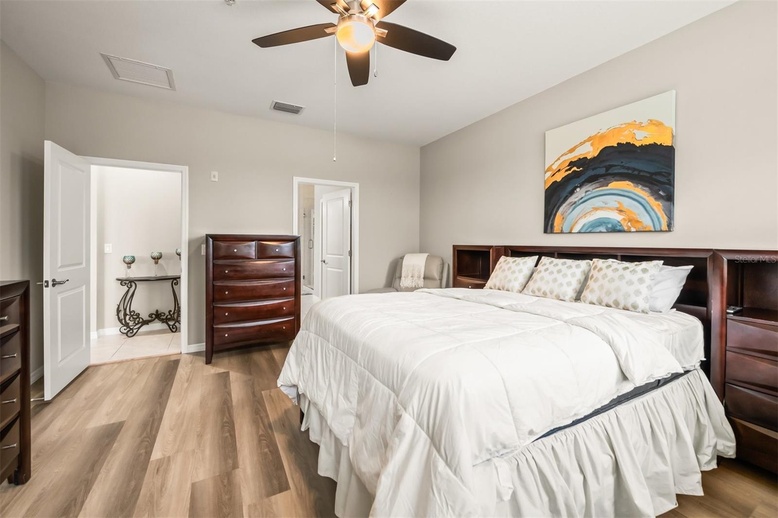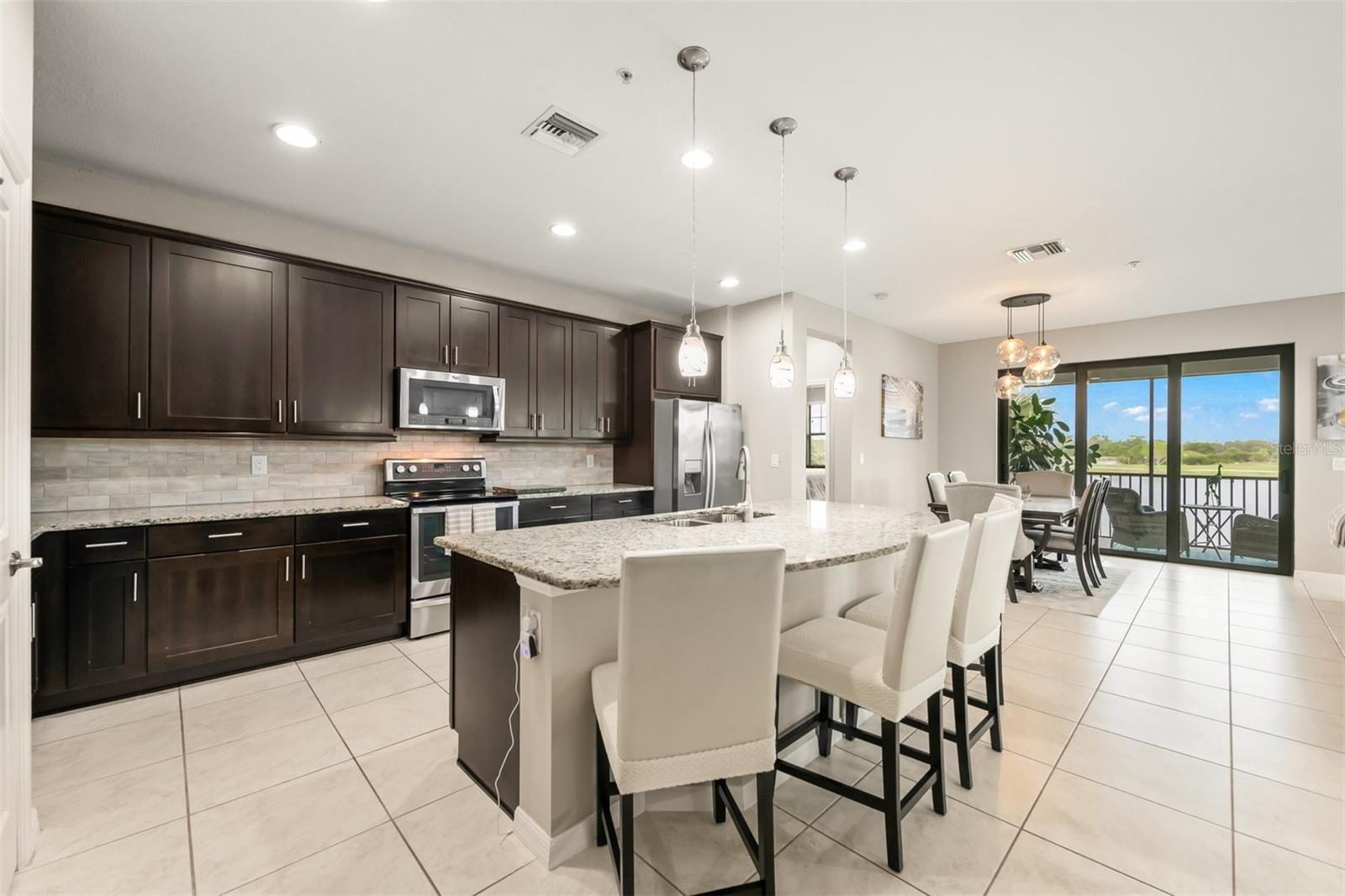 Motivated Seller HUGE PRICE IMPROVENMENT !!Sarasota National is a beautiful golf course community located in Venice, with so much to offer within your neighborhood. Amongst the nature preserves, the wetlands, the wide open spaces, the bike trails, walking trails and the meticulously manicured 18-hole golf course, you will find a lovely second-floor condominium. This property comes with two deeded golf memberships. You will be challenged and at the same time enjoy playing golf on the Gordon B Lewis designed championship course. Come inside for a tour. Your entrance is either through the front door or directly in from a two-car garage, greeted by a spacious foyer with high ceilings. The stairway to the second floor has beautiful hardwood steps or take a quick ride on the chair lift. Come on up to a beautiful floor plan, a very spacious, bright open great room. The view is just as spectacular, with the sliders opening to a expansive screened lanai. Sit a while and enjoy the water view as well as the wildlife. Across the pond you will catch a few golfers for your afternoon entertainment. A perfect place to enjoy the cool mornings on the Gulf Coast of Florida and again at dusk and sunsets just perfect. This condominium is great for entertaining, with the open kitchen and counter high island where everyone will be sure to gather around when it is time to mingle. The primary bedroom is just off the kitchen and enjoys a beautiful water view as well. The condominium has a nice space for taking in a sporting event from the great room as well. If it is amenities you are looking for, look no further, there is something for everyone here at Sarasota National, a resort pool, tennis courts, bocce ball, pickleball, spa, pool side Tiki bar and yes there is a dog park. This is one community you must see to appreciate all it has to offer. Now you are also just a few miles from Wellen Park, where you will find some great new restaurants, waterside activities, shopping and of course Atlanta Braves CoolToday Park. Catch a ball game, fireworks, farmers market you will find the entertainment is endless. One-of-a-kind community here in Sarasota County.