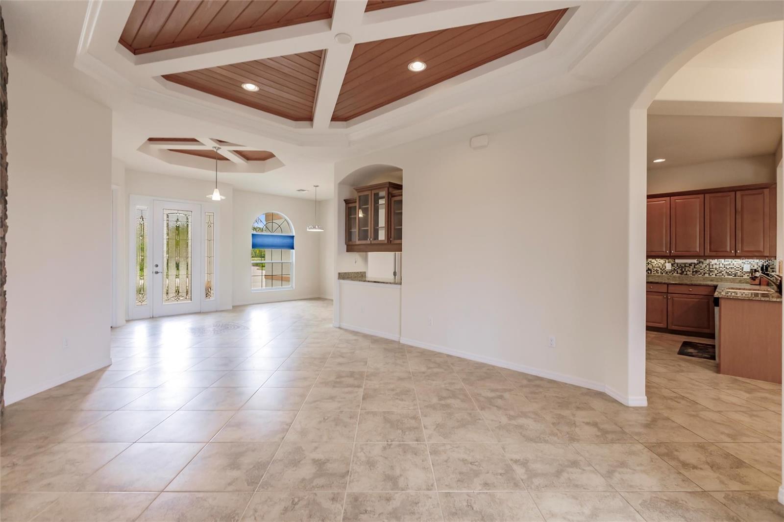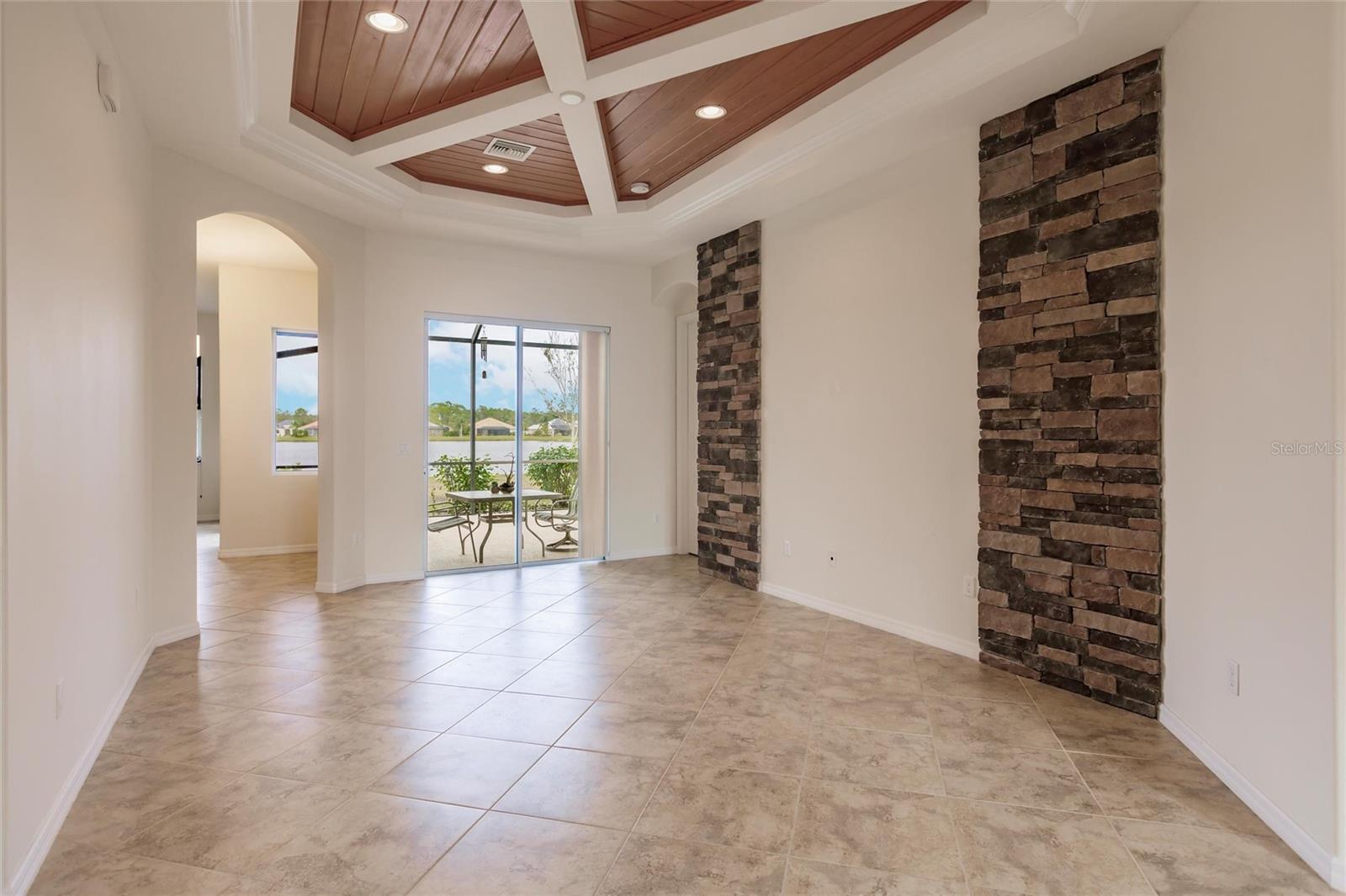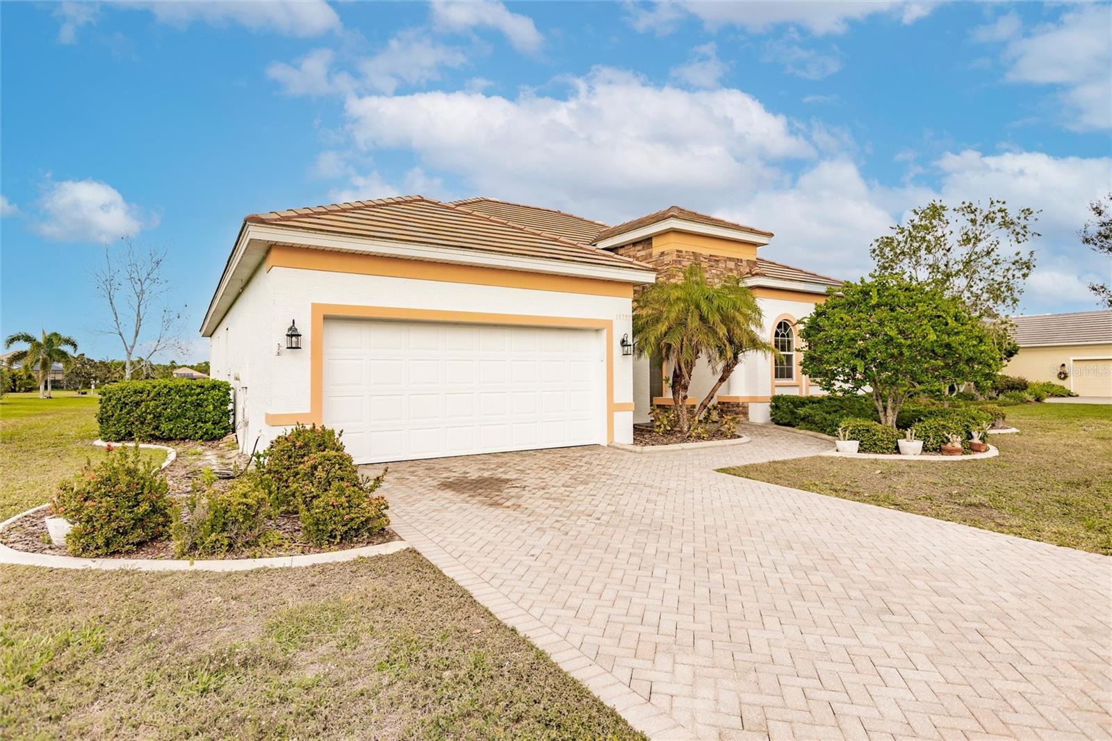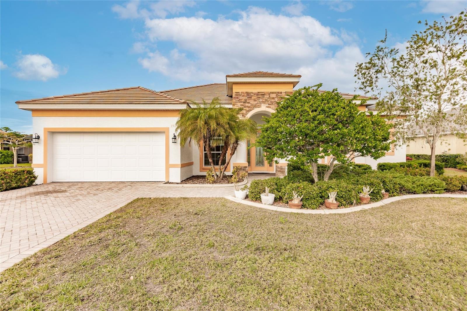 Welcome to Stone Walk, set apart to give a private feeling but remaining close to everything Venice has to offer. This three bedroom, plus office, two bathroom, two car garage home is placed lakefront on an oversized lot. Granite counters and stainless steel appliances in the kitchen that opens up to a family room. Custom wood finished tray ceilings in the impressive entryway and living room. Extra storage and bar area off formal dinning room. The primary suite offers dual sinks, a jetted soaker tub and expansive walk in shower. Lake views from living spaces, kitchen, and primary bedroom. Enjoy your morning coffee or sunset dinner on the over sized screened lanai.