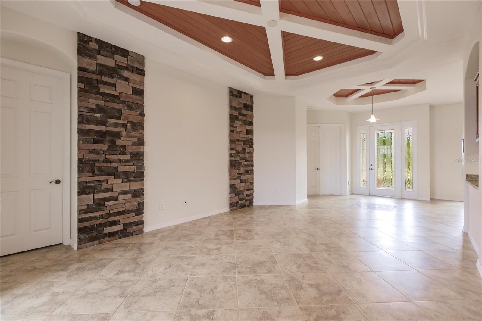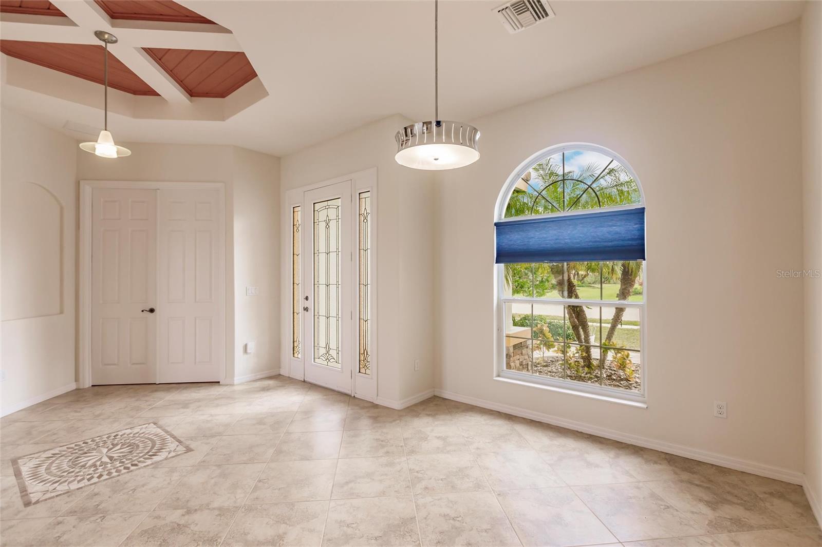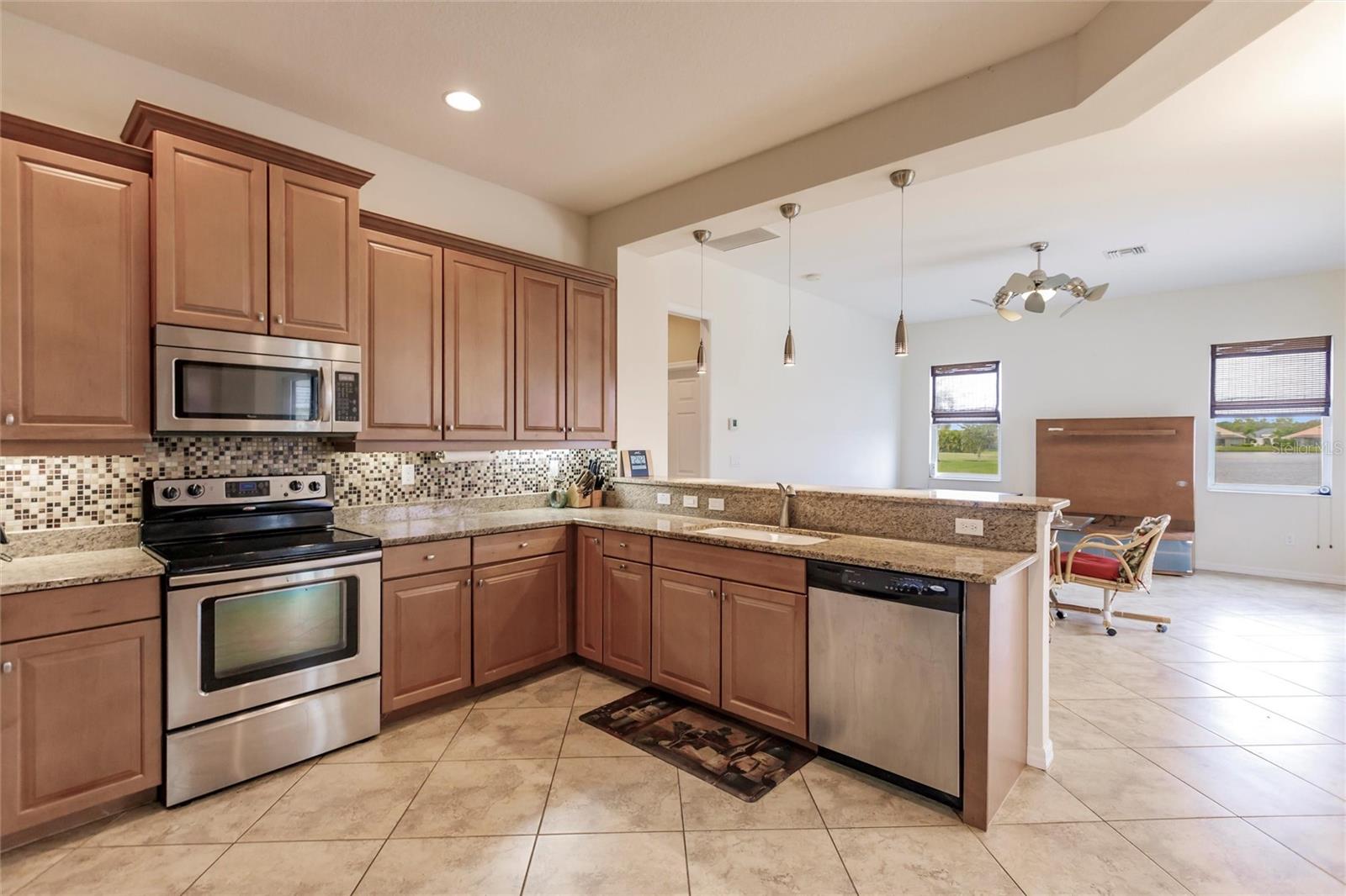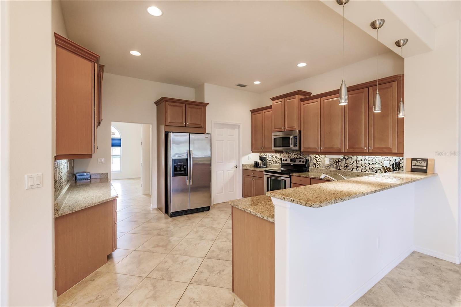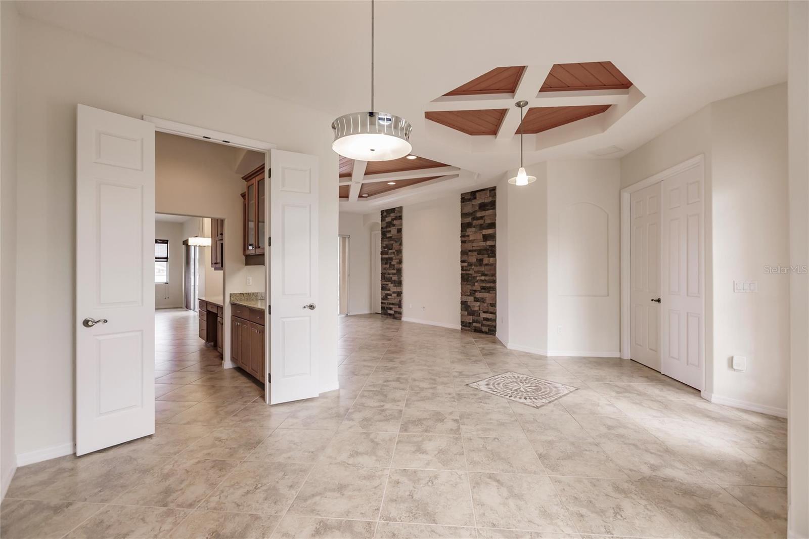 Welcome to Stone Walk, set apart to give a private feeling but remaining close to everything Venice has to offer. This three bedroom, plus office, two bathroom, two car garage home is placed lakefront on an oversized lot. Granite counters and stainless steel appliances in the kitchen that opens up to a family room. Custom wood finished tray ceilings in the impressive entryway and living room. Extra storage and bar area off formal dinning room. The primary suite offers dual sinks, a jetted soaker tub and expansive walk in shower. Lake views from living spaces, kitchen, and primary bedroom. Enjoy your morning coffee or sunset dinner on the over sized screened lanai.