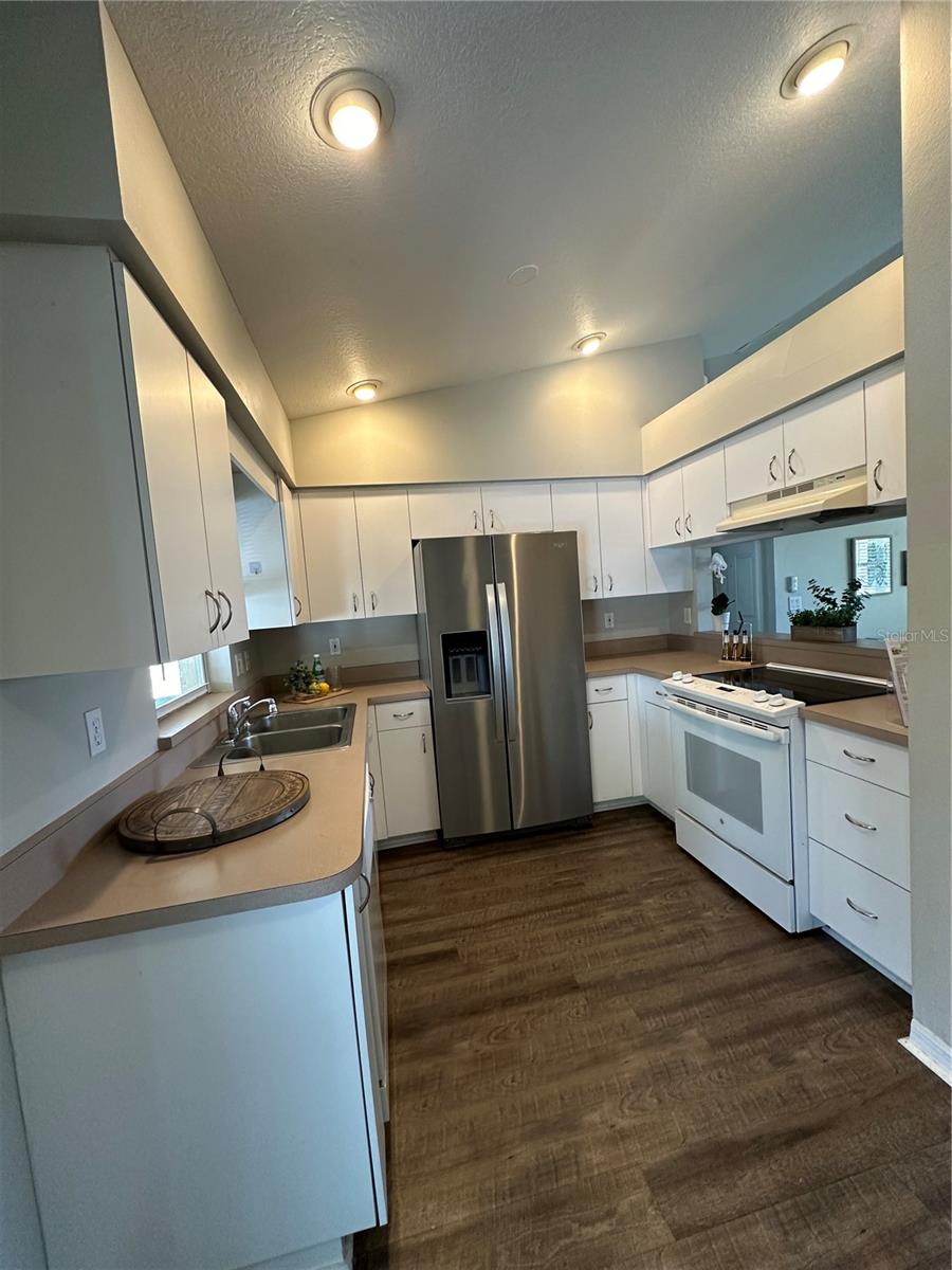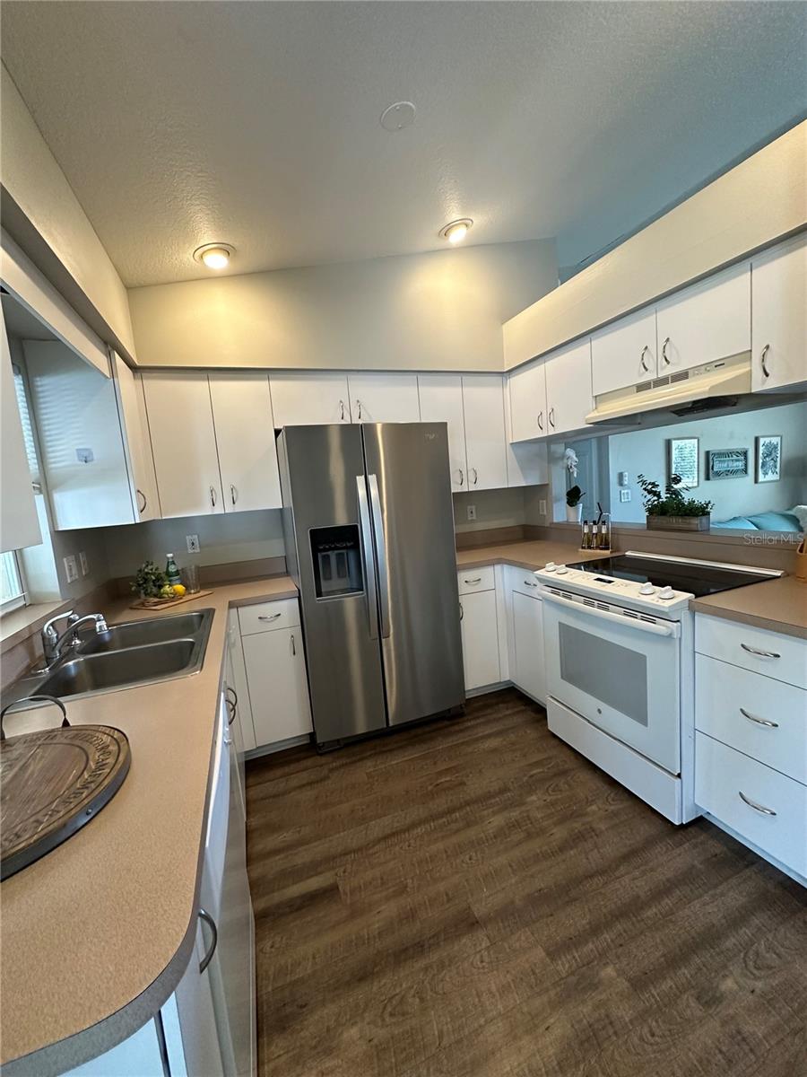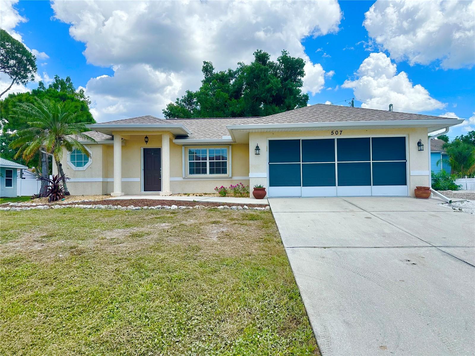 This lovely two bedroom home has two bathrooms and a two car garage with a walk up attic, additional screen garage door, and special generator outlet. It is situated in a quiet neighborhood close to Manasota, Englewood and Venice Beaches. A spacious living room with vaulted ceilings flows easily into the dining room and sliders to the large screened lanai. The master bedroom has a walk in closet plus an extra closet and an ensuite bathroom with a large shower and separate tub. On the other side of the living room, you will find another bedroom and bathroom. Recent upgrades include a NEW ROOF in 2021, NEW AC 2023, NEW gutters 2021, NEW Hot water tank 2023, NEW water softener 2022, NEW flooring throughout the whole home in 2020. (no carpet), painting 2020, and stainless refrigerator. Enjoy your morning coffee in the 22 foot long screened and covered lanai overlooking a fenced in back yard with a handy storage shed. There is also an additional outdoor patio for grilling and sunbathing. As a resident of this home, you have the unique opportunity to join the South Venice Civic Association that allows you access to a private boat ramp and a pass for the ferry to your own private beach on the Gulf of Mexico for a small annual fee. So come enjoy the lovely sunsets at the local beaches or the quaint Venice downtown with its fabulous farmer's market, delightful restaurants, and wonderful shops. Furniture is negotiable. Enjoy lots of sunsets at Manasota Beach only 4.7 miles away, Venice Beach 5.4 miles, Middle Beach 8 miles, Blind Pass Beach Park 8.3 miles or Englewood Beach less than 10 miles away.