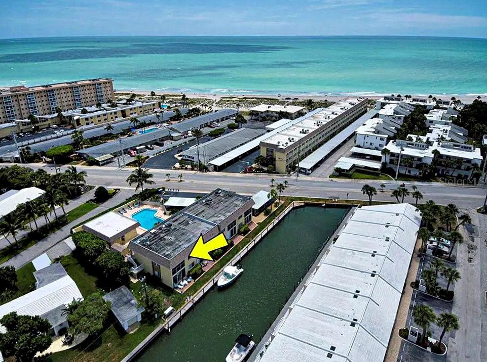 PRICE REDUCTON MOTIVATED SELER. Water views from every room and close to everything in Venice. Boat mooring to the rear of the building ,heated pool in front, beaches across the street storage of beach equipment in building across the street. Gorgeous end unit condo on the island of Venice with newly installed impact windows and Plantation shutters. Also a rare in unit washer and dryer for your convenience. Restaurant ,pool, beach and boating all within walking distance from your condo. Location is paramount for those who want to enjoy the beaches, boating and restaurants of downtown Venice. This END UNIT condo is move in ready with all you'll need too enjoy the beautiful sun rises and sunsets of Venice beach.