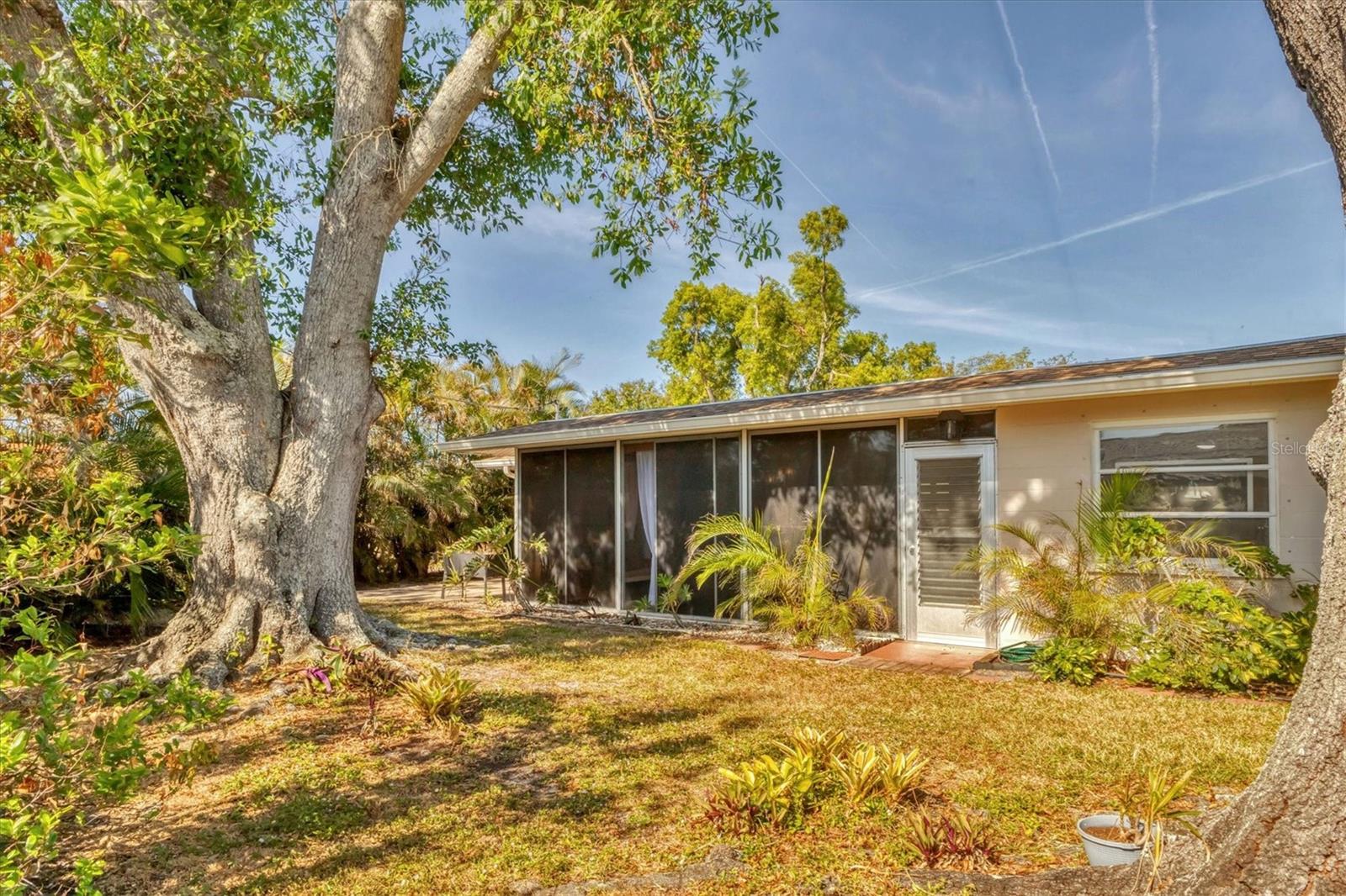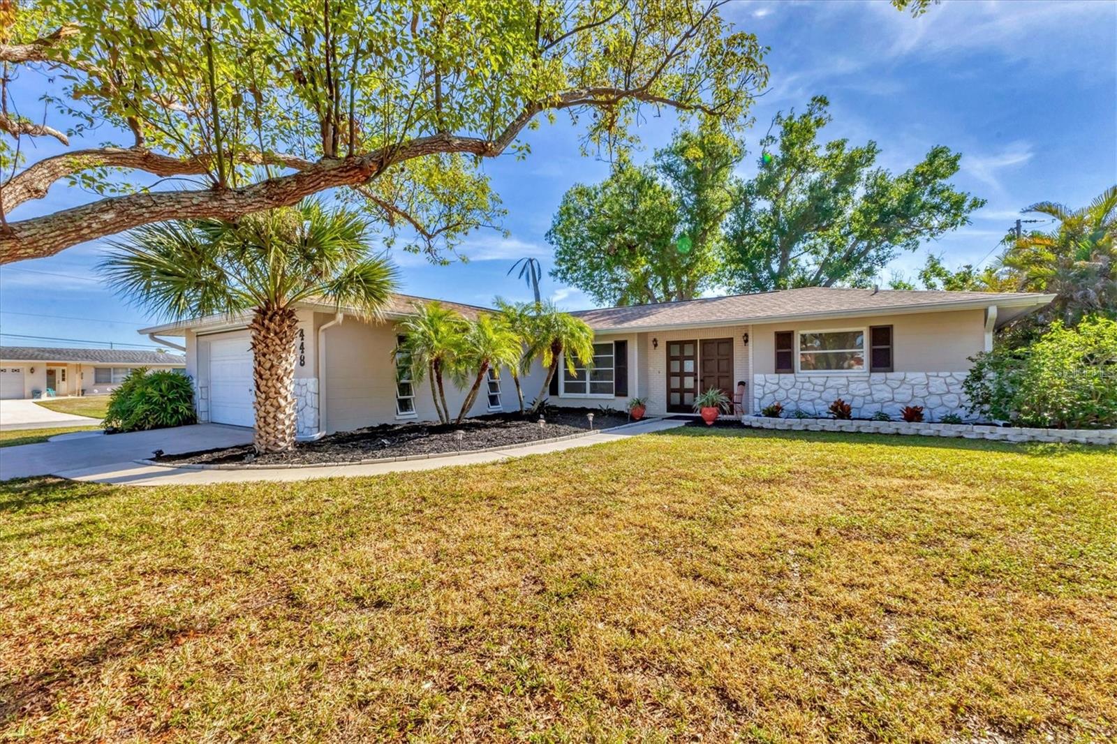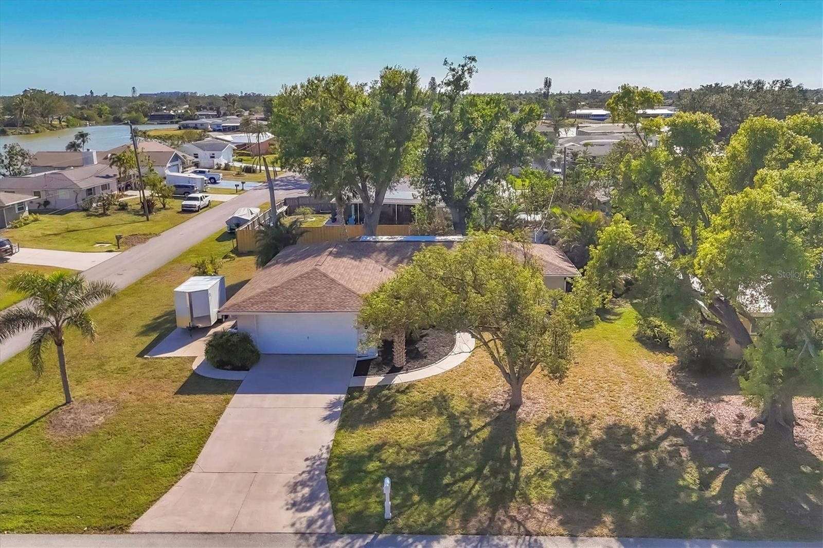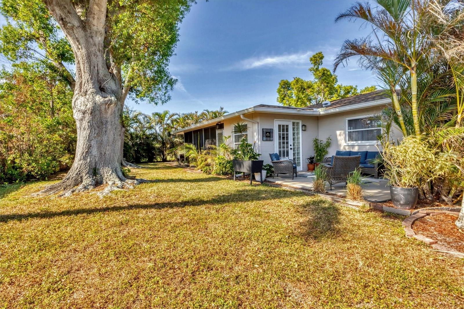 Looking for an assumable Loan? Check out this 2 bed / 2 bath split floorplan with dual primary rooms. NO HOA, NO CDD, Not in a flood zone. No insurance claims in past hurricanes. Block construction, storm buster storm panels, newer roof (2022), Newer HVAC system (2021) newer hot water heater, SS kitchen appliances (2022), Entire house runs on an aqua pure plus water system, Surge protection on the entire house (owned). City Water/Sewer. Plex plumbing, crown molding. A car lovers' paradise! Featuring an oversized double space/garage opener with 2 remotes and hurricane braces. The garage opening features a motorized solar privacy screen to keep pests out and provides privacy and airflow. All your projects can be easily seen with the ample LED lighting installed. Have toys? Bring them too, as you have a concrete RV pad just off the garage. The home has mature, majestic oaks and landscaping that provides privacy and makes you forget you live in town. Home can be turnkey if needed. If you're looking for a little slice of paradise look no further than this home with lots of coastal charm. Additional features community pool, quiet Venice Gardens neighborhood, close to beaches and pelican point golf course, easy access to I-75.