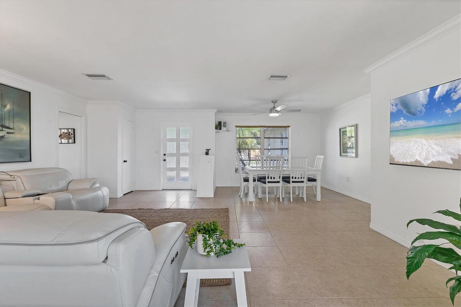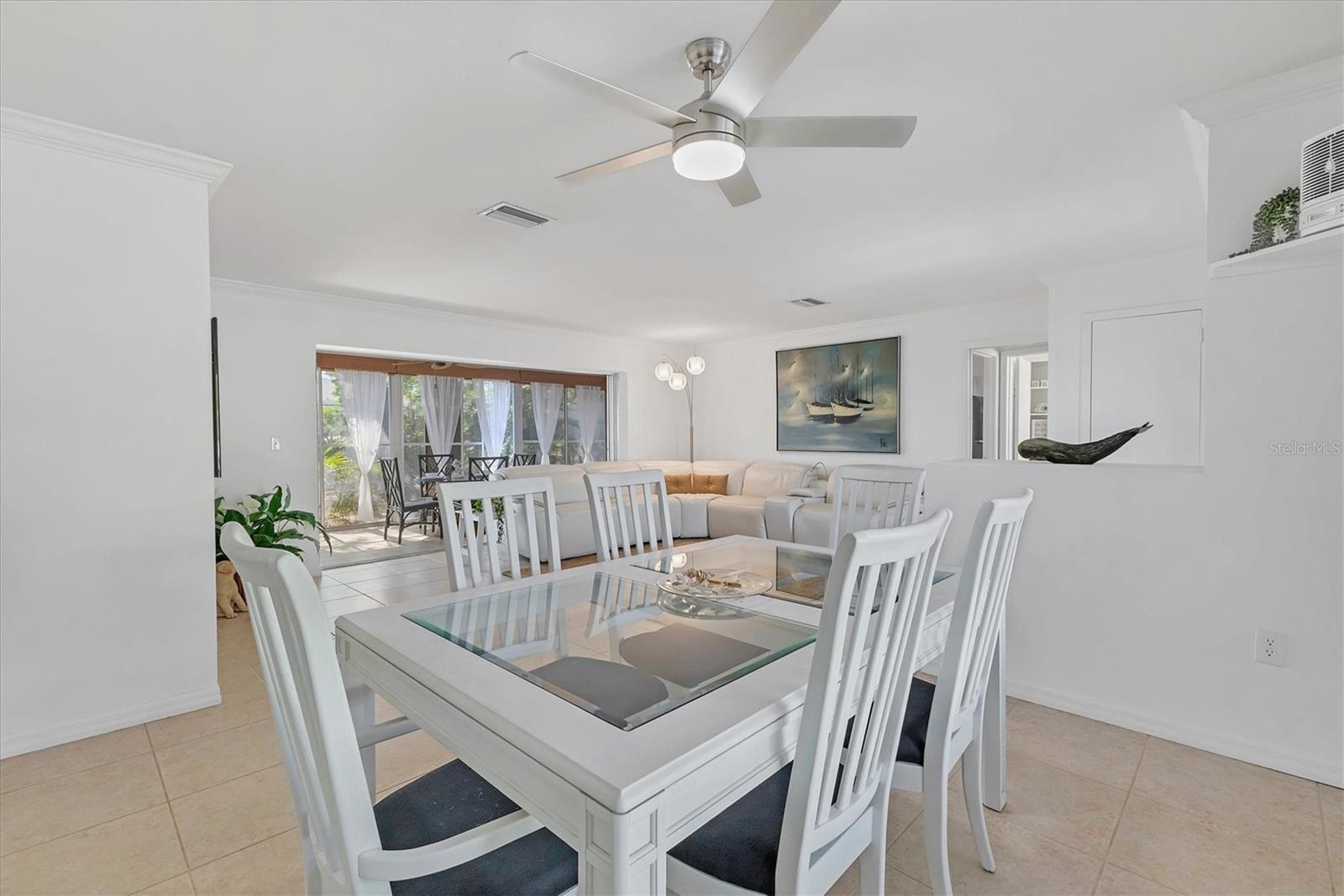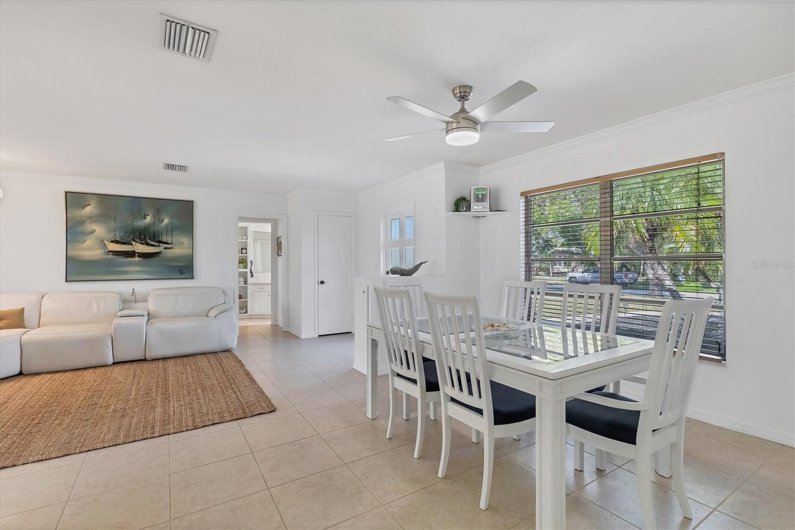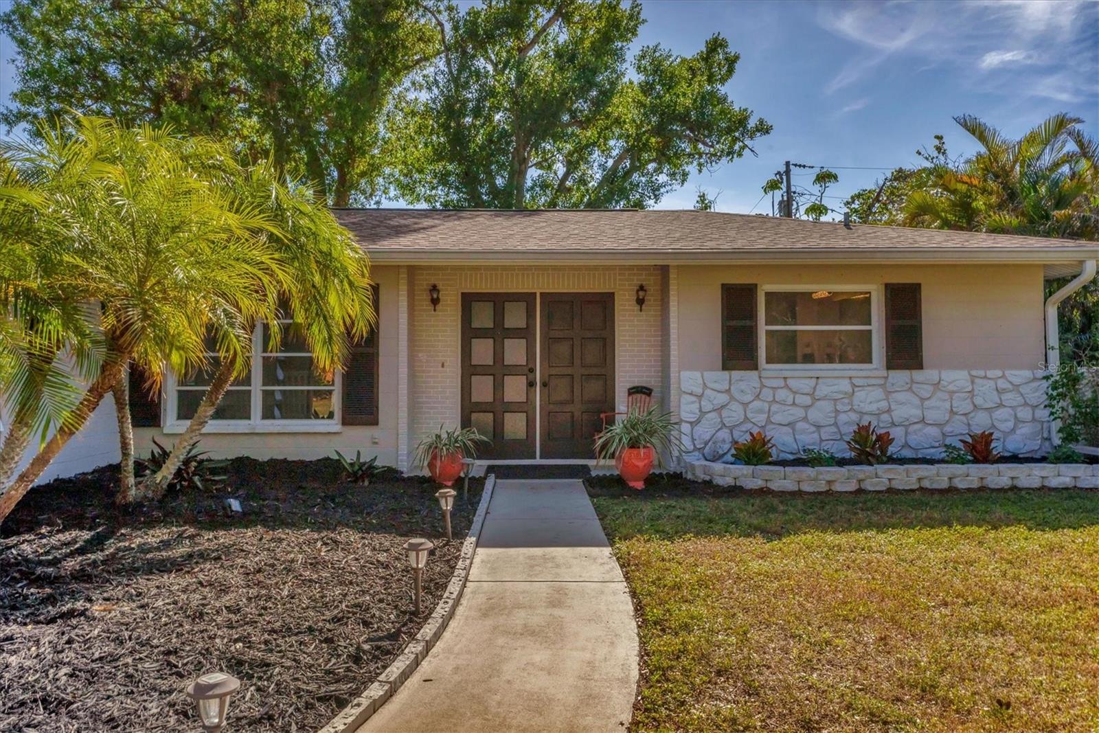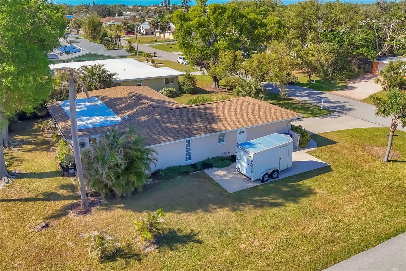 Looking for an assumable Loan? Check out this 2 bed / 2 bath split floorplan with dual primary rooms. NO HOA, NO CDD, Not in a flood zone. No insurance claims in past hurricanes. Block construction, storm buster storm panels, newer roof (2022), Newer HVAC system (2021) newer hot water heater, SS kitchen appliances (2022), Entire house runs on an aqua pure plus water system, Surge protection on the entire house (owned). City Water/Sewer. Plex plumbing, crown molding. A car lovers' paradise! Featuring an oversized double space/garage opener with 2 remotes and hurricane braces. The garage opening features a motorized solar privacy screen to keep pests out and provides privacy and airflow. All your projects can be easily seen with the ample LED lighting installed. Have toys? Bring them too, as you have a concrete RV pad just off the garage. The home has mature, majestic oaks and landscaping that provides privacy and makes you forget you live in town. Home can be turnkey if needed. If you're looking for a little slice of paradise look no further than this home with lots of coastal charm. Additional features community pool, quiet Venice Gardens neighborhood, close to beaches and pelican point golf course, easy access to I-75.