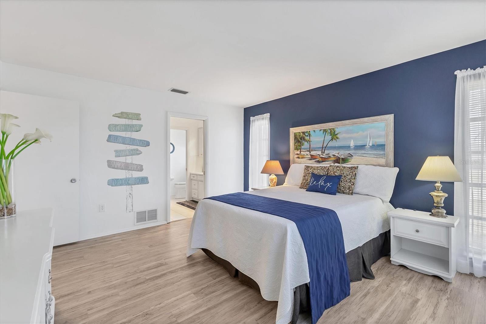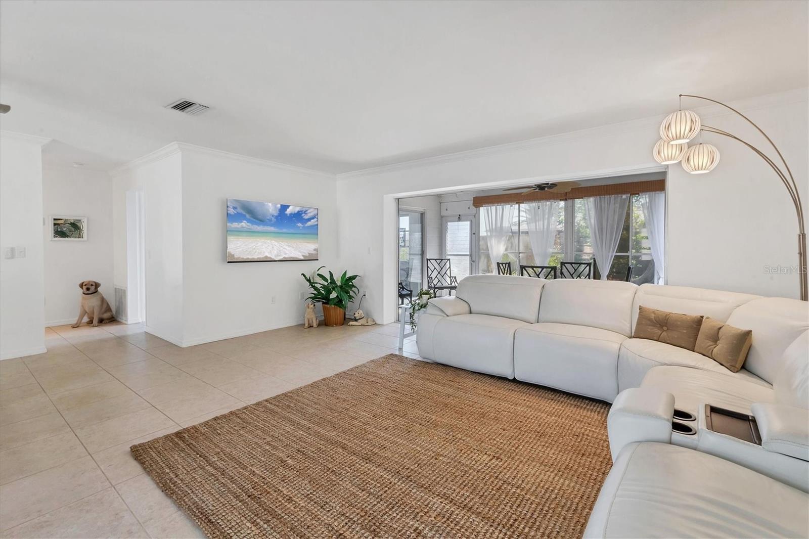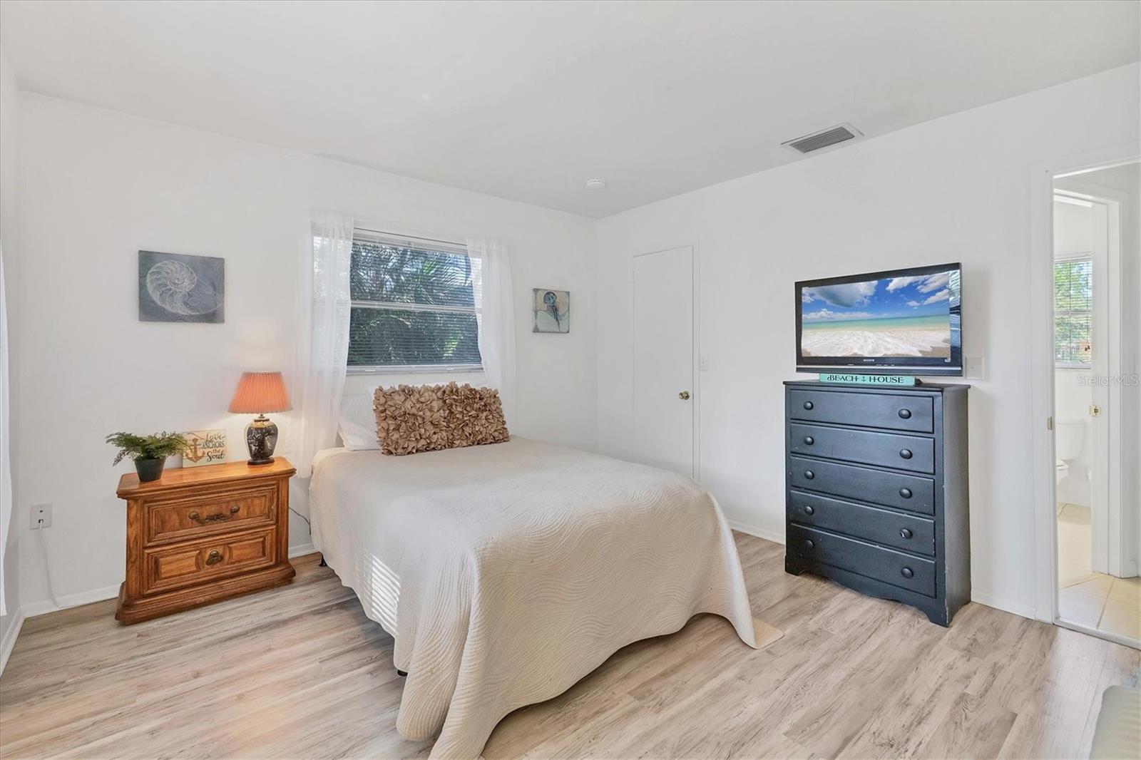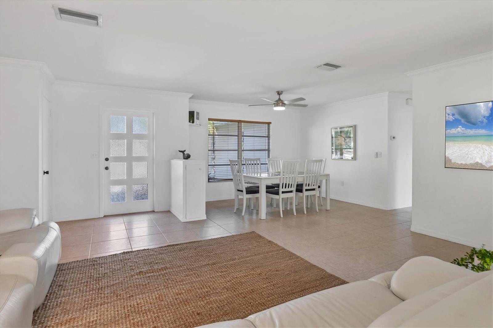 Looking for an assumable Loan? Check out this 2 bed / 2 bath split floorplan with dual primary rooms. NO HOA, NO CDD, Not in a flood zone. No insurance claims in past hurricanes. Block construction, storm buster storm panels, newer roof (2022), Newer HVAC system (2021) newer hot water heater, SS kitchen appliances (2022), Entire house runs on an aqua pure plus water system, Surge protection on the entire house (owned). City Water/Sewer. Plex plumbing, crown molding. A car lovers' paradise! Featuring an oversized double space/garage opener with 2 remotes and hurricane braces. The garage opening features a motorized solar privacy screen to keep pests out and provides privacy and airflow. All your projects can be easily seen with the ample LED lighting installed. Have toys? Bring them too, as you have a concrete RV pad just off the garage. The home has mature, majestic oaks and landscaping that provides privacy and makes you forget you live in town. Home can be turnkey if needed. If you're looking for a little slice of paradise look no further than this home with lots of coastal charm. Additional features community pool, quiet Venice Gardens neighborhood, close to beaches and pelican point golf course, easy access to I-75.