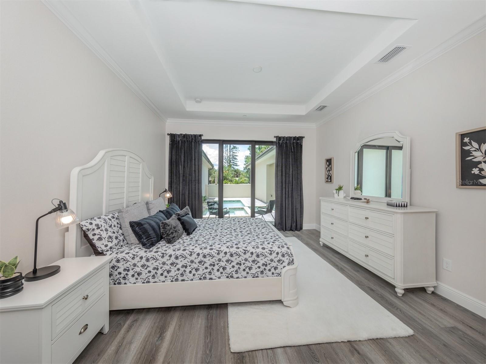 Welcome to the Arcata Del Sol community where there will be a total of 20 beautiful courtyard homes. This stunning two-story courtyard home offers three spacious bedrooms with ensuites. The master bedroom features two closets, one is a walk-in closet. The master ensuite features a walk-in shower and dual sink vanity for your convenience. The master bedroom opens to your private courtyard pool and spa for your morning coffee poolside or a quick dip to start your day off right. The guest bedroom also has an ensuite bathroom with a tub and shower. The second-floor loft area, in addition to the third bedroom and ensuite, has a versatile loft area that can be used as a guest room, game room, or a home office. With plenty of natural light and luxury vinyl plank flooring. The open floor plan features luxury vinyl plank flooring throughout the home and tray ceilings in the front entryway, den, living room, dining room and master bedroom, creating a bright and airy atmosphere. The kitchen boasts GE stainless steel appliances that include electric oven and range, microwave, and dishwasher, and Timberlake cabinetry. The kitchen has quartz countertops, an island, and stainless-steel sink with disposal. The dining area also opens to the private courtyard, where you can enjoy the Florida sunshine on your covered lanai or relax in your sparkling private pool and spa. The laundry room has plenty of storage space. The two-car attached garage has attic access stairs that lead to a large attic space for extra storage. This home is not only beautiful, but also ideally located close to Historic Downtown Venice, where you can experience the charm and culture of this vibrant City. You will find a variety of shops, boutiques, and restaurants to suit your taste, as well as entertainment options for every mood. Whether you want to watch a show at the state of the arts Venice Performing Arts Center or enjoy a free concert at the Gazebo in Centennial Park, you will always have something fun to do. Just bring your own chair or blanket and join the community spirit. If you love the beach, you will love this home even more. You are just minutes away from some of the best beaches on the Gulf of Mexico, where you can find fossilized shark teeth that are millions of years old. Venice Beach is known as the “Shark Tooth Capital of the World, and you can easily spot the dark triangular teeth among the shells and sand. Whether you want to swim, surf, fish, or just relax, you will find your perfect beach here. Visit our beautifully furnished models today. Paradise awaits!