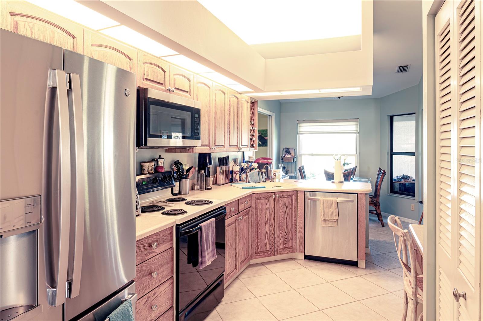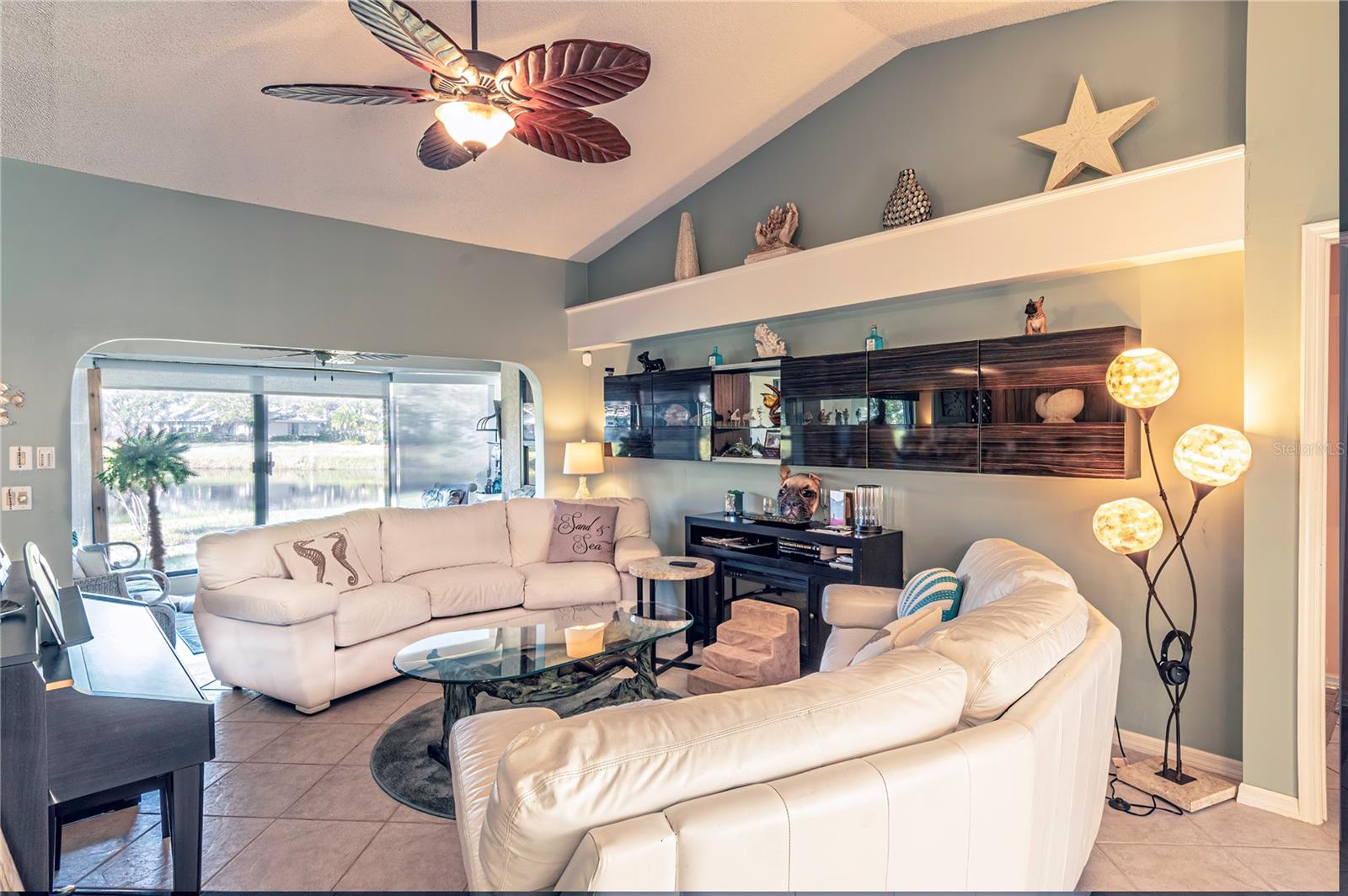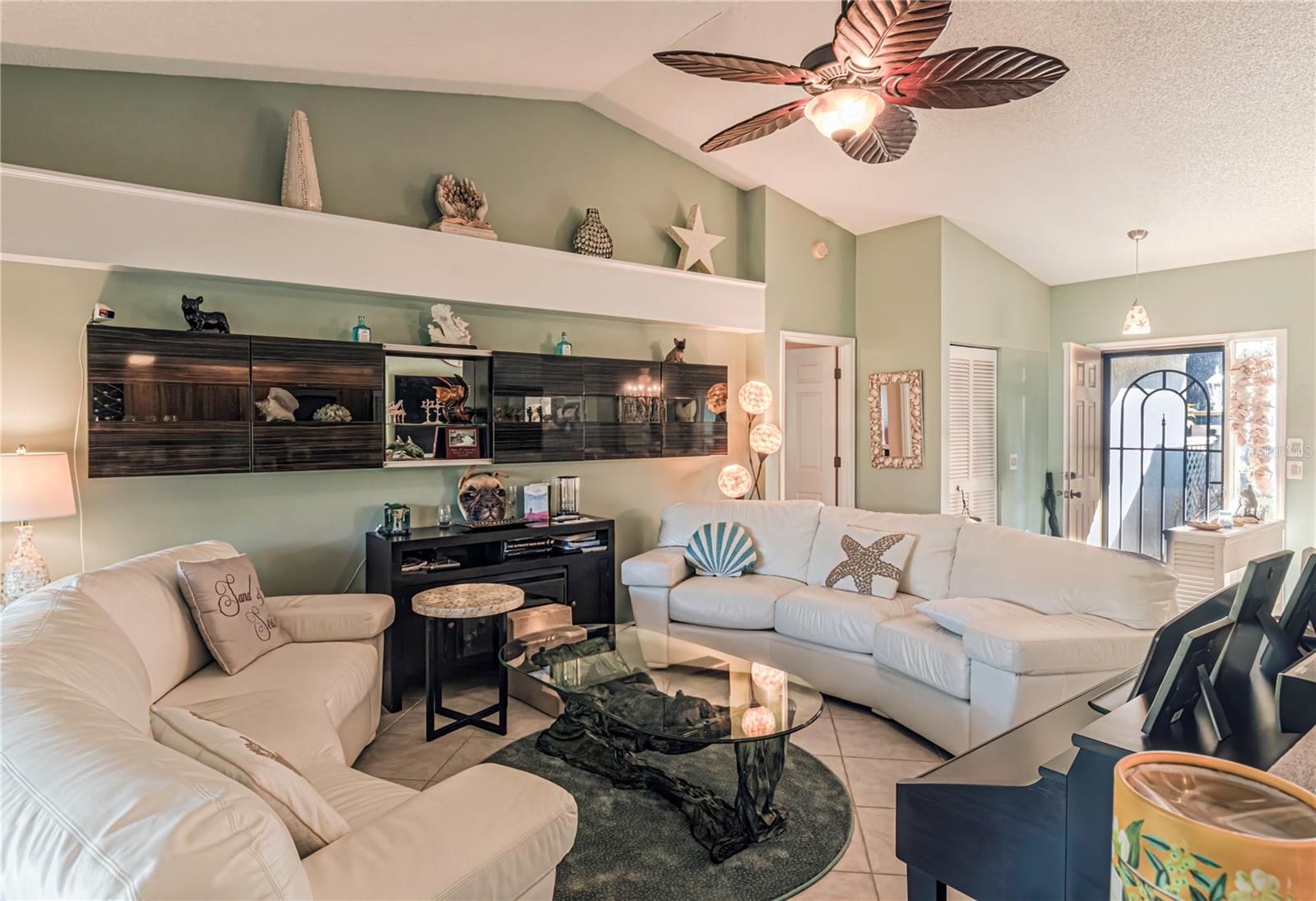 Indulge in Lakefront luxury!! 3 Bedroom plus 2 full bathrooms with bidet. Huge master suit with custom shower, 2 custom made designer sinks and walk-in closet. Dining area and custom window shades flow through the living room with beautiful custom lanai area facing the lakefront. Dinette area with a view of the lake, kitchen with all appliances, central air, outside deck, 2 car garage, title floors, tinted hurricane windows and a newly installed 4k alarm system. Interior washer and dryer and an updated electrical panel.NOTE: chandelier in Dining area will be replaced This perfect blend of luxury and natural beauty is just what you have been waiting for. Your waterfront retreat is waiting for you!!!