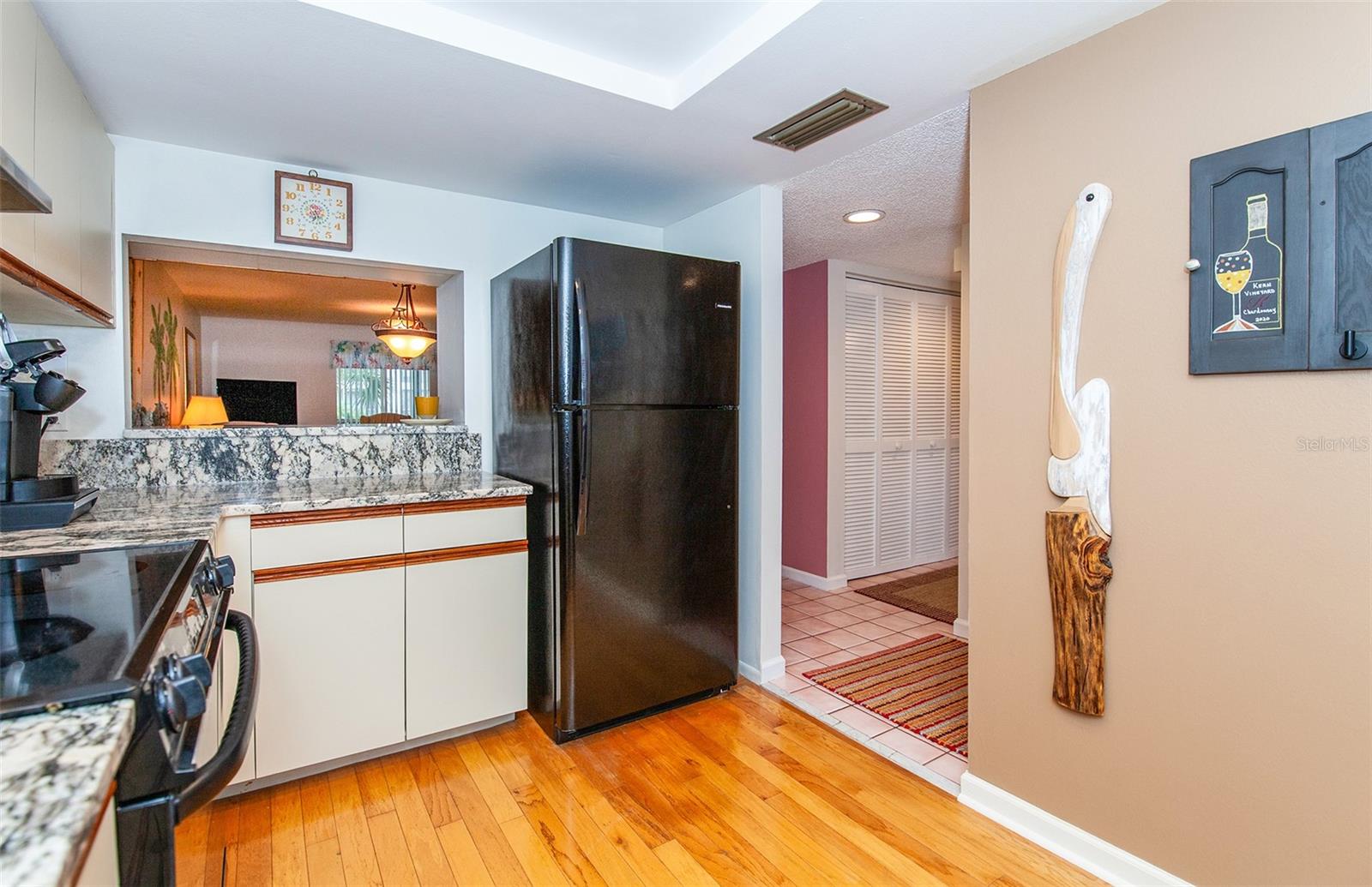 Don't Miss this 2-bedroom, 2-bathroom condo nestled on the first floor, offering the perfect blend of comfort and style. The HOA have updated the waste and water pipes in this unit as a preventive measure. Just another added update! This meticulously maintained residence boasts a host of desirable features, new granite counters and refrigerator, and a tasteful tile backsplash in the kitchen. The kitchen is equipped with a Reverse Osmosis system, ensuring pure and refreshing water. The convenient laundry boasts a new washer and full size dryer. Additional upgrades include a new combination storm/hidden screen front door, Living area carpet, updated guest bath and new outdoor fans. Sep out onto the screened balcony to discover a serene oasis overlooking a picturesque pond with a tranquil fountain. The outdoor space is complemented by two generously sized storage sheds, providing ample room for your belongings.This condo is not just a home; it's a lifestyle. Residents can enjoy the community amenities, including a sparkling pool for relaxation and a newly installed roof for added peace of mind. The convenience of assigned covered parking adds a touch of luxury to daily living. Situated close to downtown Venice, this condo offers easy access to a vibrant array of shopping and delectable restaurants. Immerse yourself in the charm of this coastal town, and explore the best beaches on the Suncoast . Don't miss the opportunity to make this condo your own, where every detail has been thoughtfully curated for a seamless blend of convenience and sophistication. Welcome home to a life of comfort, style, and the allure of coastal living.