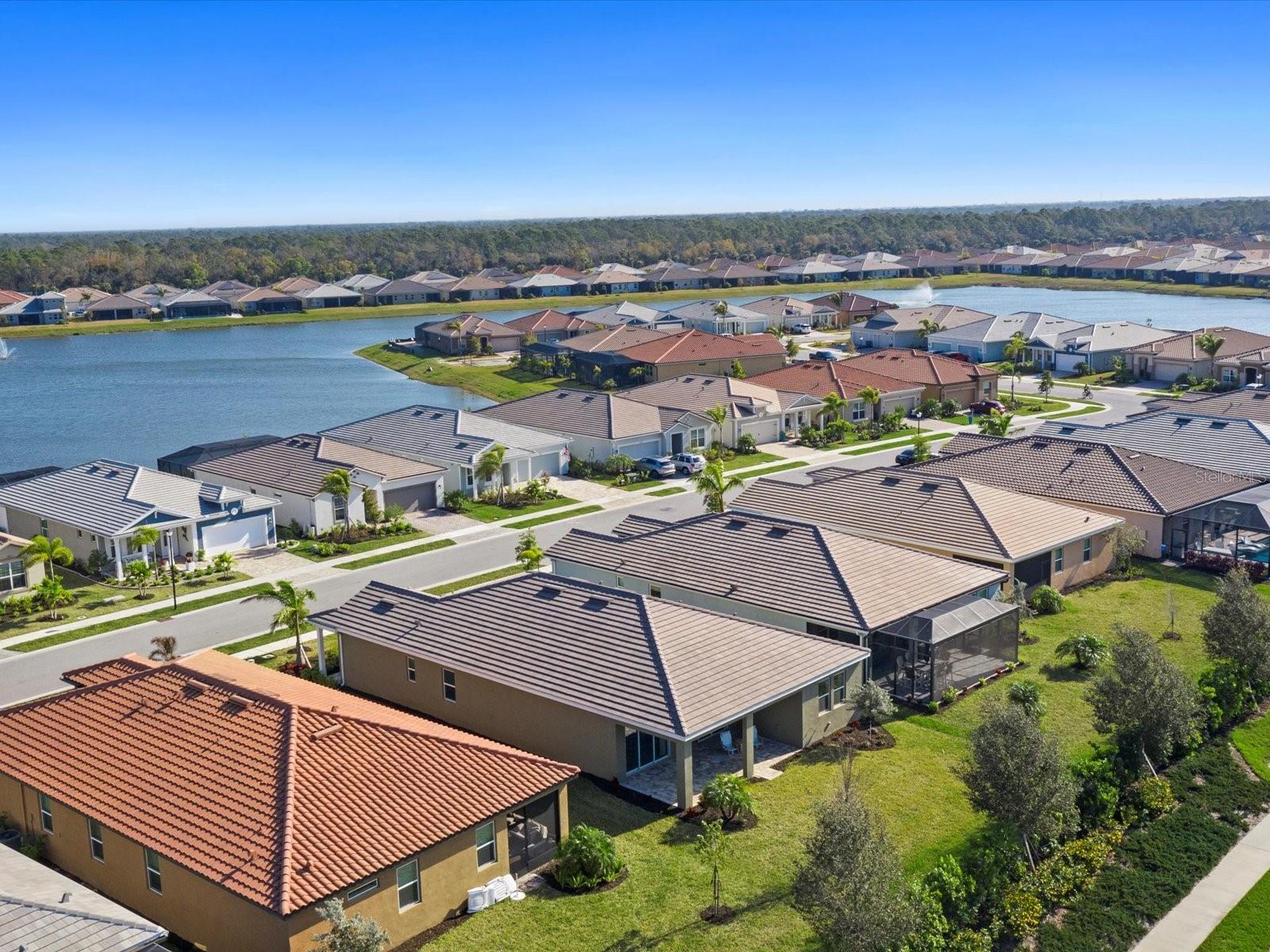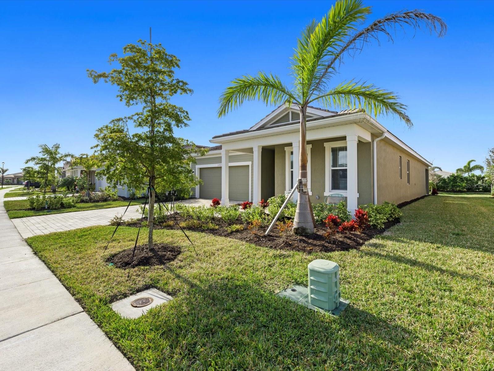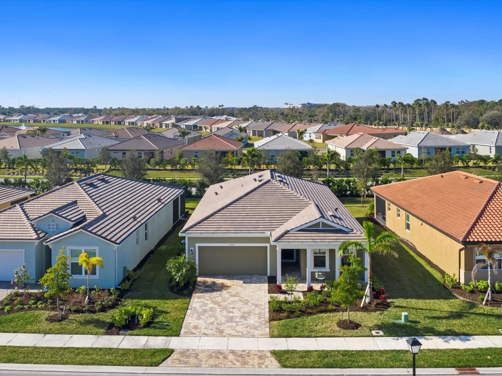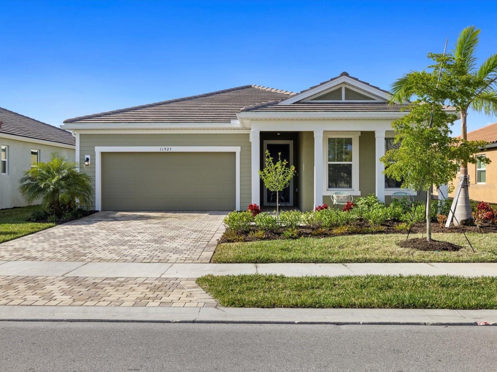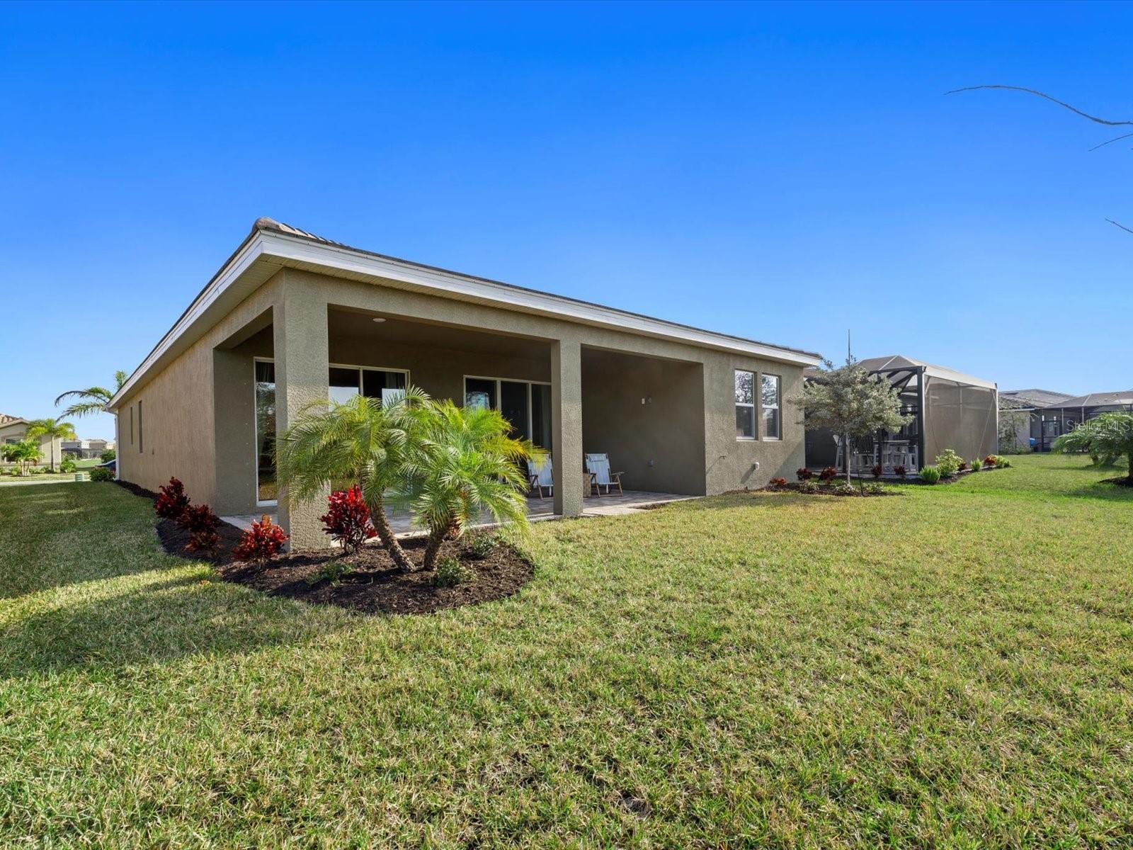 RESORT STYLE AMENITIES. MAINTENANCE FREE. EXTENDED LANAI. COVERED FRONT PORCH. 3 BEDROOM PLUS DEN/2 BATH/ 2 CAR GARAGE. SPLIT/OPEN FLOOR PLAN. Indulge in resort-style living with unparalleled convenience in the Renaissance Community at Wellen Park. This meticulously maintained, one-year-old home offers a plethora of amenities and an ideal location just under a mile from Costco. The community boasts resort-style amenities, including a pool and spa, a state-of-the-art fitness center, and outdoor recreation facilities such as tennis, pickleball, bocce ball, a fire pit, and a paw park. A full-time activities director ensures a vibrant social calendar, while the gated entry provides peace of mind. The prime location puts Costco within easy reach, less than a mile away, and CoolToday Park is just a short distance from home, hosting Atlanta Braves Spring Training games, holiday events, concerts, movie nights, and a year-round Tiki Bar. Nearby shopping includes Publix, an Italian restaurant, a frozen yogurt shop, a sushi bar, and a tap house. For a more extensive outing, take your golf cart to downtown Wellen Park for fine dining, boutique shopping, and live music on most nights. The home itself exudes comfort and convenience, featuring an extended lanai pre-plumbed for an outdoor kitchen, a covered front porch, a split/open floor plan, and a spacious 2,098 square foot Aurora II model layout. As you approach, a welcoming pavered driveway leads to the covered front porch. Inside, a spacious foyer opens to a true split floor plan with guest bedrooms at the front and a full bathroom with a shower/tub combination. A large den/office/bonus room offers versatile space, while the kitchen, living, and dining areas are bathed in natural light through double sets of sliding glass doors. The kitchen is adorned with quartz countertops, stainless steel appliances, designer pendant lighting, and a large corner pantry. The expansive living area features a designer ceiling fan, and the primary suite boasts dual vanities, an oversized walk-in shower, a linen closet, a separate water closet, and a walk-in closet. This home is a must-see in the highly sought-after Renaissance Community, where resort-style living and unparalleled convenience converge. Copy and Past this link for a video https://iframe.videodelivery.net/6292065d851de0046d982f16e1a322ff
