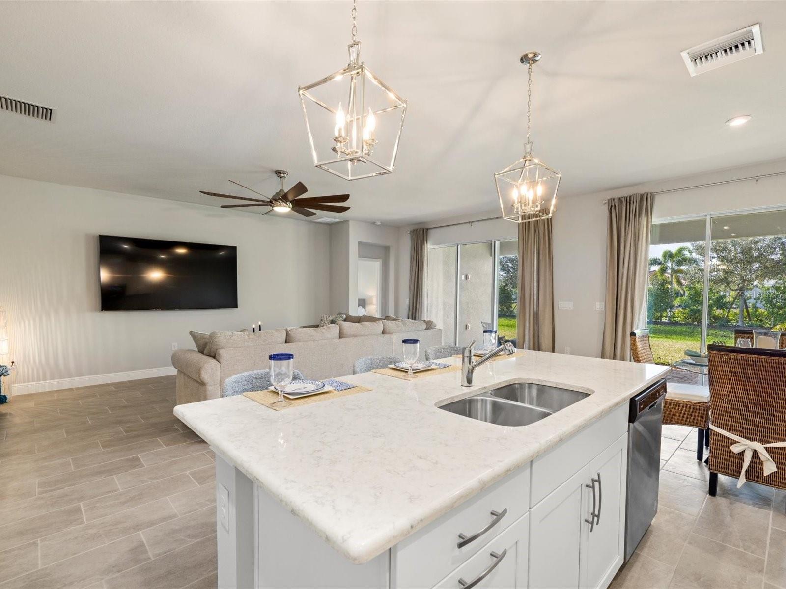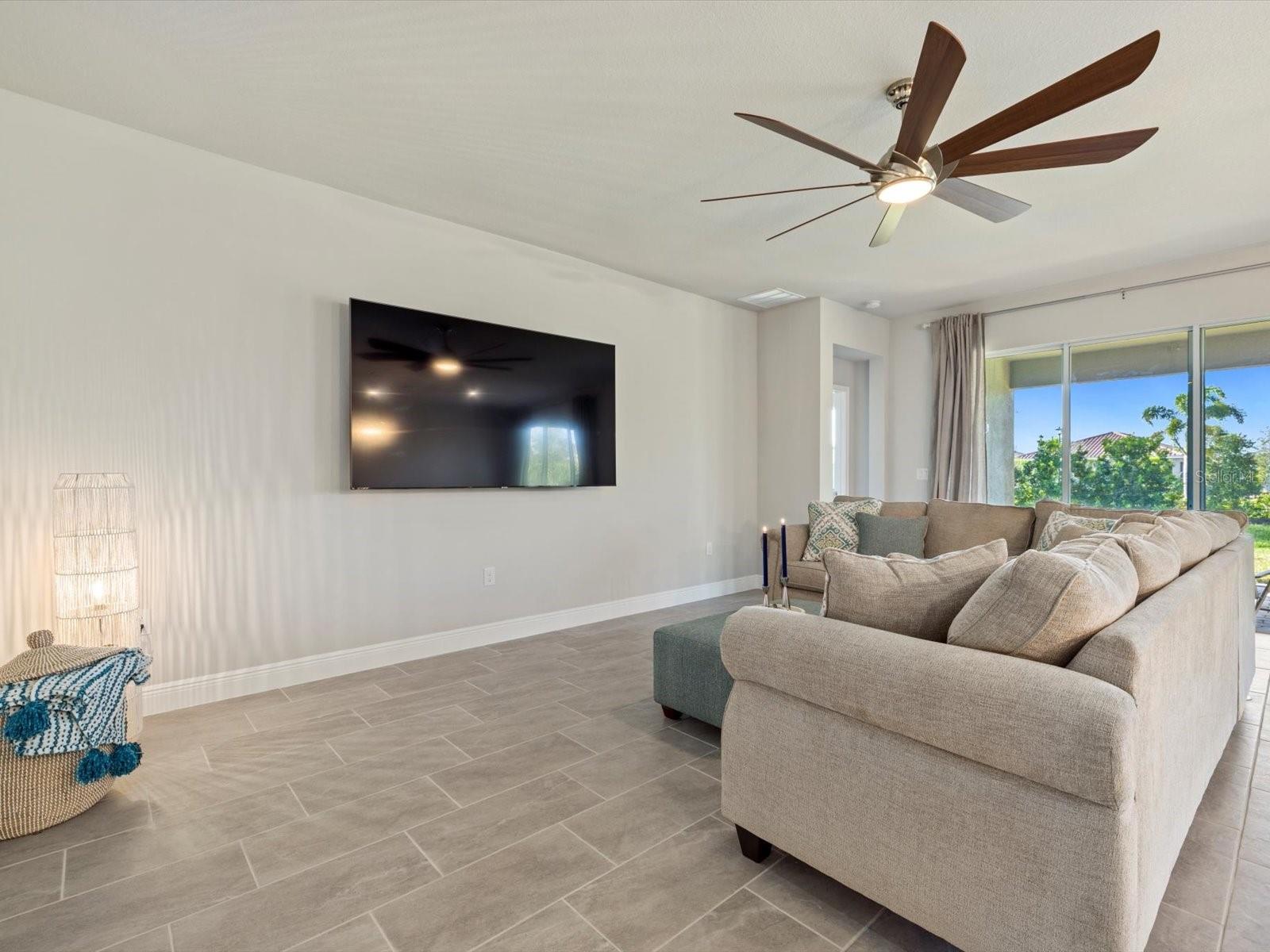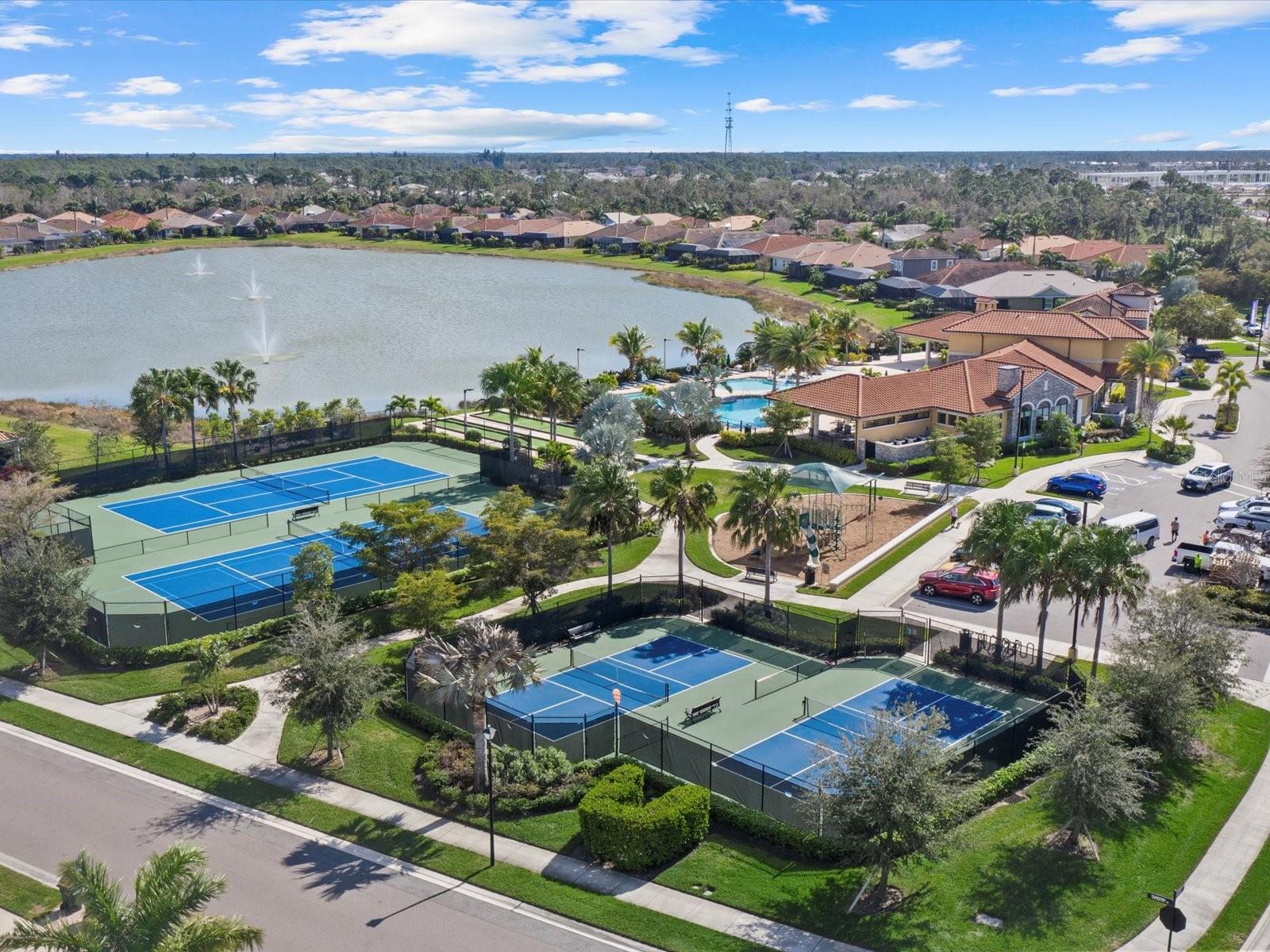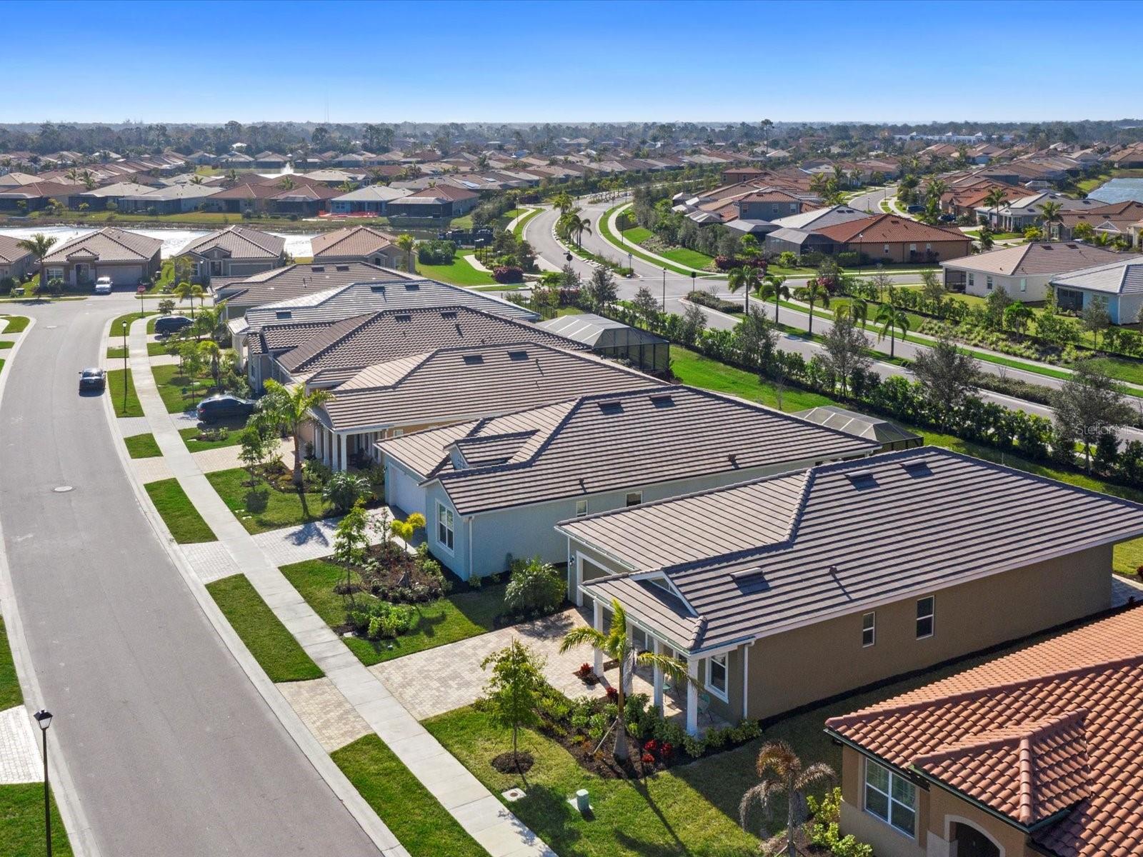 RESORT STYLE AMENITIES. MAINTENANCE FREE. EXTENDED LANAI. COVERED FRONT PORCH. 3 BEDROOM PLUS DEN/2 BATH/ 2 CAR GARAGE. SPLIT/OPEN FLOOR PLAN. Indulge in resort-style living with unparalleled convenience in the Renaissance Community at Wellen Park. This meticulously maintained, one-year-old home offers a plethora of amenities and an ideal location just under a mile from Costco. The community boasts resort-style amenities, including a pool and spa, a state-of-the-art fitness center, and outdoor recreation facilities such as tennis, pickleball, bocce ball, a fire pit, and a paw park. A full-time activities director ensures a vibrant social calendar, while the gated entry provides peace of mind. The prime location puts Costco within easy reach, less than a mile away, and CoolToday Park is just a short distance from home, hosting Atlanta Braves Spring Training games, holiday events, concerts, movie nights, and a year-round Tiki Bar. Nearby shopping includes Publix, an Italian restaurant, a frozen yogurt shop, a sushi bar, and a tap house. For a more extensive outing, take your golf cart to downtown Wellen Park for fine dining, boutique shopping, and live music on most nights. The home itself exudes comfort and convenience, featuring an extended lanai pre-plumbed for an outdoor kitchen, a covered front porch, a split/open floor plan, and a spacious 2,098 square foot Aurora II model layout. As you approach, a welcoming pavered driveway leads to the covered front porch. Inside, a spacious foyer opens to a true split floor plan with guest bedrooms at the front and a full bathroom with a shower/tub combination. A large den/office/bonus room offers versatile space, while the kitchen, living, and dining areas are bathed in natural light through double sets of sliding glass doors. The kitchen is adorned with quartz countertops, stainless steel appliances, designer pendant lighting, and a large corner pantry. The expansive living area features a designer ceiling fan, and the primary suite boasts dual vanities, an oversized walk-in shower, a linen closet, a separate water closet, and a walk-in closet. This home is a must-see in the highly sought-after Renaissance Community, where resort-style living and unparalleled convenience converge. Copy and Past this link for a video https://iframe.videodelivery.net/6292065d851de0046d982f16e1a322ff