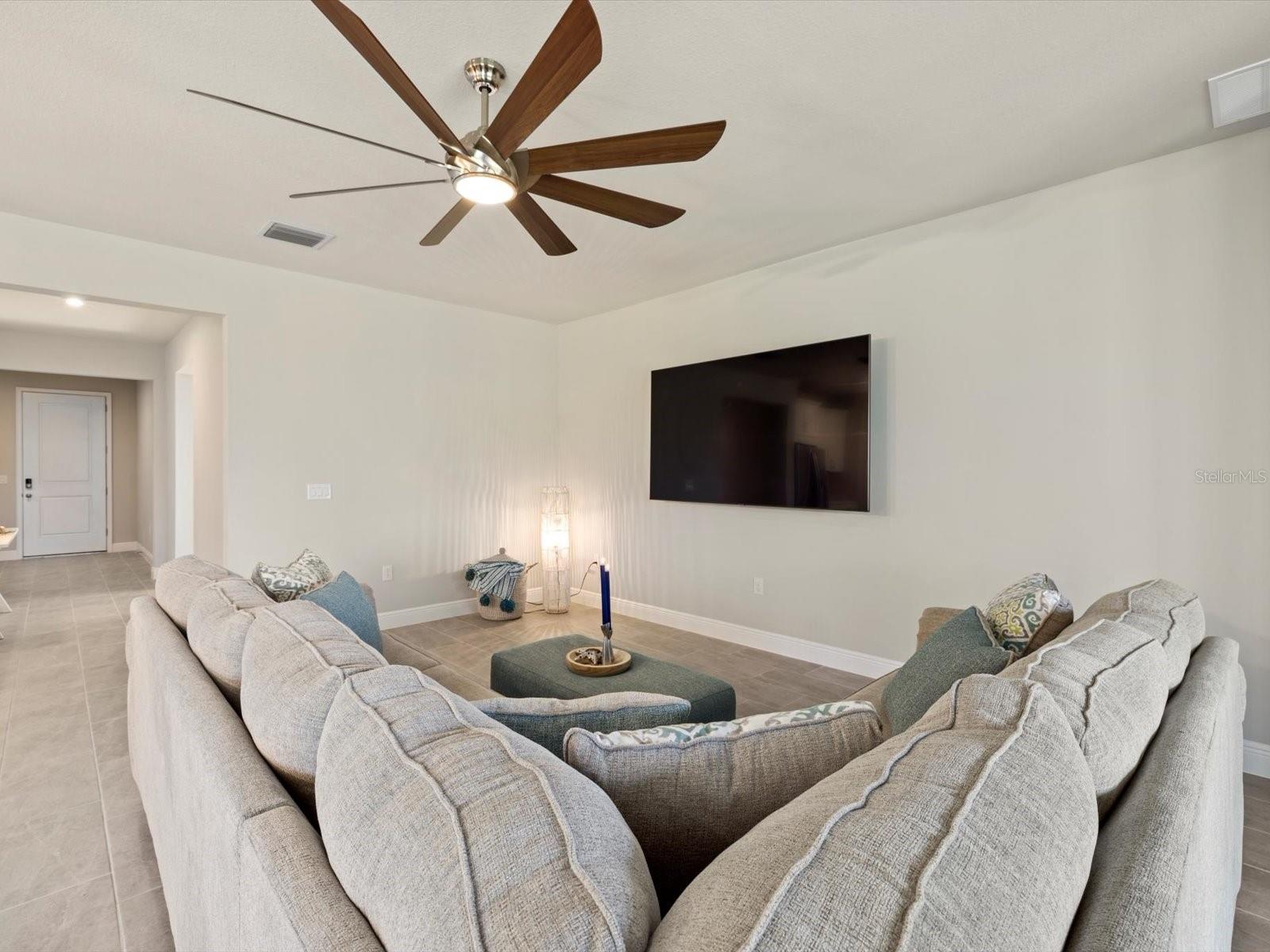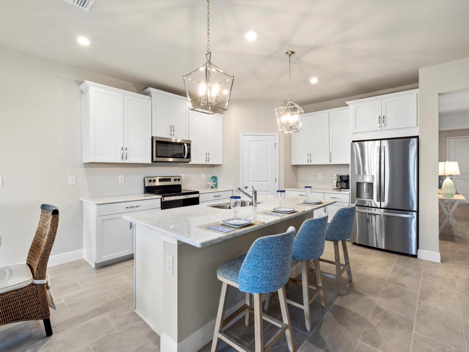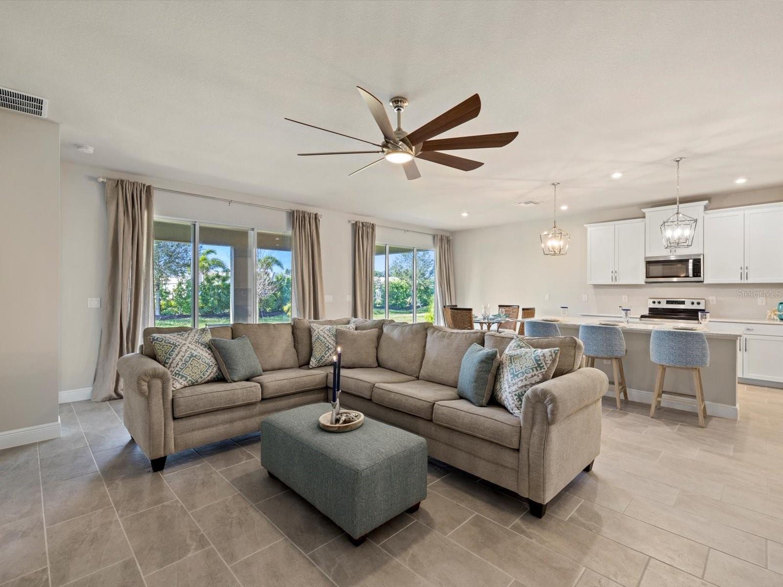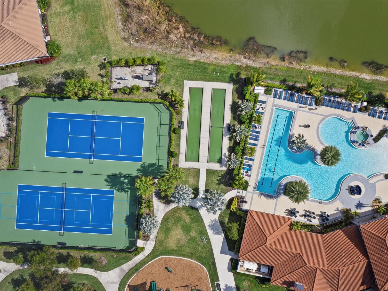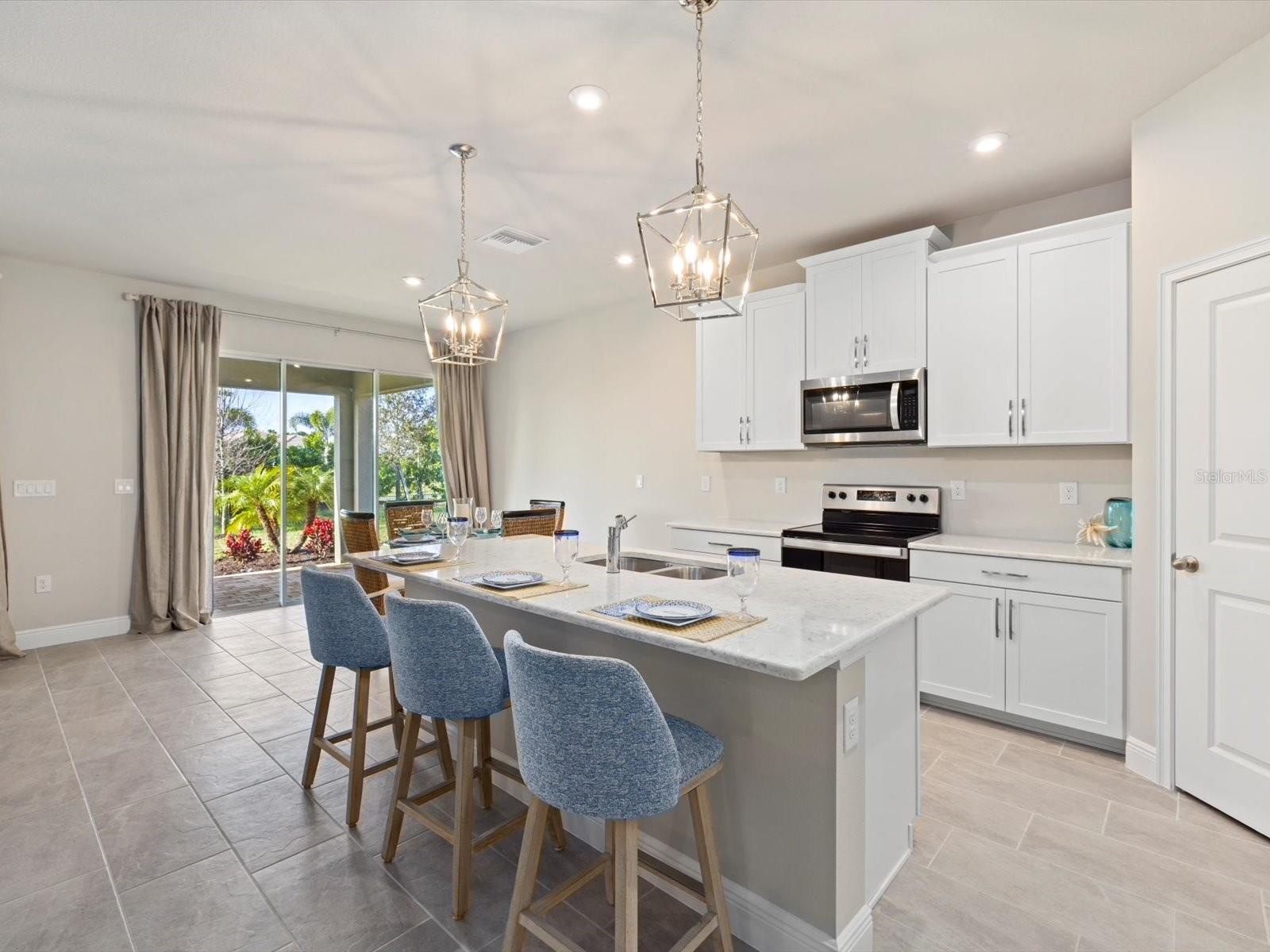 RESORT STYLE AMENITIES. MAINTENANCE FREE. EXTENDED LANAI. COVERED FRONT PORCH. 3 BEDROOM PLUS DEN/2 BATH/ 2 CAR GARAGE. SPLIT/OPEN FLOOR PLAN. Indulge in resort-style living with unparalleled convenience in the Renaissance Community at Wellen Park. This meticulously maintained, one-year-old home offers a plethora of amenities and an ideal location just under a mile from Costco. The community boasts resort-style amenities, including a pool and spa, a state-of-the-art fitness center, and outdoor recreation facilities such as tennis, pickleball, bocce ball, a fire pit, and a paw park. A full-time activities director ensures a vibrant social calendar, while the gated entry provides peace of mind. The prime location puts Costco within easy reach, less than a mile away, and CoolToday Park is just a short distance from home, hosting Atlanta Braves Spring Training games, holiday events, concerts, movie nights, and a year-round Tiki Bar. Nearby shopping includes Publix, an Italian restaurant, a frozen yogurt shop, a sushi bar, and a tap house. For a more extensive outing, take your golf cart to downtown Wellen Park for fine dining, boutique shopping, and live music on most nights. The home itself exudes comfort and convenience, featuring an extended lanai pre-plumbed for an outdoor kitchen, a covered front porch, a split/open floor plan, and a spacious 2,098 square foot Aurora II model layout. As you approach, a welcoming pavered driveway leads to the covered front porch. Inside, a spacious foyer opens to a true split floor plan with guest bedrooms at the front and a full bathroom with a shower/tub combination. A large den/office/bonus room offers versatile space, while the kitchen, living, and dining areas are bathed in natural light through double sets of sliding glass doors. The kitchen is adorned with quartz countertops, stainless steel appliances, designer pendant lighting, and a large corner pantry. The expansive living area features a designer ceiling fan, and the primary suite boasts dual vanities, an oversized walk-in shower, a linen closet, a separate water closet, and a walk-in closet. This home is a must-see in the highly sought-after Renaissance Community, where resort-style living and unparalleled convenience converge. Copy and Past this link for a video https://iframe.videodelivery.net/6292065d851de0046d982f16e1a322ff