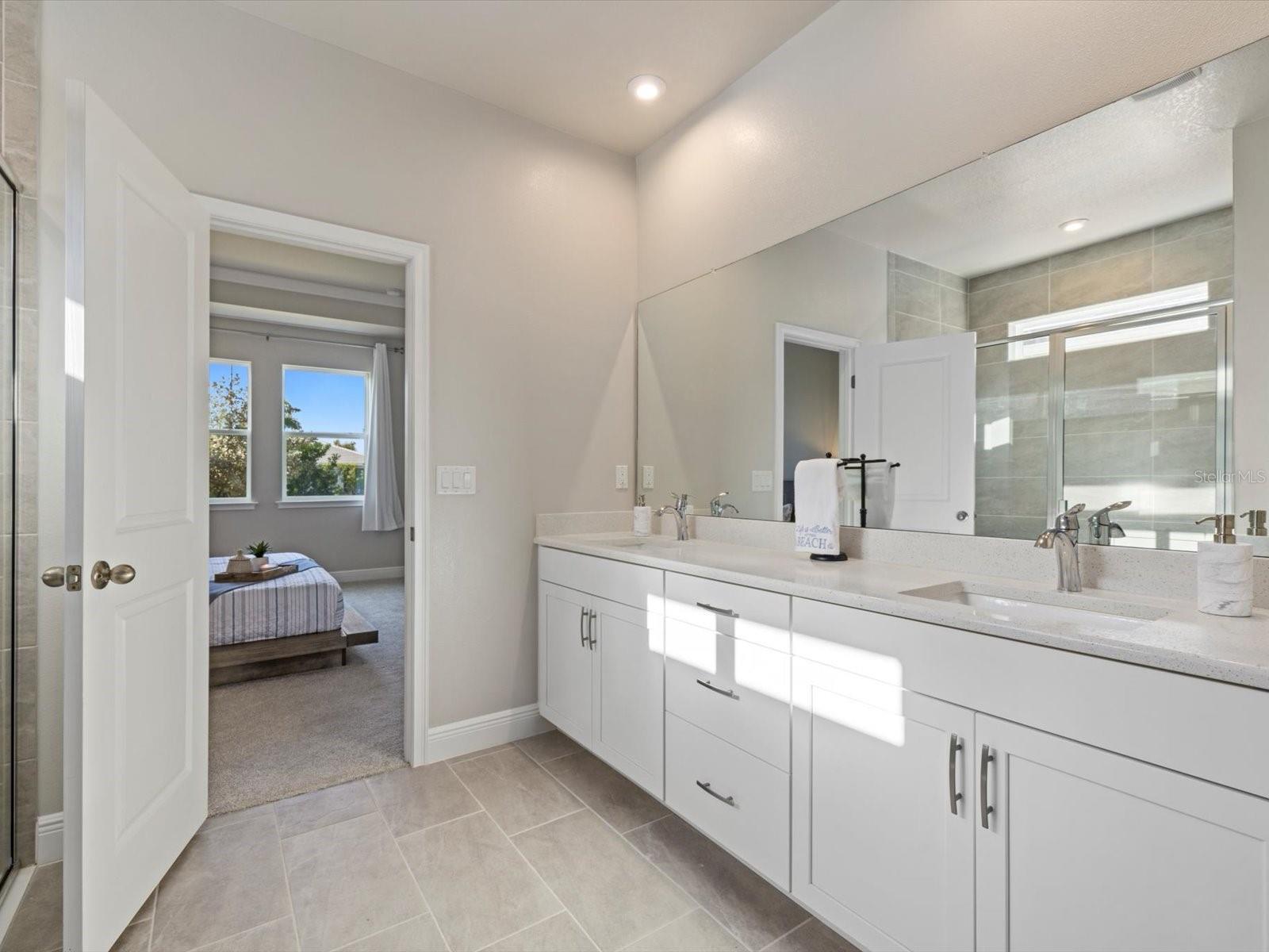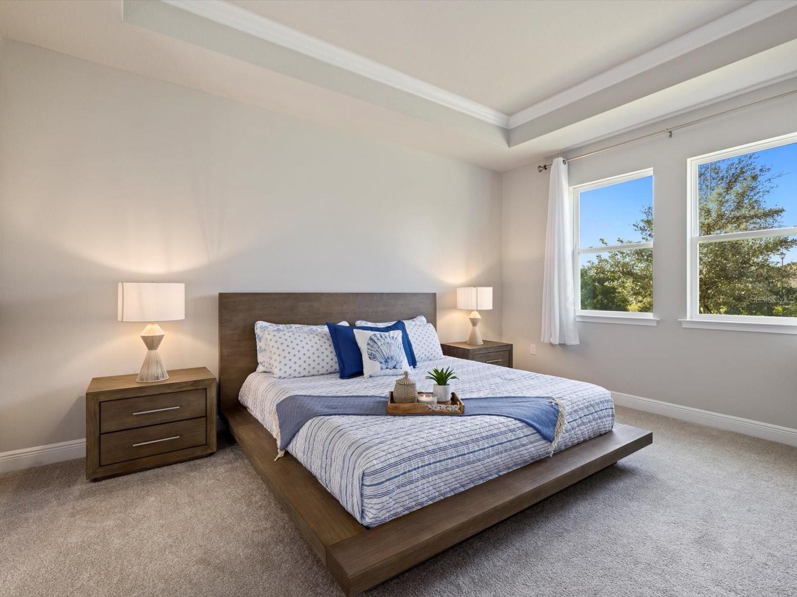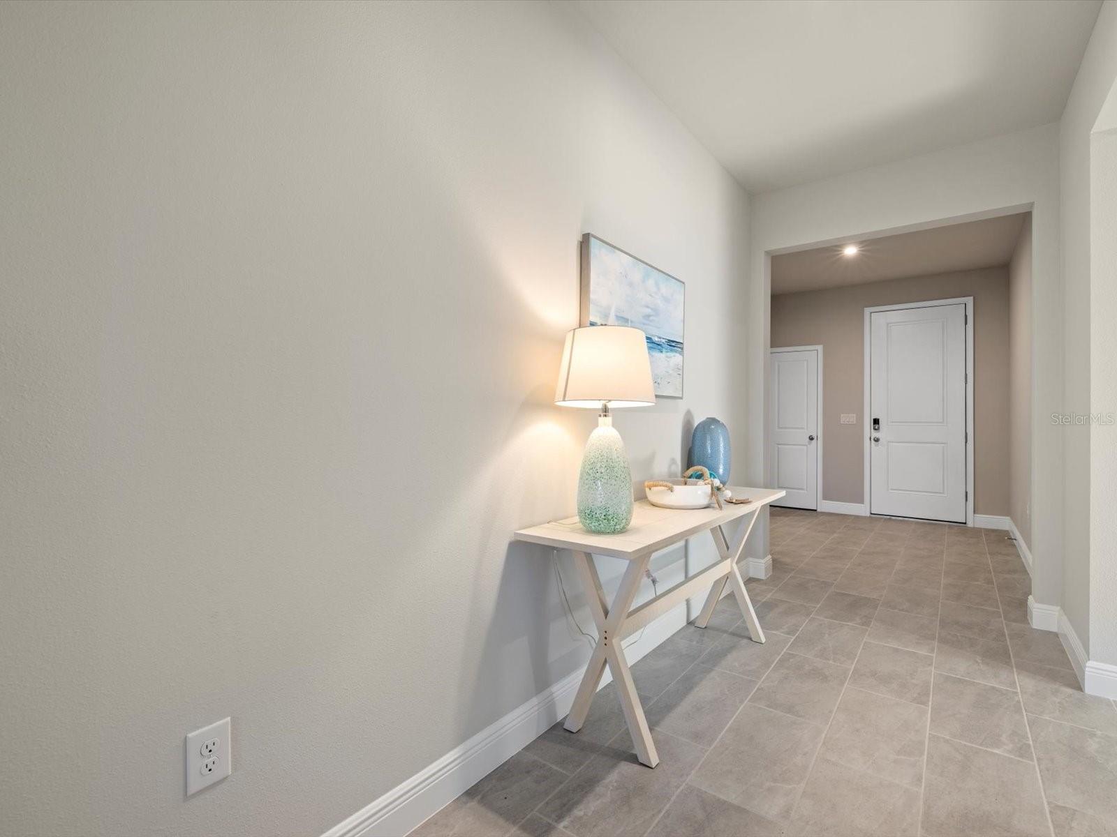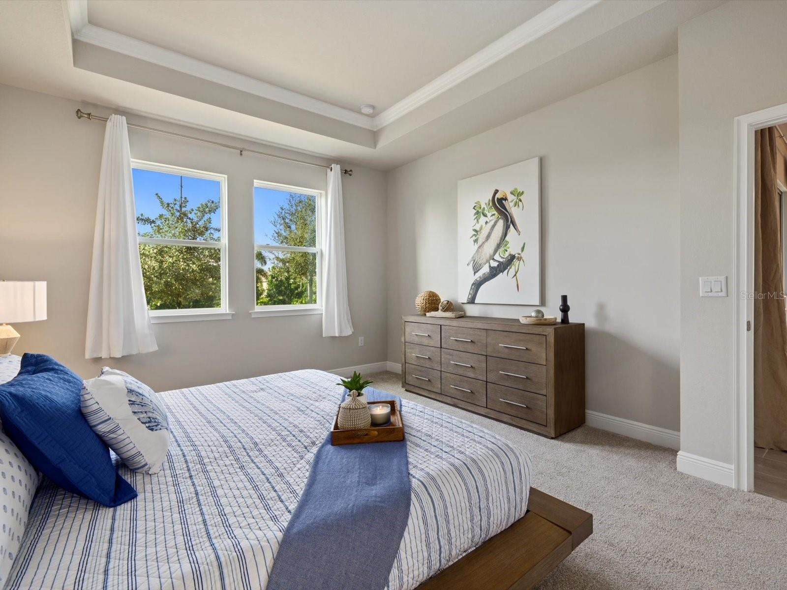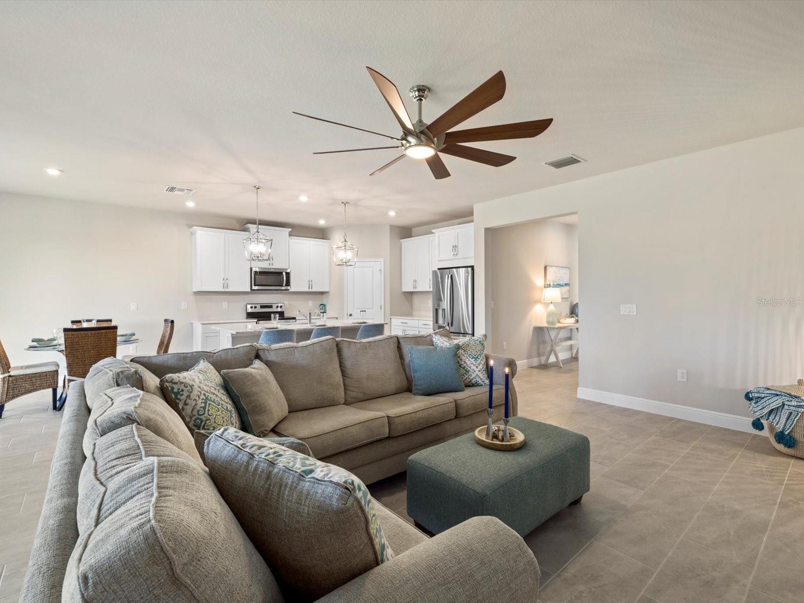 RESORT STYLE AMENITIES. MAINTENANCE FREE. EXTENDED LANAI. COVERED FRONT PORCH. 3 BEDROOM PLUS DEN/2 BATH/ 2 CAR GARAGE. SPLIT/OPEN FLOOR PLAN. Indulge in resort-style living with unparalleled convenience in the Renaissance Community at Wellen Park. This meticulously maintained, one-year-old home offers a plethora of amenities and an ideal location just under a mile from Costco. The community boasts resort-style amenities, including a pool and spa, a state-of-the-art fitness center, and outdoor recreation facilities such as tennis, pickleball, bocce ball, a fire pit, and a paw park. A full-time activities director ensures a vibrant social calendar, while the gated entry provides peace of mind. The prime location puts Costco within easy reach, less than a mile away, and CoolToday Park is just a short distance from home, hosting Atlanta Braves Spring Training games, holiday events, concerts, movie nights, and a year-round Tiki Bar. Nearby shopping includes Publix, an Italian restaurant, a frozen yogurt shop, a sushi bar, and a tap house. For a more extensive outing, take your golf cart to downtown Wellen Park for fine dining, boutique shopping, and live music on most nights. The home itself exudes comfort and convenience, featuring an extended lanai pre-plumbed for an outdoor kitchen, a covered front porch, a split/open floor plan, and a spacious 2,098 square foot Aurora II model layout. As you approach, a welcoming pavered driveway leads to the covered front porch. Inside, a spacious foyer opens to a true split floor plan with guest bedrooms at the front and a full bathroom with a shower/tub combination. A large den/office/bonus room offers versatile space, while the kitchen, living, and dining areas are bathed in natural light through double sets of sliding glass doors. The kitchen is adorned with quartz countertops, stainless steel appliances, designer pendant lighting, and a large corner pantry. The expansive living area features a designer ceiling fan, and the primary suite boasts dual vanities, an oversized walk-in shower, a linen closet, a separate water closet, and a walk-in closet. This home is a must-see in the highly sought-after Renaissance Community, where resort-style living and unparalleled convenience converge. Copy and Past this link for a video https://iframe.videodelivery.net/6292065d851de0046d982f16e1a322ff