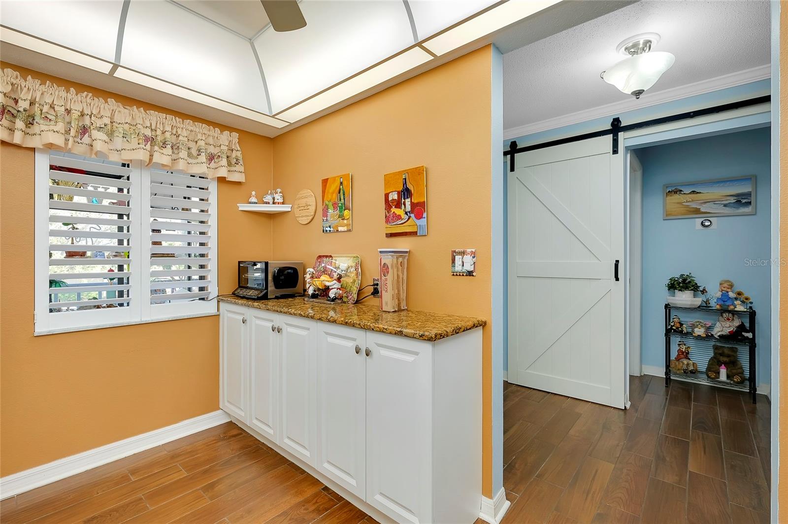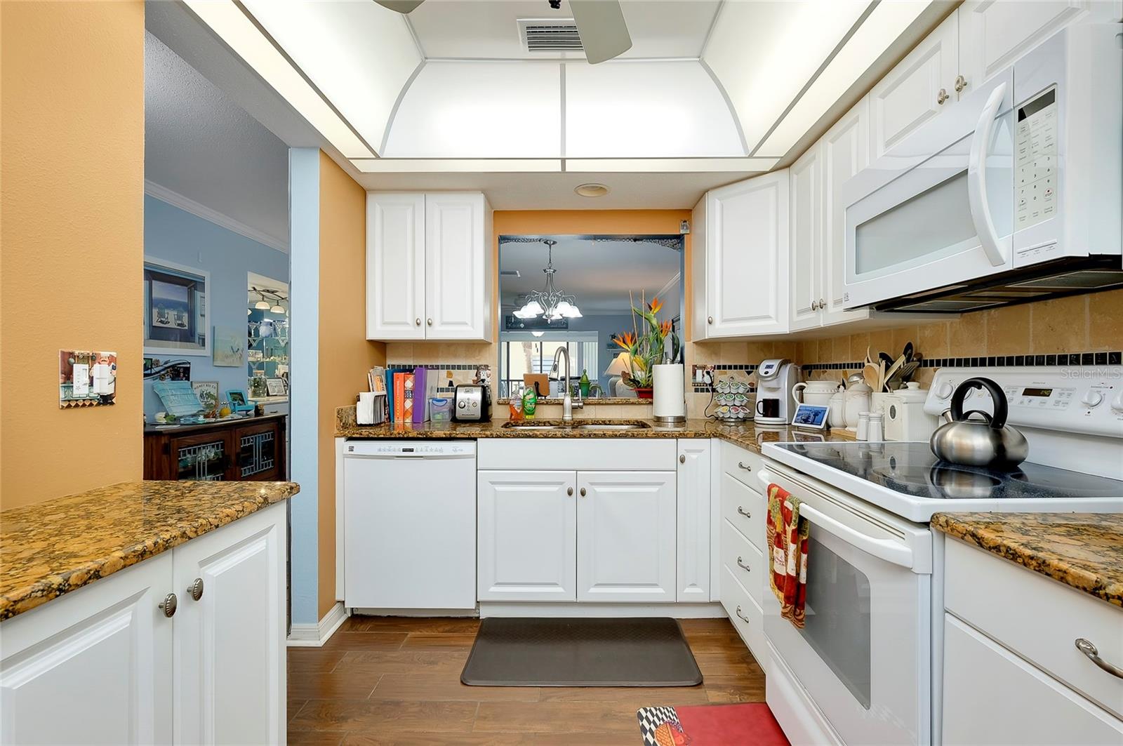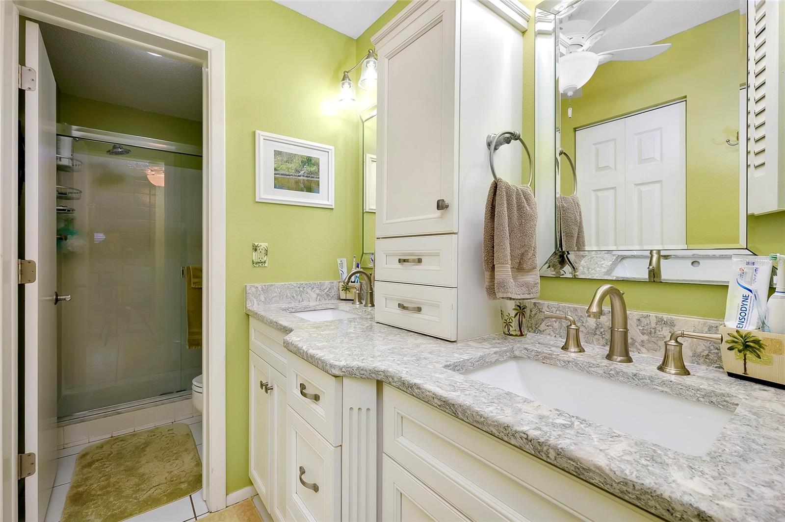 PRICE IMPROVEMENT! Welcome to your coastal retreat in beautiful Venice, Florida! This charming 2-bedroom, 2-bathroom 1,155 sq. ft. condo is nestled in the desirable Mission Lakes community, offering a peaceful and relaxed lifestyle just minutes from the beach and Venice Island. As you enter, you will be greeted by an OPEN AND AIRY living space that extends all the way through the home and out on to your light and bright ENCLOSED LANAI, which is perfect for entertaining or unwinding after a day in the sun. The kitchen features NEWER CABINETS, GRANITE countertops and ample counter space, making meal preparation a breeze. The spacious master bedroom boasts a WALK-IN closet and en-suite bathroom, providing a comfortable oasis to relax and rejuvenate and a door to the enclosed lanai. A unique feature of this condo is there is a handy DROP-DOWN LADDER in the primary closet that allows ACCESS TO THE ATTIC and ample storage space. A stylish BARN DOOR has been added to the hallway to the second bedroom and bathroom, creating a GUEST SUITE FEEL that your family and friends will be sure to enjoy while visiting. The second bedroom is perfect for guests or can be used as a home office or den. The lanai was opened up to add square footage and is the perfect place to enjoy your morning coffee or evening cocktail while taking in the serene LAKE VIEWS. Few units in this community have this feature. The community amenities include THREE HEATED POOLS for your enjoyment. And your car will always have a shady place to be parked, featuring an open-air carport with a convenient attached STORAGE ROOM. The current owners have made over $28,000 in UPGRADES since taking ownership. including REPLACE all the old DOORS, replaced the WASHER AND DRYER, added a DRY BAR with QUARTZ COUNTERTOPS in the living space, NEW HVAC and THERMOSTAT in 2019, PRIMARY BATHROOM REMODEL, GLASS SHOWER DOORS in the guest bathroom and many other great improvements. With its prime location just a short drive from Venice Beach, historic downtown Venice, the YMCA, and a variety of shopping and dining options, this condo is the perfect place to call home. Don't miss out on this opportunity to live the Florida lifestyle you've always dreamed of!