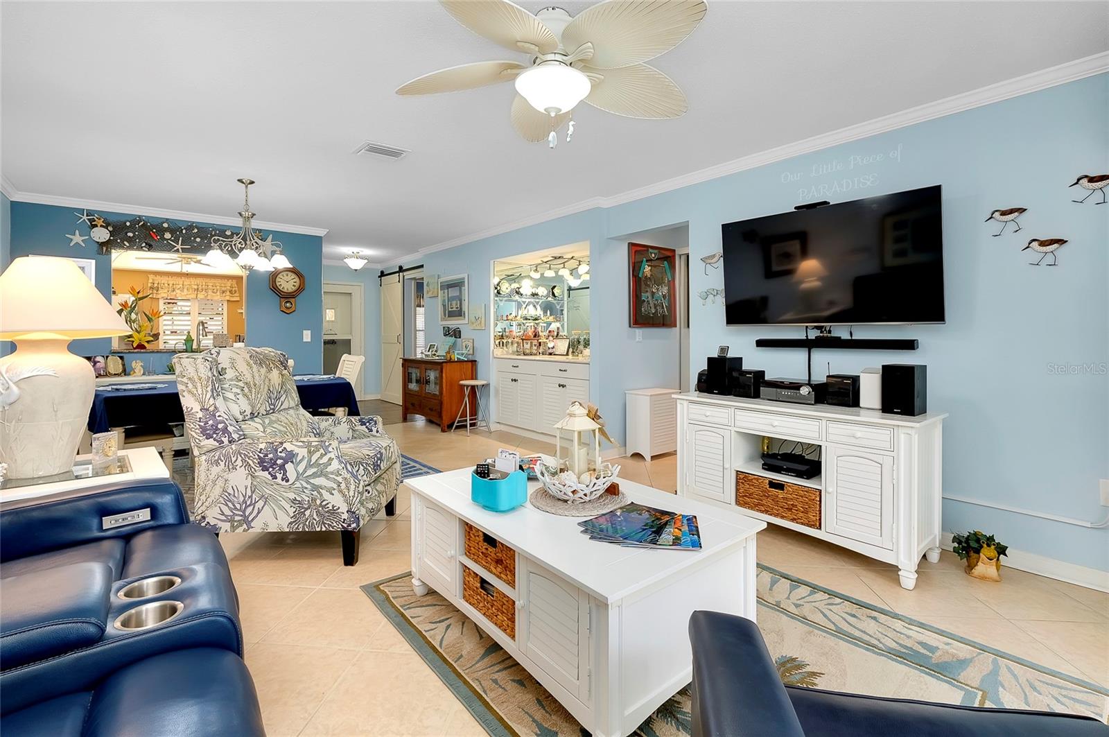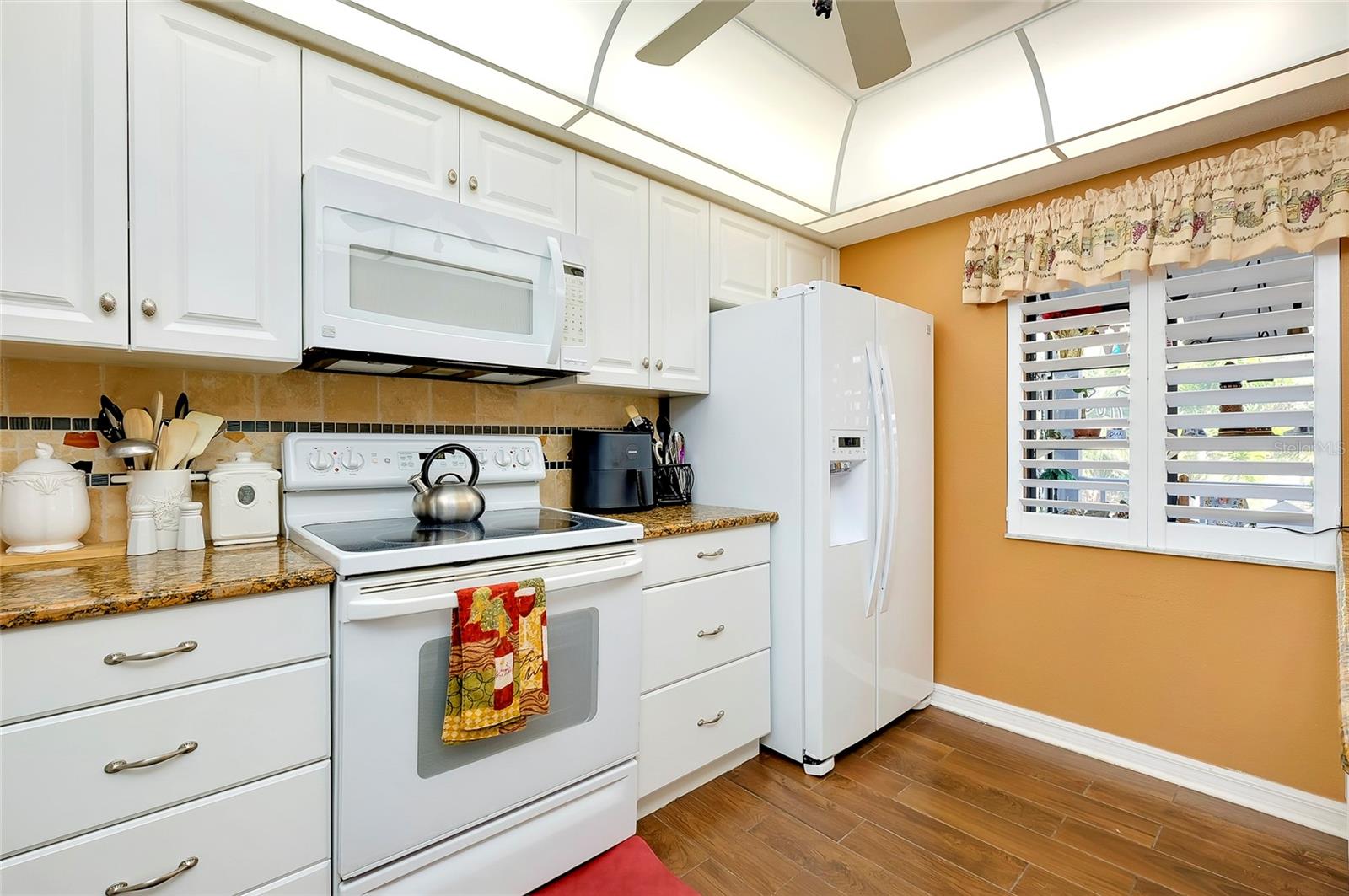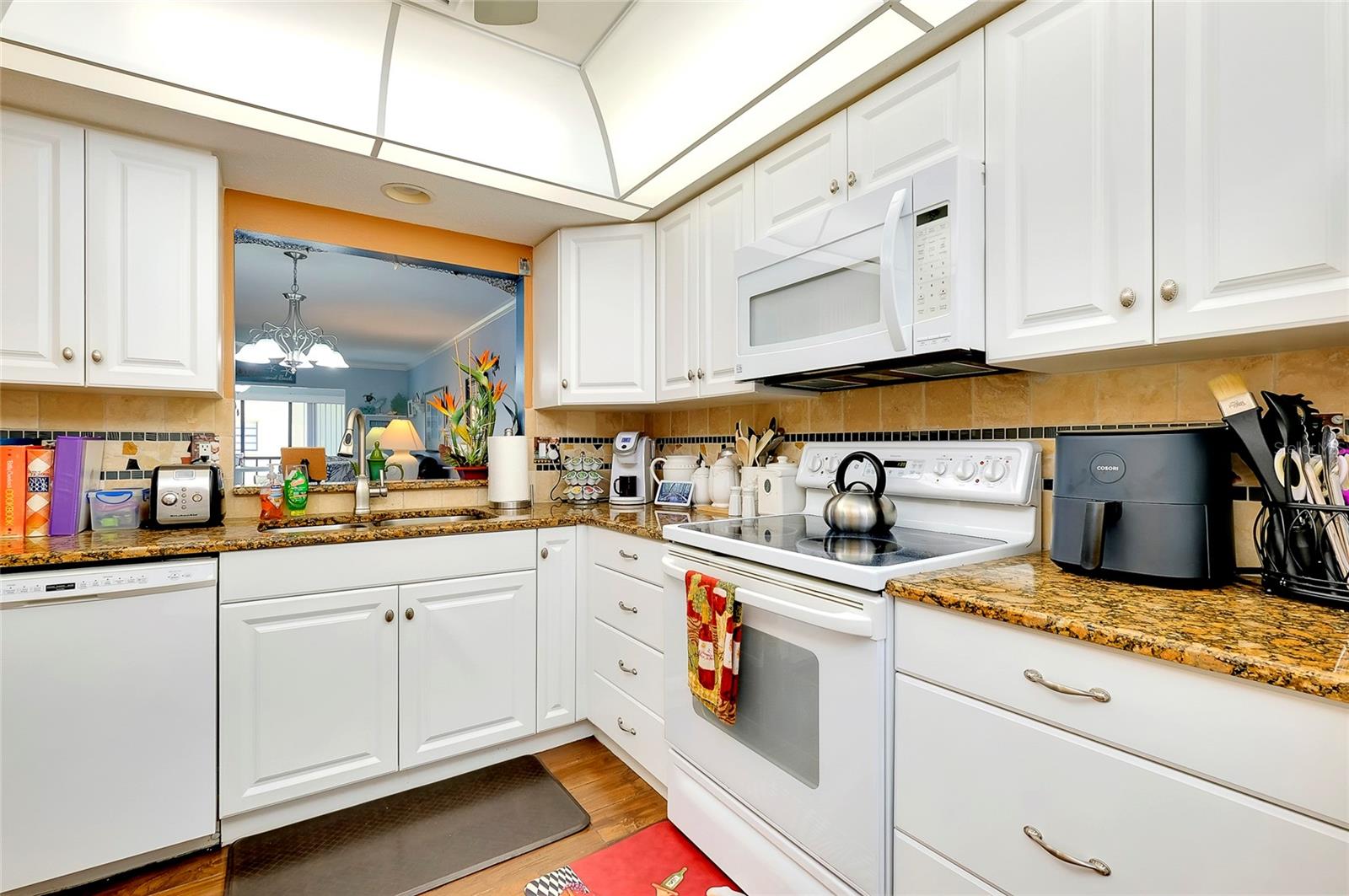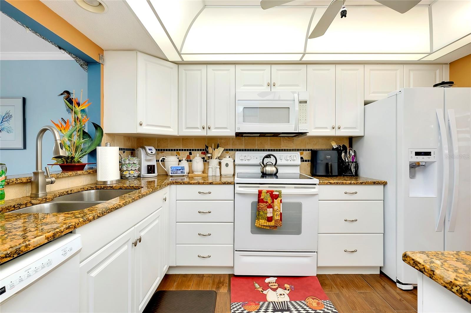 PRICE IMPROVEMENT! Welcome to your coastal retreat in beautiful Venice, Florida! This charming 2-bedroom, 2-bathroom 1,155 sq. ft. condo is nestled in the desirable Mission Lakes community, offering a peaceful and relaxed lifestyle just minutes from the beach and Venice Island. As you enter, you will be greeted by an OPEN AND AIRY living space that extends all the way through the home and out on to your light and bright ENCLOSED LANAI, which is perfect for entertaining or unwinding after a day in the sun. The kitchen features NEWER CABINETS, GRANITE countertops and ample counter space, making meal preparation a breeze. The spacious master bedroom boasts a WALK-IN closet and en-suite bathroom, providing a comfortable oasis to relax and rejuvenate and a door to the enclosed lanai. A unique feature of this condo is there is a handy DROP-DOWN LADDER in the primary closet that allows ACCESS TO THE ATTIC and ample storage space. A stylish BARN DOOR has been added to the hallway to the second bedroom and bathroom, creating a GUEST SUITE FEEL that your family and friends will be sure to enjoy while visiting. The second bedroom is perfect for guests or can be used as a home office or den. The lanai was opened up to add square footage and is the perfect place to enjoy your morning coffee or evening cocktail while taking in the serene LAKE VIEWS. Few units in this community have this feature. The community amenities include THREE HEATED POOLS for your enjoyment. And your car will always have a shady place to be parked, featuring an open-air carport with a convenient attached STORAGE ROOM. The current owners have made over $28,000 in UPGRADES since taking ownership. including REPLACE all the old DOORS, replaced the WASHER AND DRYER, added a DRY BAR with QUARTZ COUNTERTOPS in the living space, NEW HVAC and THERMOSTAT in 2019, PRIMARY BATHROOM REMODEL, GLASS SHOWER DOORS in the guest bathroom and many other great improvements. With its prime location just a short drive from Venice Beach, historic downtown Venice, the YMCA, and a variety of shopping and dining options, this condo is the perfect place to call home. Don't miss out on this opportunity to live the Florida lifestyle you've always dreamed of!