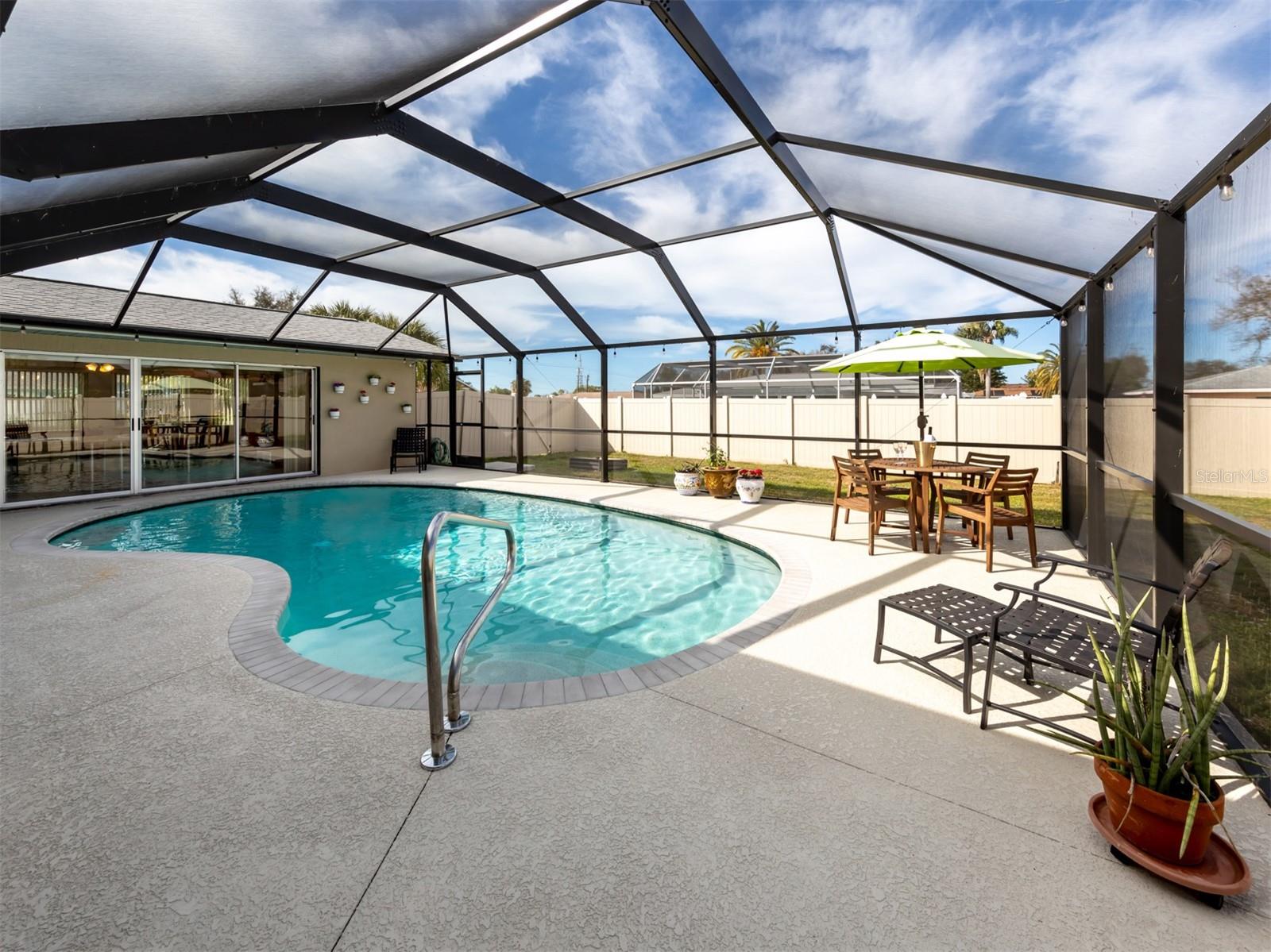 HUGE PRICE REDUCTION! Looking for a home with an in-law suite? Stop scrolling, you'll want to know all about this home! This unique floor plan offers 3 bedrooms - all with their own en suite - which makes the possibilities endless. The third bedroom has its own private entrance, but could conveniently serve as an in-law suite, extra-large family room, or whatever suits your lifestyle needs. The updated kitchen boasts soft-close cabinetry, luxurious quartz countertops, and backsplash to impress. The spacious primary bedroom has beautiful hardwood floors, a walk-in closet with custom storage and an en-suite with a water closet. Relax and enjoy the serene outdoor oasis with heated saltwater pool from both wings of the house. With the newer pool cage and screens (2021), a doggie door and 6-foot vinyl privacy fence - it won't take much to feel the Florida life vibes. Location is everything here in this beautifully maintained home and neighborhood with just a short 6 minute drive to Venice Island. Located between the Sarasota and Punta Gorda airports, shopping, dining and beautiful beaches - convenience is at the top of the list of positive features here! The Pinebrook South community is in a highly sought-after location with low HOA ($39/month) that includes the heated community pool, park, clubhouse, pool table/ping pong, shuffleboard, monthly activities, as well as available kayak storage ($60/annually) and a launch into Curry Creek.