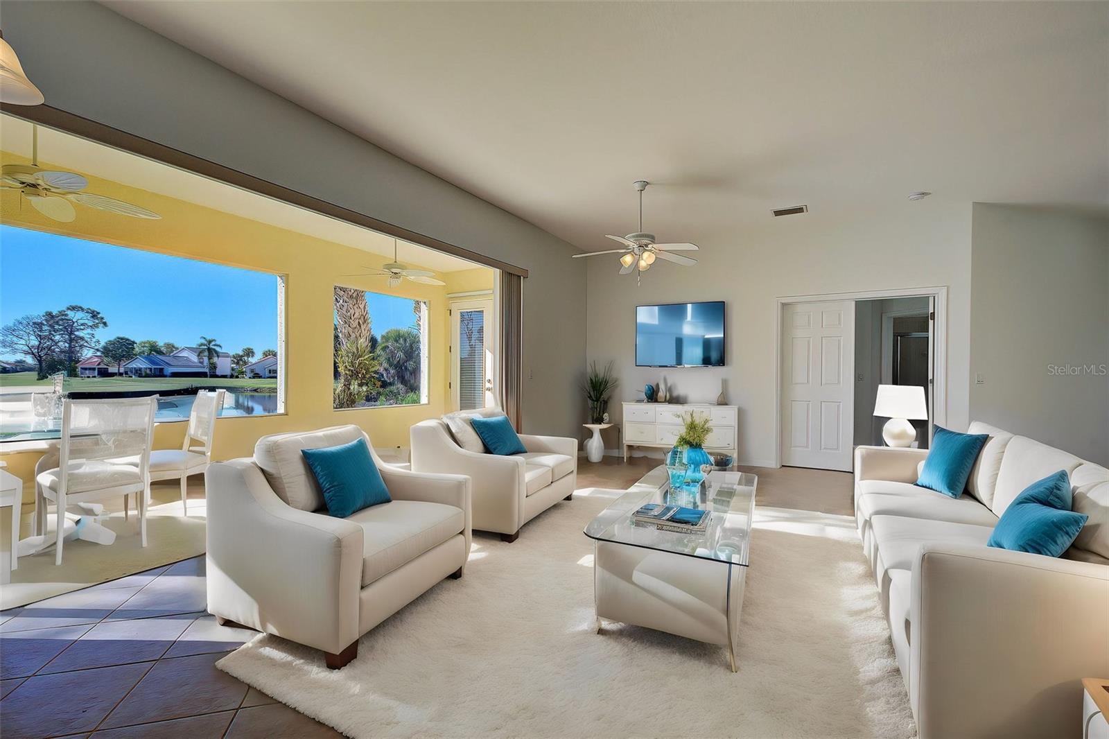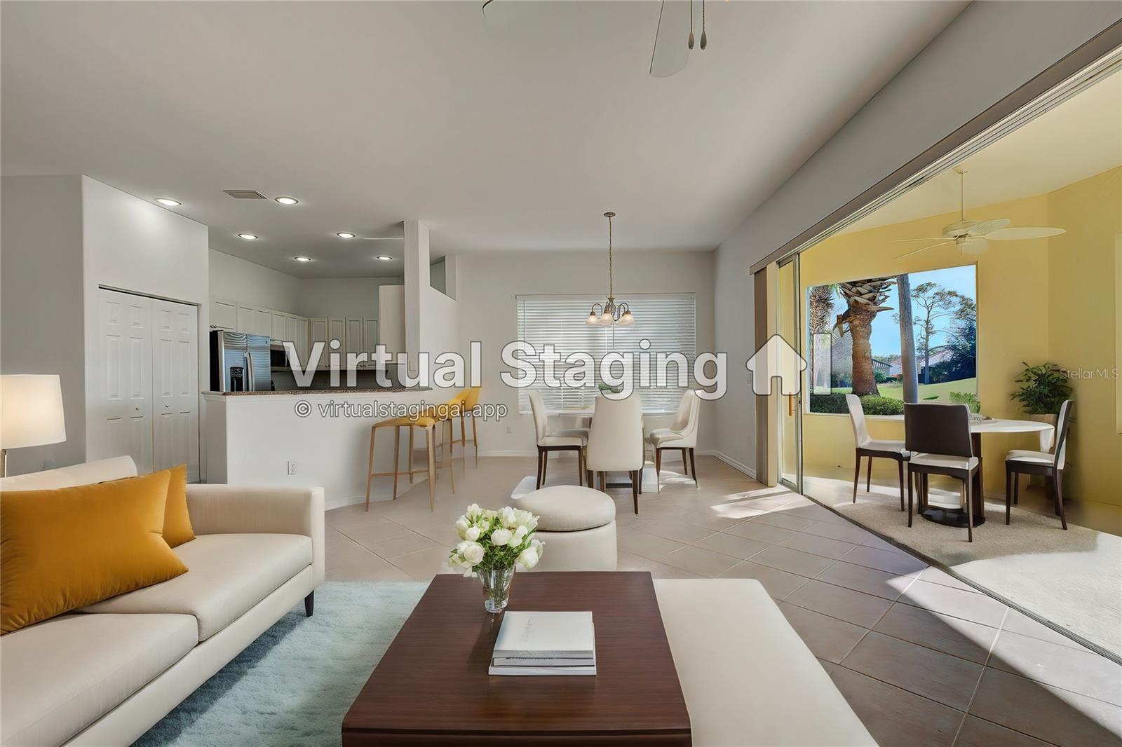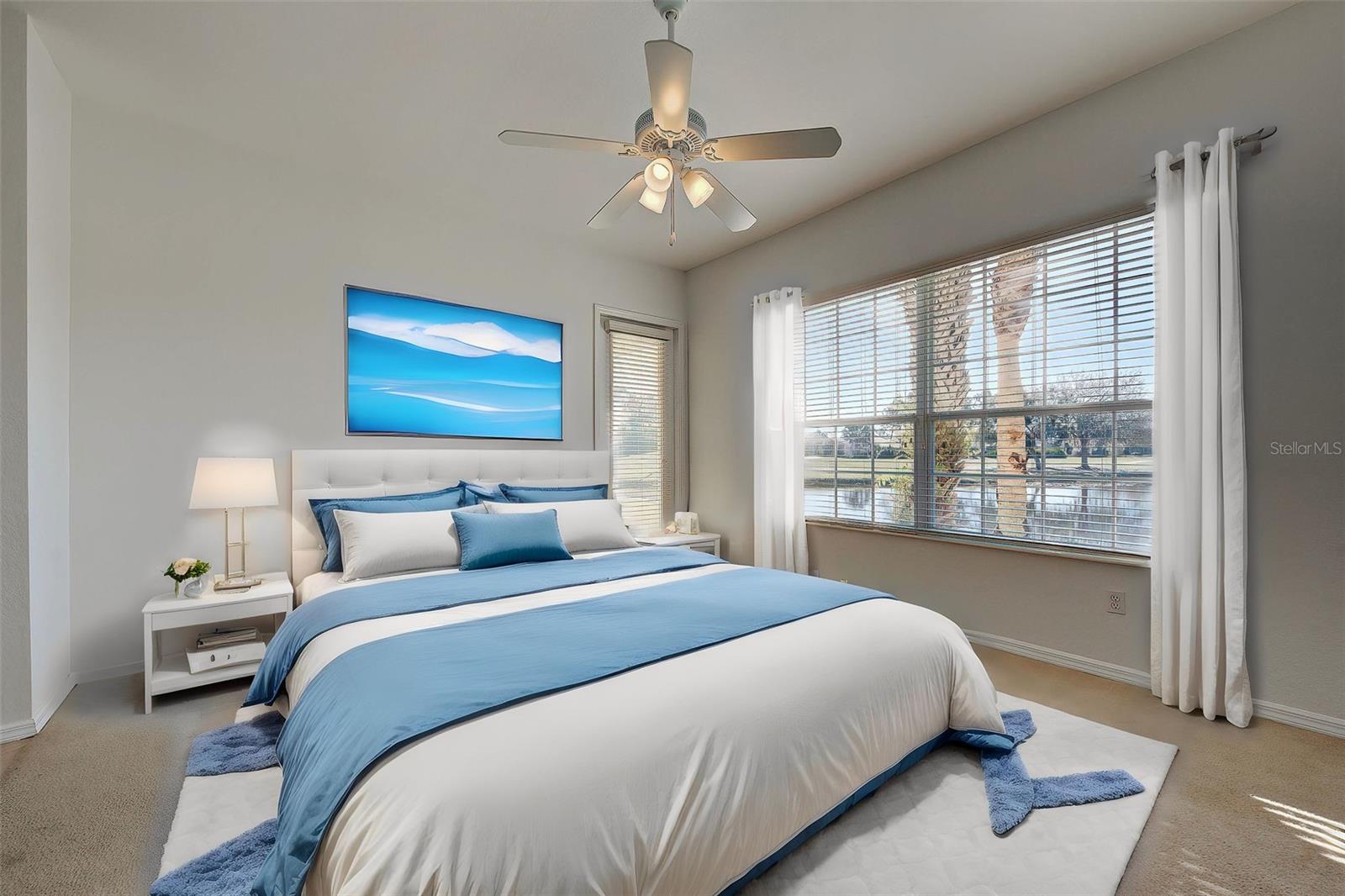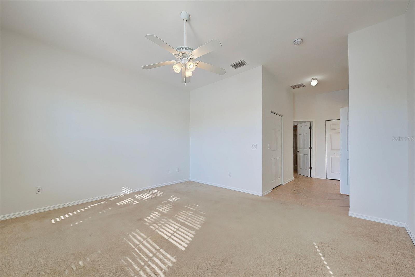 One or more photo(s) has been virtually staged. Welcome to paradise! This first-floor, end unit condominium has the best view in Triano! Triano is a quaint and charming resort-like and highly desirable community. The entire community is getting all new roofs, new exterior paint, and new lighting in February 2024! This lovely condominium also has a freshly painted interior, new carpet in the three bedrooms and new SS appliances. Come relax with your friends and family on the large lanai with slider doors that fully open from the living room area. You will enjoy watching the wildlife and golfers while also overlooking the beautiful pond. The open split floor plan opens to a set of elegant double doors to the large primary bedroom suite with a large walk-in closet and ensuite with 11' ceilings which add to the spaciousness of this condominium. The second bedroom is also ensuite, allowing for total privacy for your guests. The third bedroom can easily transition to your den or office. You will love the separate laundry room and the 2-car garage with water and sink hook ups and plenty of room for storage. You will have peace of mind with impact windows and hurricane shutters. Triano is a true hidden gem with an enchanting brick paved lighted garden pathway with several waterfalls. You will enjoy sitting by the resort style heated pool listening to the waterfalls or watching the sunset while overlooking the peaceful lake with a water fountain feature that lights up in the evenings. You may also enjoy the fitness room which maintains your active lifestyle and various clubs in the community. Just minutes away from pristine beaches, restaurants, shopping, and charming Venice so rich in history. There is a new Sarasota Memorial Hospital less than 2 miles away, Wellen Park which includes the Atlanta Braves Stadium and only a short drive to Sarasota. You will not want to miss this opportunity to live in paradise! (Some of the photos are virtually staged) Bedroom Closet Type: Walk-in Closet (Primary Bedroom).