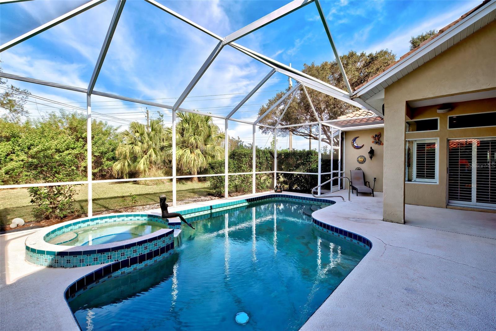 FRESHLEY PAINT EXTERIOR AND POOL DECK!!! Great Family Home. 4-Bedroom, 3 -Bath pool home. Located in much sought-after Chestnut Creek Estates. Chestnut Creek Community with its fountain Lake entry, oak tree lined main entry street, 18 lakes, Bird Rookery on its middle lake along with a park like setting. The Community has underground utilities. Close to beaches, shopping center, A rated schools and I-75. Low annual HOA fee of only $600. This home has been meticulously maintained. High ceilings throughout, Wood cabinets in kitchen with granite counter tops and Large island-breakfast bar. Gas fireplace in family room. Beautiful Wood Laminate floors throughout the house except bathrooms have tile flooring and Bedrooms have carpet. Heated pool allows year-round enjoyment. New spa pump and blower March of 2024, the roof was replaced May 2018 and re-piped January 2015. Place this Home on your must-see list.