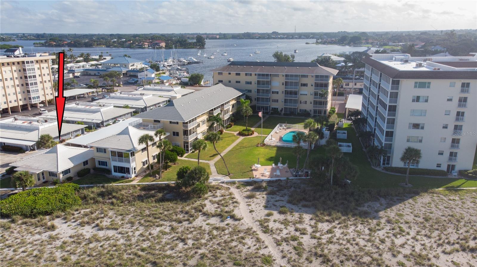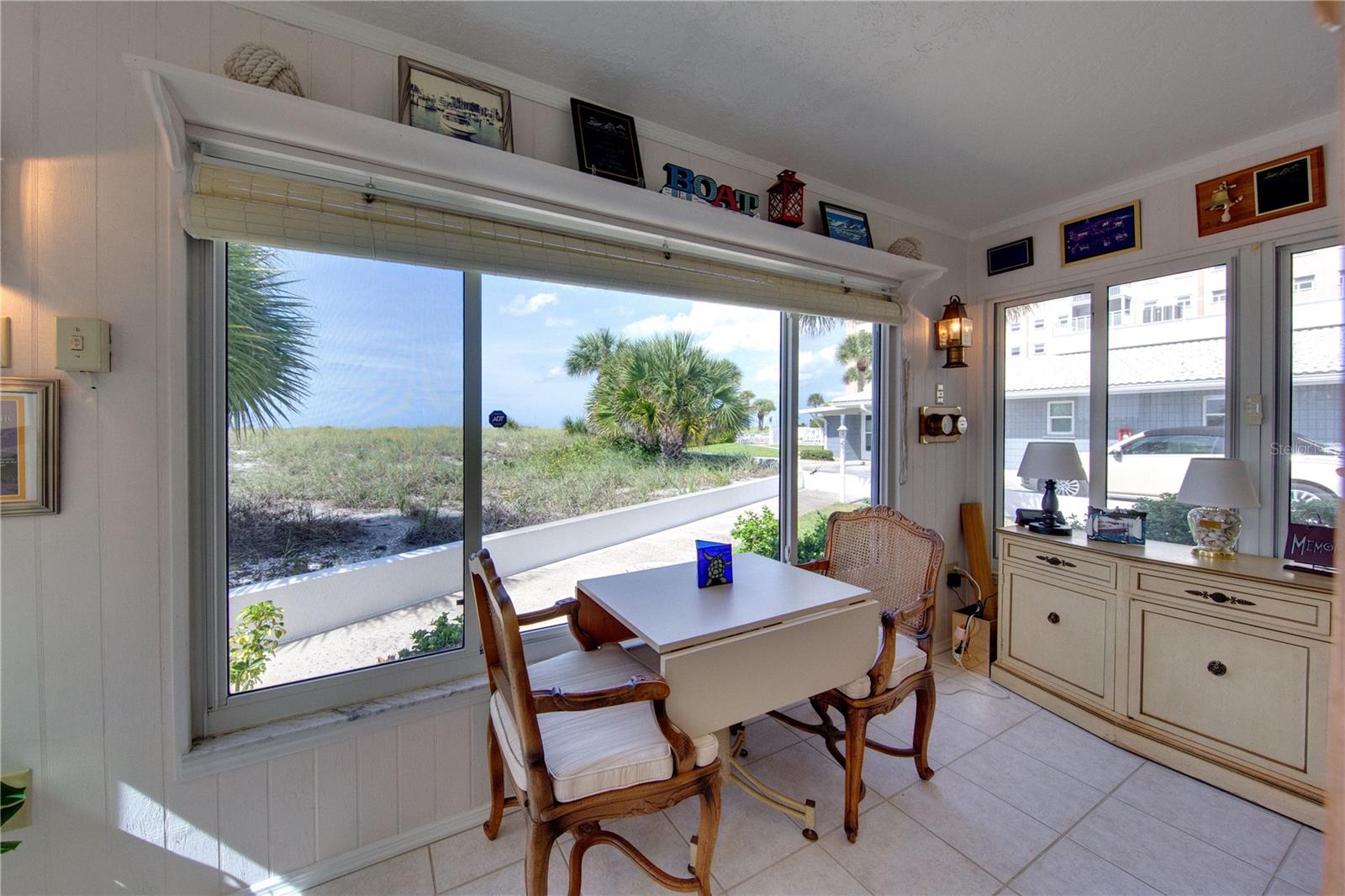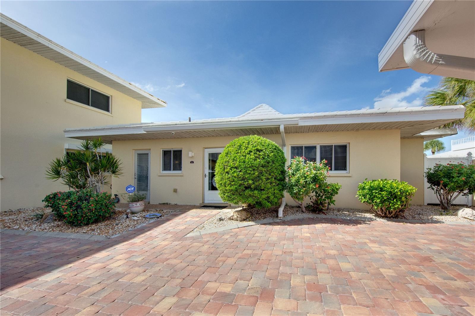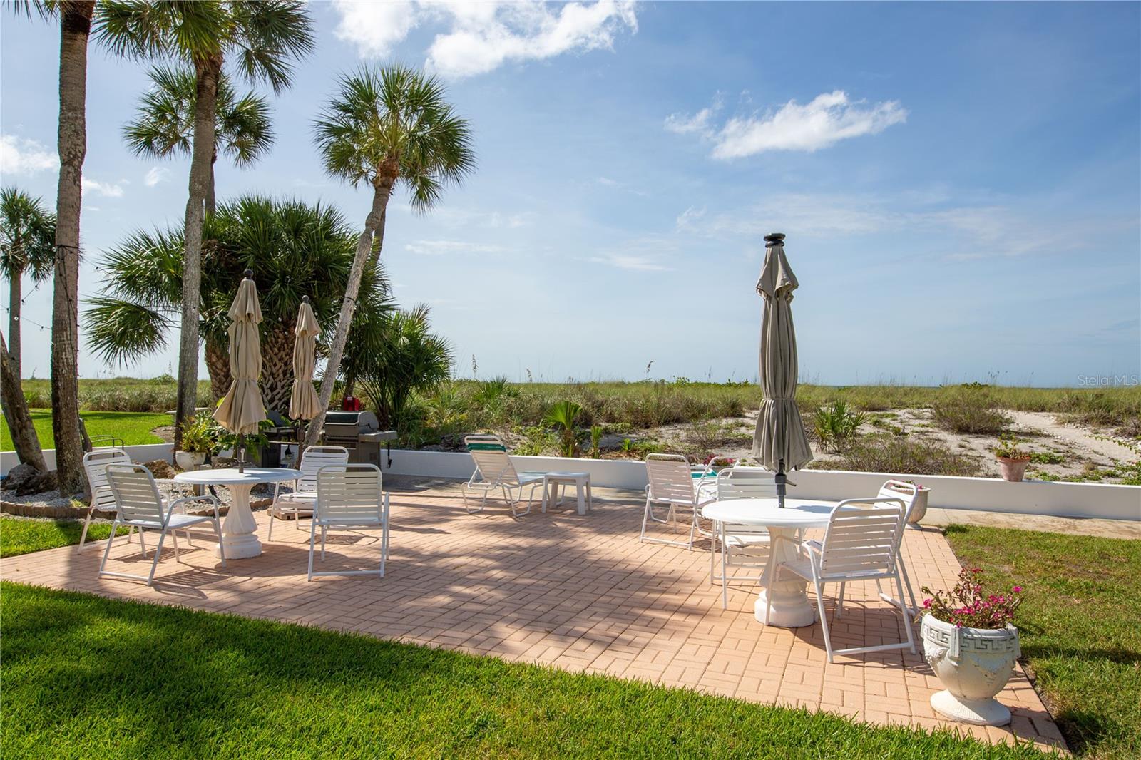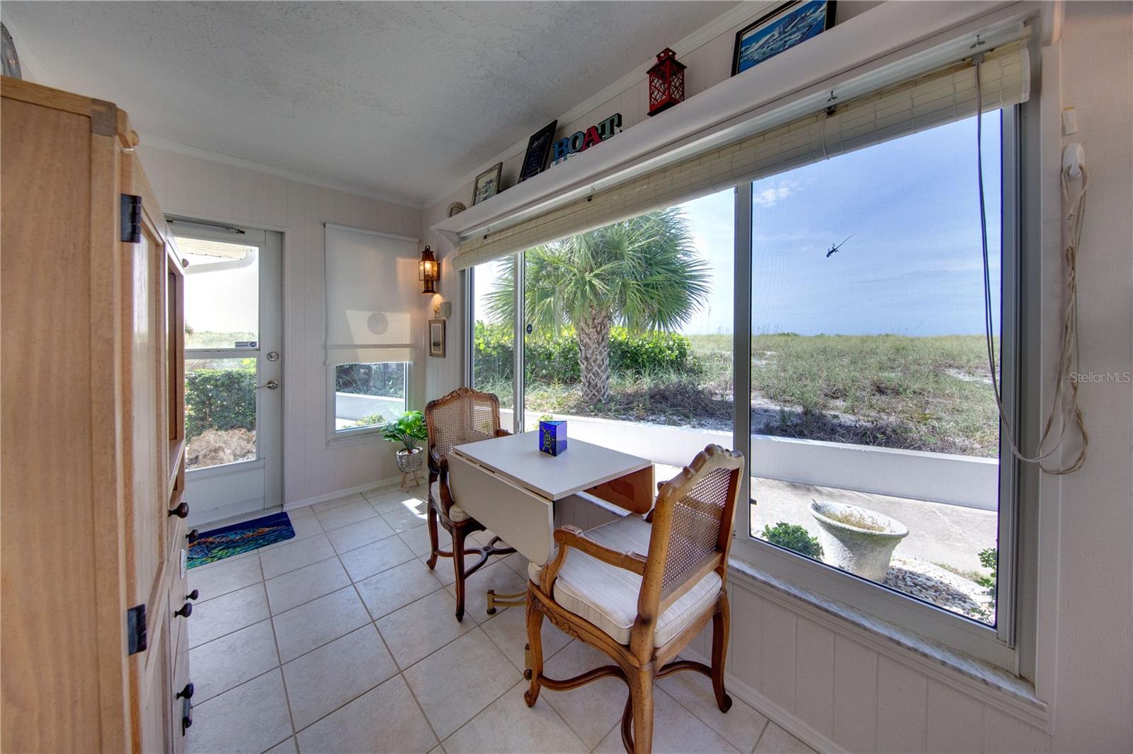 Just steps to beautiful Venice Beach, this spacious TURNKEY FURNISHED villa with 2 bedrooms & 2 baths is gem & a rarity in Venice! It’s one of the very few free-standing one-story condos & has its own washer & dryer. The Master bedroom has a king-sized bed with 2 closets & built-in drawers. The Guest bedroom has a double bed. The Living room has a sofa bed for guests. While part of the Chateaugay condo high-rise complex, you will have the privacy of a stand-alone one-level living villa. Want to cook? There is a granite countertop, bright kitchen with all the utensils and appliances that you can imagine. There is a smart TV with cable & Wi-Fi. The bright & cheerful Florida room has large windows and access door to outdoors. There is also an attached exterior storage room and screened porch for your bikes & toys. This villa has a dune & sunset view with a private beach access point. There is one designated covered parking space right outside the front door. With 2 designated guest parking spaces on the property. Watch the most gorgeous sunsets from your beach chair while tickling your toes in the warm Gulf. Chateaugy is a very social community with sunset cocktails, under the stars movie nights, book & card clubs and food truck get togethers, heated pool, grill, and possible soon to come bocce court. All the charm of Venice Island, with its free beaches, top-notch restaurants & shopping, is there for the taking! If you want to say, “I could live there,” this is a MUST SEE. Roof replaced in late 2022, A/C replaced in 2024, and updated plumbing 8/24. Service animals meeting certain criteria allowed. Private appraisal in January stated market value at $1,125,000 wth heated area as 1324 SqFt.