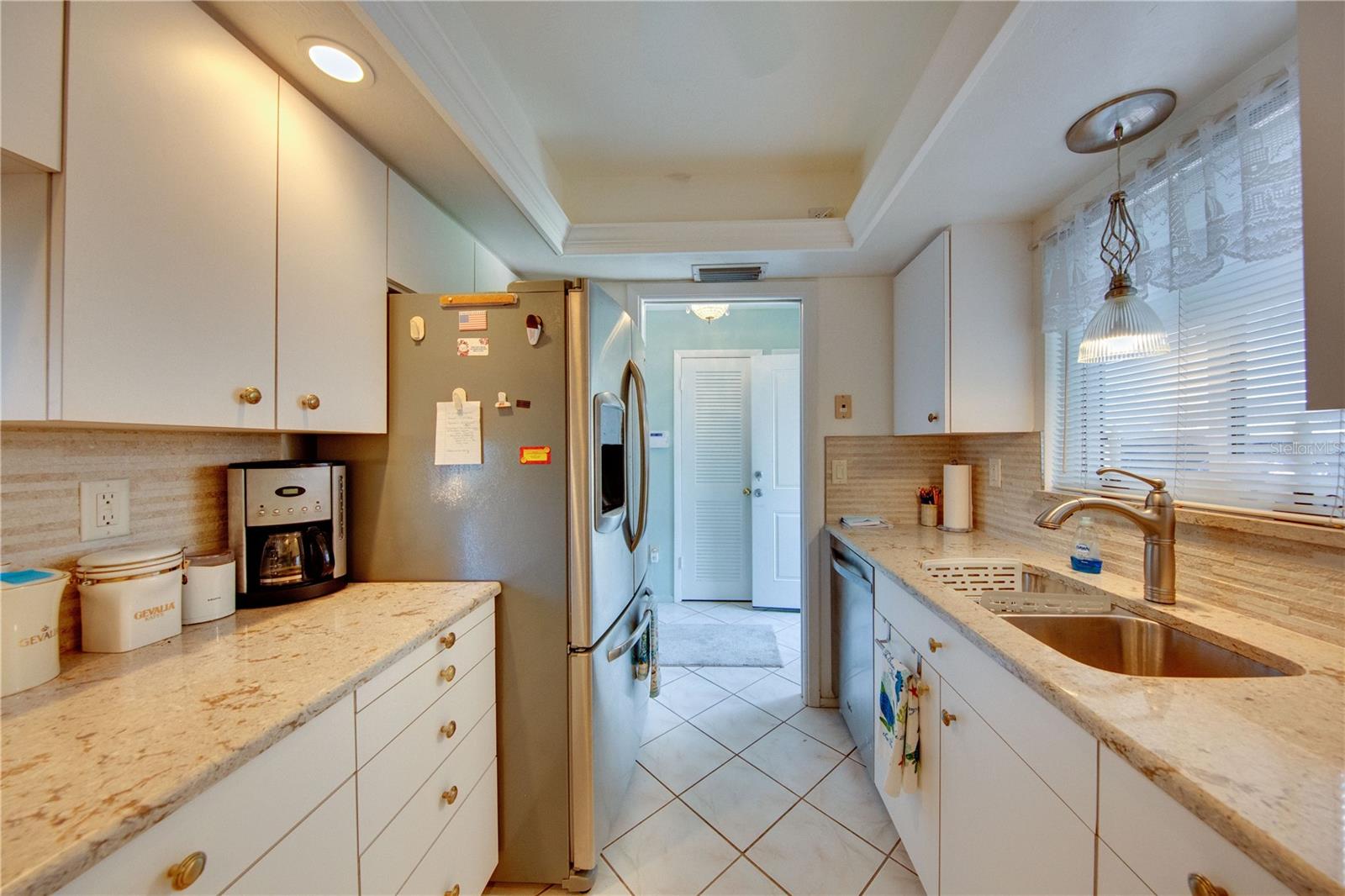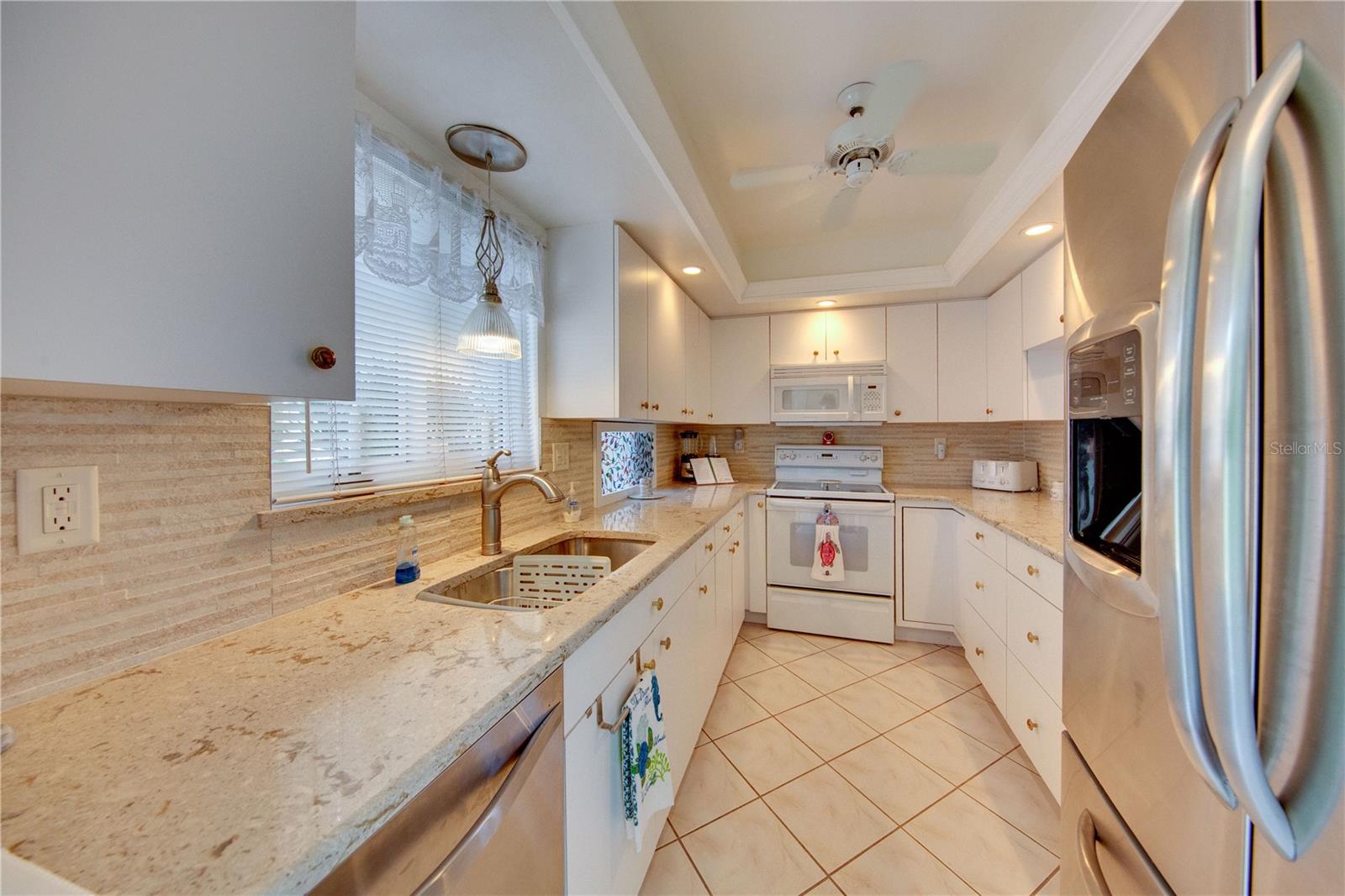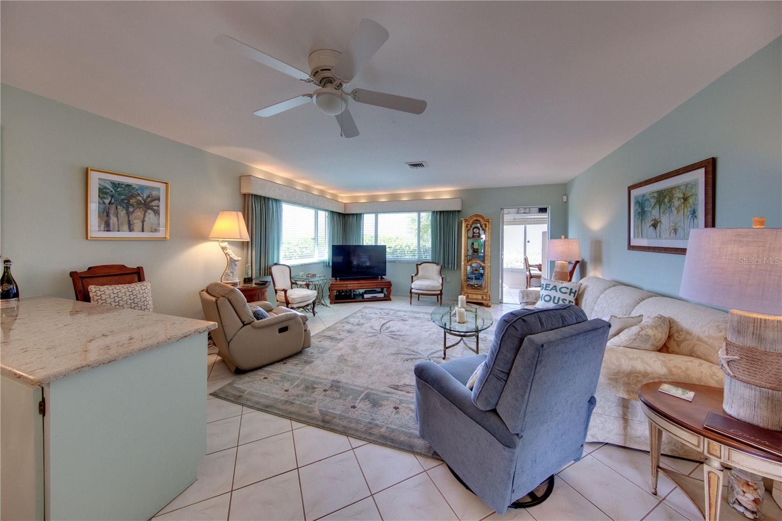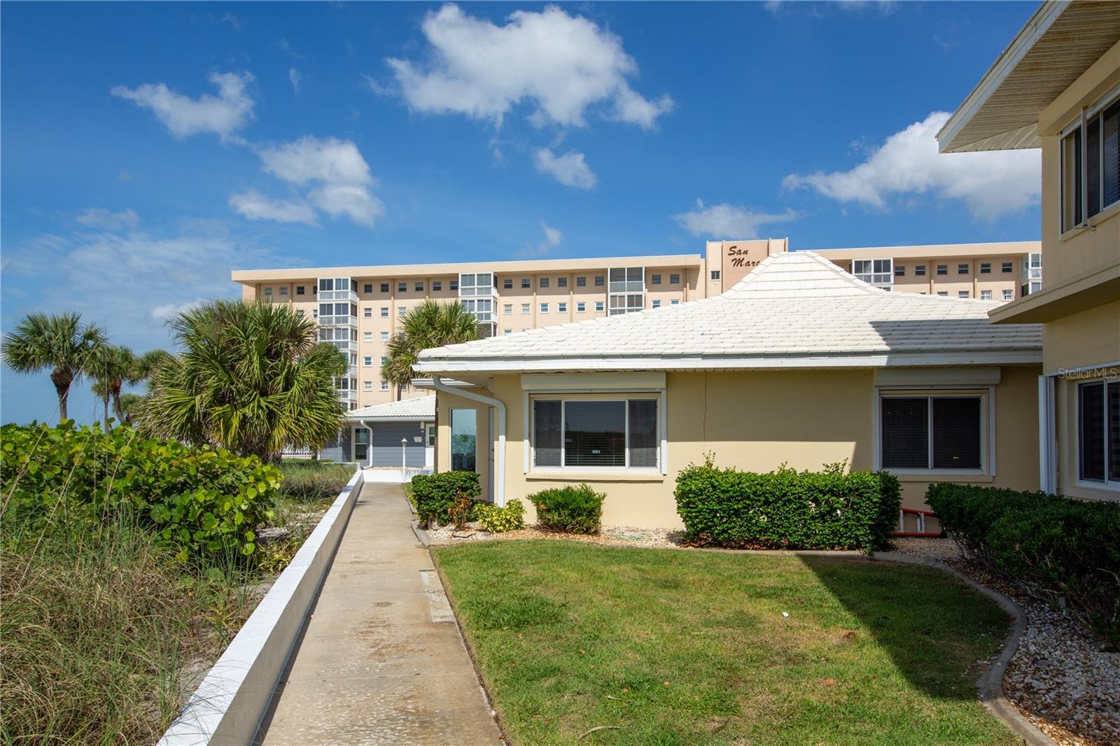 Just steps to beautiful Venice Beach, this spacious TURNKEY FURNISHED villa with 2 bedrooms & 2 baths is gem & a rarity in Venice! It’s one of the very few free-standing one-story condos & has its own washer & dryer. The Master bedroom has a king-sized bed with 2 closets & built-in drawers. The Guest bedroom has a double bed. The Living room has a sofa bed for guests. While part of the Chateaugay condo high-rise complex, you will have the privacy of a stand-alone one-level living villa. Want to cook? There is a granite countertop, bright kitchen with all the utensils and appliances that you can imagine. There is a smart TV with cable & Wi-Fi. The bright & cheerful Florida room has large windows and access door to outdoors. There is also an attached exterior storage room and screened porch for your bikes & toys. This villa has a dune & sunset view with a private beach access point. There is one designated covered parking space right outside the front door. With 2 designated guest parking spaces on the property. Watch the most gorgeous sunsets from your beach chair while tickling your toes in the warm Gulf. Chateaugy is a very social community with sunset cocktails, under the stars movie nights, book & card clubs and food truck get togethers, heated pool, grill, and possible soon to come bocce court. All the charm of Venice Island, with its free beaches, top-notch restaurants & shopping, is there for the taking! If you want to say, “I could live there,” this is a MUST SEE. Roof replaced in late 2022, A/C replaced in 2024, and updated plumbing 8/24. Service animals meeting certain criteria allowed. Private appraisal in January stated market value at $1,125,000 wth heated area as 1324 SqFt.
