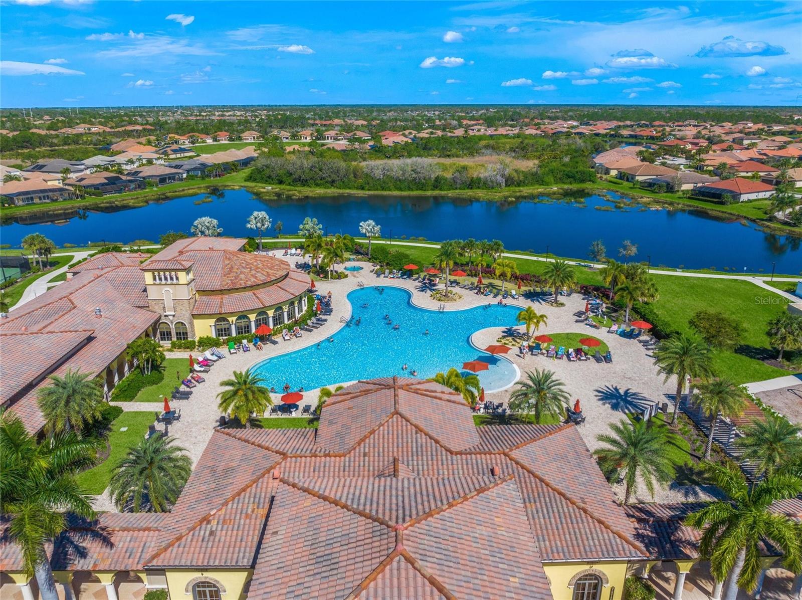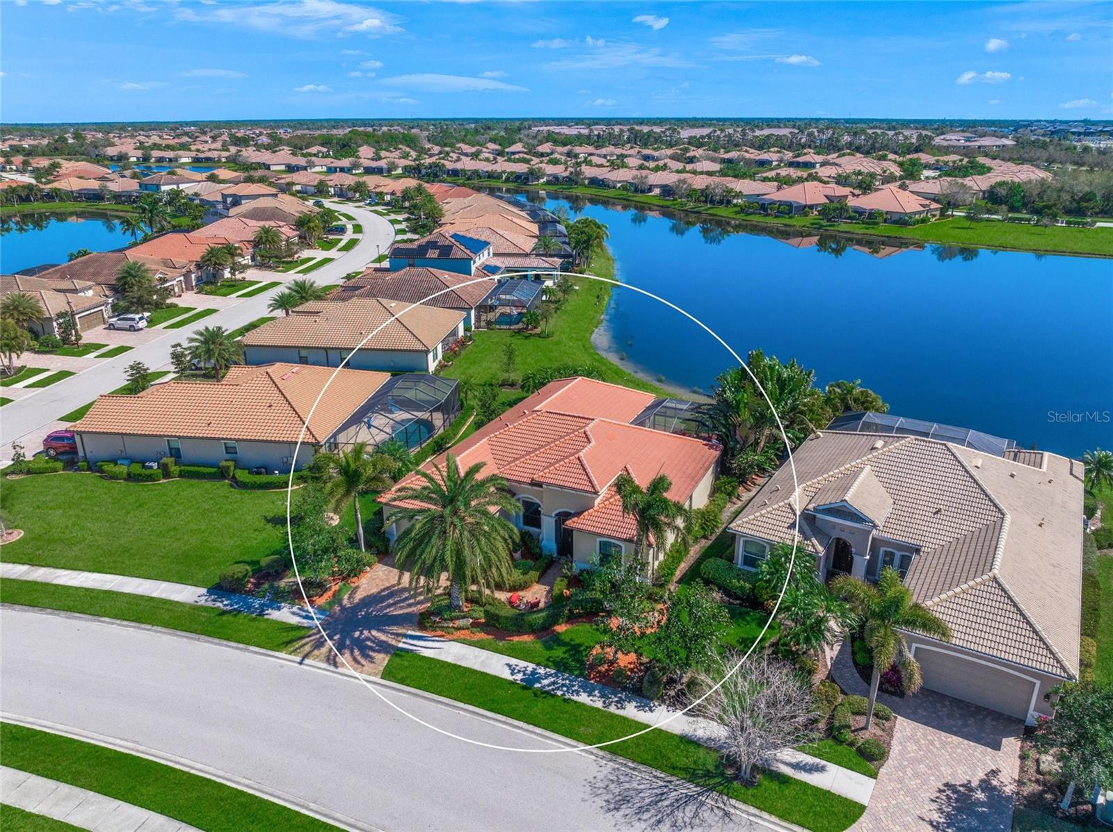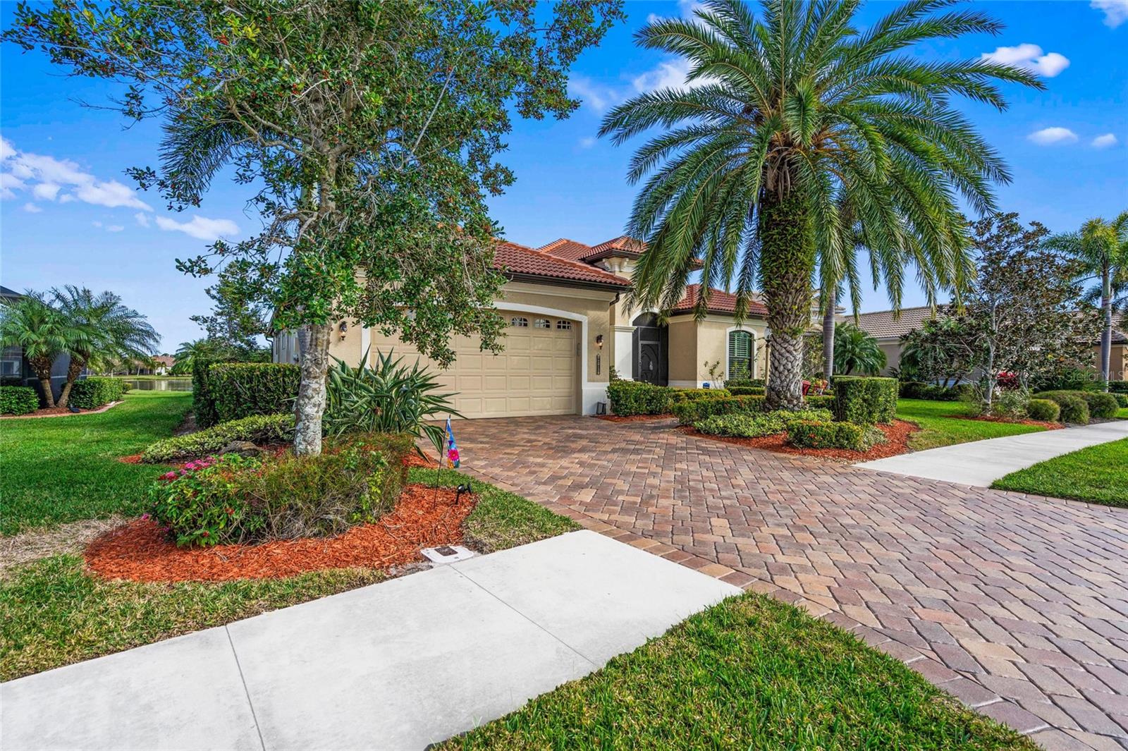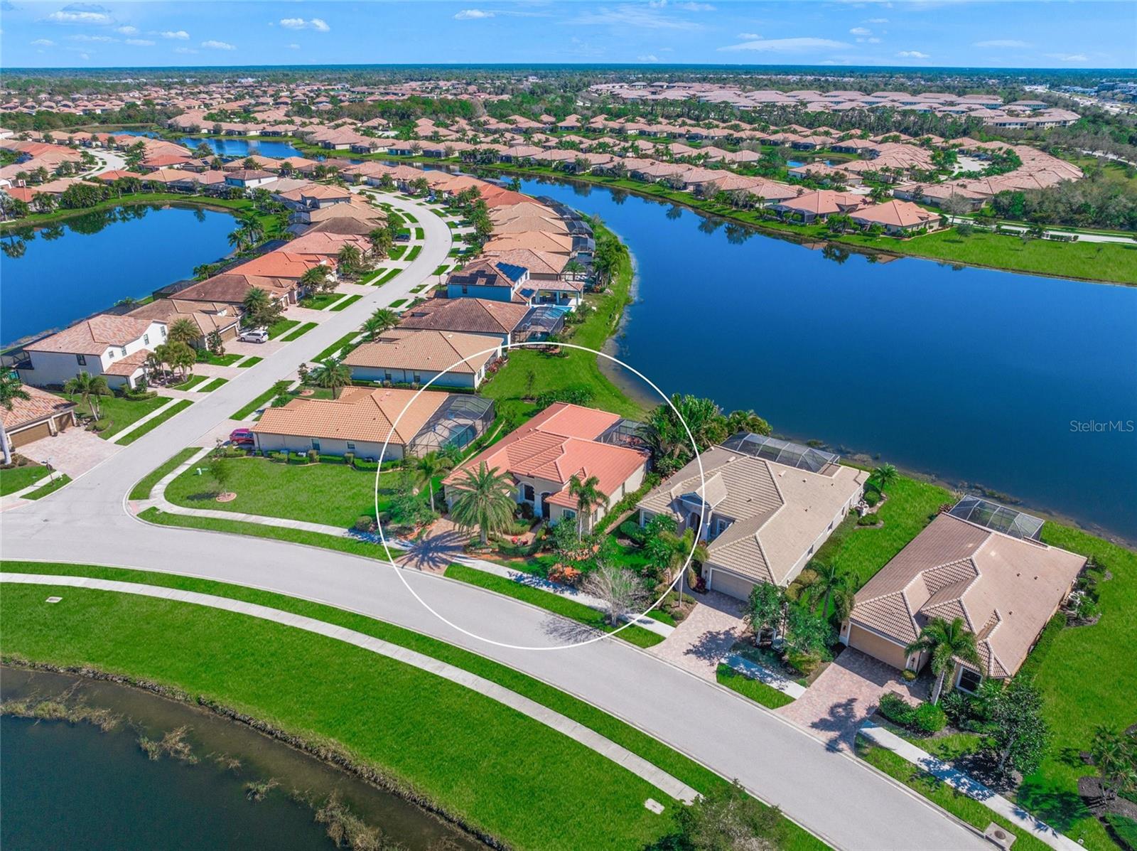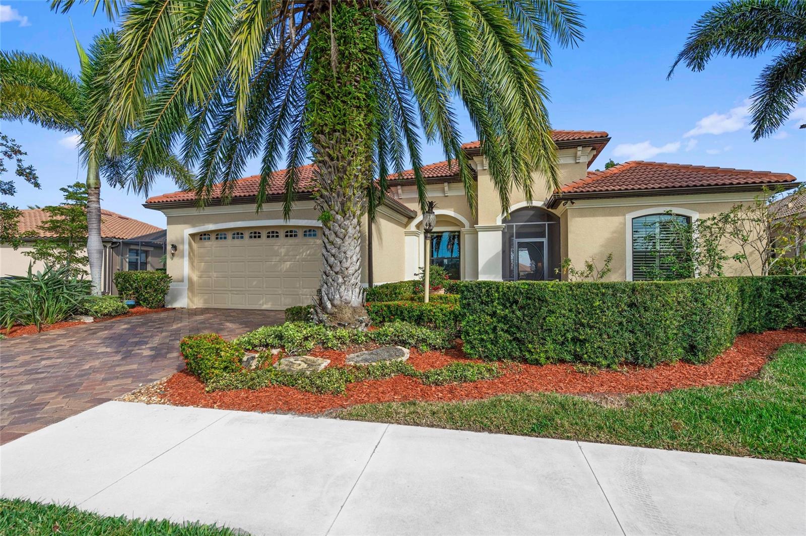 Welcome Home to the beautiful gated community of Gran Paradiso, located just south of Venice in Wellen Park. This stunning, well-built estate home is a former model built by Lee Wetherington, and is one of only a handful of custom Lee Wetherington homes built in Gran Paradiso. This property has a unique setting with a water view both in front and in the rear of the home. Lee Wetherington's Ariel model was built for the buyer who appreciates quality. Step inside and you are greeted with a spectacular marble inlay design on the floor that is truly a work of art. The gourmet kitchen holds top-of-the line appliances, granite countertops, and cherry wood cabinets. This model has four bedrooms, one of which features custom designed cabinetry which could transform the bedroom into a den or home office. The primary bedroom is spacious with a sitting area to hide away, read or just relax. The primary bedroom closets have been custom designed to maximize the space efficiently. The bedrooms all feature wood flooring with the rest of the home featuring porcelain tile. The primary bath has a glass block Roman shower (which is one of the Lee Wetherington signatures), dual sinks with a vanity and chair, and a large whirlpool tub. The split floor plan of this home is a great feature, especially when family and guests come to visit, offering privacy for all. One of the beautiful, custom designed bathrooms features a Bidet Commode. The lanai and pool area have a built-in kitchen, with teakwood cabinetry in a tropical setting that offers total privacy. The custom saltwater pool and spa have a brand new AquaCal heater. As a bonus, you'll have a perfect view of the fireworks from Atlanta Braves Stadium in Wellen Park! This fully furnished home has a new hot water heater, a whole-house water system, Simply Safe alarm system on windows and doors, and impact windows in the front of the home. For peace of mind there is a 20 KW whole-house propane gas Kohler generator with an auto transfer switch and a buried 500 lb. supply tank. In addition, you will find Storm Smart roll-down fabric hurricane screens (some motorized) at all other openings, including a motorized metal roll-down panel for the beveled glass front door. The seller has graciously paid off the CDD bonds. This beautiful home is within walking distance of the community clubhouse and all amenities.