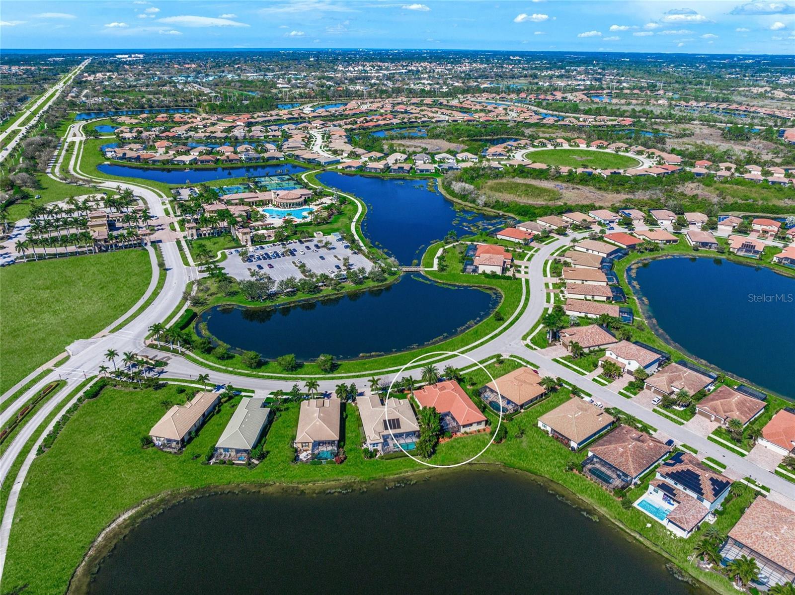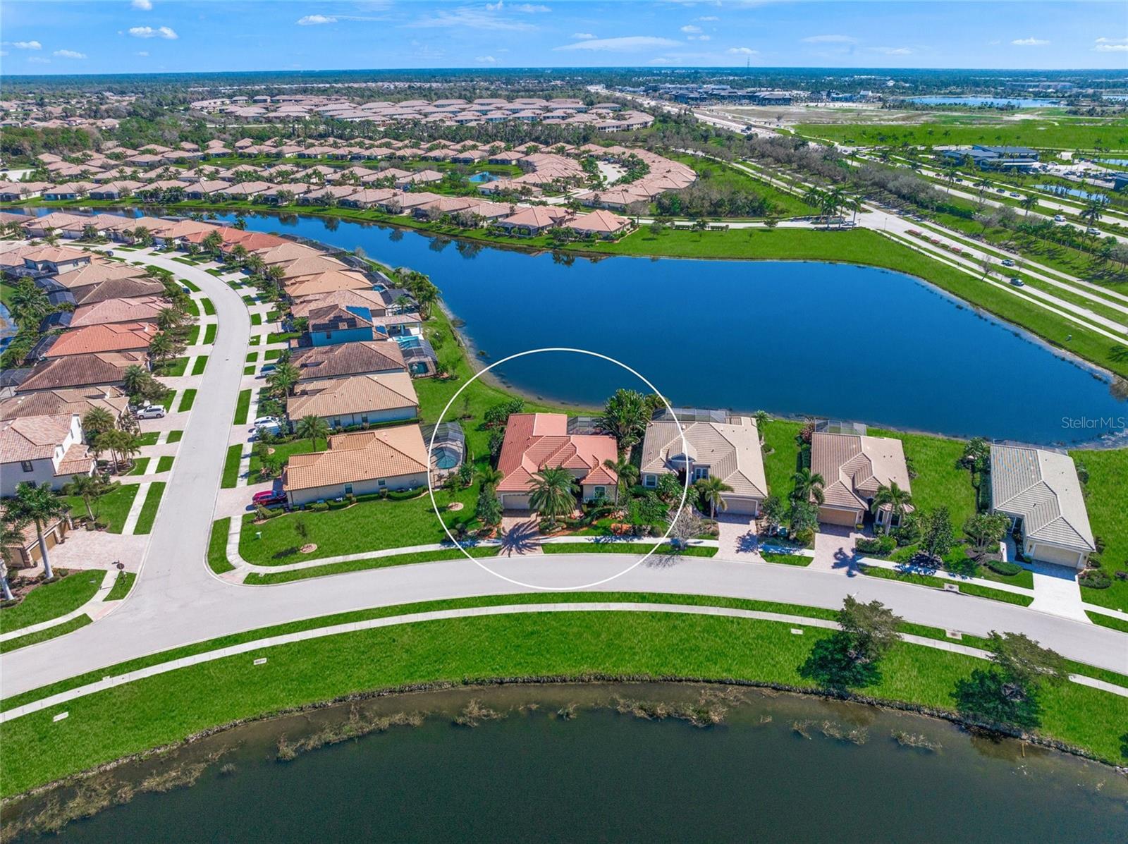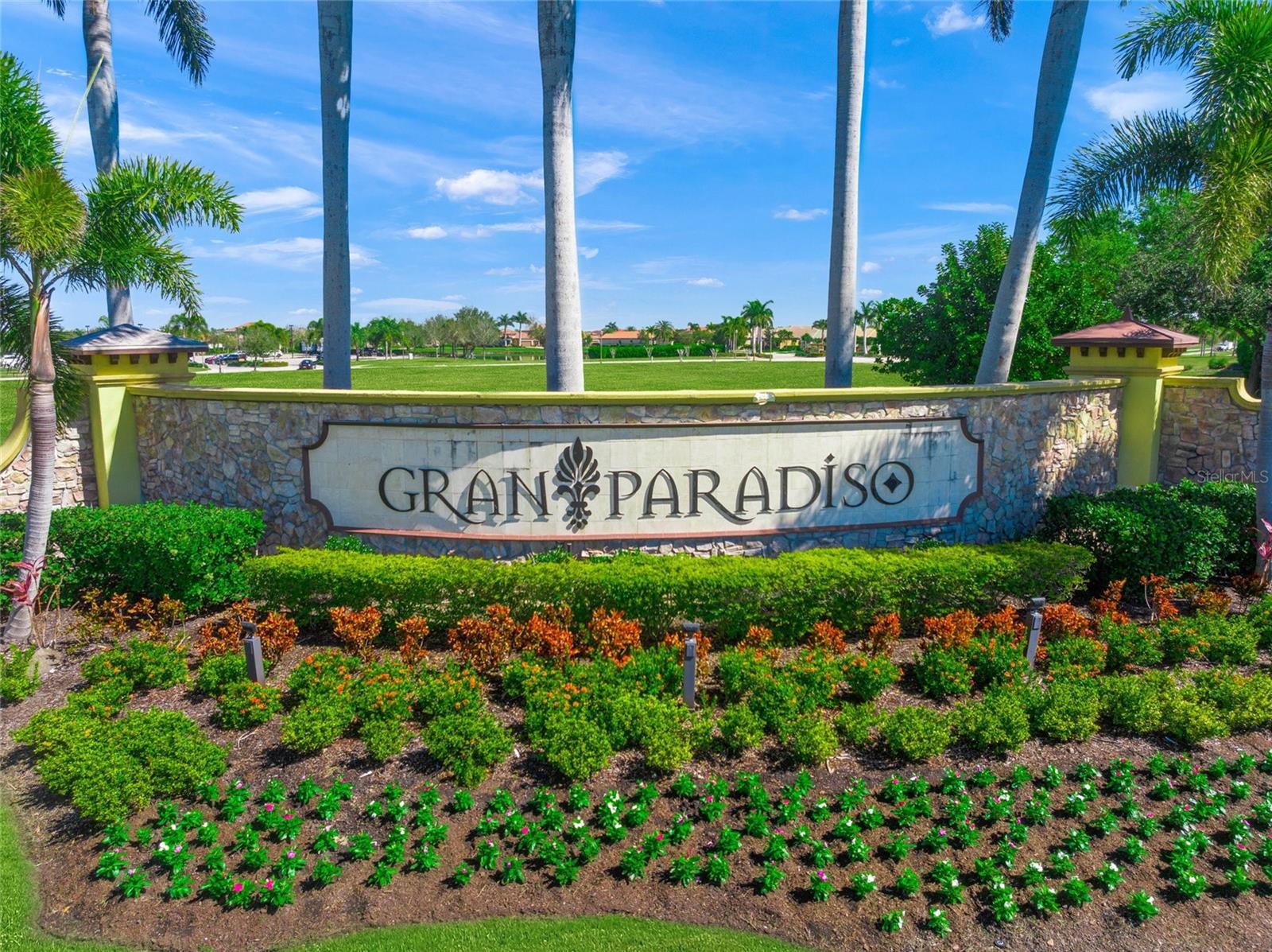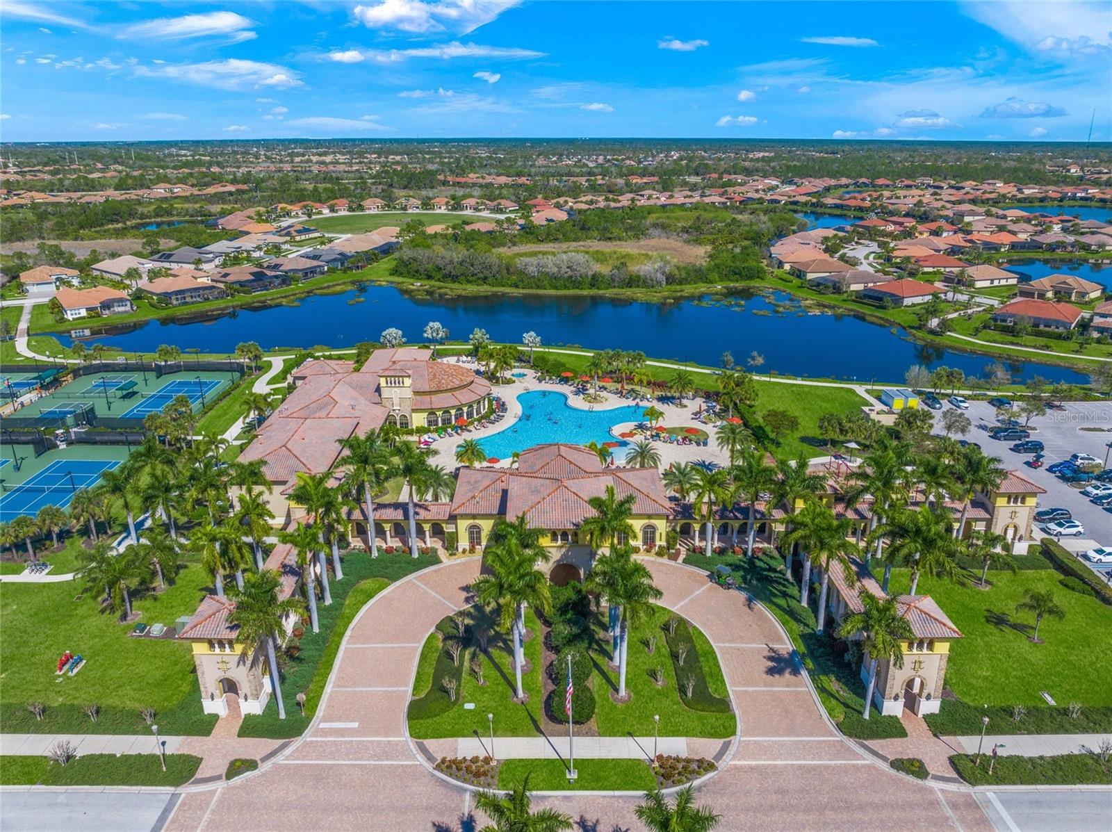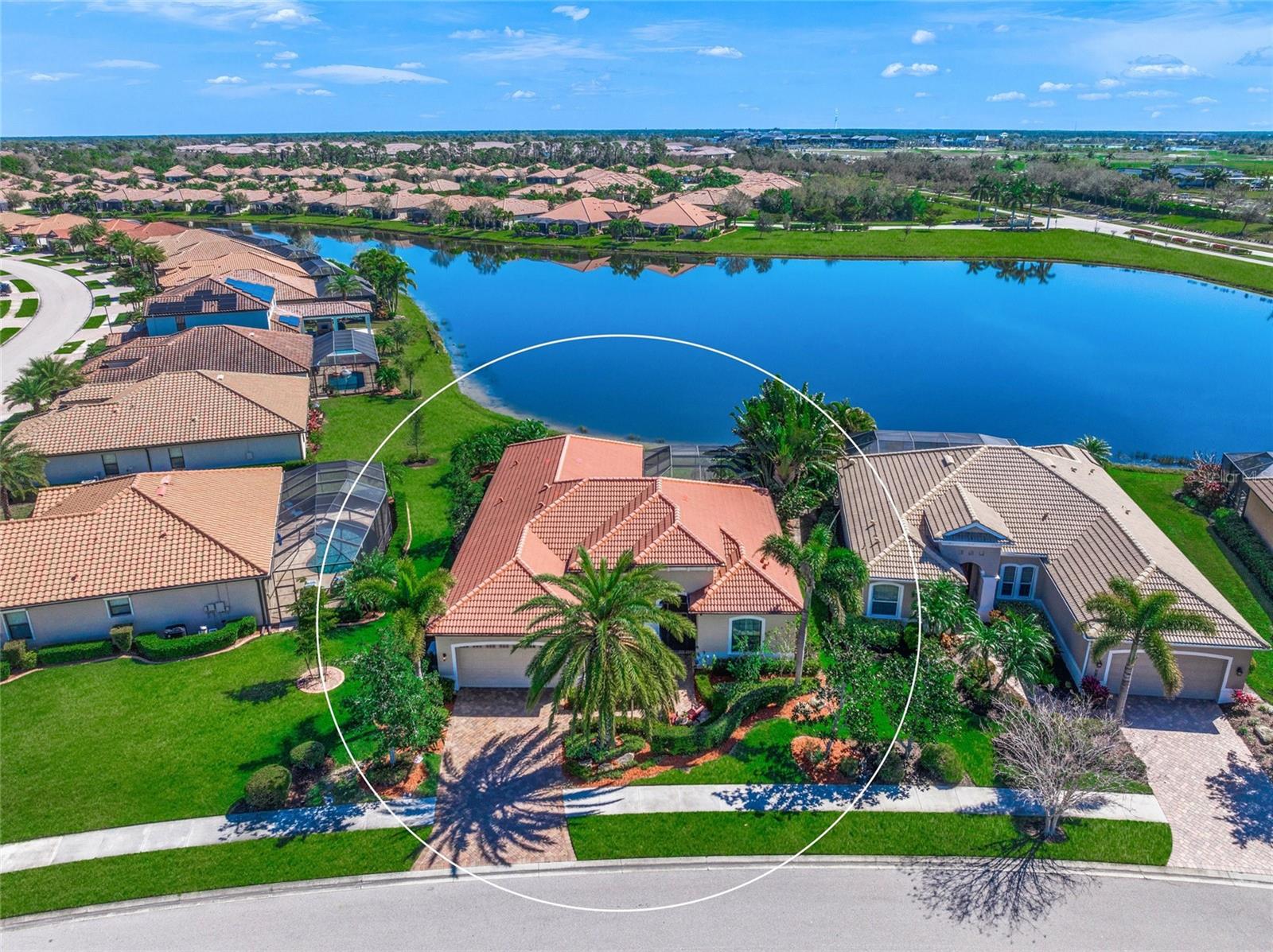 Welcome Home to the beautiful gated community of Gran Paradiso, located just south of Venice in Wellen Park. This stunning, well-built estate home is a former model built by Lee Wetherington, and is one of only a handful of custom Lee Wetherington homes built in Gran Paradiso. This property has a unique setting with a water view both in front and in the rear of the home. Lee Wetherington's Ariel model was built for the buyer who appreciates quality. Step inside and you are greeted with a spectacular marble inlay design on the floor that is truly a work of art. The gourmet kitchen holds top-of-the line appliances, granite countertops, and cherry wood cabinets. This model has four bedrooms, one of which features custom designed cabinetry which could transform the bedroom into a den or home office. The primary bedroom is spacious with a sitting area to hide away, read or just relax. The primary bedroom closets have been custom designed to maximize the space efficiently. The bedrooms all feature wood flooring with the rest of the home featuring porcelain tile. The primary bath has a glass block Roman shower (which is one of the Lee Wetherington signatures), dual sinks with a vanity and chair, and a large whirlpool tub. The split floor plan of this home is a great feature, especially when family and guests come to visit, offering privacy for all. One of the beautiful, custom designed bathrooms features a Bidet Commode. The lanai and pool area have a built-in kitchen, with teakwood cabinetry in a tropical setting that offers total privacy. The custom saltwater pool and spa have a brand new AquaCal heater. As a bonus, you'll have a perfect view of the fireworks from Atlanta Braves Stadium in Wellen Park! This fully furnished home has a new hot water heater, a whole-house water system, Simply Safe alarm system on windows and doors, and impact windows in the front of the home. For peace of mind there is a 20 KW whole-house propane gas Kohler generator with an auto transfer switch and a buried 500 lb. supply tank. In addition, you will find Storm Smart roll-down fabric hurricane screens (some motorized) at all other openings, including a motorized metal roll-down panel for the beveled glass front door. The seller has graciously paid off the CDD bonds. This beautiful home is within walking distance of the community clubhouse and all amenities.