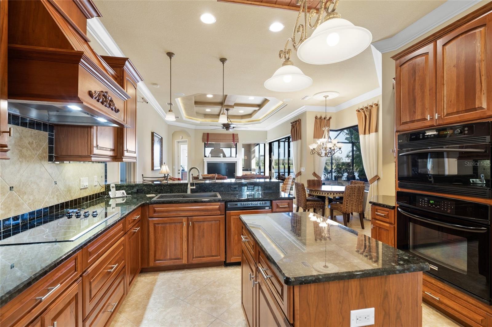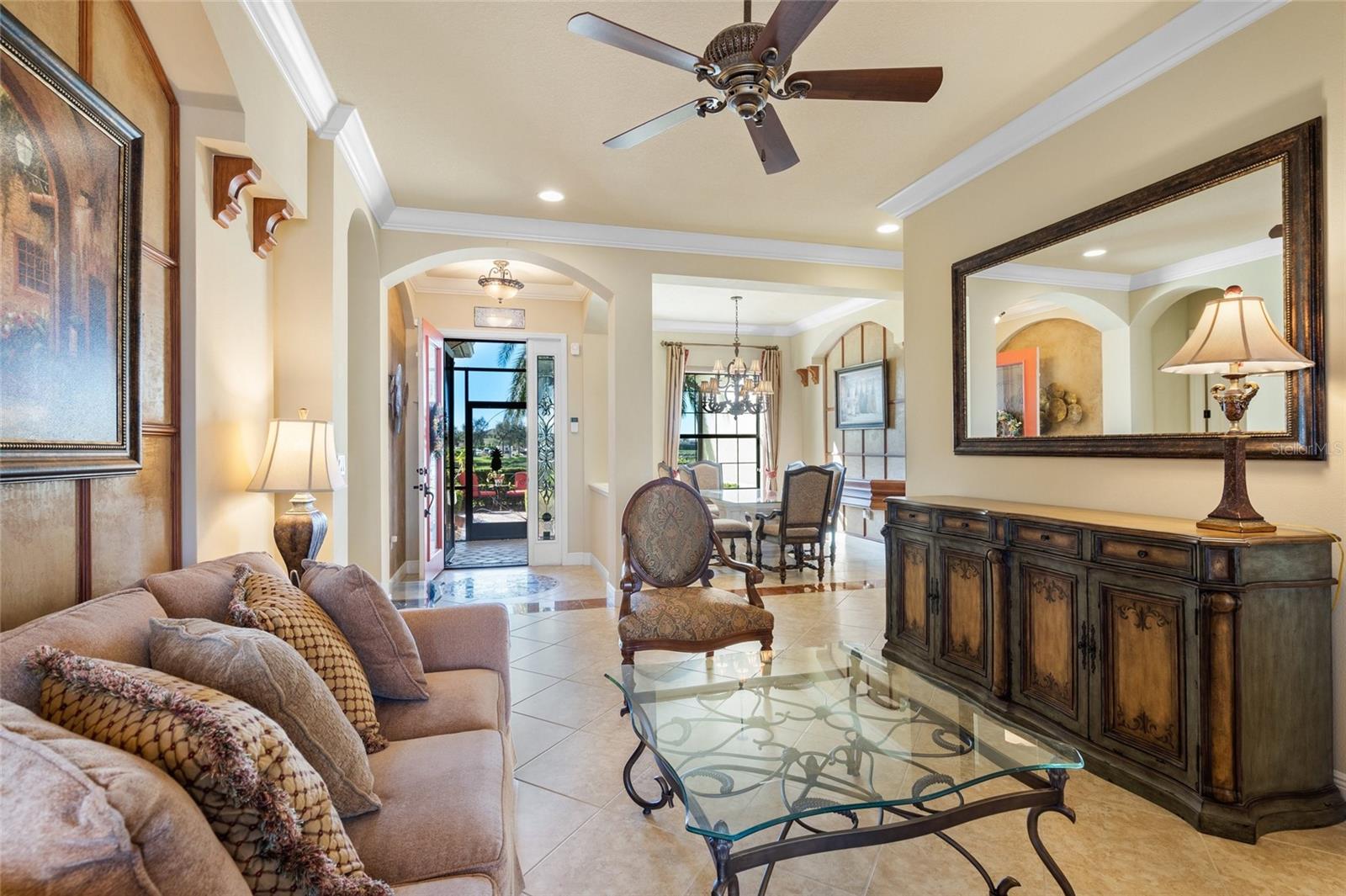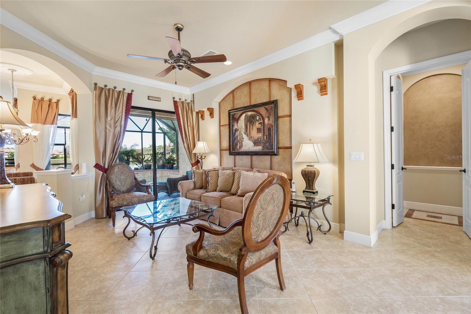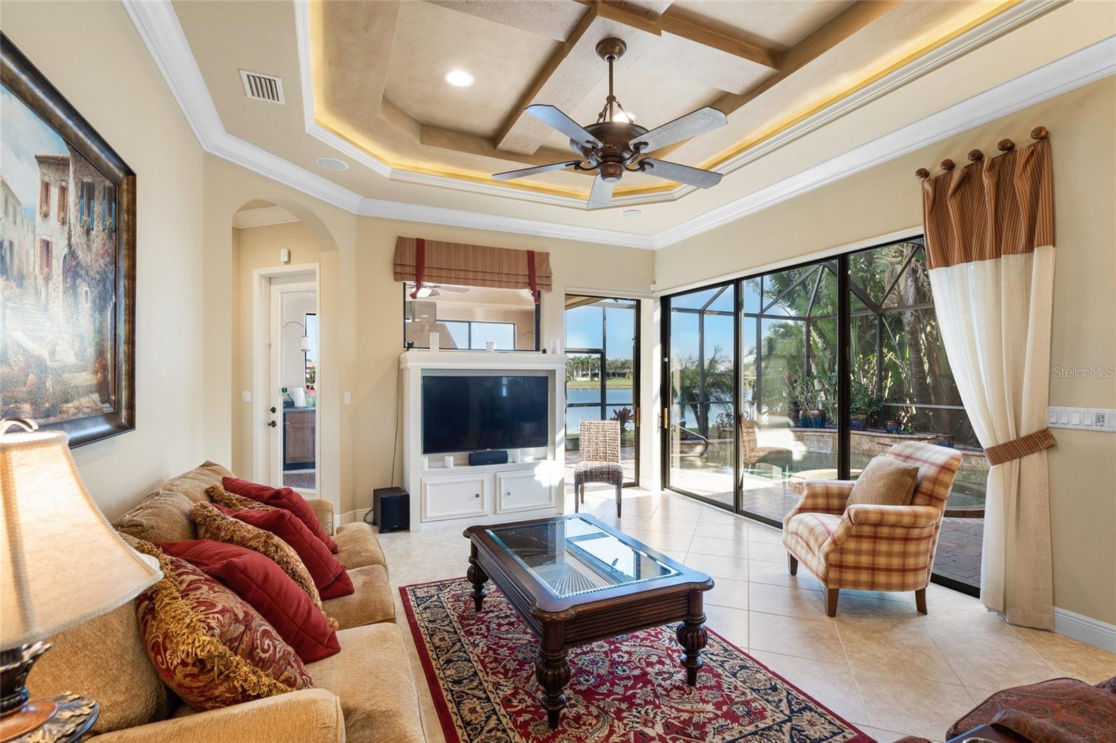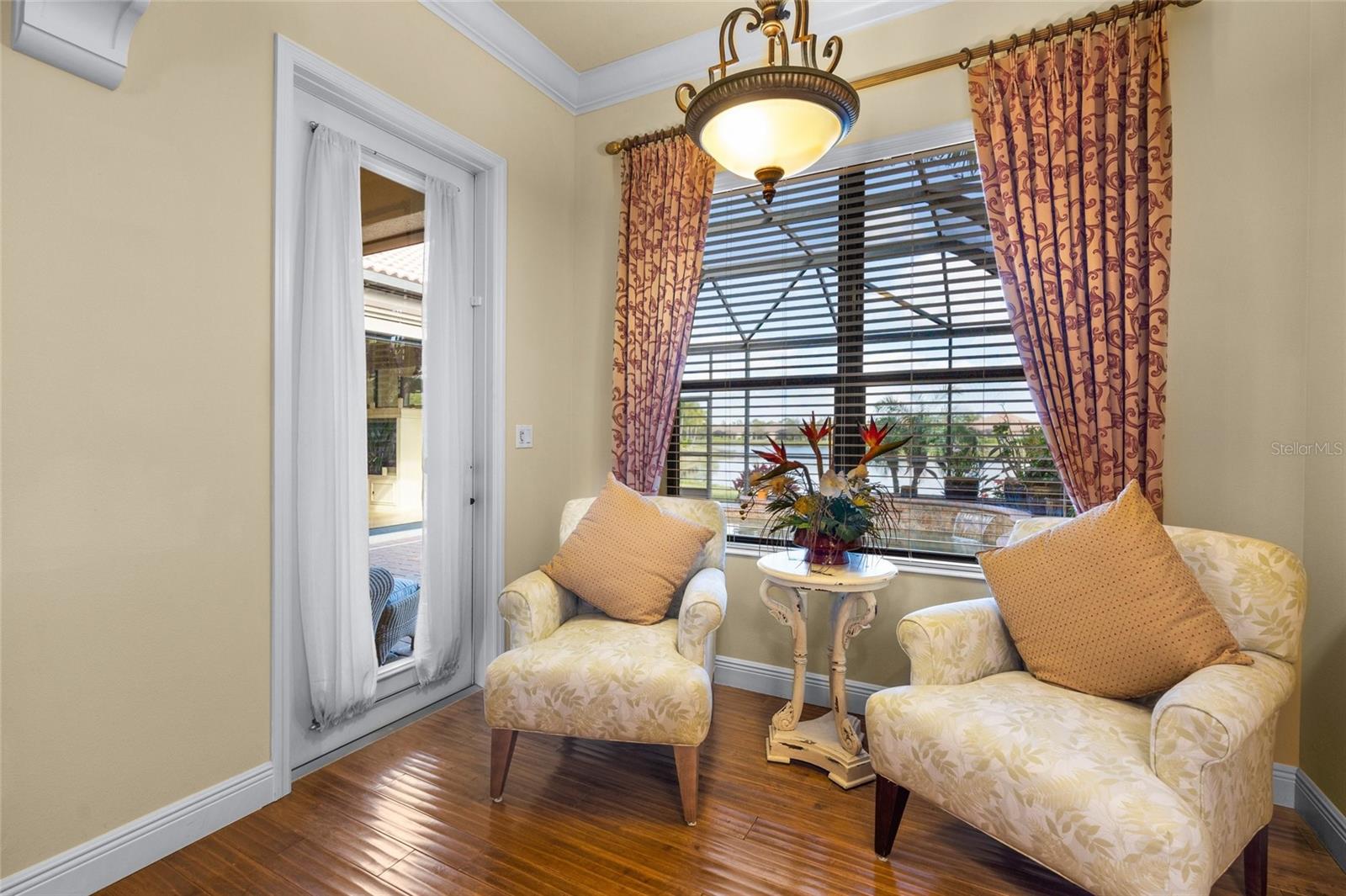Welcome Home to the beautiful gated community of Gran Paradiso, located just south of Venice in Wellen Park. This stunning, well-built estate home is a former model built by Lee Wetherington, and is one of only a handful of custom Lee Wetherington homes built in Gran Paradiso. This property has a unique setting with a water view both in front and in the rear of the home. Lee Wetherington's Ariel model was built for the buyer who appreciates quality. Step inside and you are greeted with a spectacular marble inlay design on the floor that is truly a work of art. The gourmet kitchen holds top-of-the line appliances, granite countertops, and cherry wood cabinets. This model has four bedrooms, one of which features custom designed cabinetry which could transform the bedroom into a den or home office. The primary bedroom is spacious with a sitting area to hide away, read or just relax. The primary bedroom closets have been custom designed to maximize the space efficiently. The bedrooms all feature wood flooring with the rest of the home featuring porcelain tile. The primary bath has a glass block Roman shower (which is one of the Lee Wetherington signatures), dual sinks with a vanity and chair, and a large whirlpool tub. The split floor plan of this home is a great feature, especially when family and guests come to visit, offering privacy for all. One of the beautiful, custom designed bathrooms features a Bidet Commode. The lanai and pool area have a built-in kitchen, with teakwood cabinetry in a tropical setting that offers total privacy. The custom saltwater pool and spa have a brand new AquaCal heater. As a bonus, you'll have a perfect view of the fireworks from Atlanta Braves Stadium in Wellen Park! This fully furnished home has a new hot water heater, a whole-house water system, Simply Safe alarm system on windows and doors, and impact windows in the front of the home. For peace of mind there is a 20 KW whole-house propane gas Kohler generator with an auto transfer switch and a buried 500 lb. supply tank. In addition, you will find Storm Smart roll-down fabric hurricane screens (some motorized) at all other openings, including a motorized metal roll-down panel for the beveled glass front door. The seller has graciously paid off the CDD bonds. This beautiful home is within walking distance of the community clubhouse and all amenities.